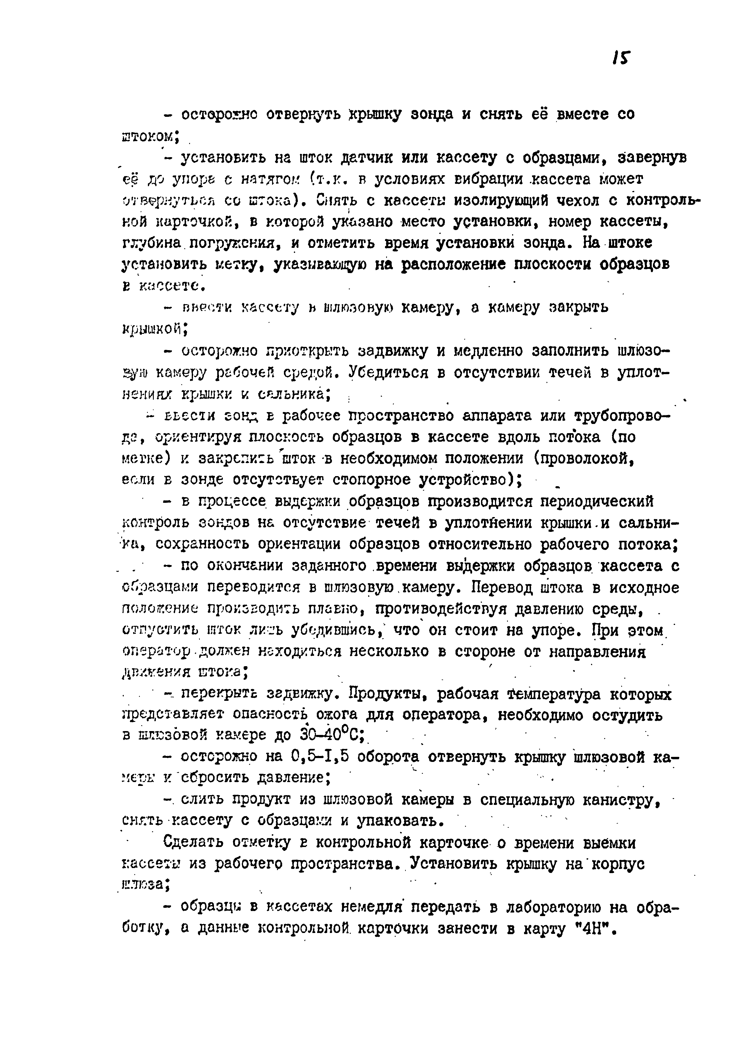 | Область применения: | Инструкция предназначена для определения фактической скорости коррозии металла стенок корпусов сосудов и трубопроводов, эксплуатирующихся на предприятиях нефтехимпрома СССР, с целью установления периодичности и технического освидетельствования в соответствии с требованиями действующих правил и нормативных документов. |