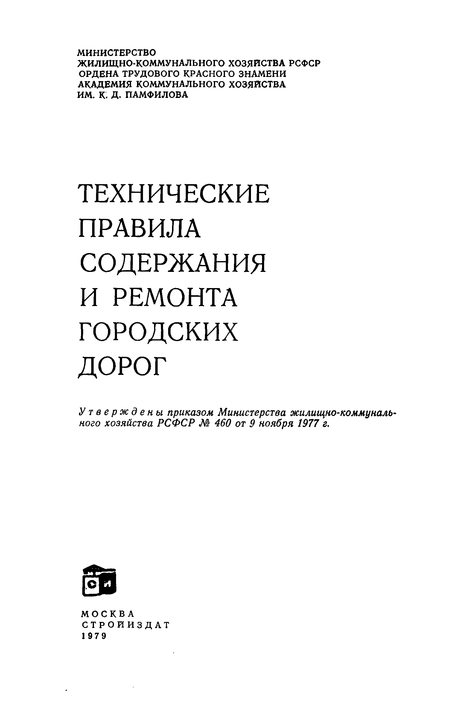 | Утверждён: | 09.11.1977 Министерство жилищно-коммунального хозяйства РСФСР (460)