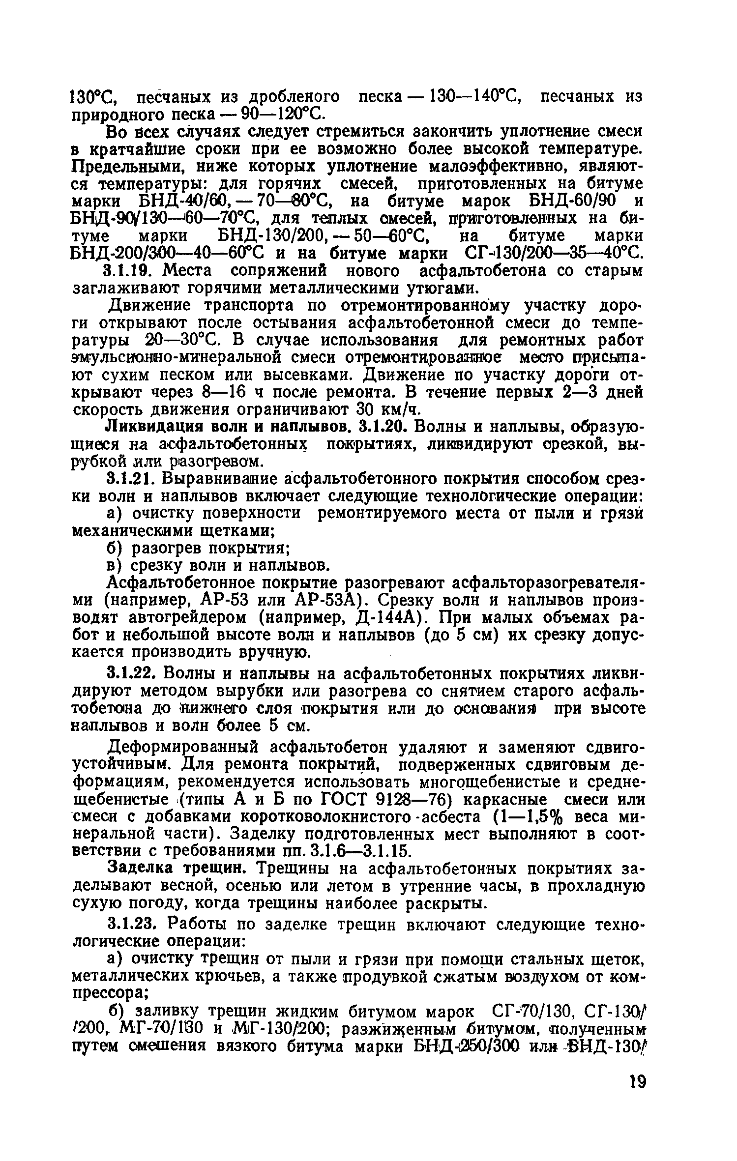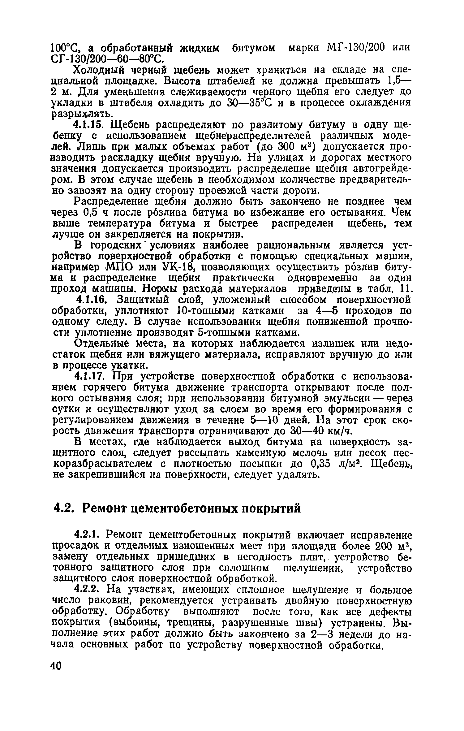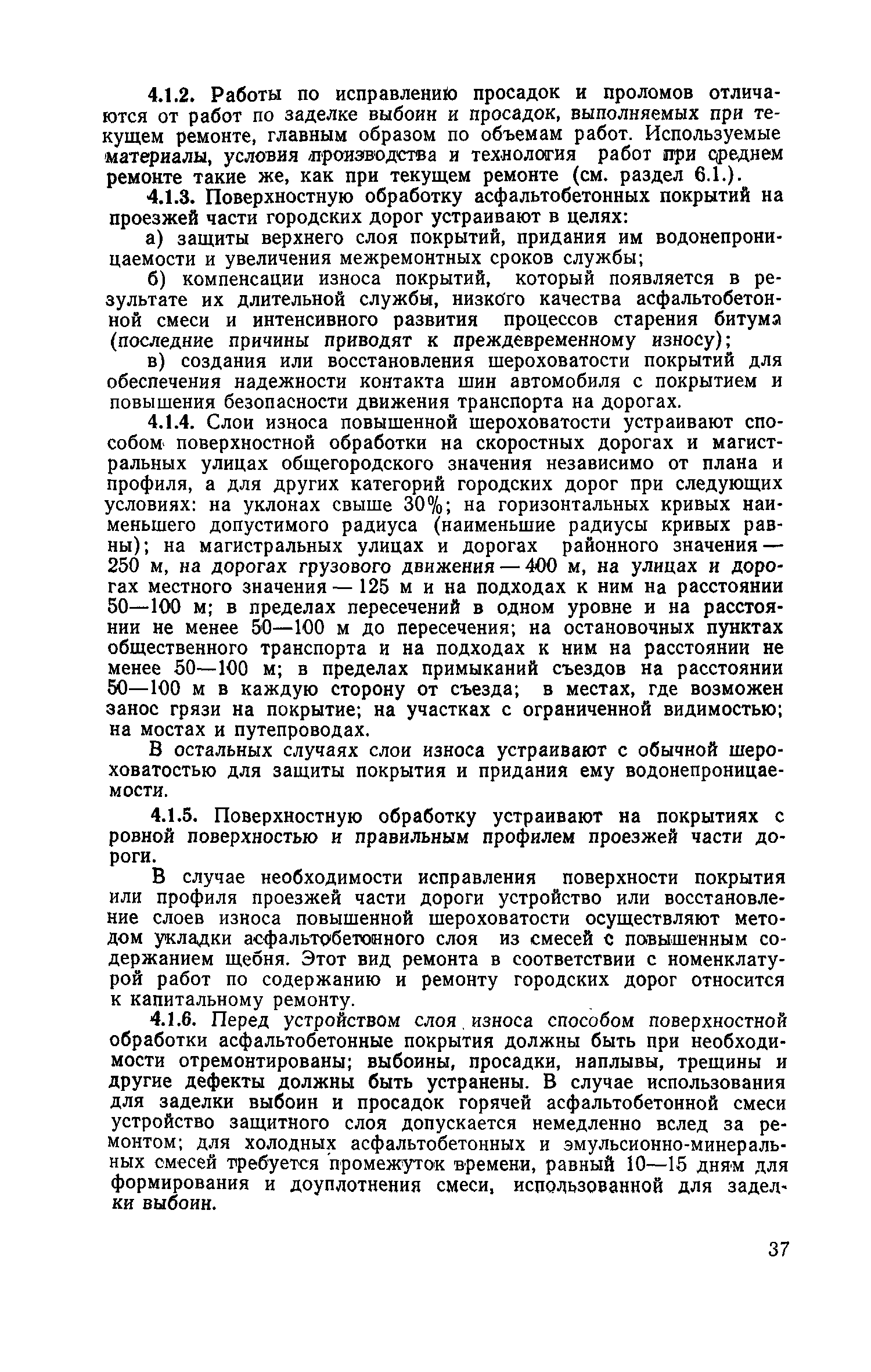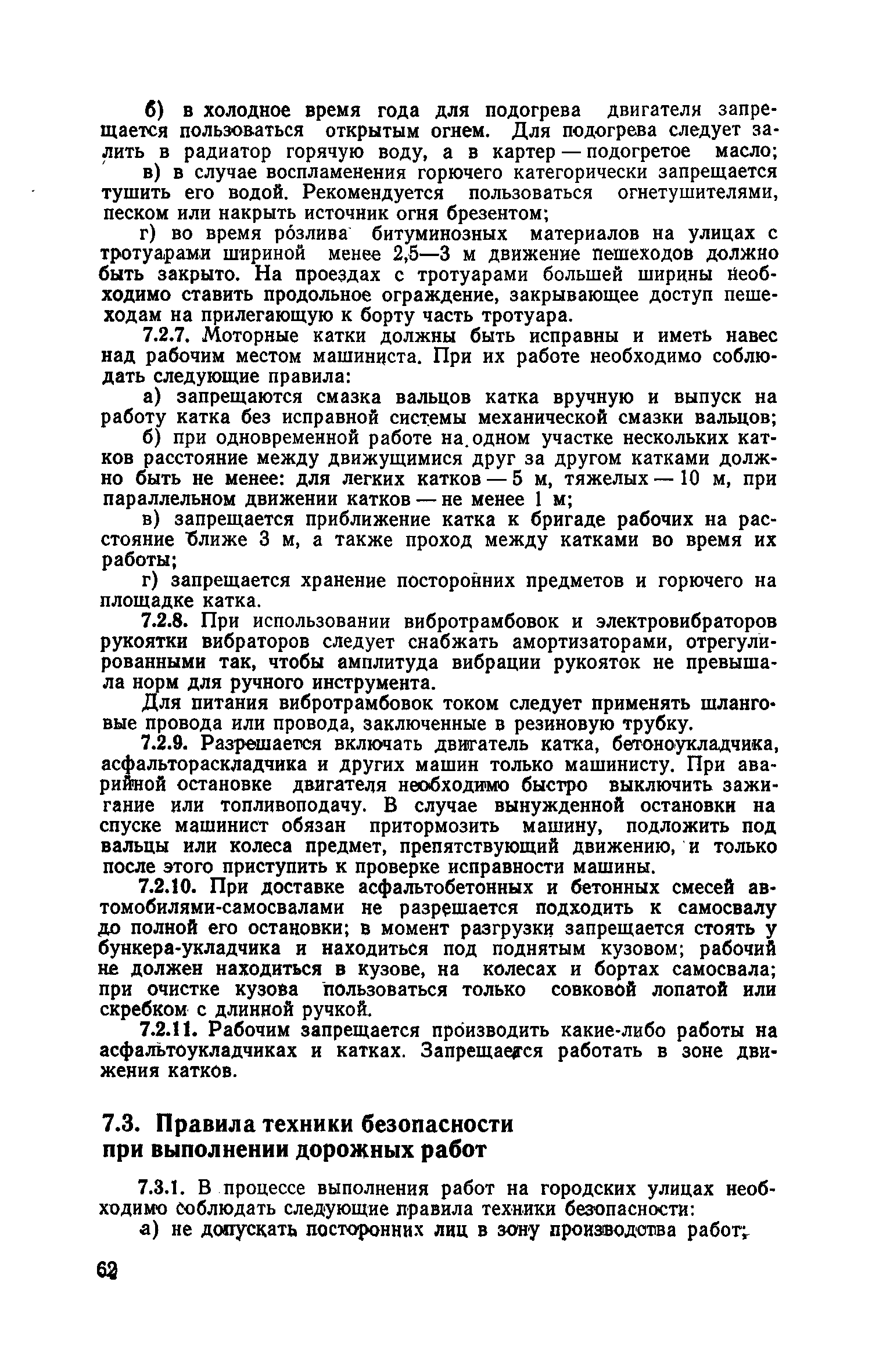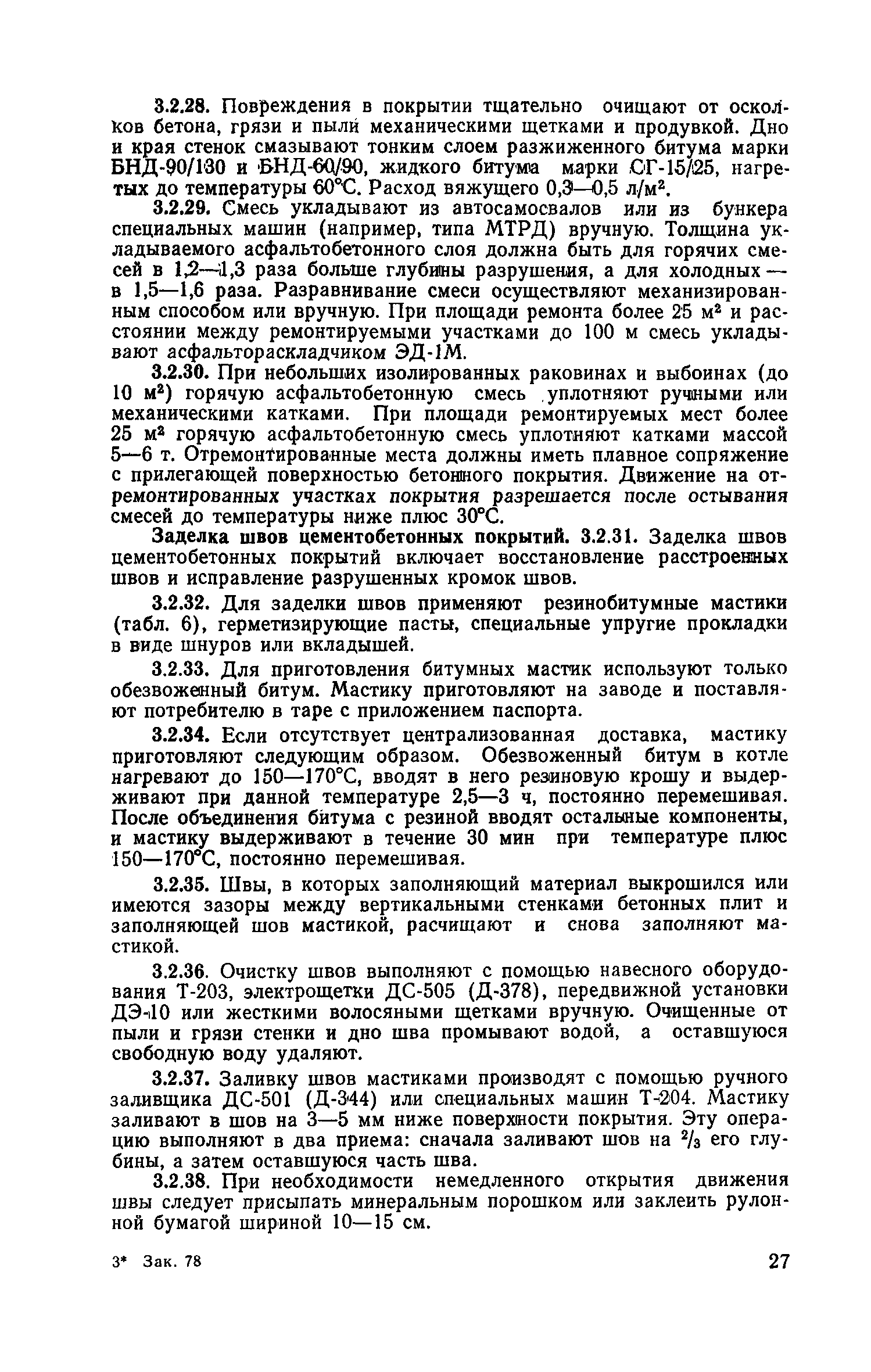 | Оглавление: | 1. Классификация работ по содержанию и ремонту городских дорог 1.1 Общая часть 1.2 Номенклатура работ по содержанию и ремонту 1.3 Состав работ по содержанию и ремонту городских дорог 2. Содержание городских дорог 2.1 Общая часть 2.2 Содержание ливневой канализации 2.3 Обеспыливание покрытий переходного т низшего типов 2.4 Учет интенсивности движения городского транспорта 3. Текущий ремонт городских дорог 3.1 Ремонт асфальтобетонных покрытий 3.2 Ремонт цементобетонных покрытий 3.3 Ремонт покрытий переходного и низшего типов 3.4 Восстановление покрытий после разрытий на проезжей части улиц и тротуаров 3.5 Исправление дренажей 3.6 Ремонт бортовых камней 3.7 Ремонт ливневой канализации 4. Средний ремонт городских дорог 4.1 Ремонт асфальтобетонных покрытий 4.2 Ремонт цементобетонных покрытий 4.3 Ремонт покрытий переходного и низшего типов 4.4 Ремонт бортовых камней 4.5 Ремонт ливневой канализации 4.6 Ликвидация пучин 5. Машины и механизмы для содержания текущего и среднего ремонтов дорог, тротуаров, бортовых камней и ливневой канализации 6. Контроль качества содержания и ремонта городских дорог 6.1 Контроль качества при содержании городских дорог 6.2 Контроль качества при текущем ремонте городских дорог 6.3 Контроль качества среднего ремонта городских дорог 7. Основные правила техники безопасности производства работ по содержанию и ремонту городских дорог 7.1 Общая часть 7.2 Правила техники безопасности при работе с машинами, механизмами и механизированным инструментом 7.3 Правила техники безопасности при выполнении дорожных работ Приложение 1. Карточка учета движения Приложение 2. Журнал учета движения Приложение 3. Паспорт Приложение 4. Журнал осмотра городских дорог и тротуаров Приложение 5. Накладная на битум (битумную эмульсию) Приложение 6. Накладная на замес Приложение 7. Накладная на бетонную смесь Приложение 8. Ведомость промеров толщины, поперечных уклонов, ширины и ровности покрытия Приложение 9. Ведомость промеров толщины, поперечных уклонов, ширины и ровности основания под покрытие Приложение 10. Журнал контроля уплотнения грунта под основание дороги Приложение 11. Журнал качества укладки бетонной смеси Приложение 12. Журнал качества укладки асфальтобетонной смеси за смену |