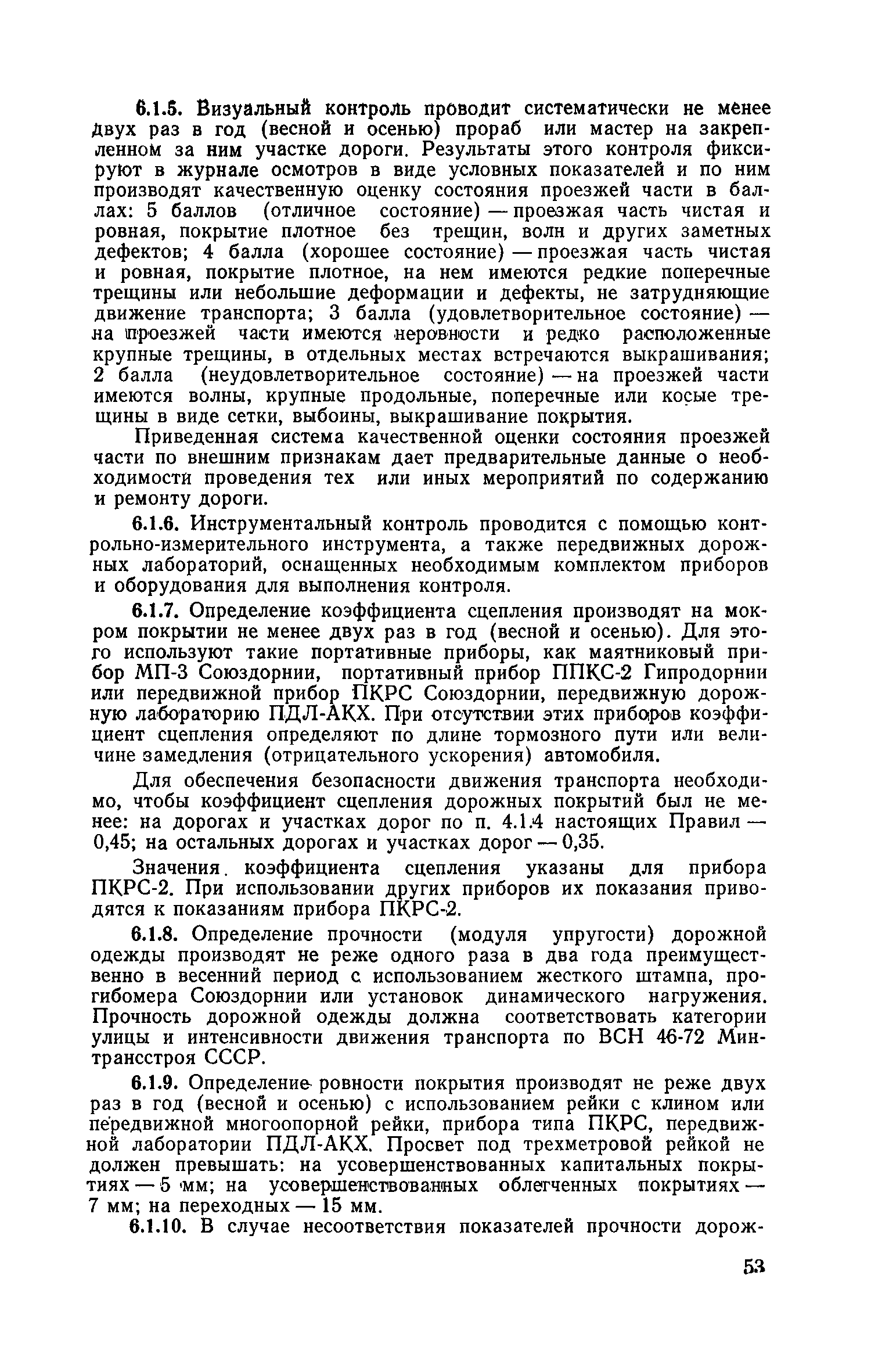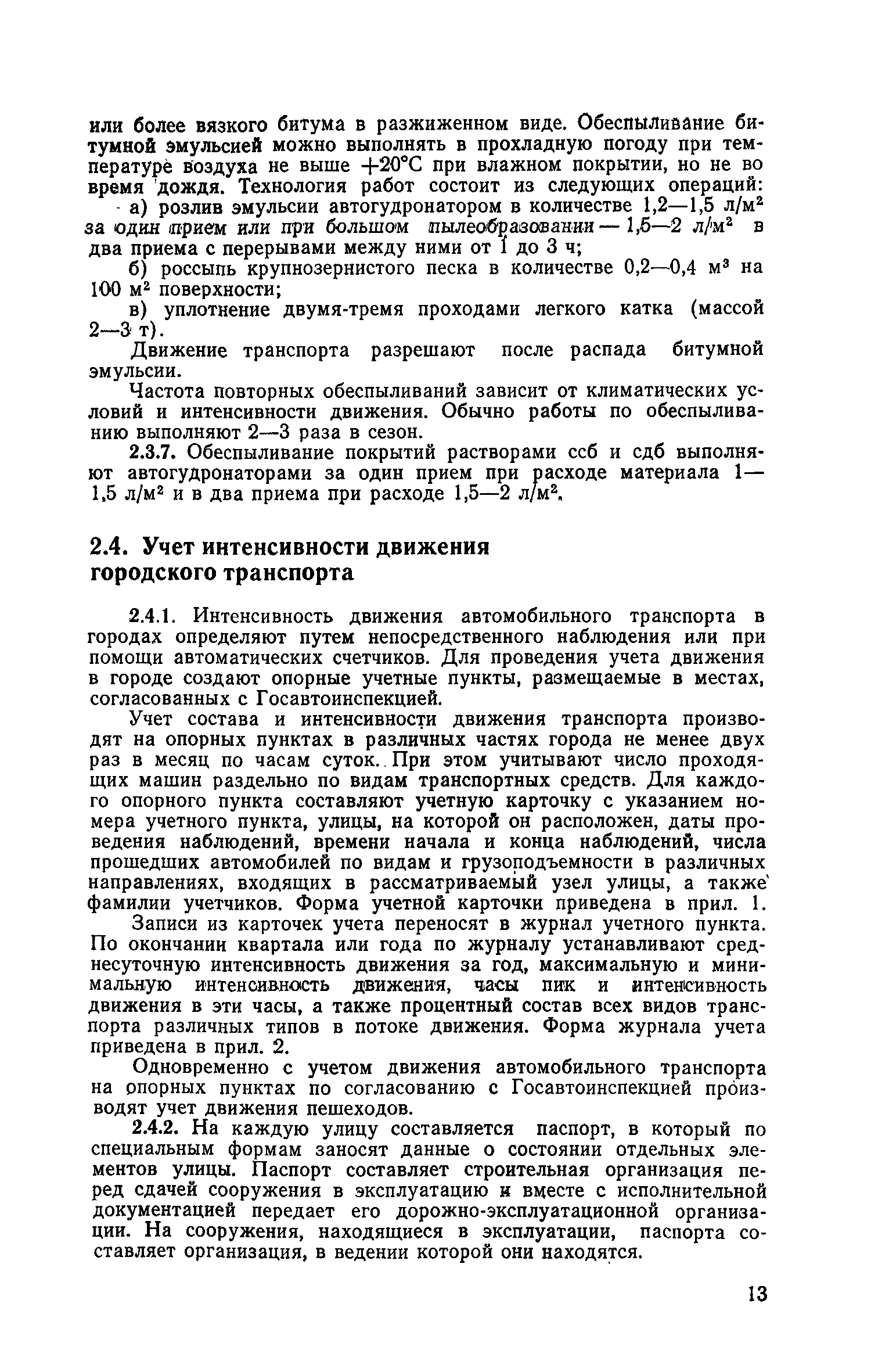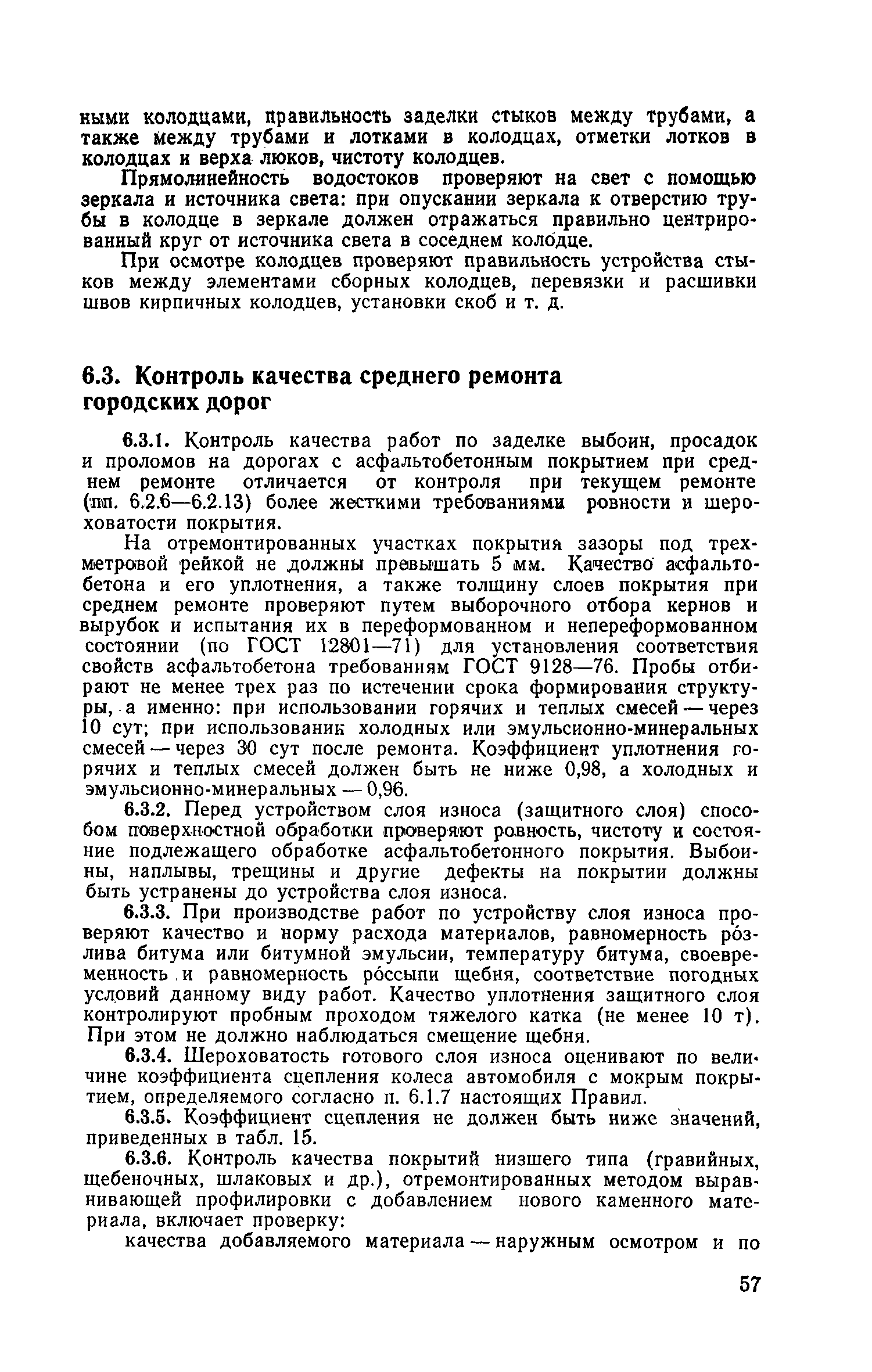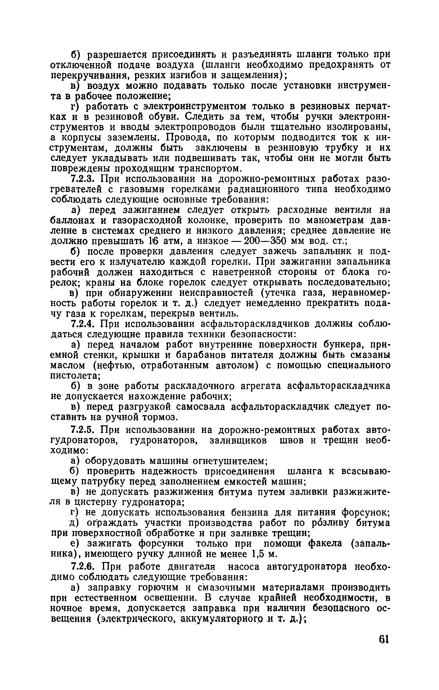 | Оглавление: | 1. Классификация работ по содержанию и ремонту городских дорог 1.1 Общая часть 1.2 Номенклатура работ по содержанию и ремонту 1.3 Состав работ по содержанию и ремонту городских дорог 2. Содержание городских дорог 2.1 Общая часть 2.2 Содержание ливневой канализации 2.3 Обеспыливание покрытий переходного т низшего типов 2.4 Учет интенсивности движения городского транспорта 3. Текущий ремонт городских дорог 3.1 Ремонт асфальтобетонных покрытий 3.2 Ремонт цементобетонных покрытий 3.3 Ремонт покрытий переходного и низшего типов 3.4 Восстановление покрытий после разрытий на проезжей части улиц и тротуаров 3.5 Исправление дренажей 3.6 Ремонт бортовых камней 3.7 Ремонт ливневой канализации 4. Средний ремонт городских дорог 4.1 Ремонт асфальтобетонных покрытий 4.2 Ремонт цементобетонных покрытий 4.3 Ремонт покрытий переходного и низшего типов 4.4 Ремонт бортовых камней 4.5 Ремонт ливневой канализации 4.6 Ликвидация пучин 5. Машины и механизмы для содержания текущего и среднего ремонтов дорог, тротуаров, бортовых камней и ливневой канализации 6. Контроль качества содержания и ремонта городских дорог 6.1 Контроль качества при содержании городских дорог 6.2 Контроль качества при текущем ремонте городских дорог 6.3 Контроль качества среднего ремонта городских дорог 7. Основные правила техники безопасности производства работ по содержанию и ремонту городских дорог 7.1 Общая часть 7.2 Правила техники безопасности при работе с машинами, механизмами и механизированным инструментом 7.3 Правила техники безопасности при выполнении дорожных работ Приложение 1. Карточка учета движения Приложение 2. Журнал учета движения Приложение 3. Паспорт Приложение 4. Журнал осмотра городских дорог и тротуаров Приложение 5. Накладная на битум (битумную эмульсию) Приложение 6. Накладная на замес Приложение 7. Накладная на бетонную смесь Приложение 8. Ведомость промеров толщины, поперечных уклонов, ширины и ровности покрытия Приложение 9. Ведомость промеров толщины, поперечных уклонов, ширины и ровности основания под покрытие Приложение 10. Журнал контроля уплотнения грунта под основание дороги Приложение 11. Журнал качества укладки бетонной смеси Приложение 12. Журнал качества укладки асфальтобетонной смеси за смену |
