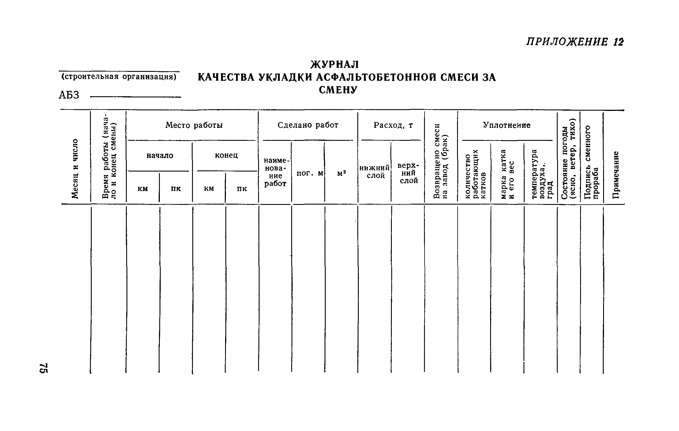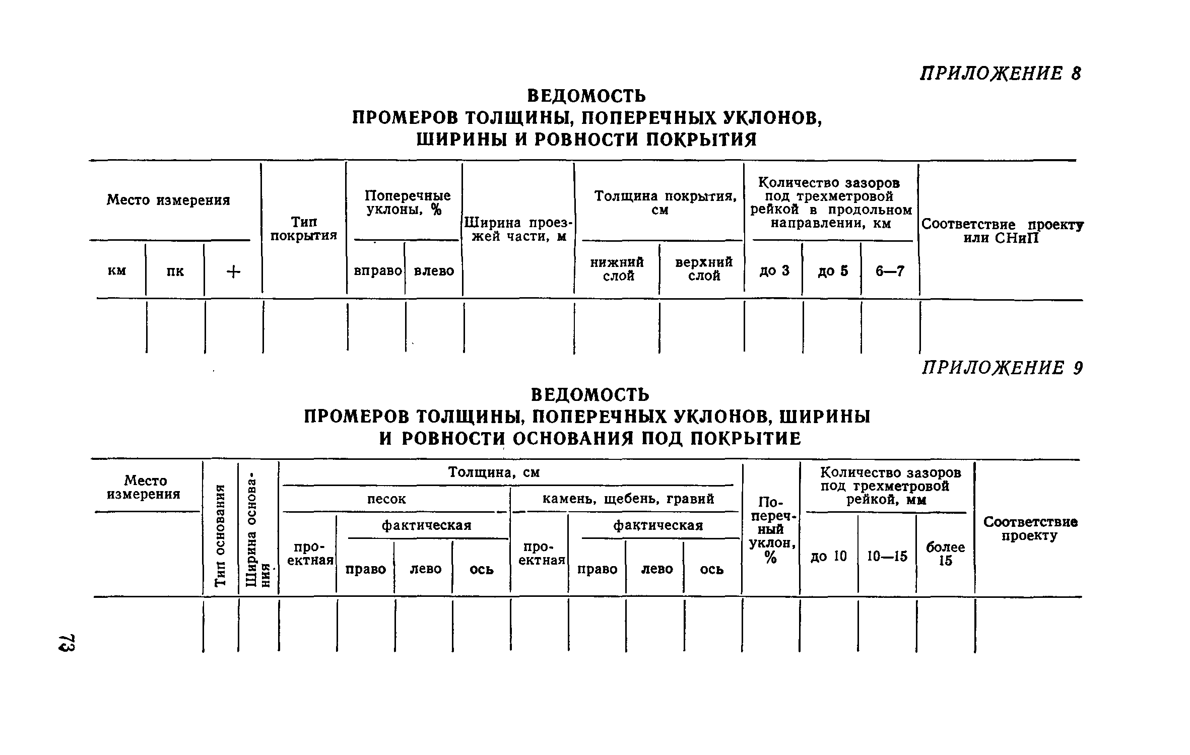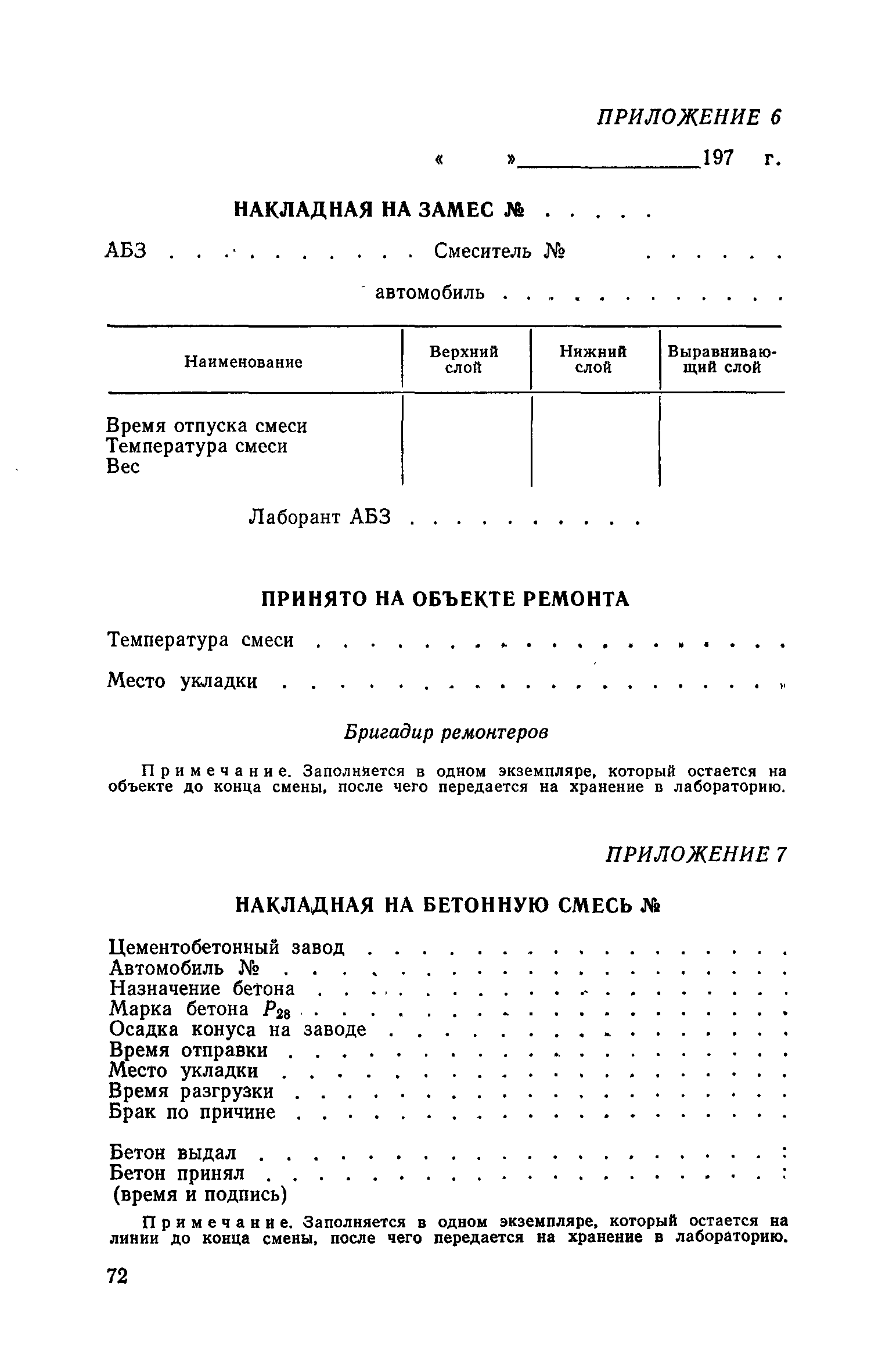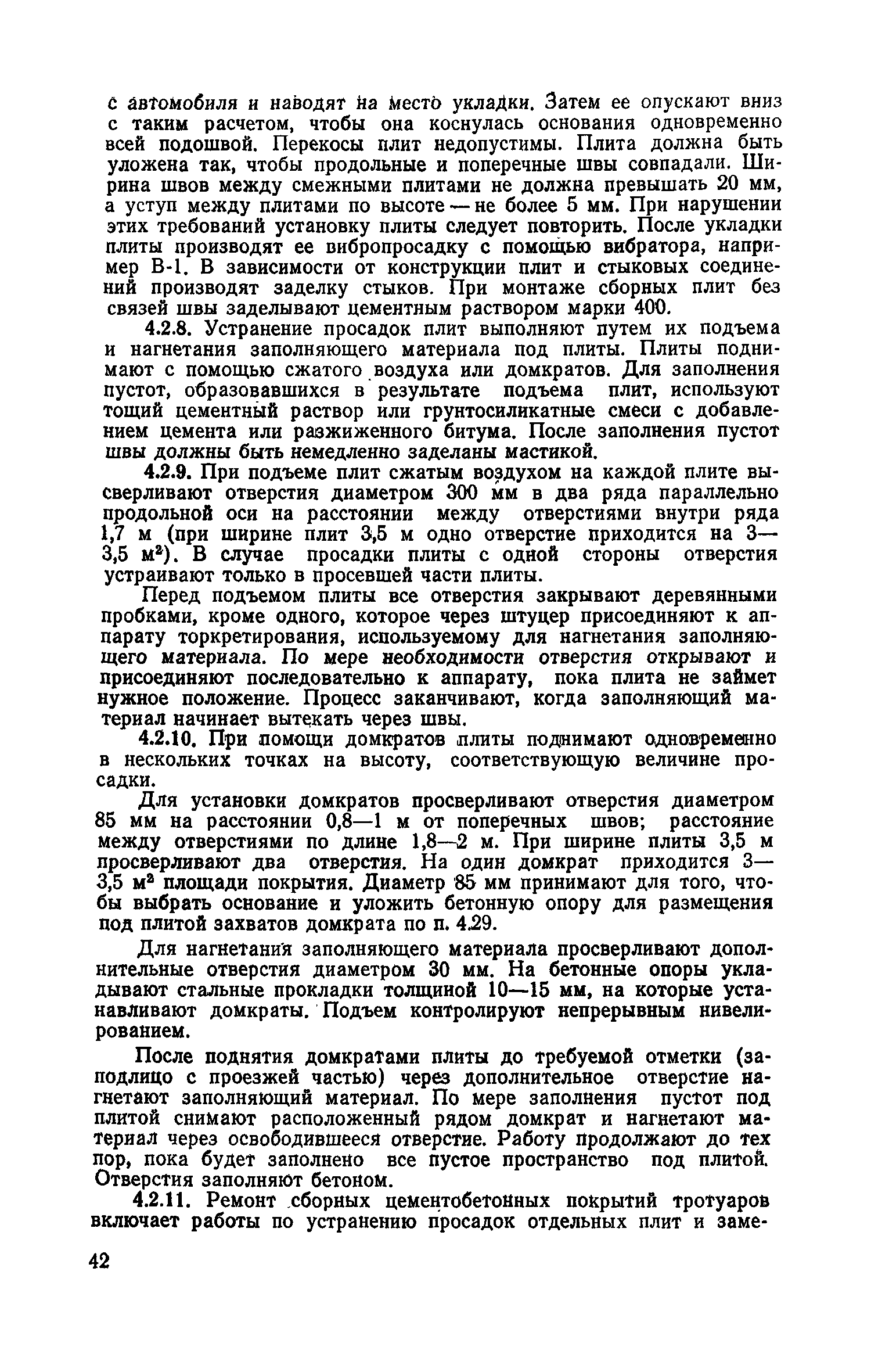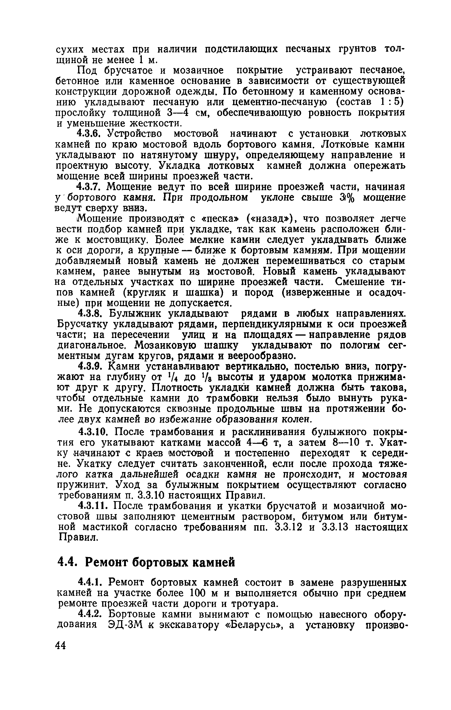 | Оглавление: | 1. Классификация работ по содержанию и ремонту городских дорог 1.1 Общая часть 1.2 Номенклатура работ по содержанию и ремонту 1.3 Состав работ по содержанию и ремонту городских дорог 2. Содержание городских дорог 2.1 Общая часть 2.2 Содержание ливневой канализации 2.3 Обеспыливание покрытий переходного т низшего типов 2.4 Учет интенсивности движения городского транспорта 3. Текущий ремонт городских дорог 3.1 Ремонт асфальтобетонных покрытий 3.2 Ремонт цементобетонных покрытий 3.3 Ремонт покрытий переходного и низшего типов 3.4 Восстановление покрытий после разрытий на проезжей части улиц и тротуаров 3.5 Исправление дренажей 3.6 Ремонт бортовых камней 3.7 Ремонт ливневой канализации 4. Средний ремонт городских дорог 4.1 Ремонт асфальтобетонных покрытий 4.2 Ремонт цементобетонных покрытий 4.3 Ремонт покрытий переходного и низшего типов 4.4 Ремонт бортовых камней 4.5 Ремонт ливневой канализации 4.6 Ликвидация пучин 5. Машины и механизмы для содержания текущего и среднего ремонтов дорог, тротуаров, бортовых камней и ливневой канализации 6. Контроль качества содержания и ремонта городских дорог 6.1 Контроль качества при содержании городских дорог 6.2 Контроль качества при текущем ремонте городских дорог 6.3 Контроль качества среднего ремонта городских дорог 7. Основные правила техники безопасности производства работ по содержанию и ремонту городских дорог 7.1 Общая часть 7.2 Правила техники безопасности при работе с машинами, механизмами и механизированным инструментом 7.3 Правила техники безопасности при выполнении дорожных работ Приложение 1. Карточка учета движения Приложение 2. Журнал учета движения Приложение 3. Паспорт Приложение 4. Журнал осмотра городских дорог и тротуаров Приложение 5. Накладная на битум (битумную эмульсию) Приложение 6. Накладная на замес Приложение 7. Накладная на бетонную смесь Приложение 8. Ведомость промеров толщины, поперечных уклонов, ширины и ровности покрытия Приложение 9. Ведомость промеров толщины, поперечных уклонов, ширины и ровности основания под покрытие Приложение 10. Журнал контроля уплотнения грунта под основание дороги Приложение 11. Журнал качества укладки бетонной смеси Приложение 12. Журнал качества укладки асфальтобетонной смеси за смену |
