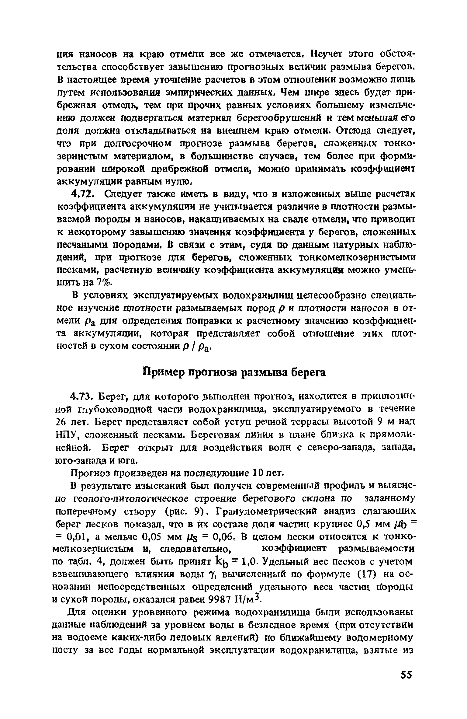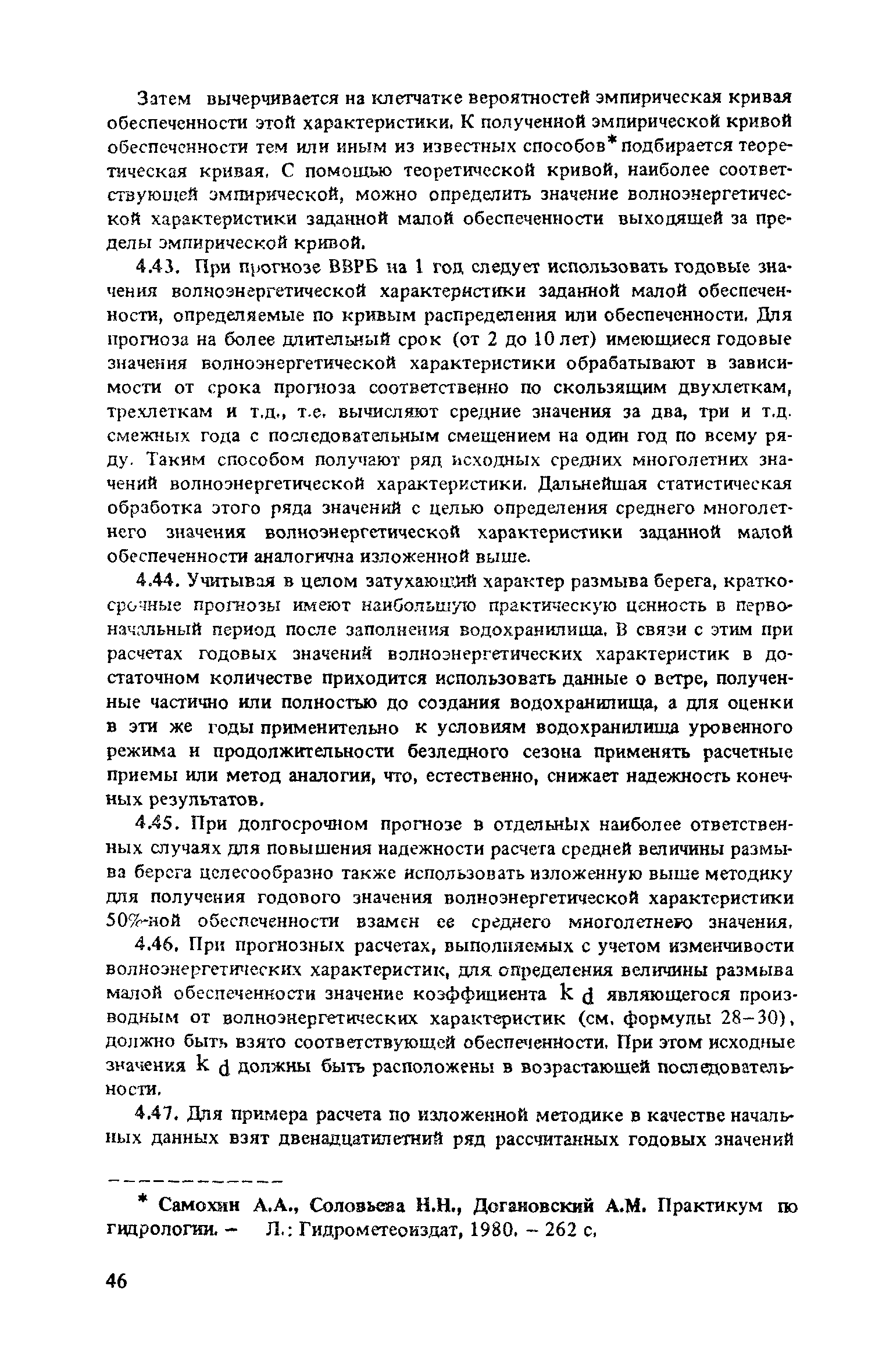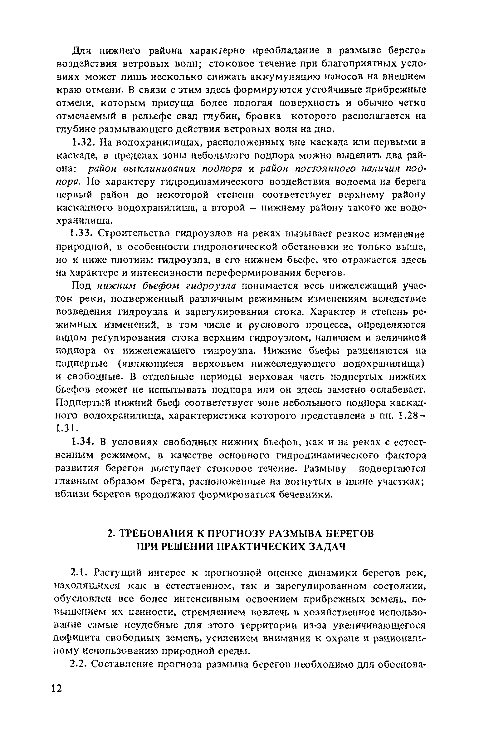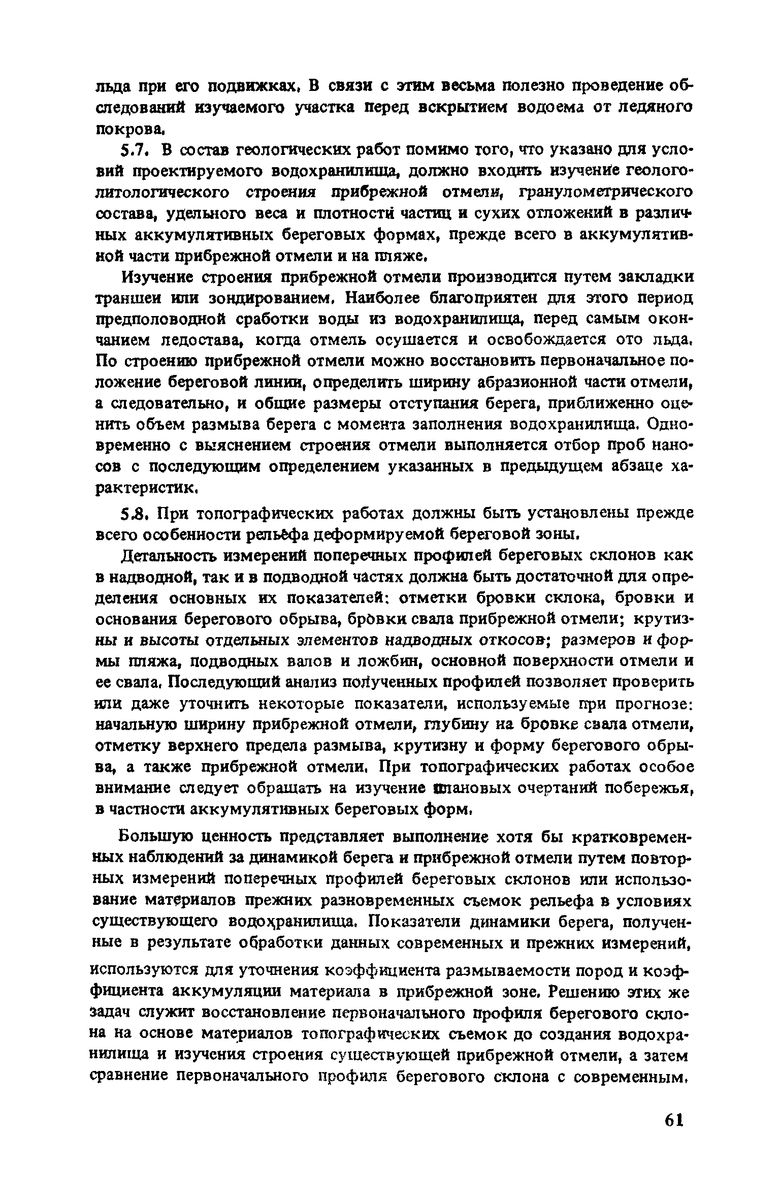 | Оглавление: | Введение 1. Основные закономерности динамики береговой зоны Общие понятия Особенности динамики береговой зоны рек Особенности динамики береговой зоны водохранилищ 2. Требования к прогнозу размыва берегов при решении практических задач 3. Рекомендации по оценке и прогнозу береговых деформаций на свободных реках Общие положения Расчеты береговых деформаций Примеры расчетов 4. Рекомендации по прогнозу размыва берегов водохранилищ Этапы прогноза Учет влияния уровенного режима водохранилища на размыв берегов Расчет волновых и волноэнергетических характеристик Учет изменчивости волноэнергетических характеристик при краткосрочном прогнозе Предложения по прогнозу в период начального заполнения водохранилища Построение прогнозного профиля берега Расчет высоты наката волн Расчет коэффициента аккумуляции Пример прогноза размыва берега 5. Состав и особенности изысканий для получения исходных данных, необходимых при прогнозе размыва берегов Приложение 1. Исходные данные для построения вспомогательных графиков Приложение 2. Результаты опытного определения коэффициента размываемости пород, слагающих берега Волги и Камы |