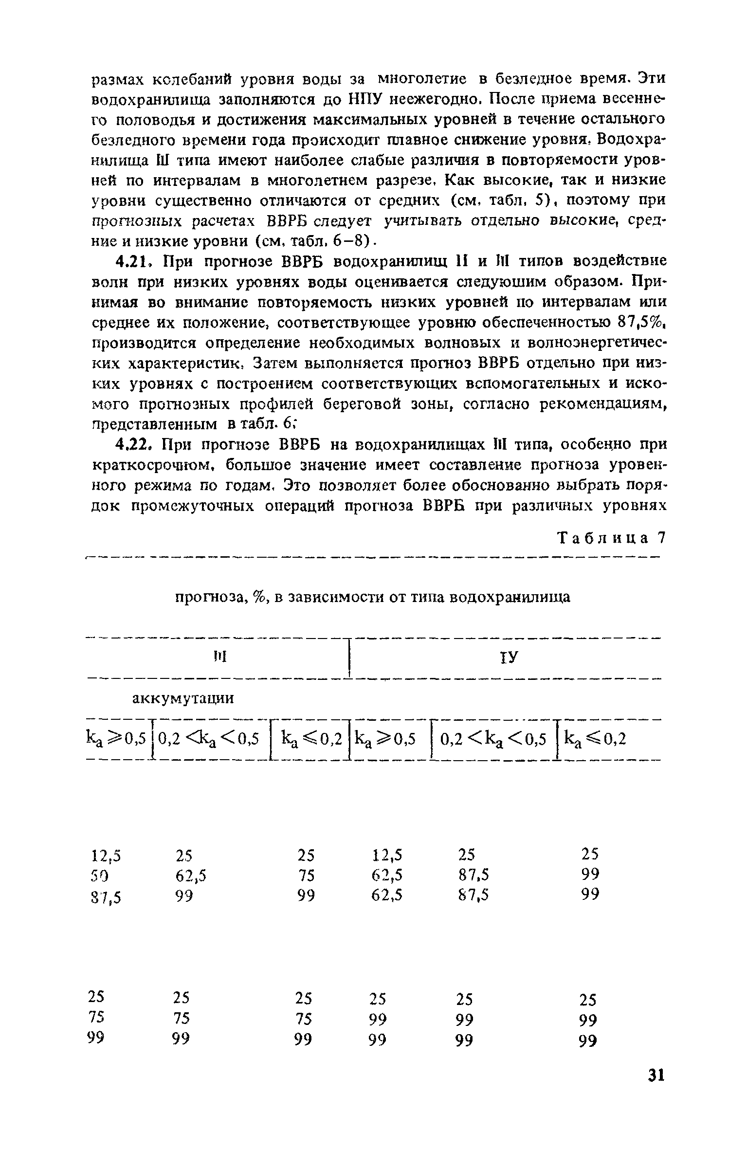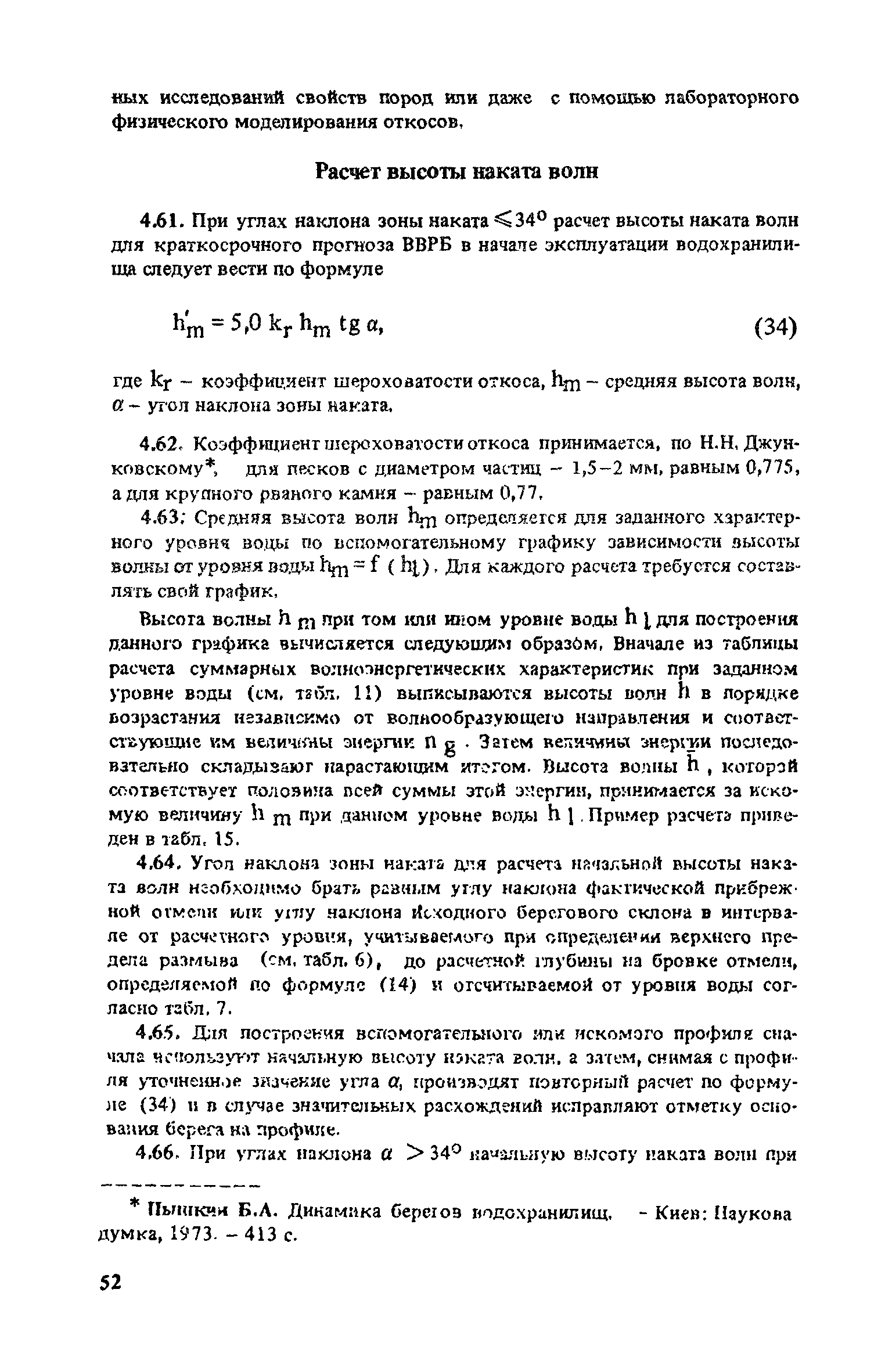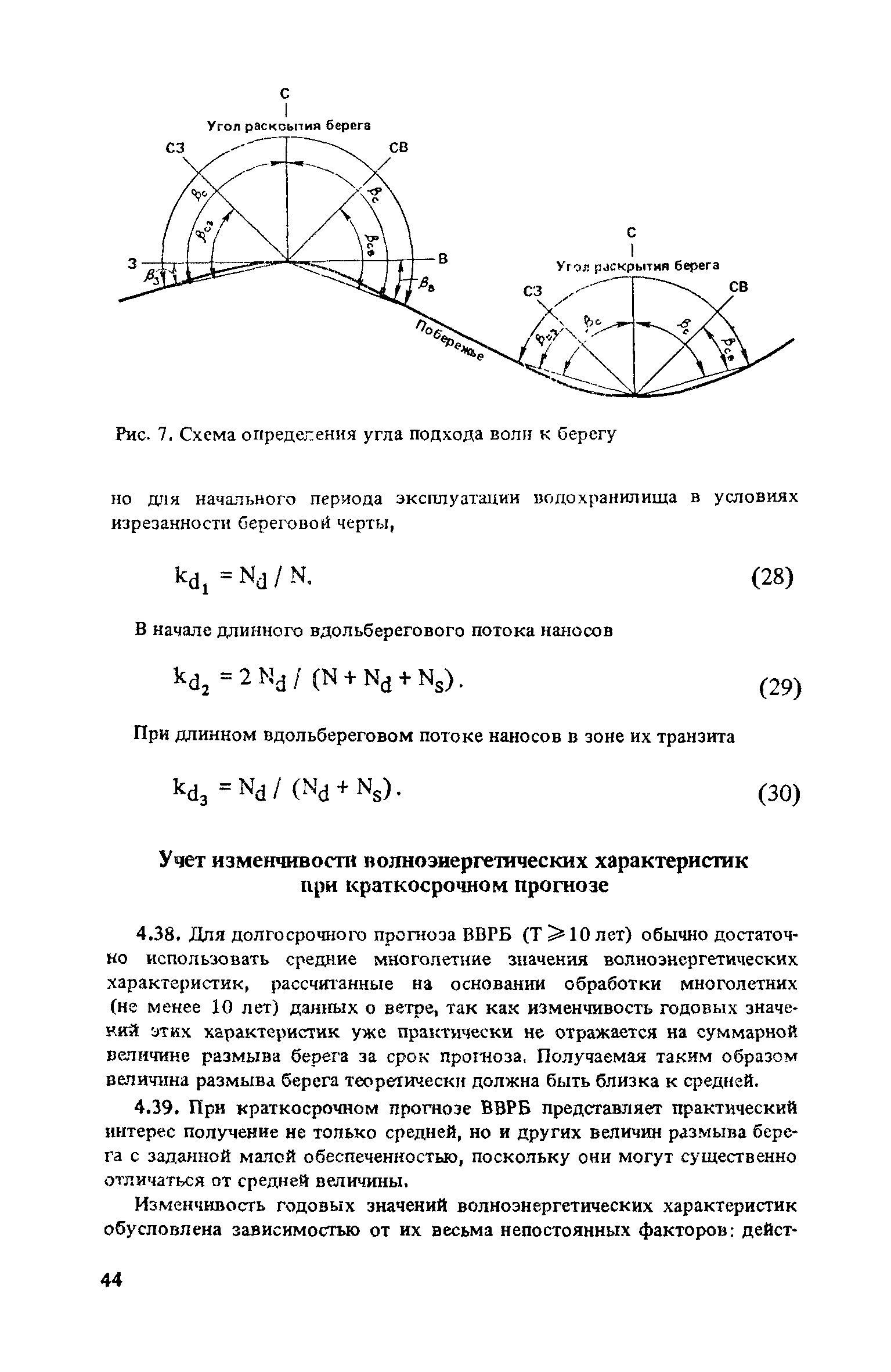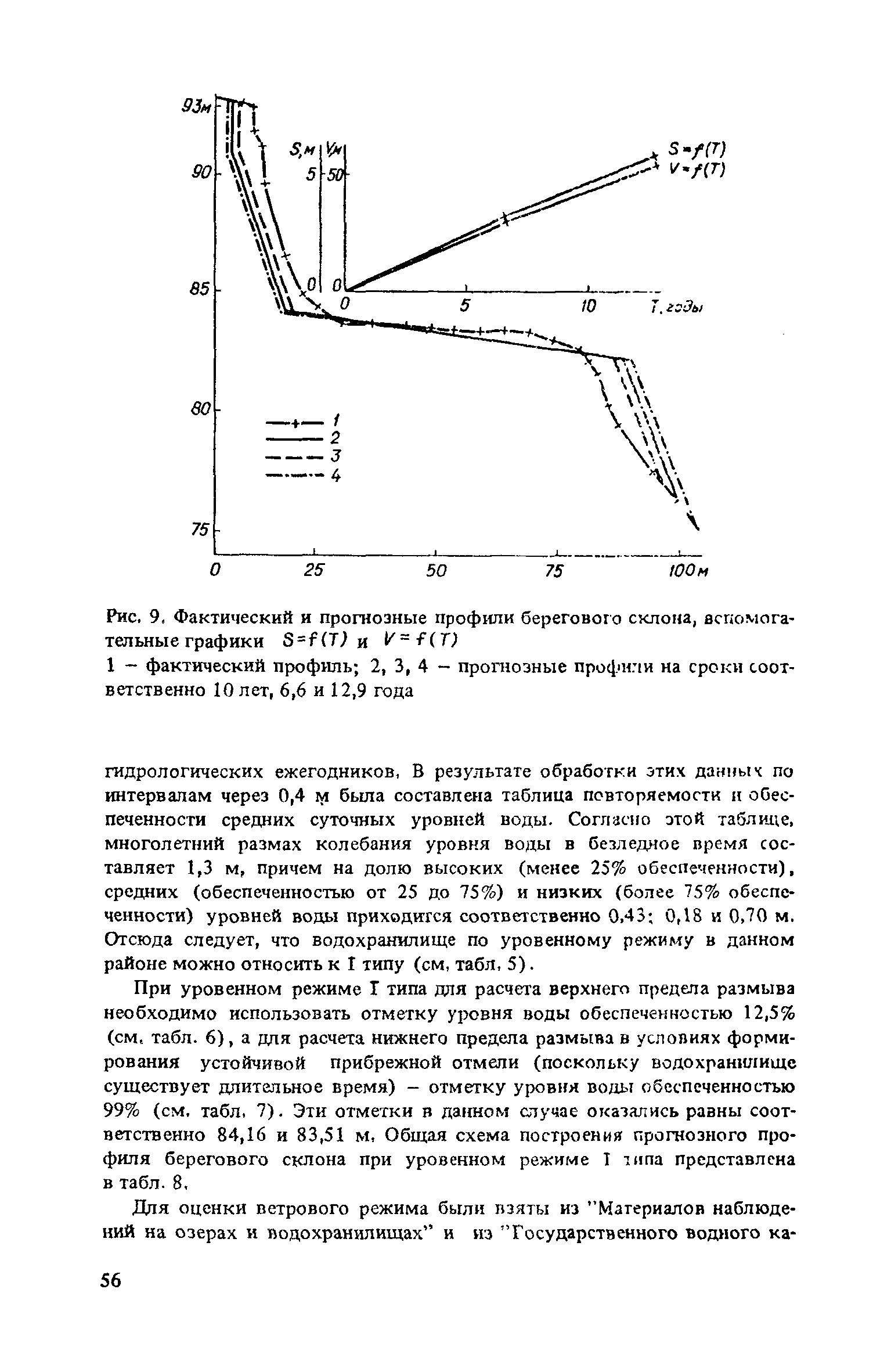 | Оглавление: | Введение 1. Основные закономерности динамики береговой зоны Общие понятия Особенности динамики береговой зоны рек Особенности динамики береговой зоны водохранилищ 2. Требования к прогнозу размыва берегов при решении практических задач 3. Рекомендации по оценке и прогнозу береговых деформаций на свободных реках Общие положения Расчеты береговых деформаций Примеры расчетов 4. Рекомендации по прогнозу размыва берегов водохранилищ Этапы прогноза Учет влияния уровенного режима водохранилища на размыв берегов Расчет волновых и волноэнергетических характеристик Учет изменчивости волноэнергетических характеристик при краткосрочном прогнозе Предложения по прогнозу в период начального заполнения водохранилища Построение прогнозного профиля берега Расчет высоты наката волн Расчет коэффициента аккумуляции Пример прогноза размыва берега 5. Состав и особенности изысканий для получения исходных данных, необходимых при прогнозе размыва берегов Приложение 1. Исходные данные для построения вспомогательных графиков Приложение 2. Результаты опытного определения коэффициента размываемости пород, слагающих берега Волги и Камы |