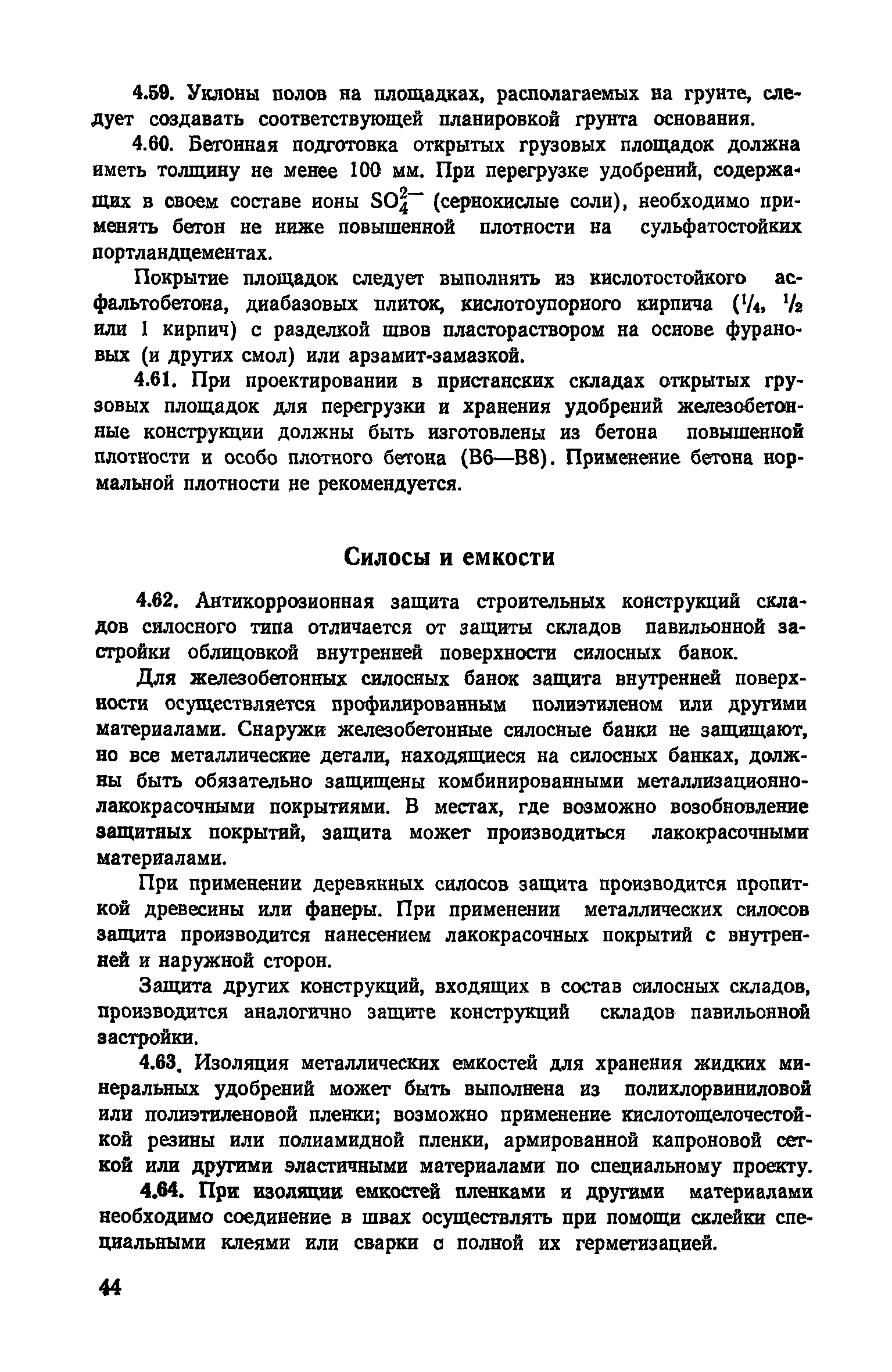 | Область применения: | Документ содержит основные положения по антикоррозионной защите строительных конструкций складов минеральных удобрений и пестицидов. Изложены основные проектные требования, предъявляемые к строительным конструкциям, применяемым в складах минеральных удобрений. Приведена классификация агрессивного воздействия минеральных удобрений на строительные конструкции из различных материалов и даны способы их защиты от коррозии. |