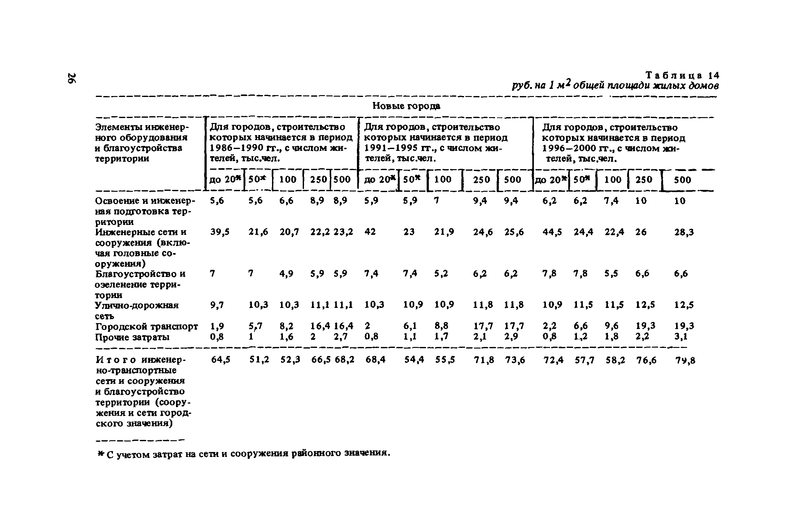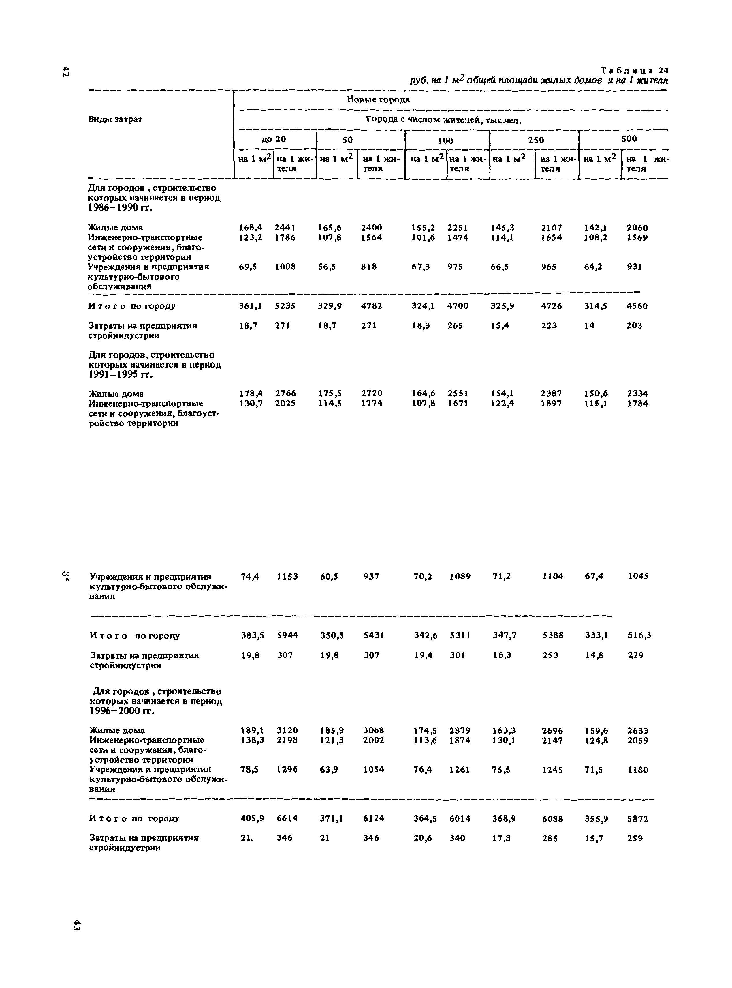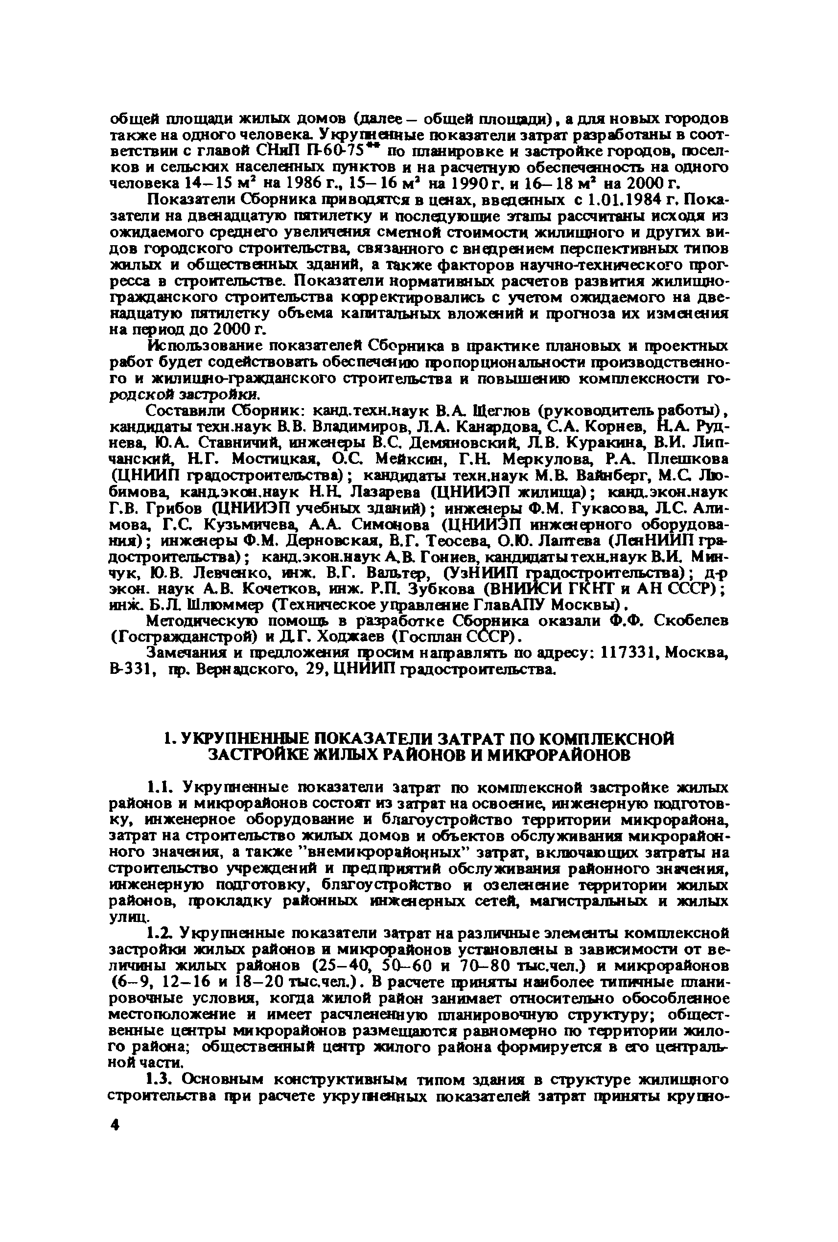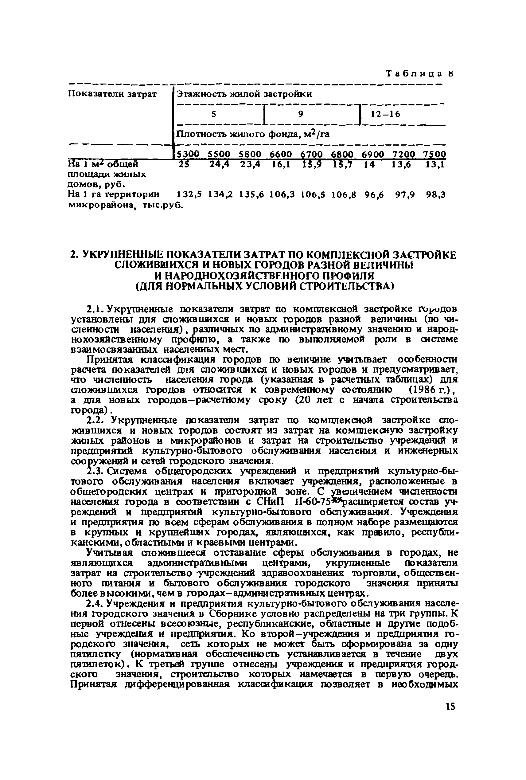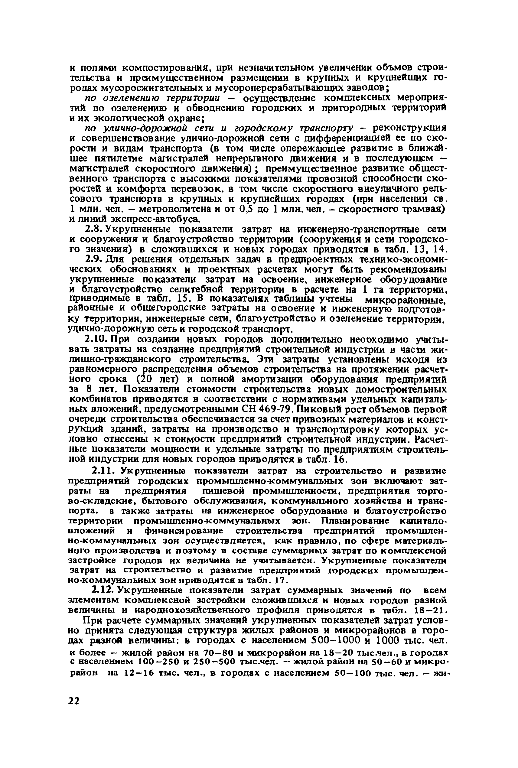 Сборник укрупненных показателей затрат по застройке, инженерному оборудованию, благоустройству и озеленению городов различной величины и народнохозяйственного профиля для всех природно-климатических зон страны| Статус: | отменен в рф | | Название рус.: | Сборник укрупненных показателей затрат по застройке, инженерному оборудованию, благоустройству и озеленению городов различной величины и народнохозяйственного профиля для всех природно-климатических зон страны | | Дата добавления в базу: | 01.09.2013 | | Дата актуализации: | 01.01.2021 | | Дата введения: | 29.04.2020 | | Область применения: | Показатели предназначены для расчета стоимости комплексной застройки микрорайонов, жилых районов и городов различной величины на стадии предплановых разработок, при планировании и составлении схем размещения и развития городов, в проектных работах по составлению схем и проектов районной планировки, проектов планировки и застройки городов и районов, при проектировании промышленных предприятий, а также при экспертных оценках проектных расчетов. | | Оглавление: | Введение 1. Укрупненные показатели затрат по комплексной застройке жилых районов и микрорайонов 2. Укрупненные показатели затрат по комплексной застройке сложившихся и новых городов разной величины и народнохозяйственного профиля (для нормальных условий строительства) 3. Коэффициенты, учитывающие изменение затрат при различных природно-климатических и производственно-строительных условиях 4. Укрупненные показатели затрат по комплексной застройке городов для различных условий строительства на территории СССР Приложение 1. Укрупненные показатели затрат на строительство элементов комплексной застройки городов Приложение 2. Укрупненные показатели затрат на строительство и развитие предприятий городских промышленно-коммунальных зон | | Разработан: | ЦНИИП градостроительства