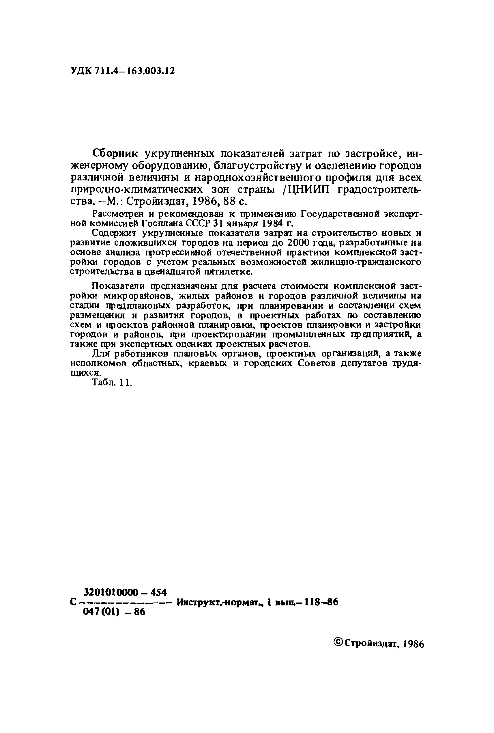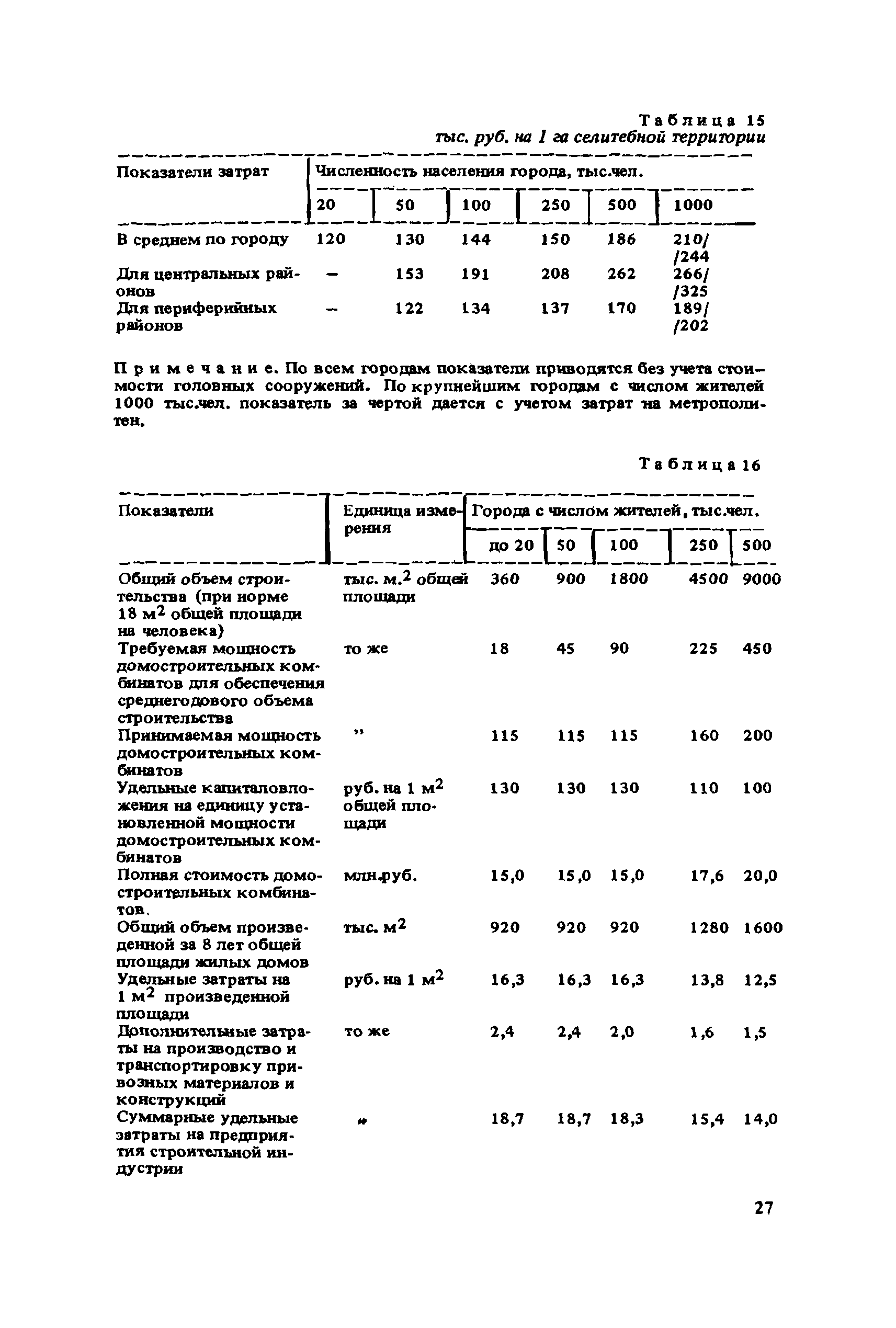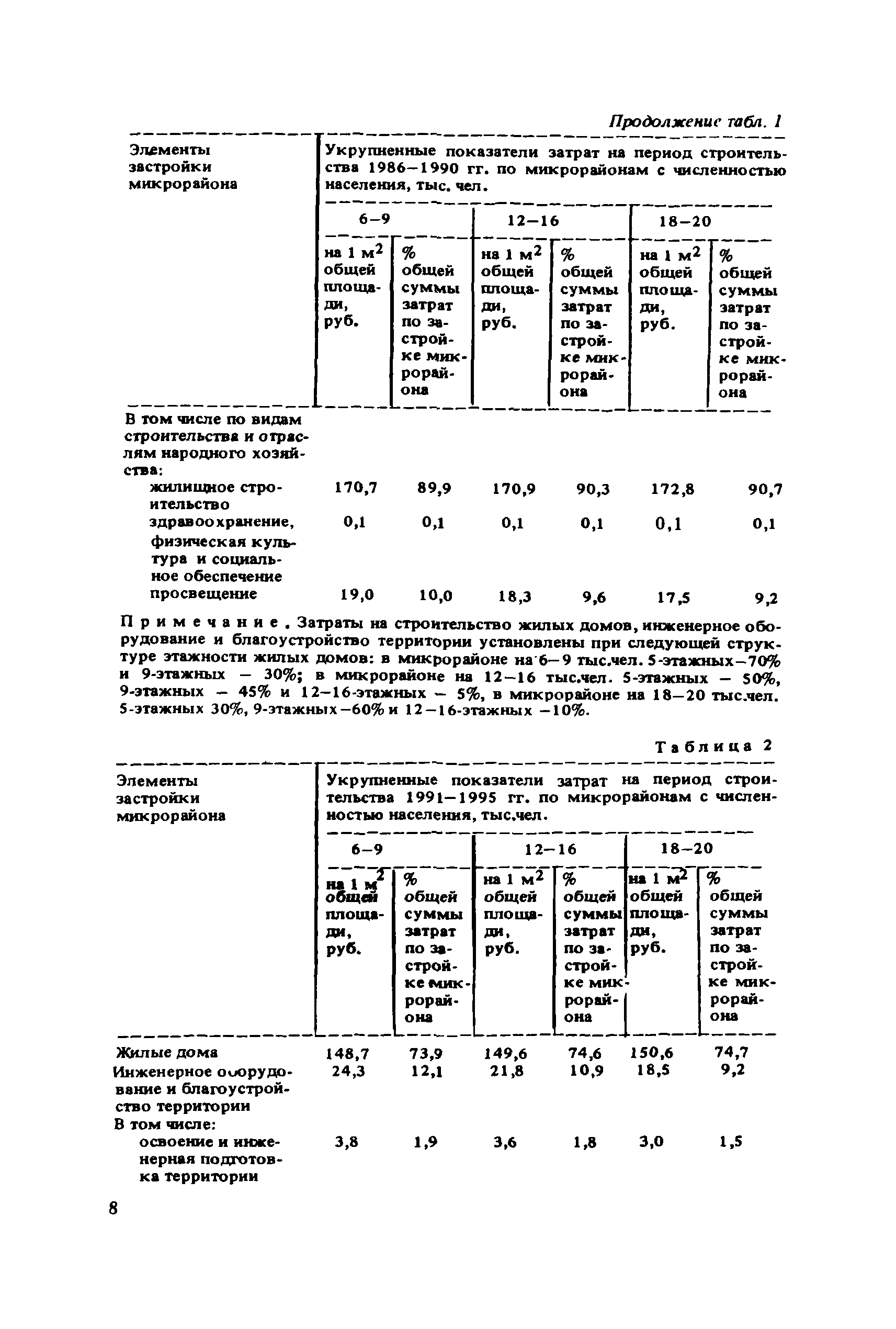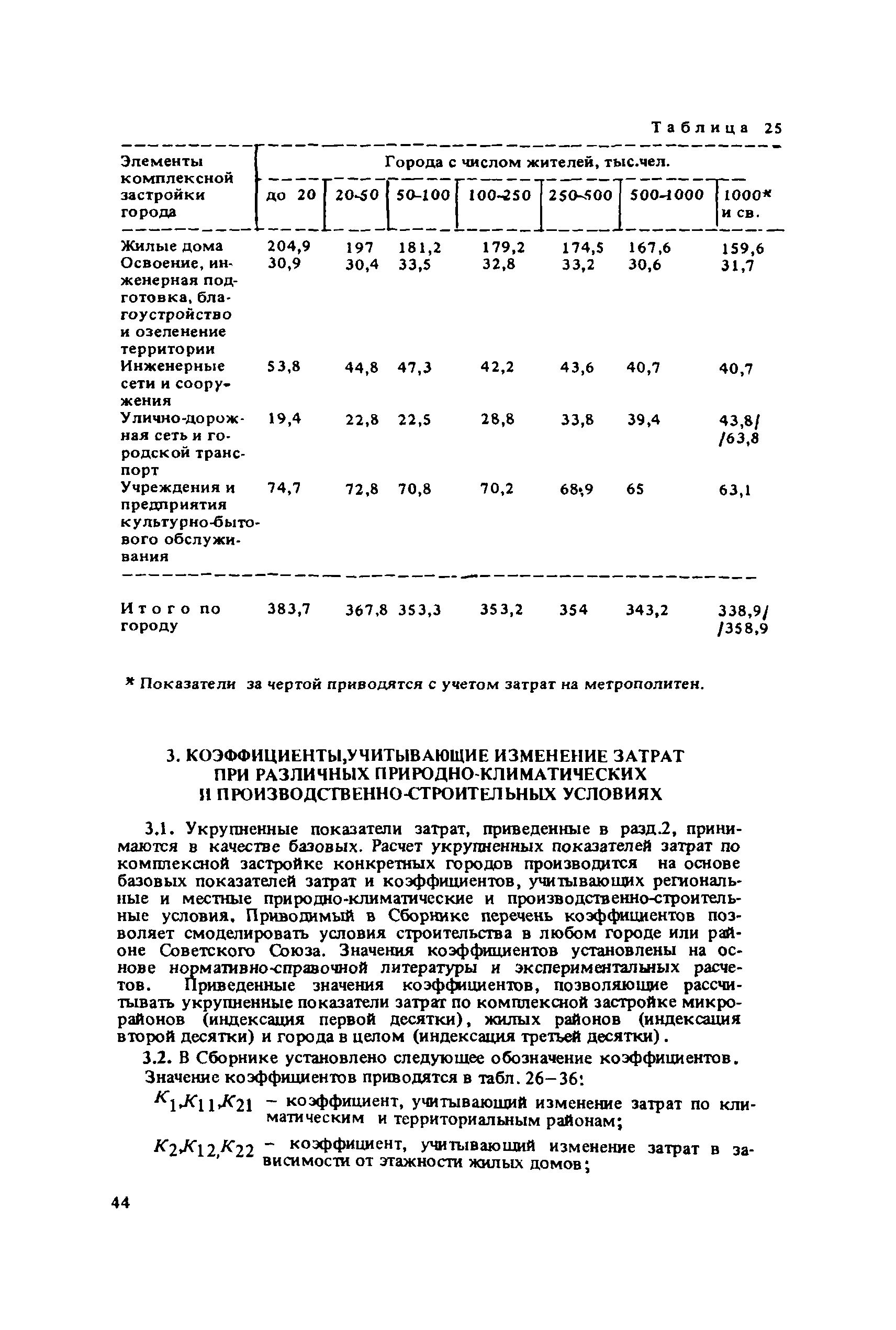 Сборник укрупненных показателей затрат по застройке, инженерному оборудованию, благоустройству и озеленению городов различной величины и народнохозяйственного профиля для всех природно-климатических зон страны| Статус: | отменен в рф | | Название рус.: | Сборник укрупненных показателей затрат по застройке, инженерному оборудованию, благоустройству и озеленению городов различной величины и народнохозяйственного профиля для всех природно-климатических зон страны | | Дата добавления в базу: | 01.09.2013 | | Дата актуализации: | 01.01.2021 | | Дата введения: | 29.04.2020 | | Область применения: | Показатели предназначены для расчета стоимости комплексной застройки микрорайонов, жилых районов и городов различной величины на стадии предплановых разработок, при планировании и составлении схем размещения и развития городов, в проектных работах по составлению схем и проектов районной планировки, проектов планировки и застройки городов и районов, при проектировании промышленных предприятий, а также при экспертных оценках проектных расчетов. | | Оглавление: | Введение 1. Укрупненные показатели затрат по комплексной застройке жилых районов и микрорайонов 2. Укрупненные показатели затрат по комплексной застройке сложившихся и новых городов разной величины и народнохозяйственного профиля (для нормальных условий строительства) 3. Коэффициенты, учитывающие изменение затрат при различных природно-климатических и производственно-строительных условиях 4. Укрупненные показатели затрат по комплексной застройке городов для различных условий строительства на территории СССР Приложение 1. Укрупненные показатели затрат на строительство элементов комплексной застройки городов Приложение 2. Укрупненные показатели затрат на строительство и развитие предприятий городских промышленно-коммунальных зон | | Разработан: | ЦНИИП градостроительства