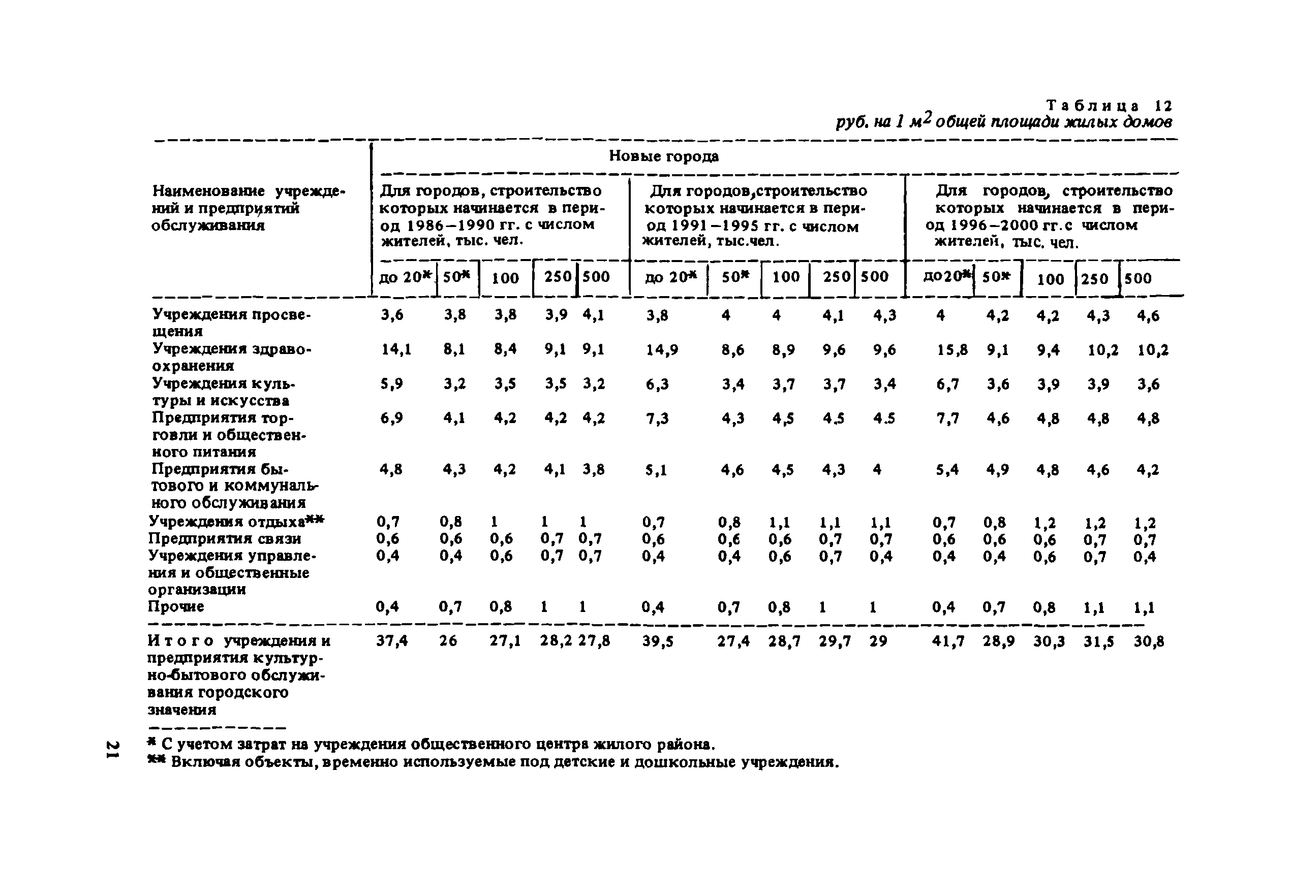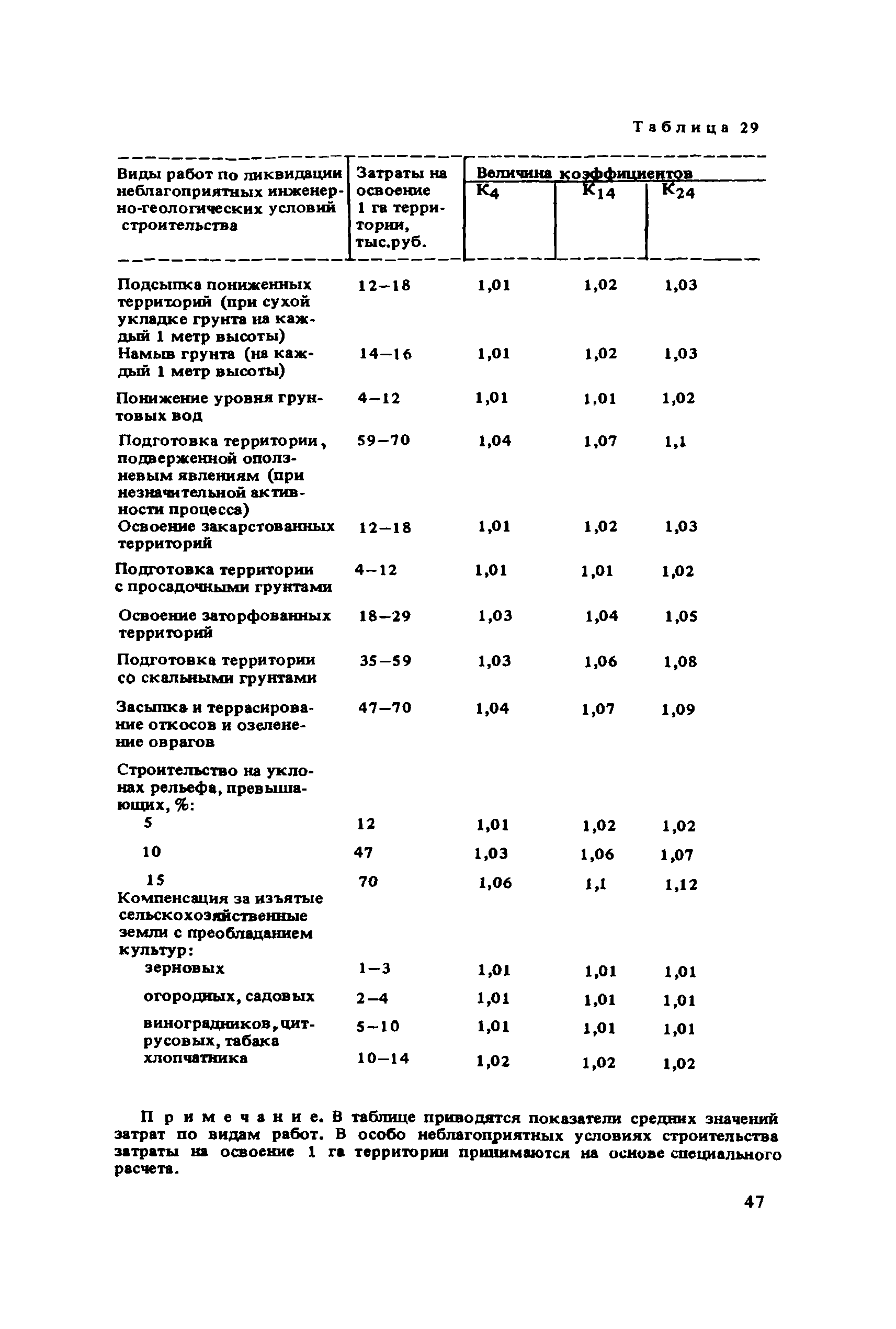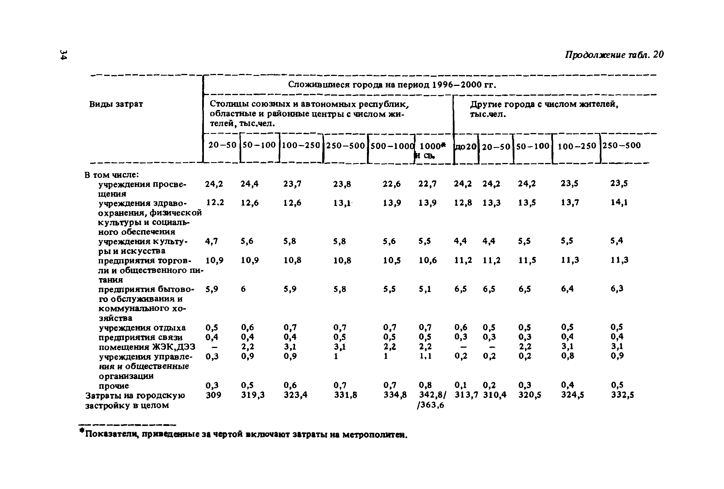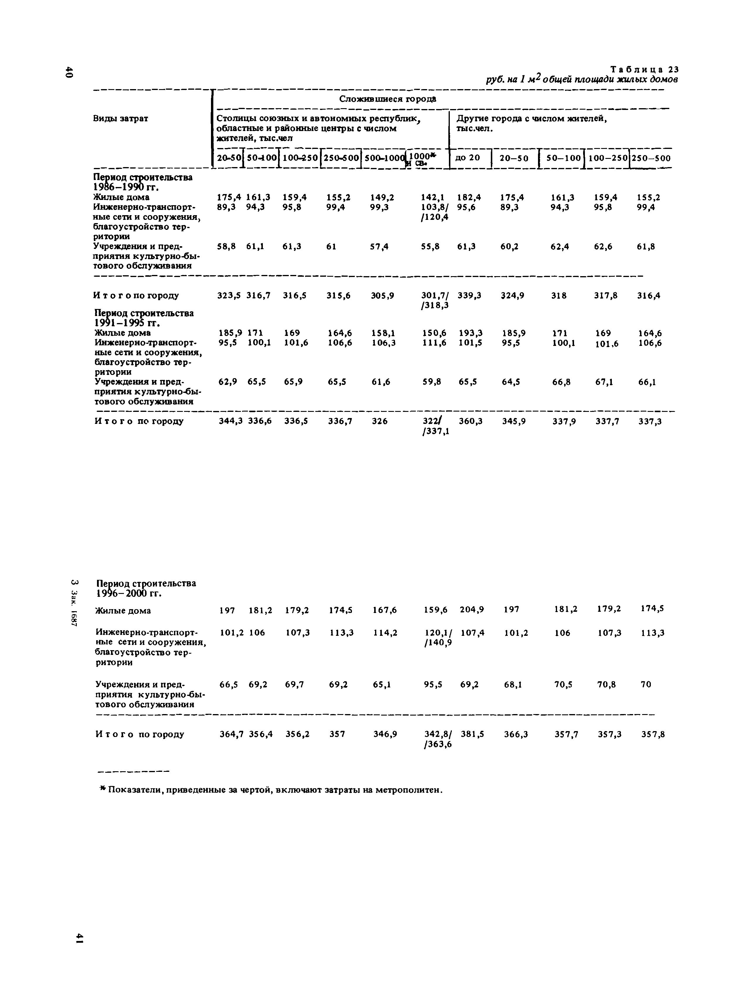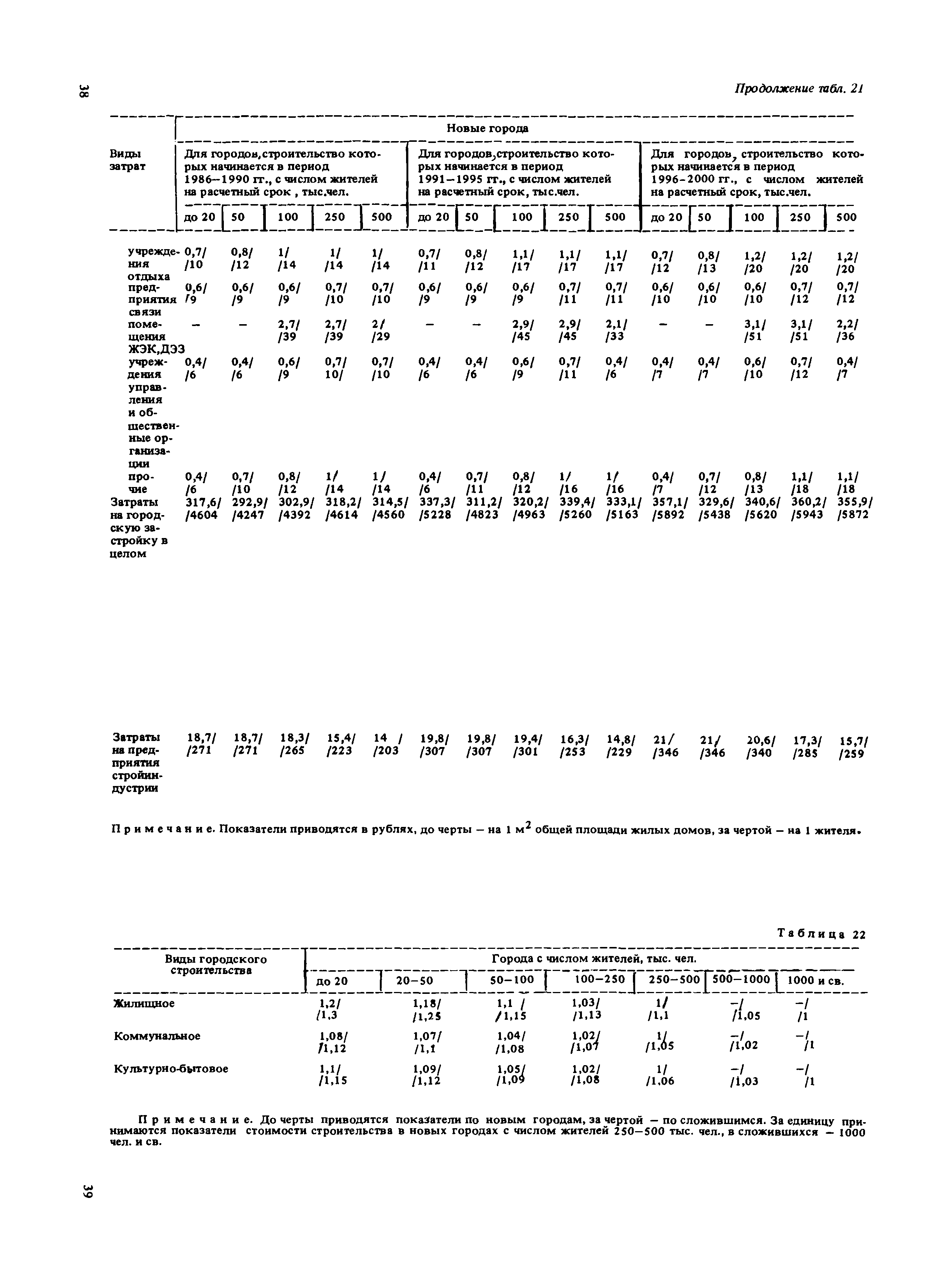 Сборник укрупненных показателей затрат по застройке, инженерному оборудованию, благоустройству и озеленению городов различной величины и народнохозяйственного профиля для всех природно-климатических зон страны| Статус: | отменен в рф | | Название рус.: | Сборник укрупненных показателей затрат по застройке, инженерному оборудованию, благоустройству и озеленению городов различной величины и народнохозяйственного профиля для всех природно-климатических зон страны | | Дата добавления в базу: | 01.09.2013 | | Дата актуализации: | 01.01.2021 | | Дата введения: | 29.04.2020 | | Область применения: | Показатели предназначены для расчета стоимости комплексной застройки микрорайонов, жилых районов и городов различной величины на стадии предплановых разработок, при планировании и составлении схем размещения и развития городов, в проектных работах по составлению схем и проектов районной планировки, проектов планировки и застройки городов и районов, при проектировании промышленных предприятий, а также при экспертных оценках проектных расчетов. | | Оглавление: | Введение 1. Укрупненные показатели затрат по комплексной застройке жилых районов и микрорайонов 2. Укрупненные показатели затрат по комплексной застройке сложившихся и новых городов разной величины и народнохозяйственного профиля (для нормальных условий строительства) 3. Коэффициенты, учитывающие изменение затрат при различных природно-климатических и производственно-строительных условиях 4. Укрупненные показатели затрат по комплексной застройке городов для различных условий строительства на территории СССР Приложение 1. Укрупненные показатели затрат на строительство элементов комплексной застройки городов Приложение 2. Укрупненные показатели затрат на строительство и развитие предприятий городских промышленно-коммунальных зон | | Разработан: | ЦНИИП градостроительства