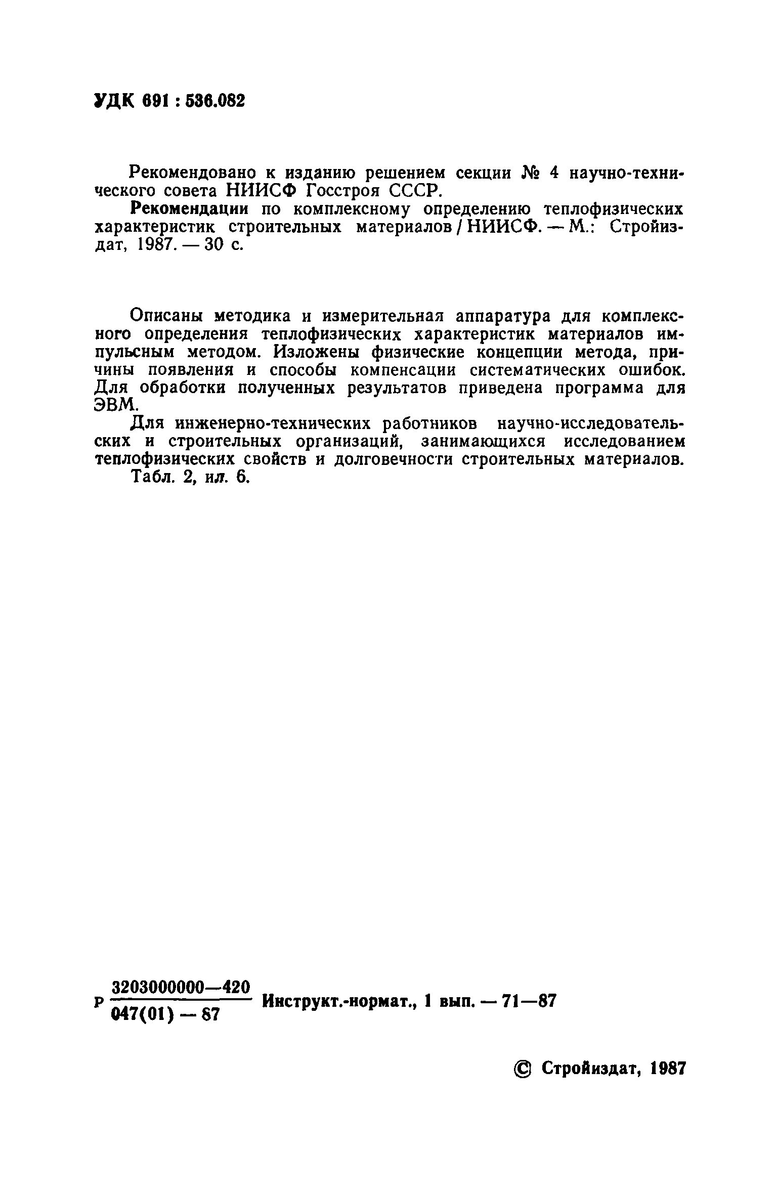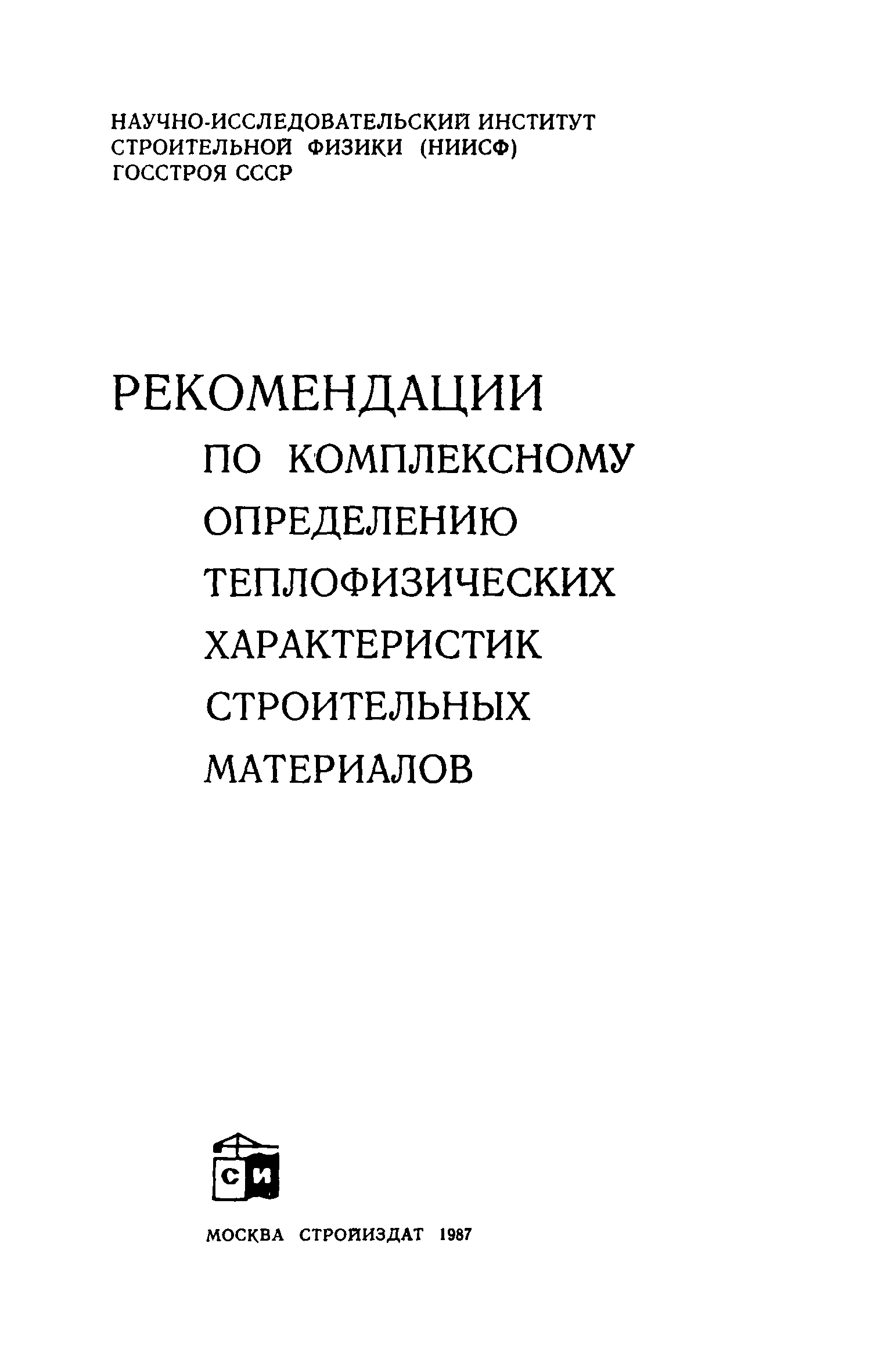 | Название рус.: | Рекомендации по комплексному определению теплофизических характеристик строительных материалов |