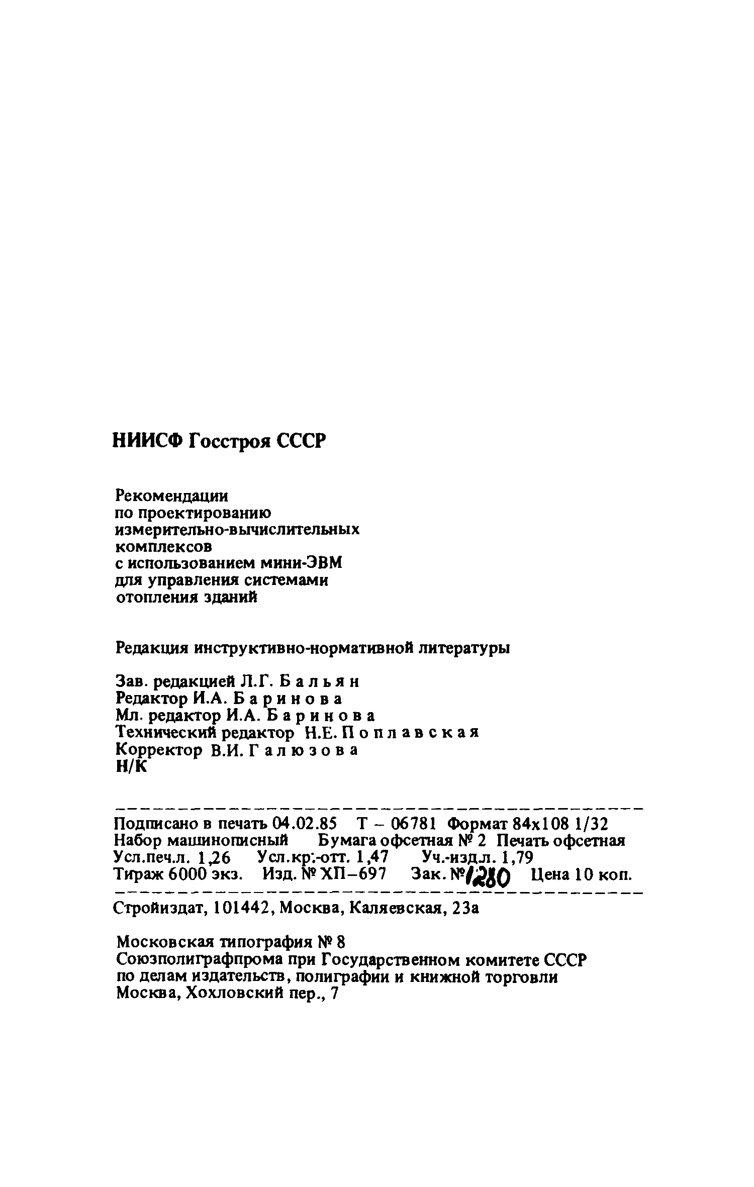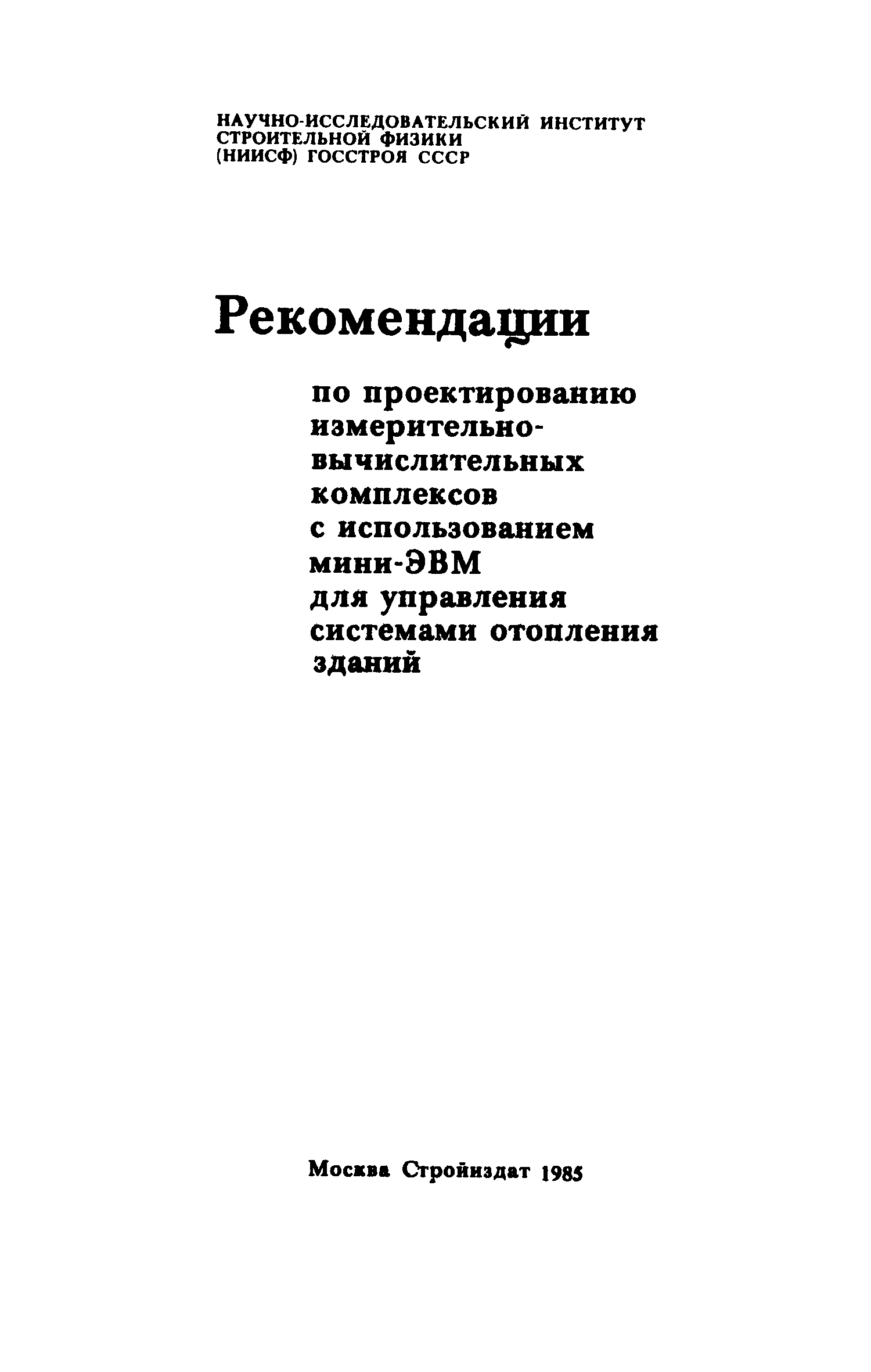 | Название рус.: | Рекомендации по проектированию измерительно-вычислительных комплексов с использованием мини-ЭВМ для управления системами отопления зданий |