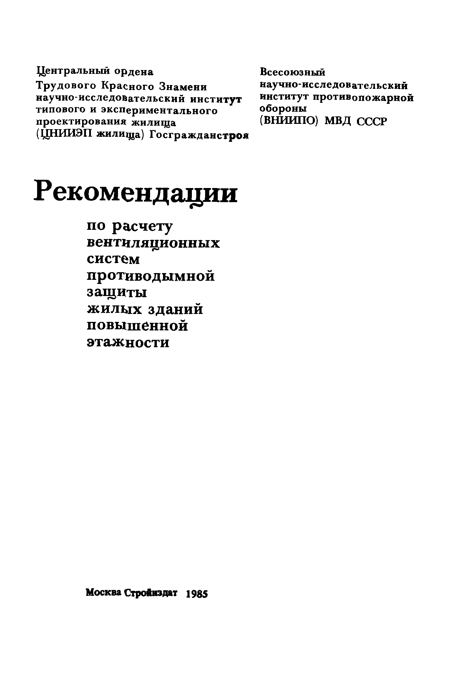 | Название рус.: | Рекомендации по расчету вентиляционных систем противодымной защиты жилых зданий повышенной этажности |