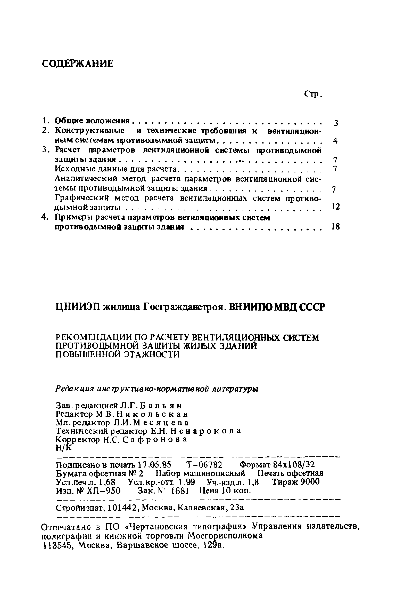 | Оглавление: | 1. Общие положения 2. Конструктивные и технические требования к вентиляционным системам противодымной защиты 3. Расчет параметров вентиляционной системы противодымной защиты здания Исходные данные для расчета Аналитический метод расчета параметров вентиляционной системы противодымной защиты здания Графический метод расчета вентиляционных систем противодымной защиты 4. Примеры расчета параметров вентиляционных систем противодымной защиты здания |