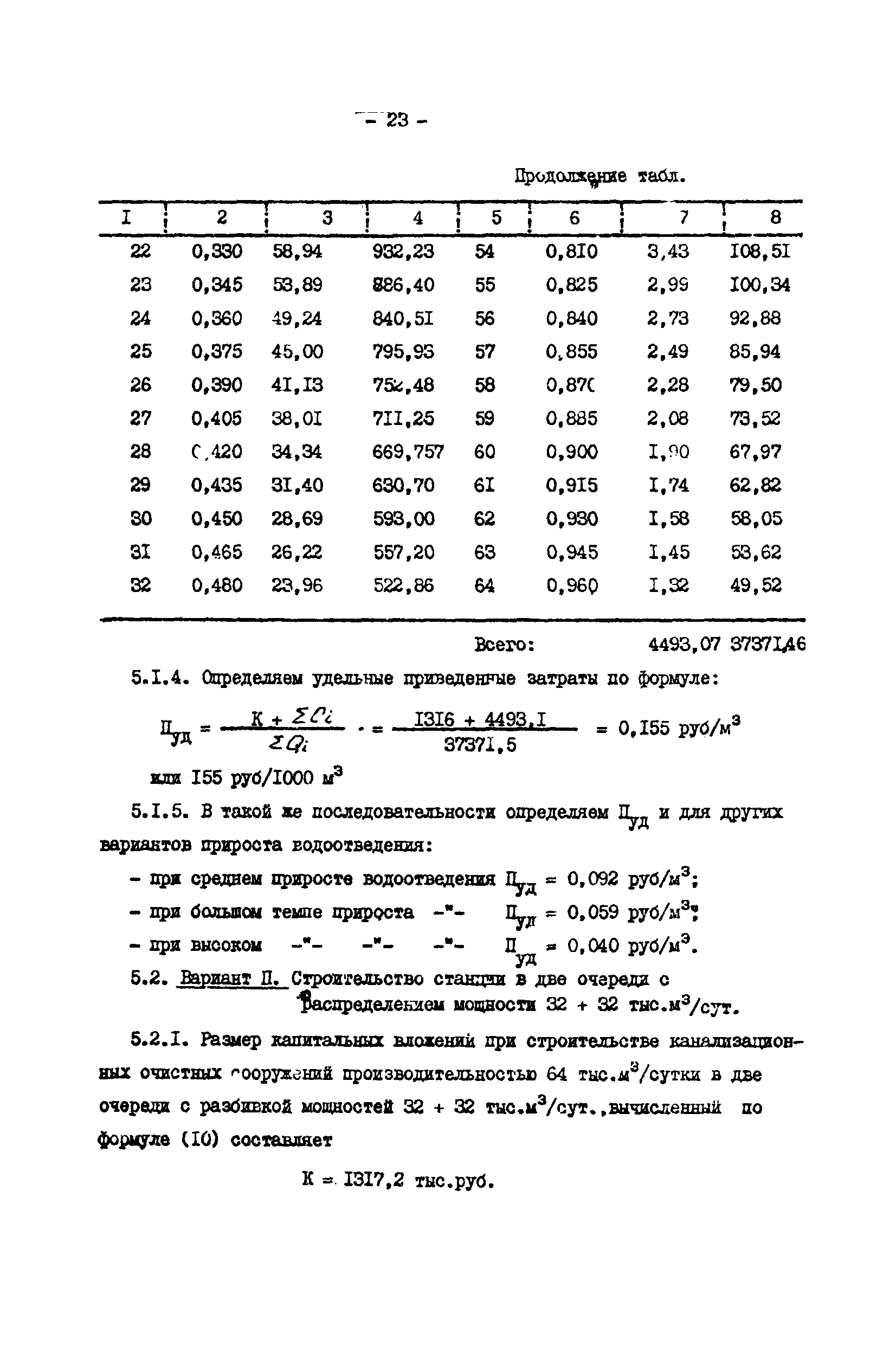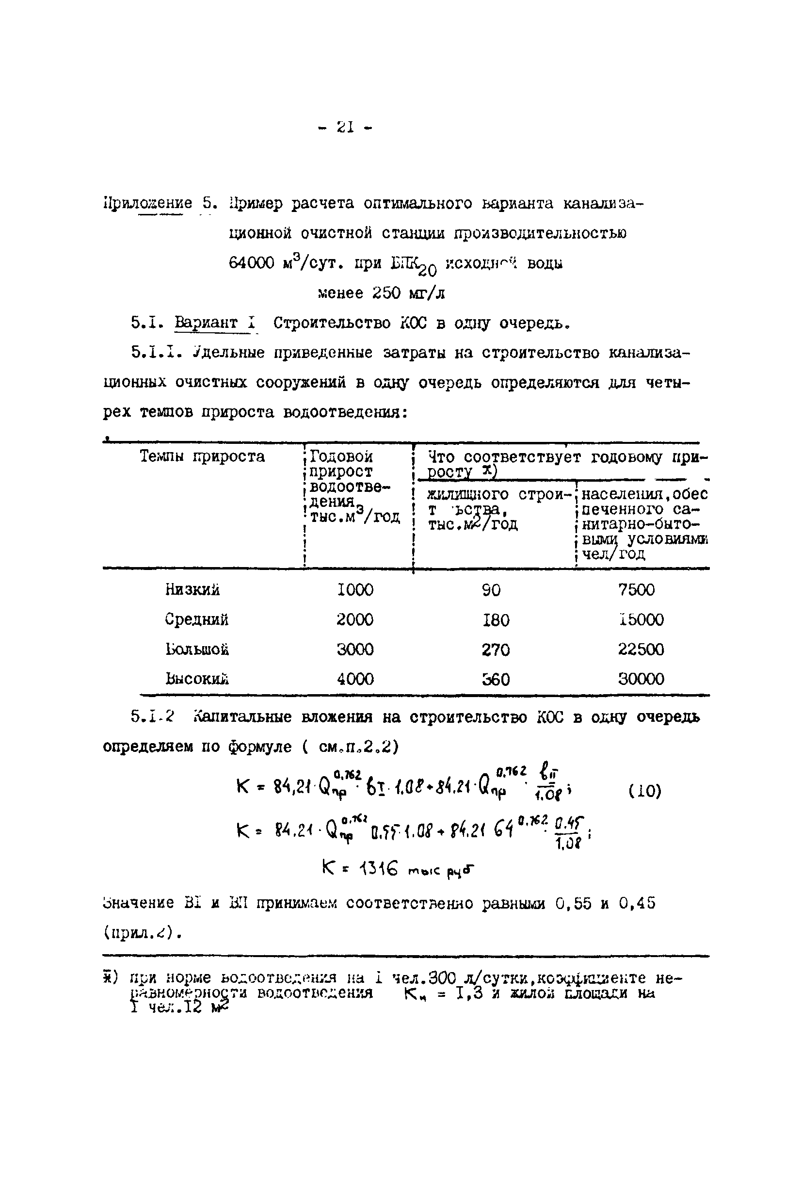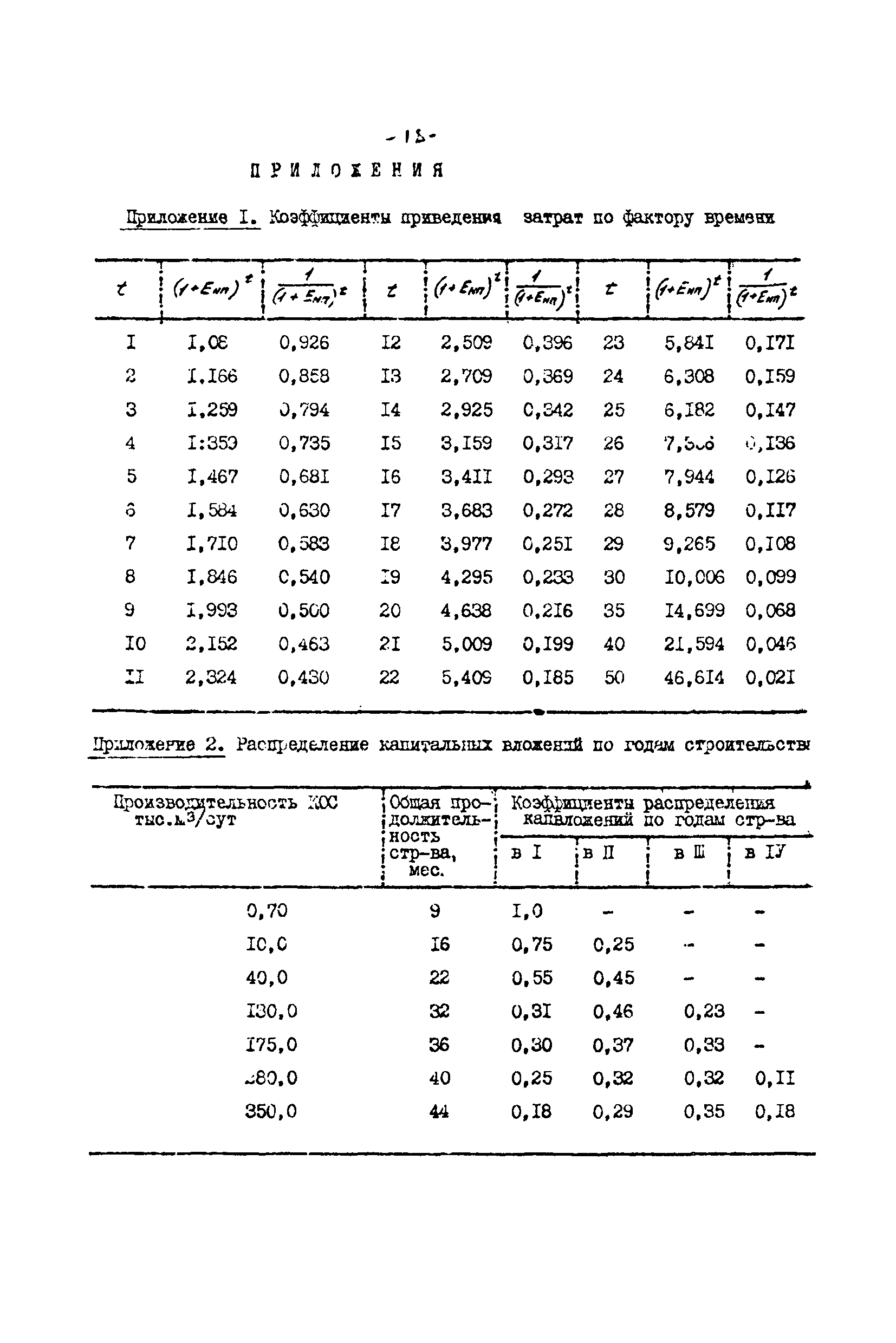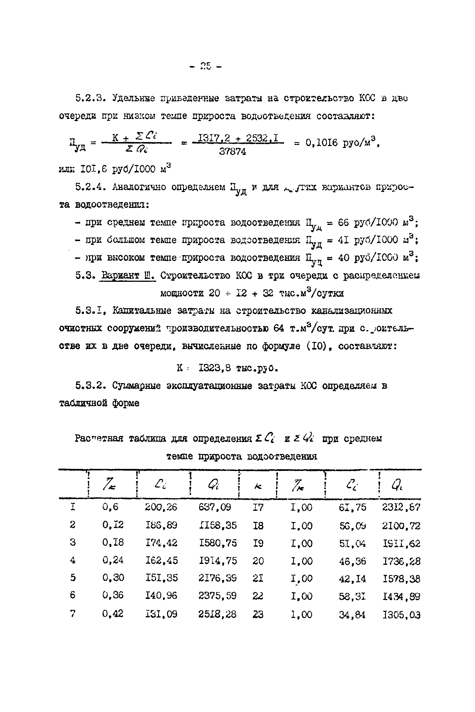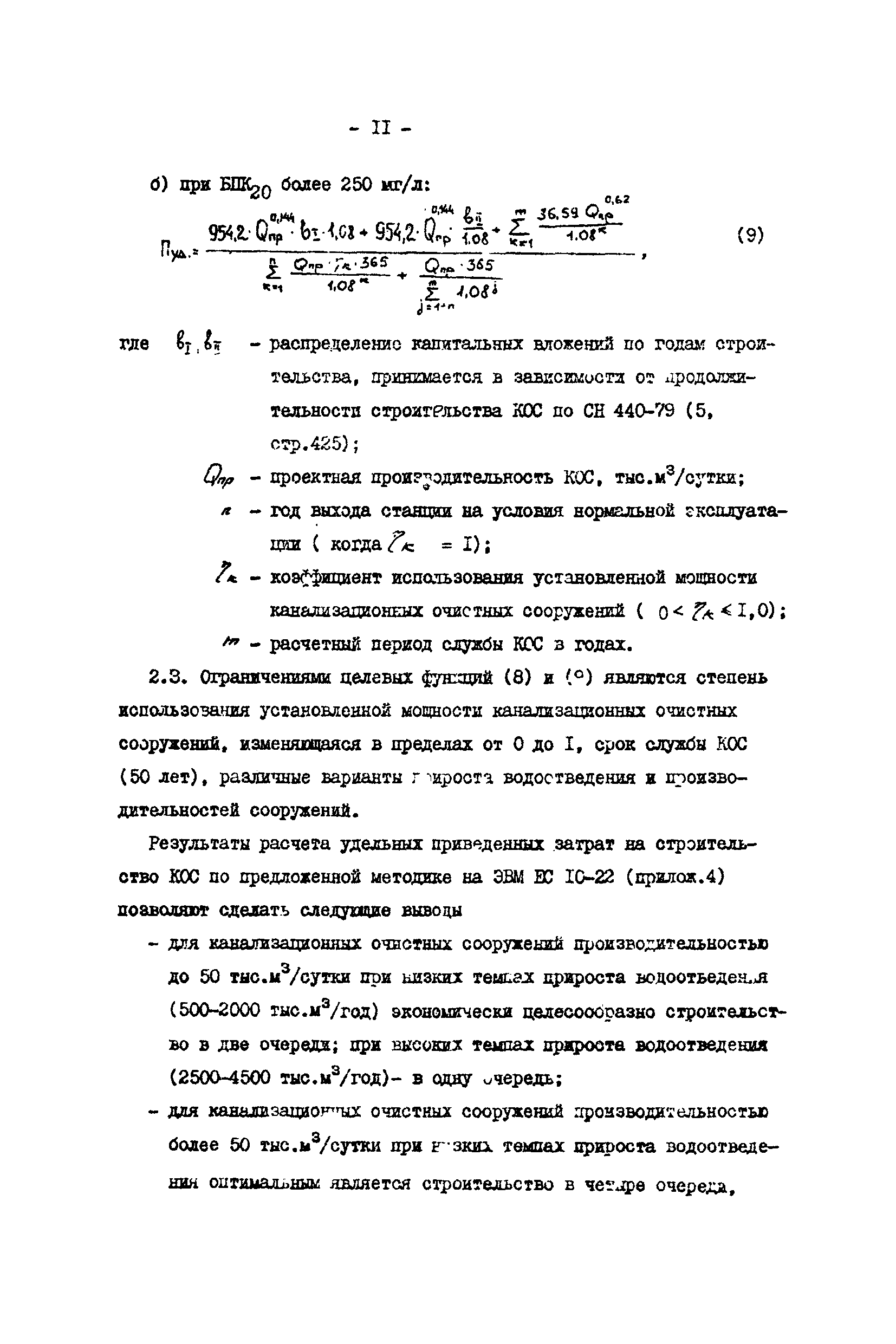 | Оглавление: | Введение 1. Общие положения 2. Определение оптимального количества очередей строительства канализационных очистных сооружений 3. Литература Приложение 1. Коэффициенты приведения затрат по фактору времени Приложения 2. Распределение капитальных вложений по годам строительства Приложение 3. Блок-схема определения удельных приведенных затрат на строительство КОС Приложение 4. Зависимость Пуд от прироста водоотведения и количества очередей строительства канализационных очистных сооружений Приложение 5. Пример расчета оптимального варианта канализационной очистной станции производительности 64 тыс.м3/сут. при БПК20 исходной воды менее 250 мг/л |