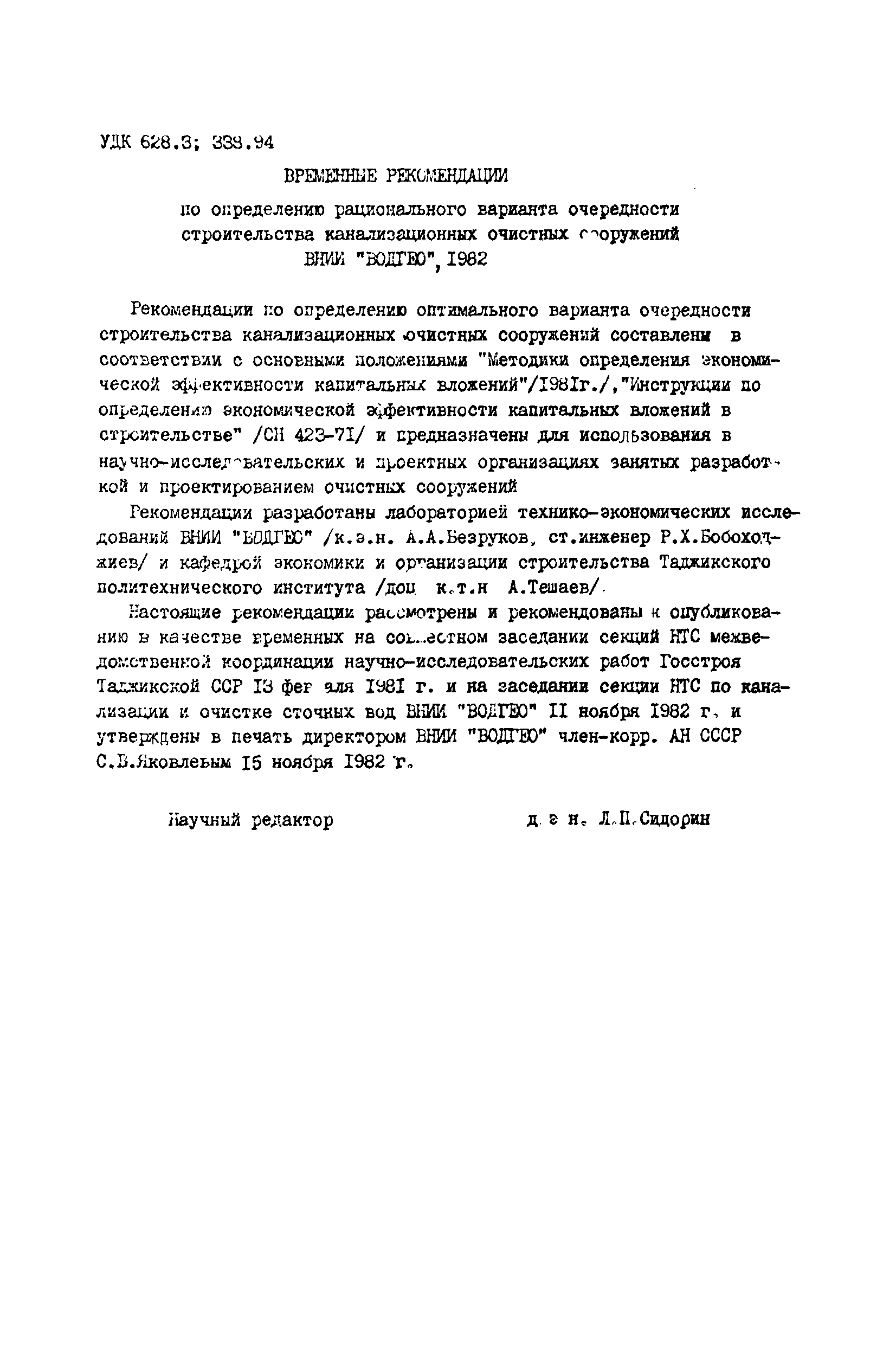 | Утверждён: | 15.11.1982 ВНИИ ВОДГЕО (VODGEO VNII ) |