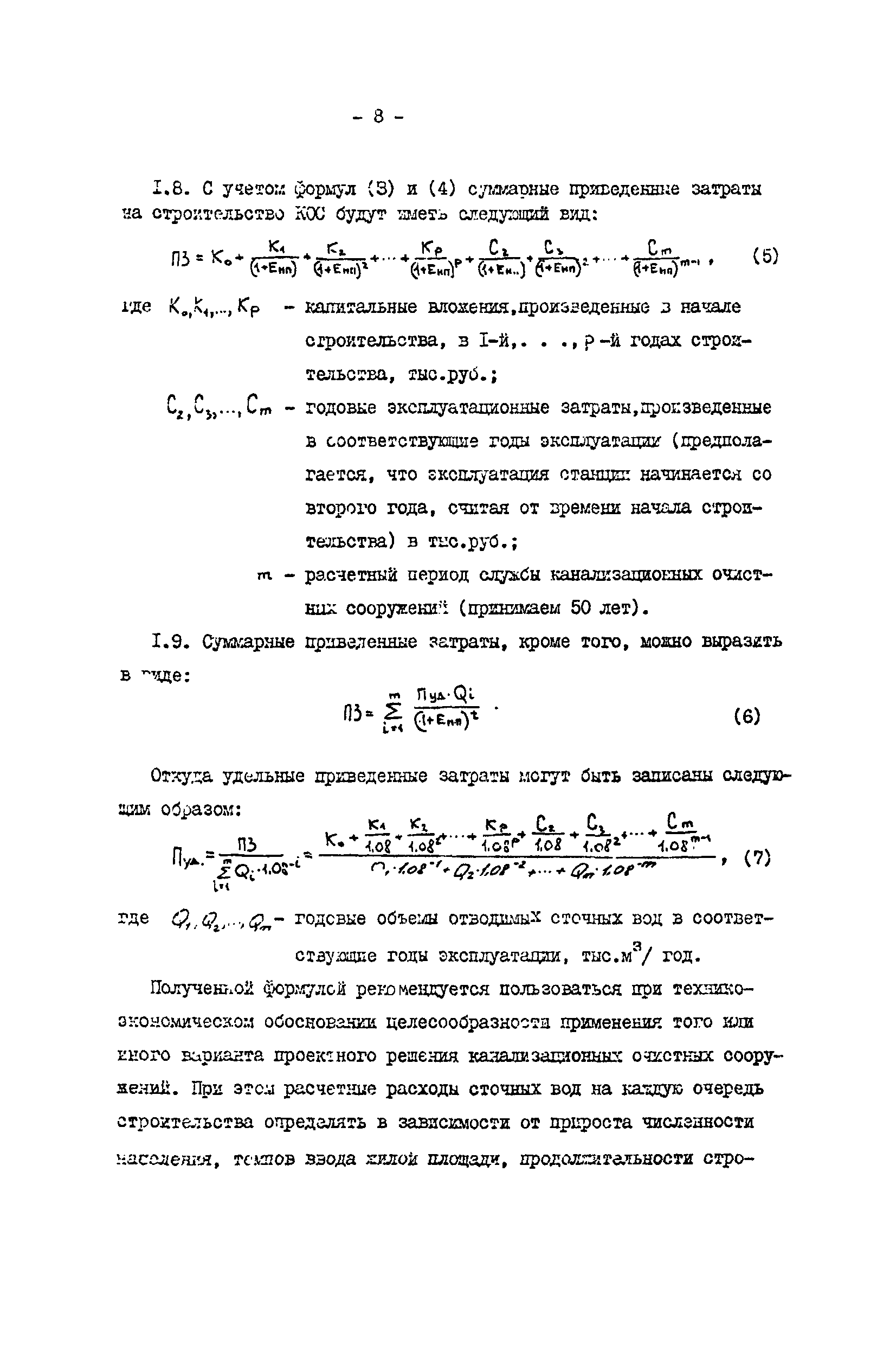 | Область применения: | В документе приведены формулы определения капитальных вложений и эксплуатационных затрат в зависимости от проектной производительности очистных сооружений, предложены экономико-математические модели и графики для определения укрупненных показателей удельных приведенных затрат на строительство их по очередям, дан пример расчета. |