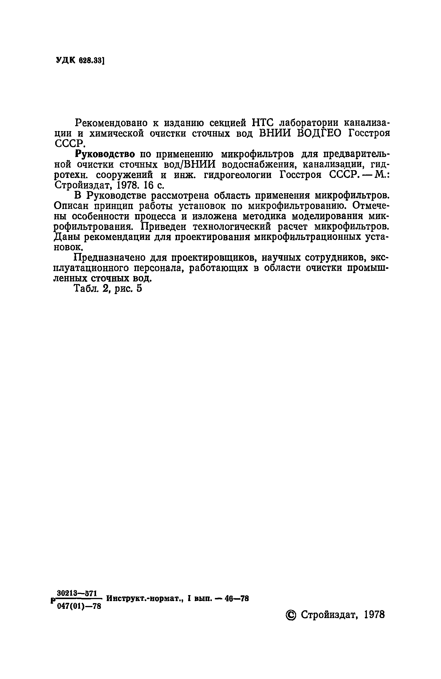 | Название рус.: | Руководство по применению микрофильтров для предварительной очистки сточных вод |