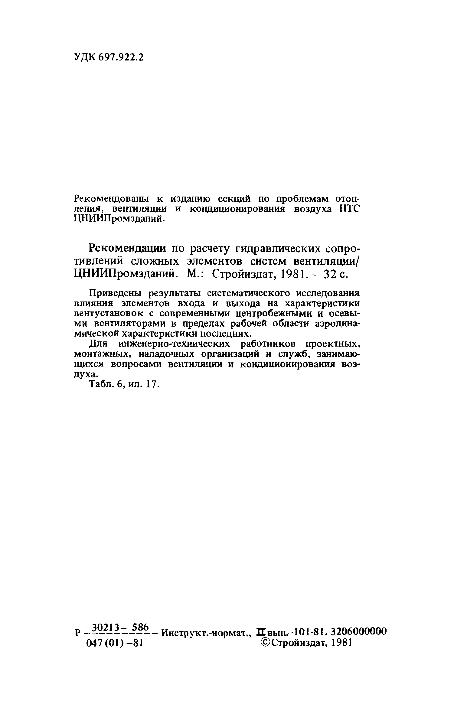 | Название рус.: | Рекомендации по расчету гидравлических сопротивлений сложных элементов систем вентиляции |