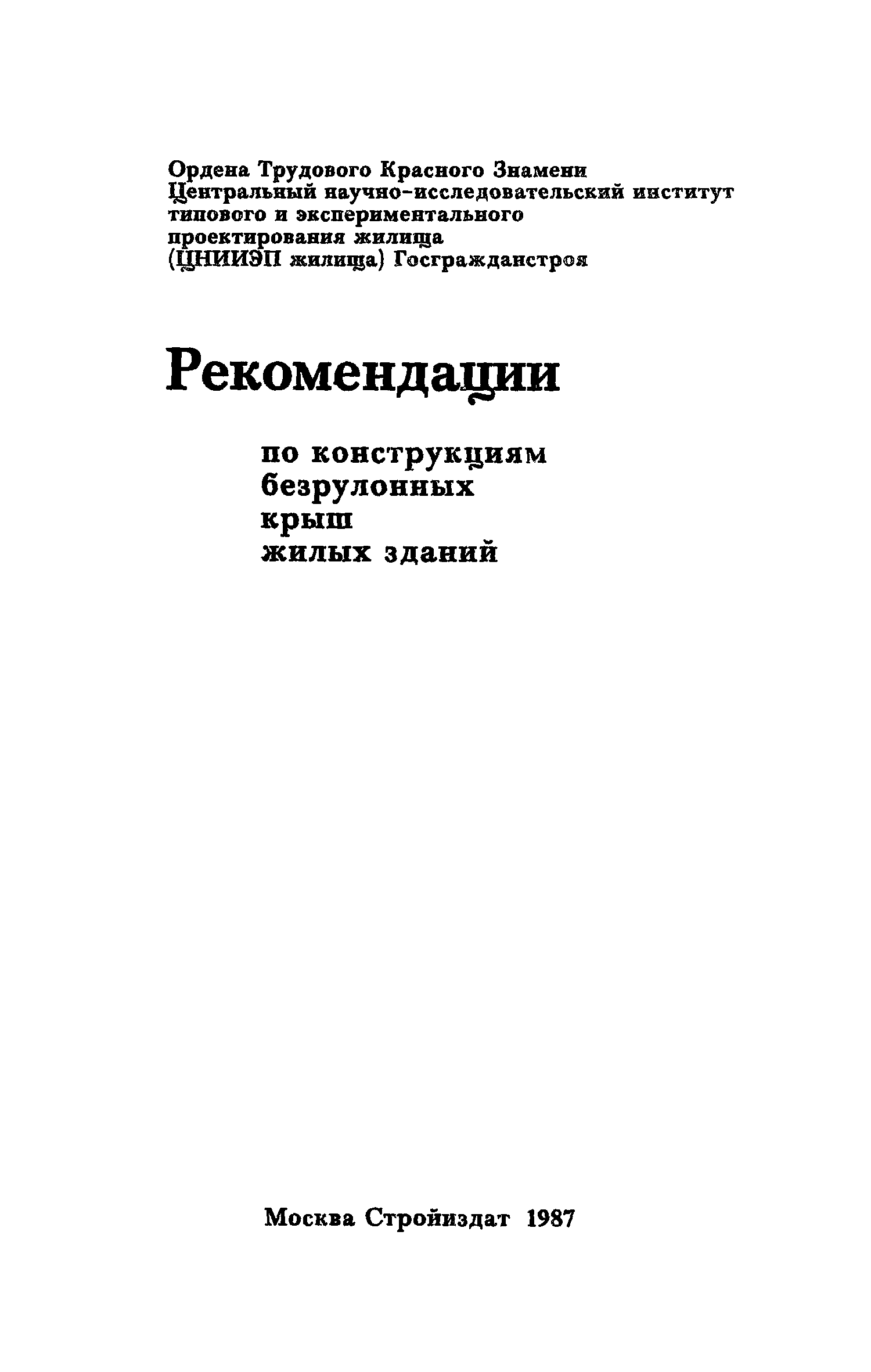 Рекомендации по конструкциям безрулонных крыш жилых зданий| Статус: | действует | | Название рус.: | Рекомендации по конструкциям безрулонных крыш жилых зданий | | Дата добавления в базу: | 01.09.2013 | | Дата актуализации: | 01.01.2021 | | Область применения: | Документ содержит общие указания по конструкциям и изготовлению безрулонных элементов крыш, способам связи отдельных элементов между собой, рекомендации по обеспечению эксплуатационных качеств, критерии обеспечения теплофизических условий. | | Оглавление: | Предисловие 1. Основные положения 2. Конструкции Общие положения Строительные материалы Основные решения Элементы связи Технология и обеспечение качества 3. Строительная теплофизика Теплоизоляция Вентиляция чердака 4. Эксплуатация и содержание | | Разработан: | ЦНИИЭП жилища