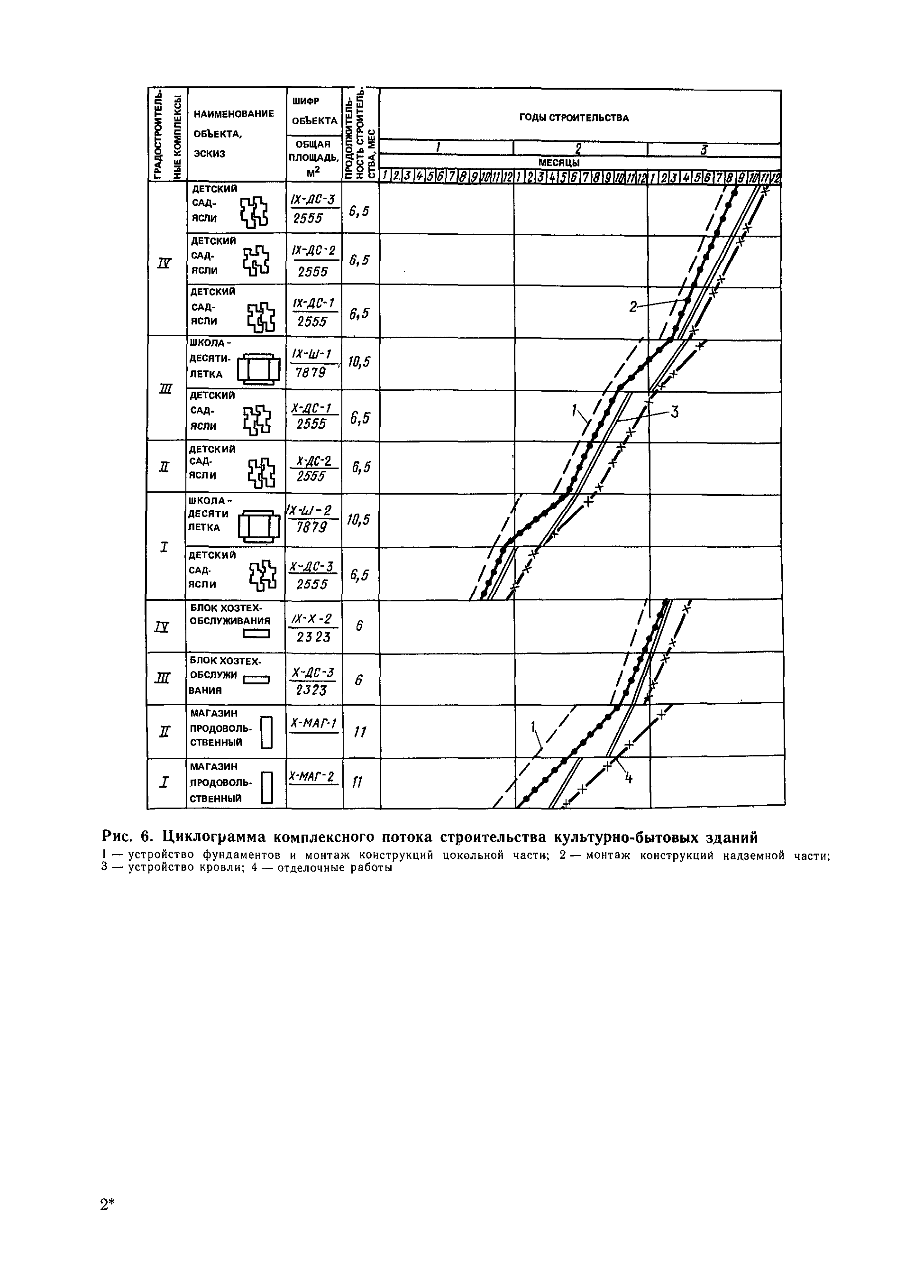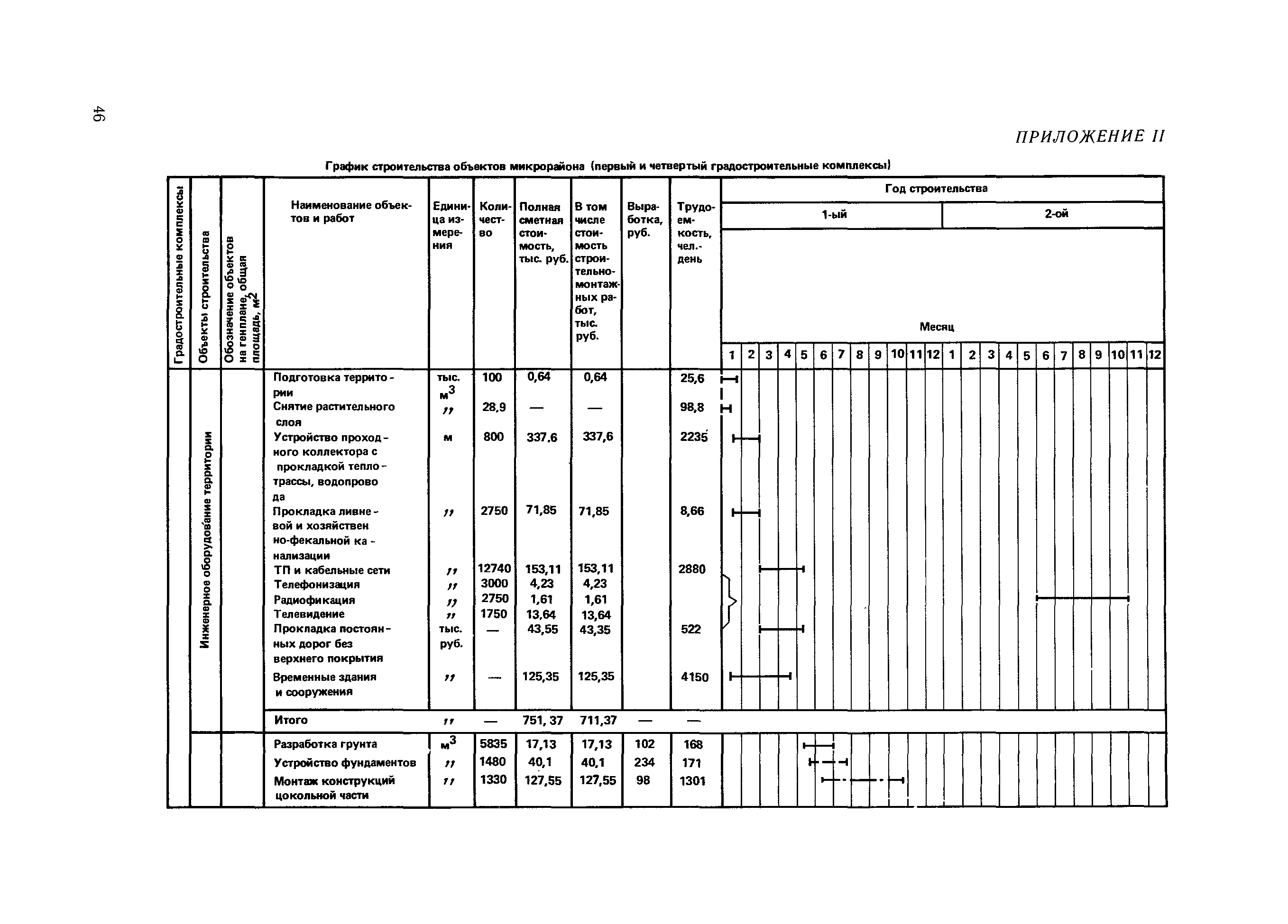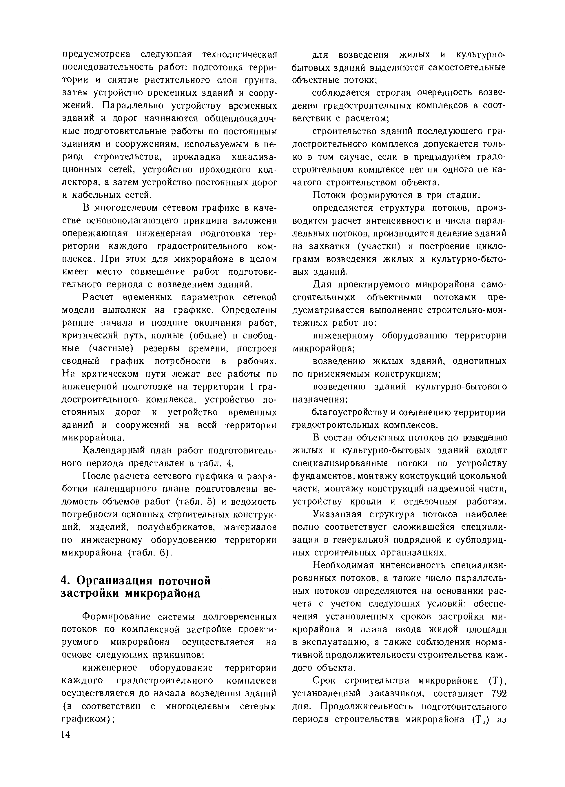 | Оглавление: | Введение Пояснительная записка 1. Оценка градостроительной ситуации и характеристика объектов микрорайона 2. Очередность застройки микрорайона 3. Инженерная подготовка территории 4. Организация поточной застройки микрорайона 5. Календарный план строительства 6. Расчет комплексности застройки 7. Объемы строительных. Монтажных и специальных строительных работ 8. Потребность в строительных конструкциях, изделиях, материалах и оборудовании 9. Потребность в основных строительных машинах 10. Строительный генеральный план 11. Методы производства строительно-монтажных работ 12. Мероприятия по охране труда 13. Мероприятия по охране окружающей среды 14. Оценка экономической эффективности проекта организации строительства 15. Технико-экономические показатели строительства микрорайона Приложение 1. Распределение капитальных вложений по вариантам очередности застройки Приложение 2. График строительства объектов микрорайона (первый и четвертый градостроительные комплексы) |