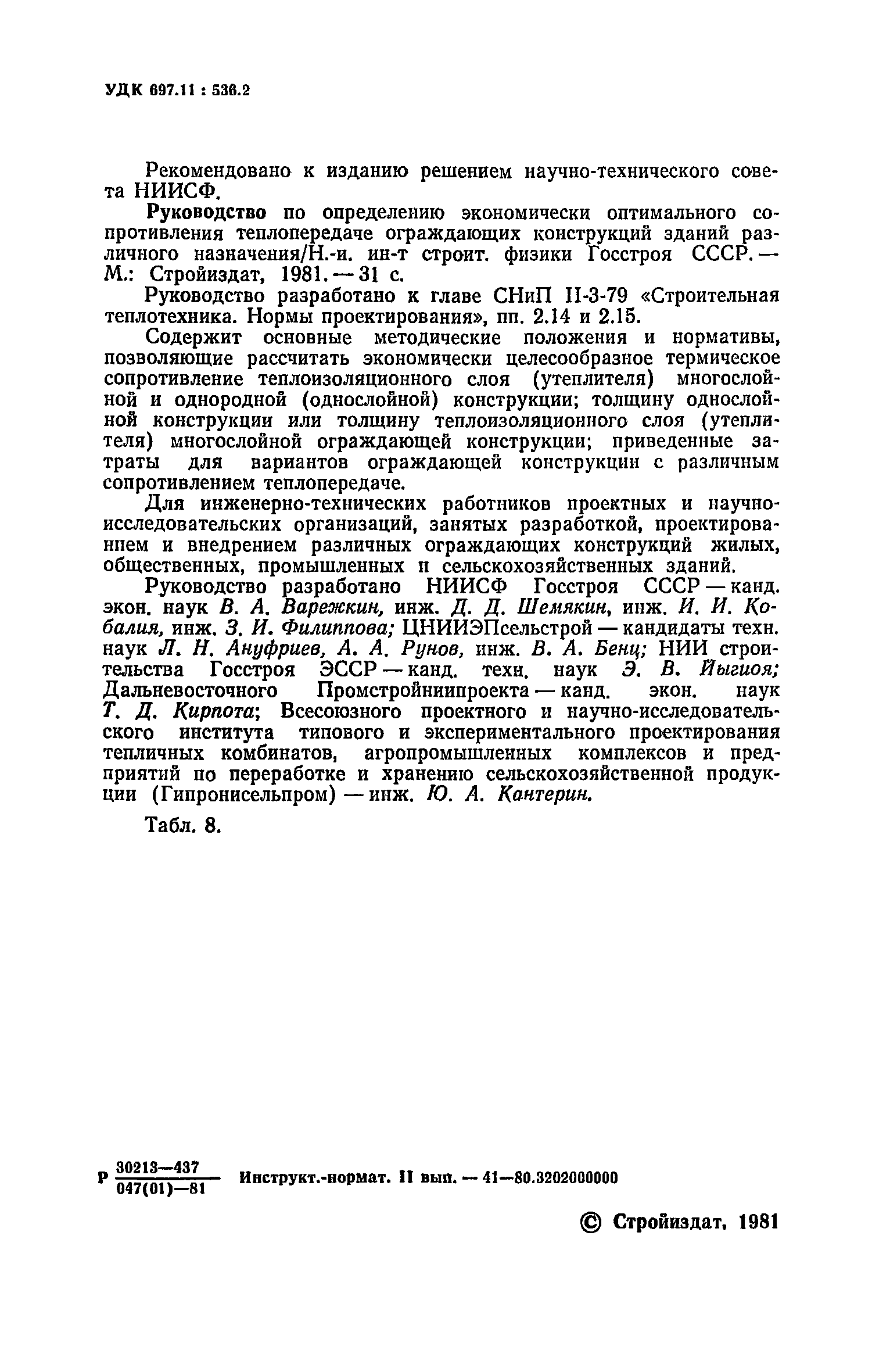 | Название рус.: | Руководство по определению экономически оптимального сопротивления теплопередаче ограждающих конструкций зданий различного назначения |