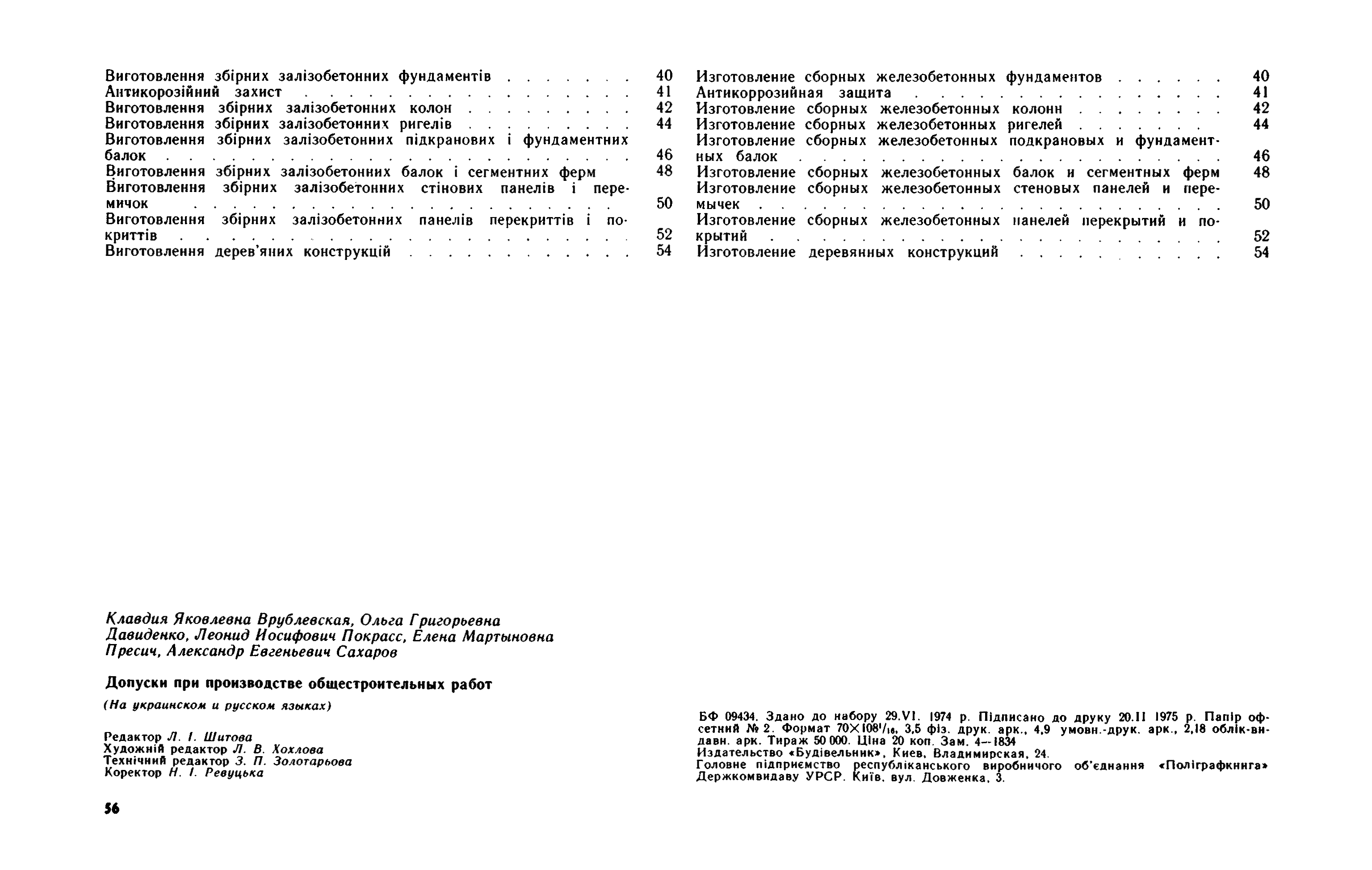 | Оглавление: | Предисловие Устройство траншей для трубопроводов Устройство траншей для коллекторов Устройство траншей и котлованов с перебором грунта Устройство траншей и котлованов с недобором грунта Устройство насыпей Устройство дренажных канав и траншей Изготовление щитовой деревянной опалубки Изготовление металлической н деревометаллической опалубки Арматурные работы (изготовление) Установка арматуры железобетонных конструкций Сварные соединения арматуры Закладные детали Устройство опалубки фундаментов Монолитные железобетонные фундаменты Фундаменты из крупных блоков Бутобетонные фундаменты Фундаменты из бутового камня Фундаменты под машины и оборудование Кирпичные стены Кирпичные столбы Стены из кирпичных блоков Бутобетонные стены Бутобетонные столбы Стены из крупных блоков Установка опалубки стен Стены из монолитного железобетона Установка опалубки колонн и перекрытий Колонна из монолитного железобетона Плита перекрытия из монолитного железобетона Устройство армированных кирпичных перегородок Монтаж гипсопрокатных перегородок Устройство гипсоблочных перегородок (из гипсолитовых плит) Устройство шлакогипсовых и шлакобетонных коробов . Столярные изделия Устройство мусоропроводов Изготовление сборных железобетонных фундаментов Антикоррозийная защита Изготовление сборных железобетонных колонн Изготовление сборных железобетонных ригелей Изготовление сборных железобетонных подкрановых и фундаментных балок Изготовление сборных железобетонных балок и сегментных ферм Изготовление сборных железобетонных стеновых панелей и перемычек Изготовление сборных железобетонных панелей перекрытий и покрытий Изготовление деревянных конструкций |