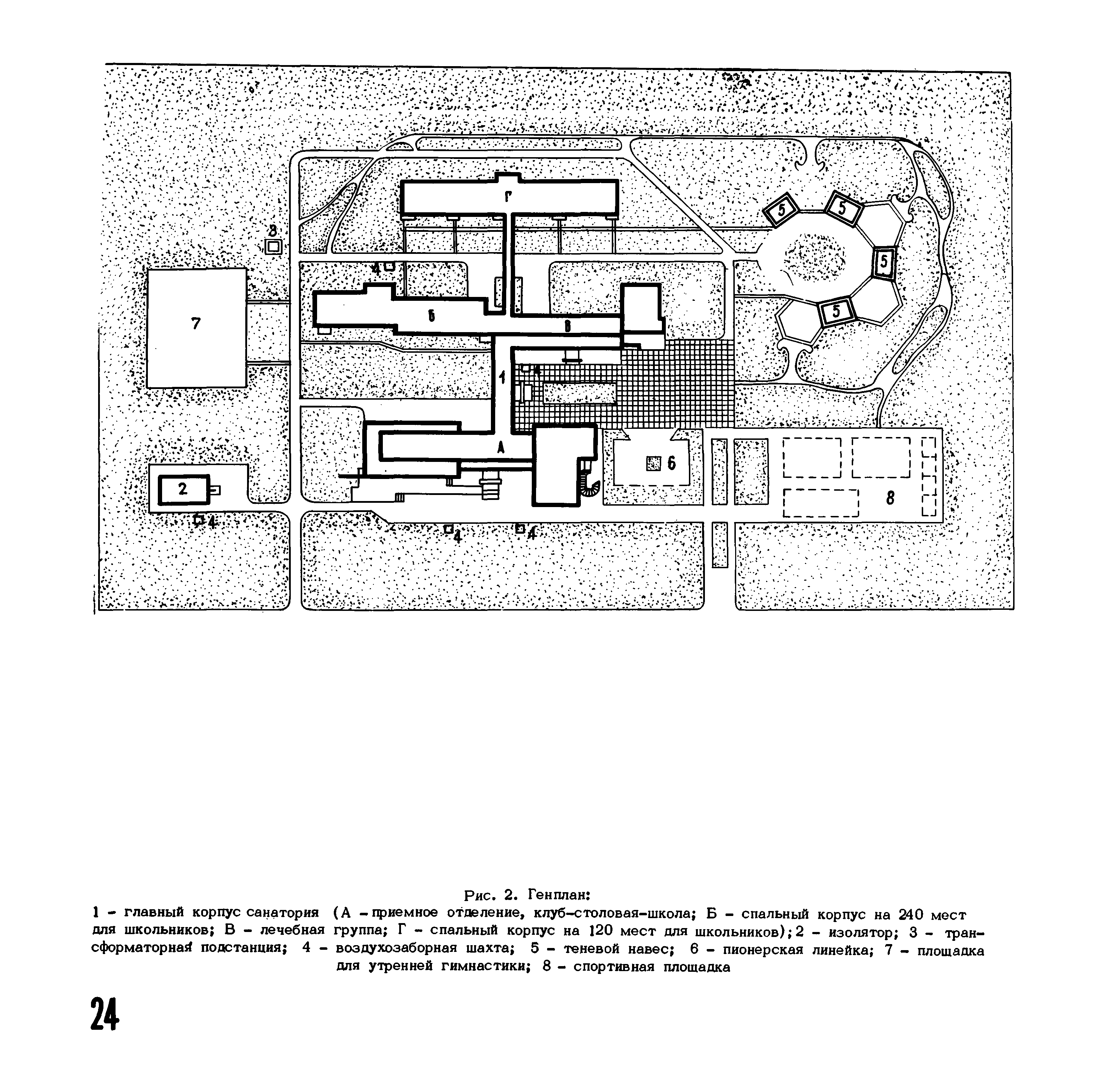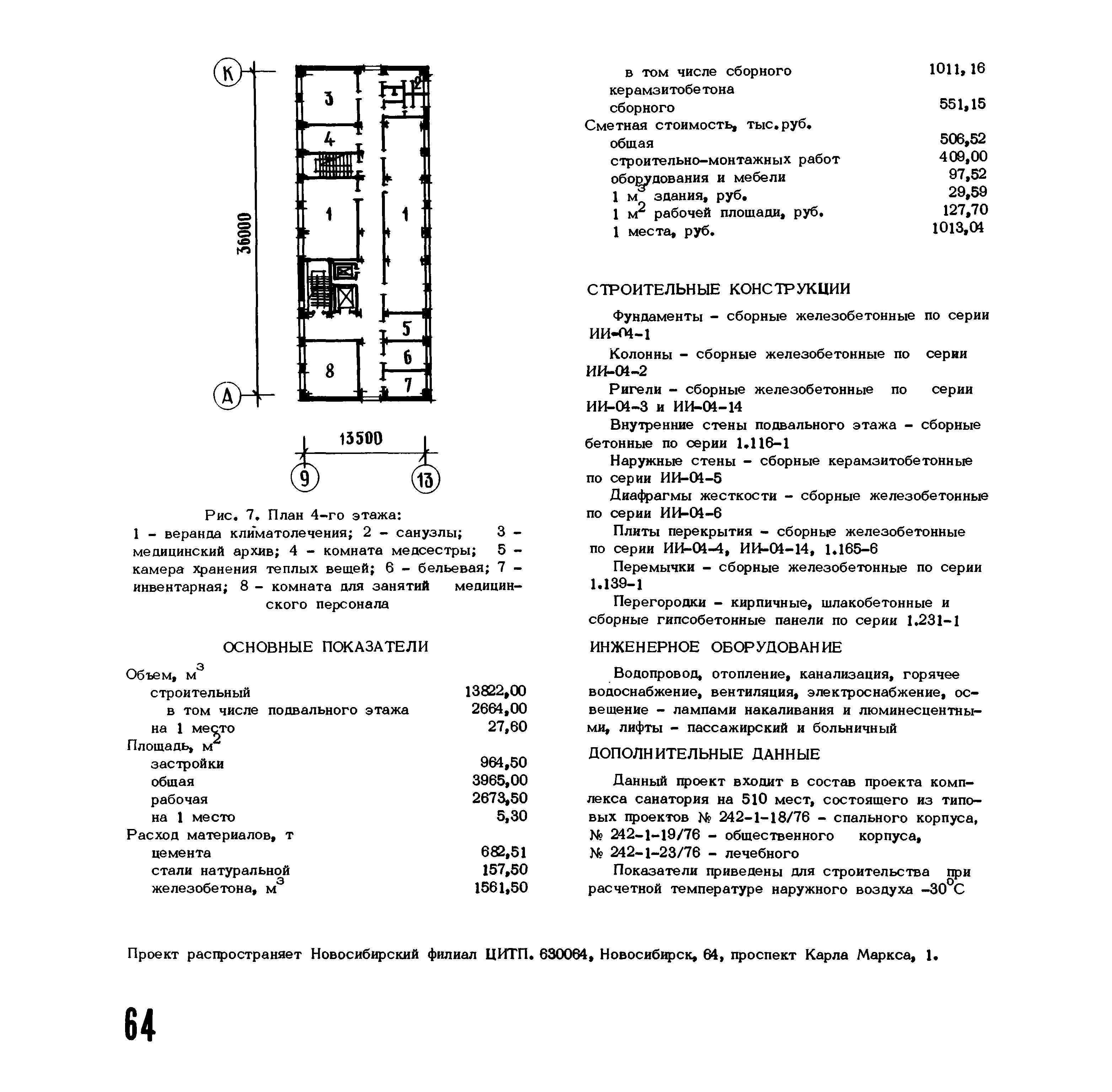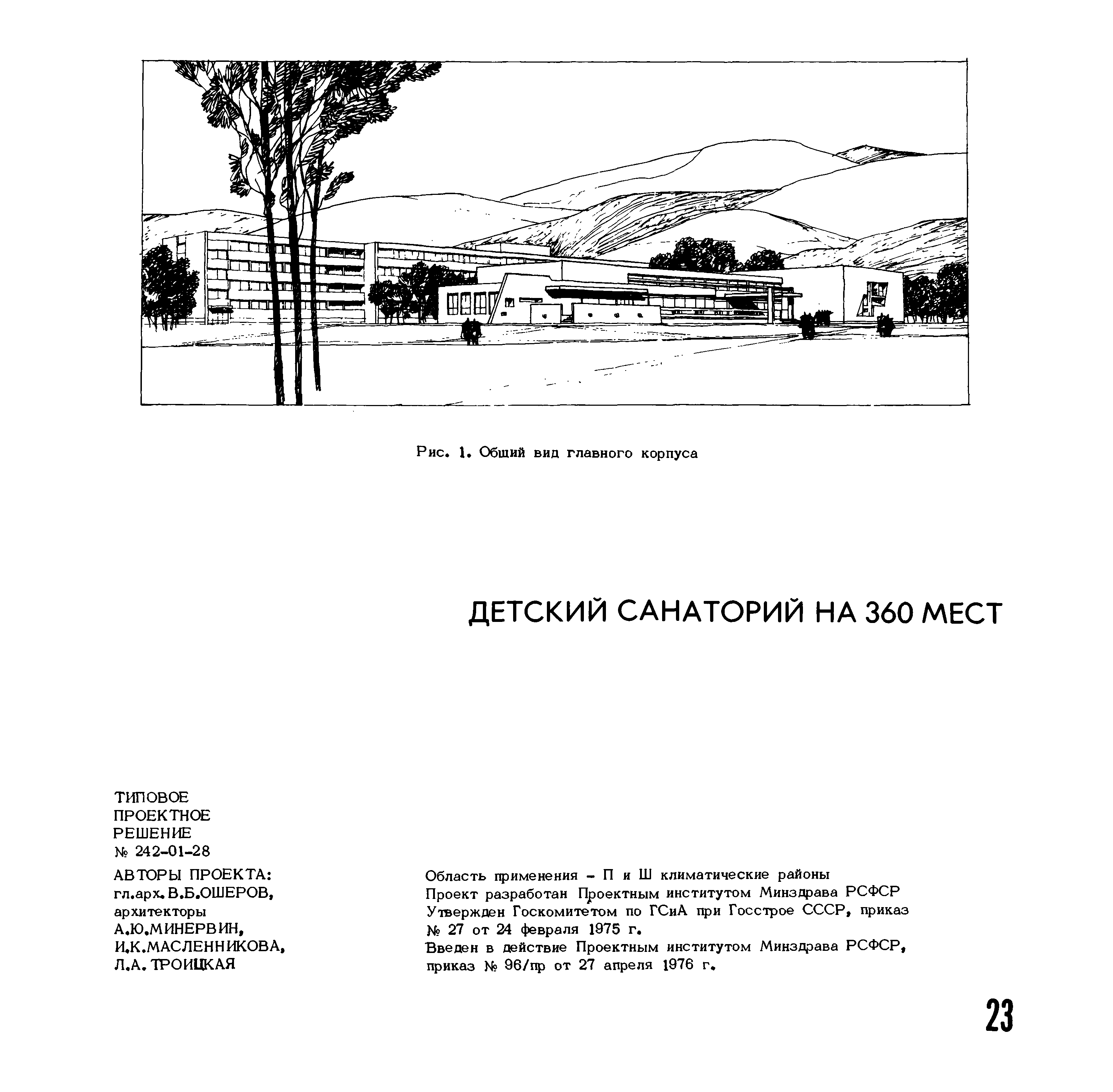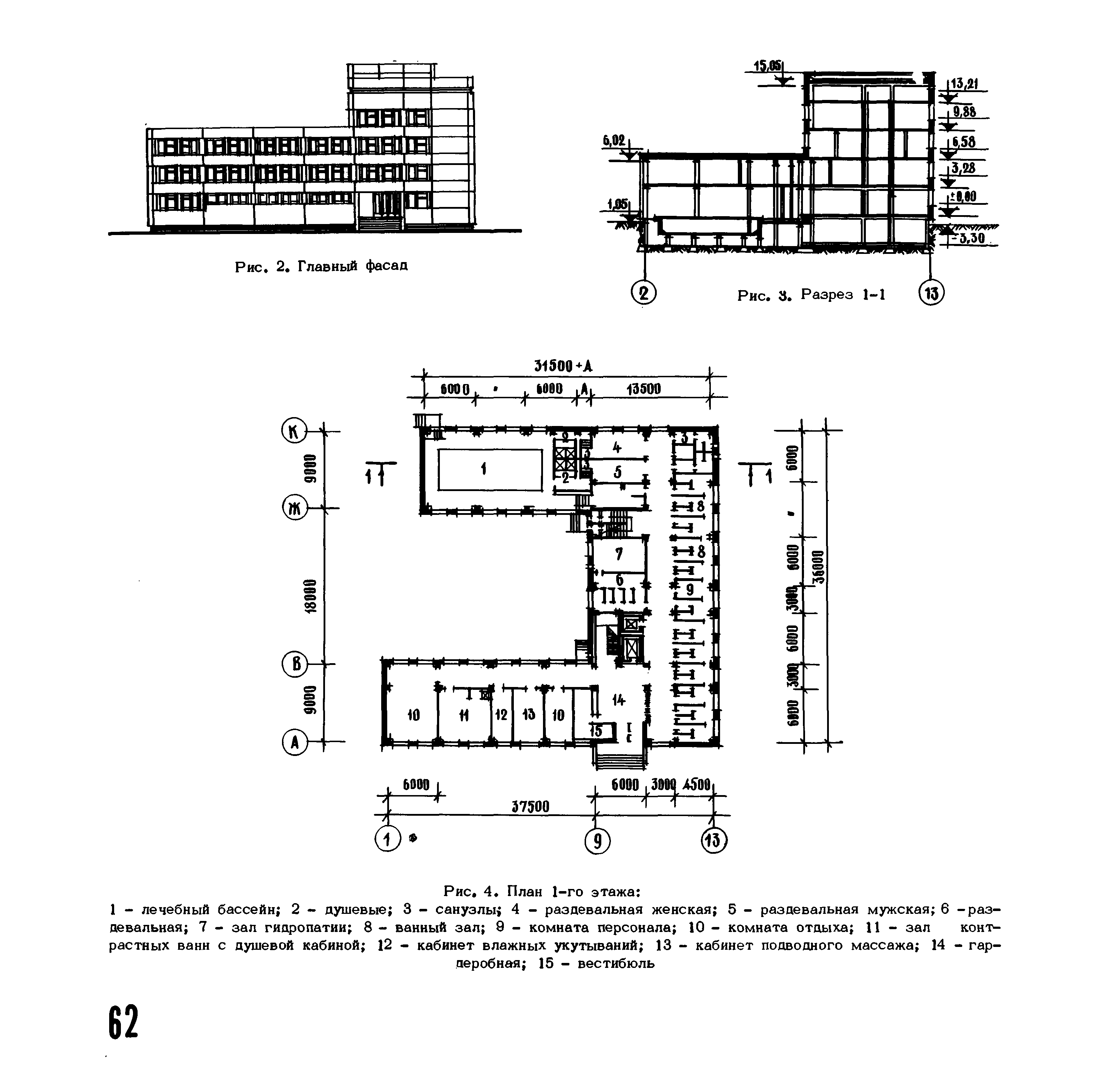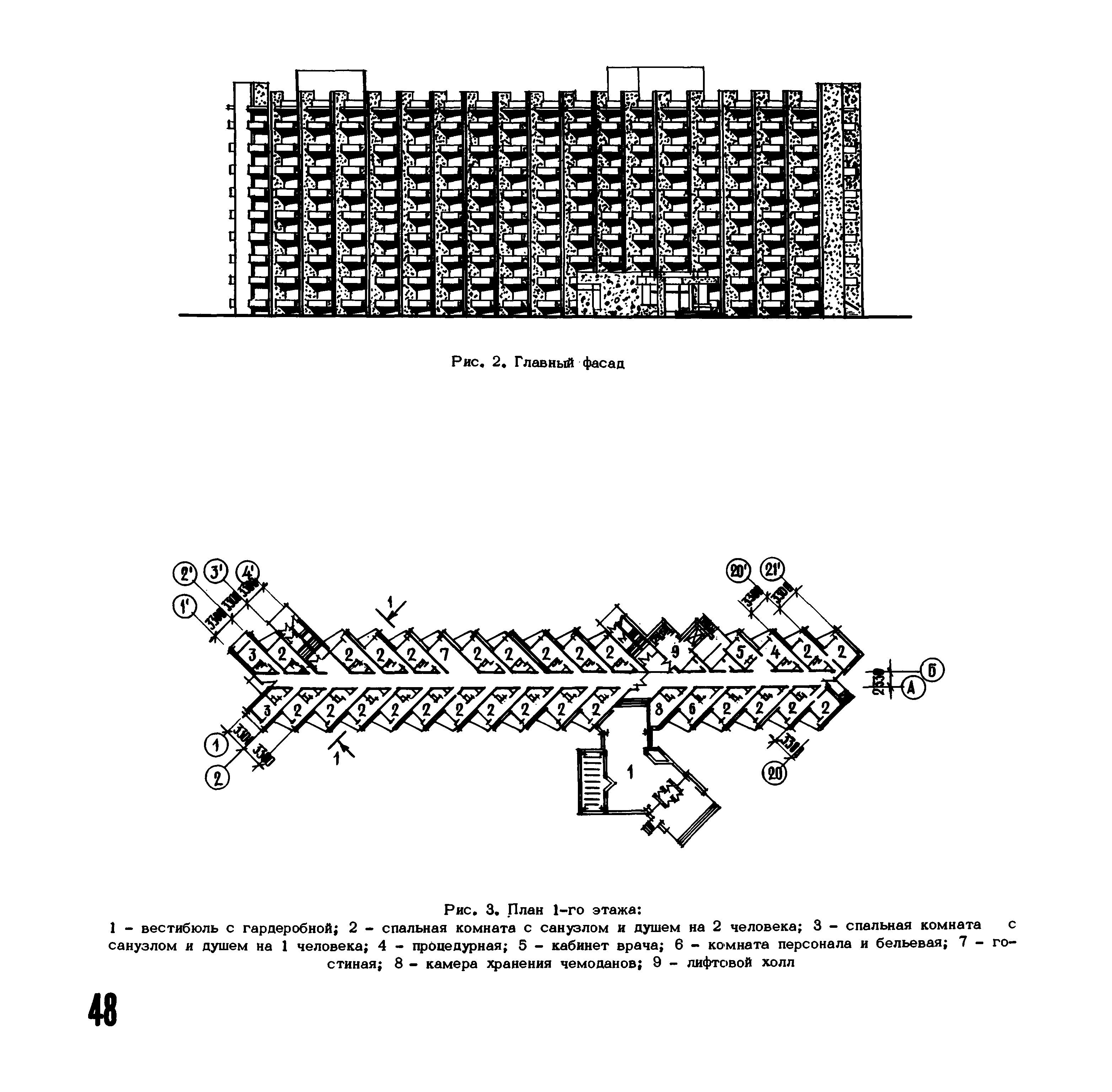 | Оглавление: | 1. Санатории Санаторий кардиологического профиля на 104 места Санаторий кардиологического профиля на 502 места Туберкулезный санаторий на 360 мест Детский санаторий на 360 мест Главный корпус детского санатория на 360 мест Изолятор детского санатория на 360 мест 2. Спальные корпуса санаториев Спальный корпус санатория кардиологического профиля на 511 мест Спальный корпус санатория на 510 мест Спальный корпус санатория на 504 места Спальный корпус санатория на 500 мест (в конструкциях серии 135) Спальный корпус санатория на 249 мест 3. Лечебно-диагностические корпуса санаториев Лечебный корпус санатория кардиологического профиля на 511 мест Лечебный корпус санатория на 500 мест Лечебный корпус санатория для лечения органов пищеварения на 500 мест Лечебно-диагностический корпус санатория кардиологического профиля на 500 мест 4. Общественные корпуса санаториев Общественный корпус санатория кардиологического профиля на 511 мест Общественный корпус санатория на 500 мест Клуб-столовая санатория на 500 мест Приложение 1 Приложение 2 |