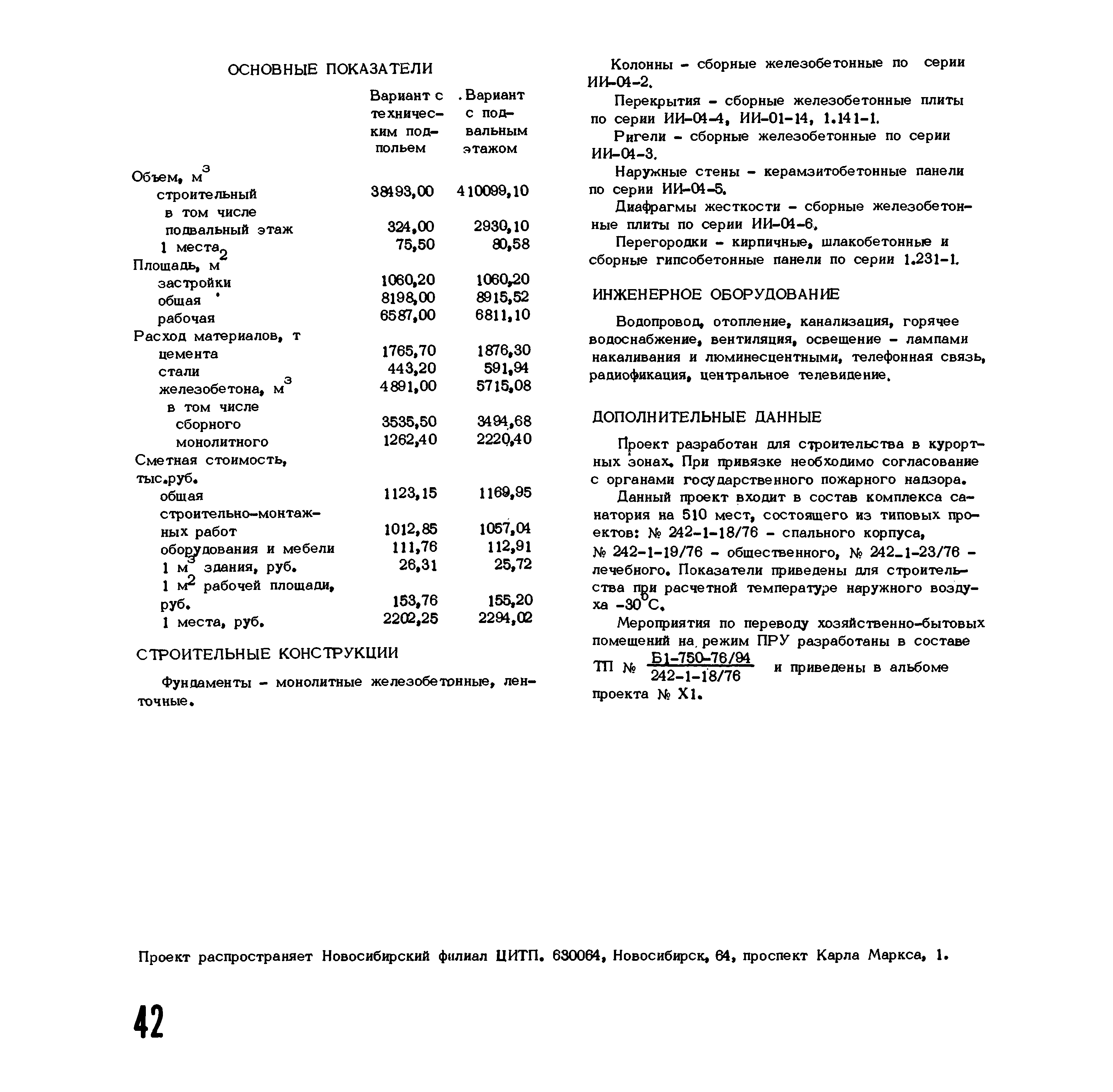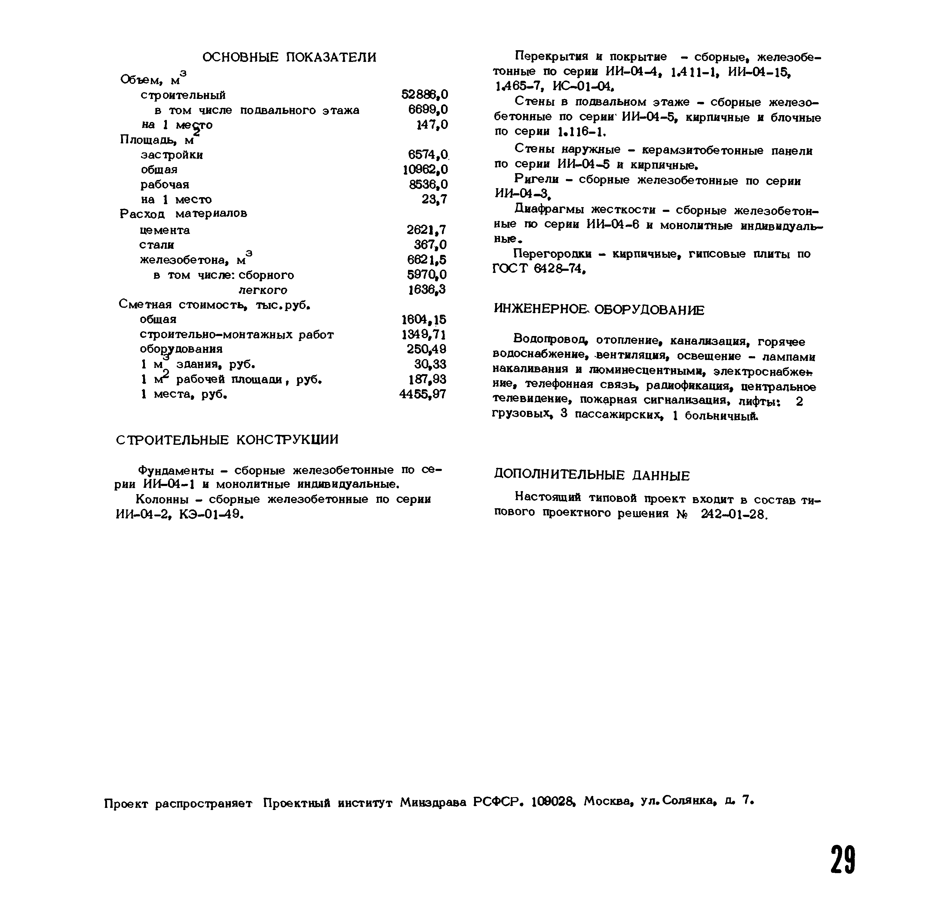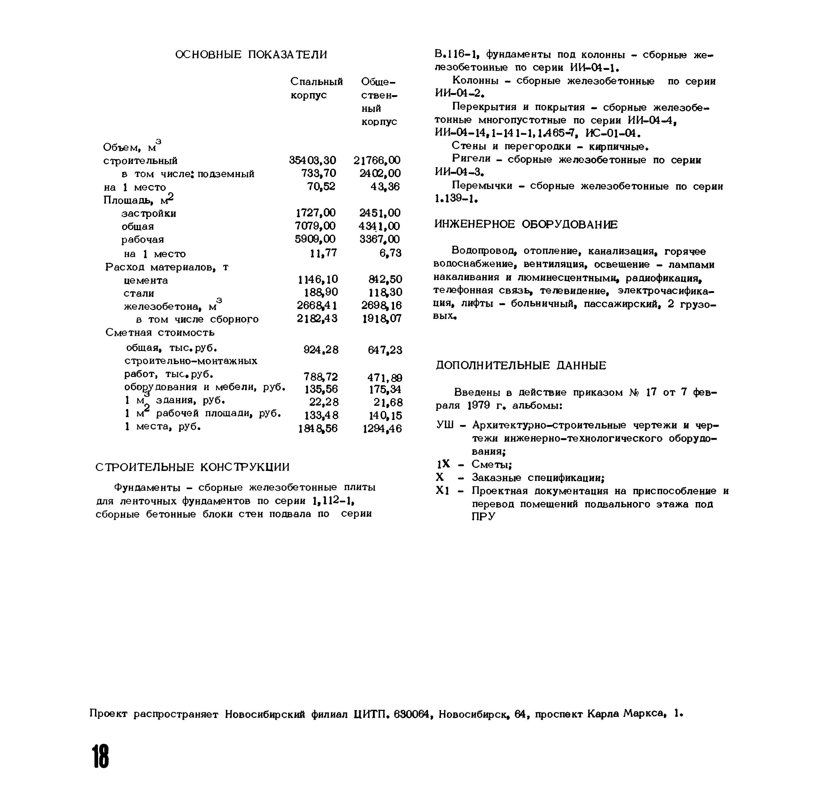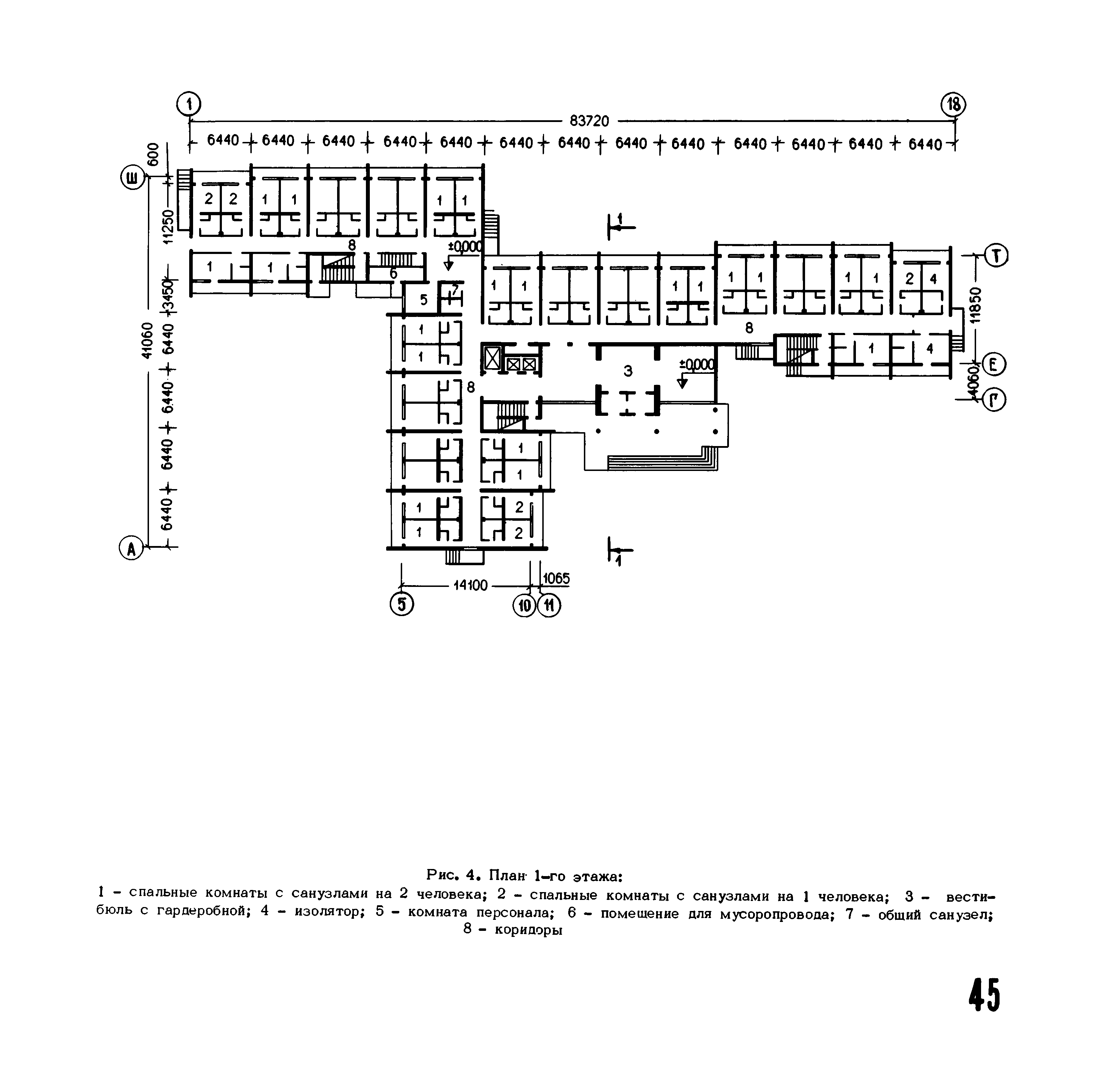 | Оглавление: | 1. Санатории Санаторий кардиологического профиля на 104 места Санаторий кардиологического профиля на 502 места Туберкулезный санаторий на 360 мест Детский санаторий на 360 мест Главный корпус детского санатория на 360 мест Изолятор детского санатория на 360 мест 2. Спальные корпуса санаториев Спальный корпус санатория кардиологического профиля на 511 мест Спальный корпус санатория на 510 мест Спальный корпус санатория на 504 места Спальный корпус санатория на 500 мест (в конструкциях серии 135) Спальный корпус санатория на 249 мест 3. Лечебно-диагностические корпуса санаториев Лечебный корпус санатория кардиологического профиля на 511 мест Лечебный корпус санатория на 500 мест Лечебный корпус санатория для лечения органов пищеварения на 500 мест Лечебно-диагностический корпус санатория кардиологического профиля на 500 мест 4. Общественные корпуса санаториев Общественный корпус санатория кардиологического профиля на 511 мест Общественный корпус санатория на 500 мест Клуб-столовая санатория на 500 мест Приложение 1 Приложение 2 |