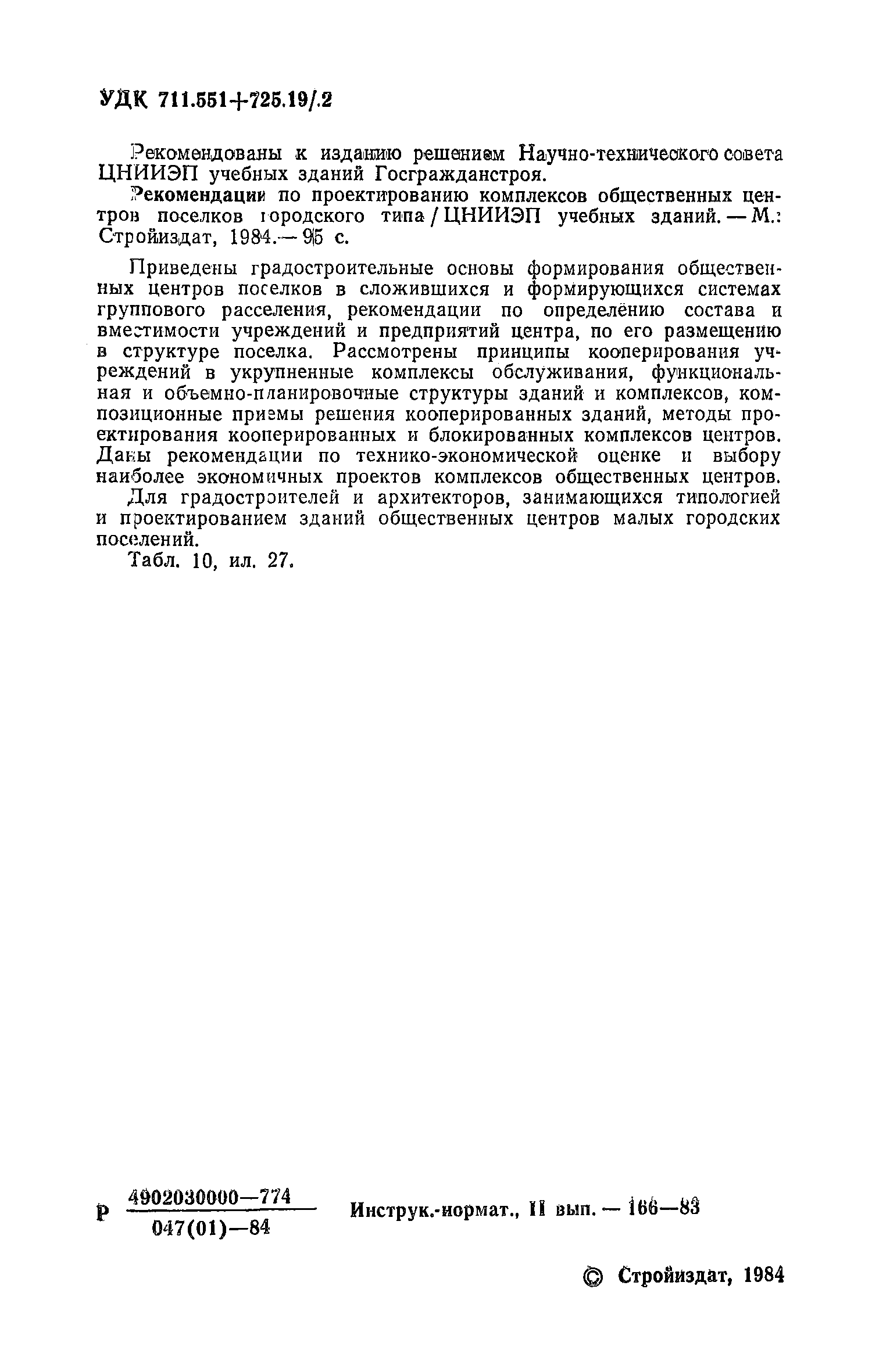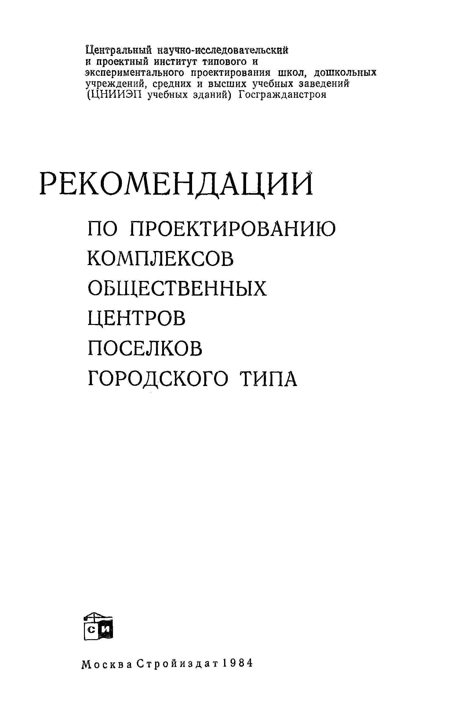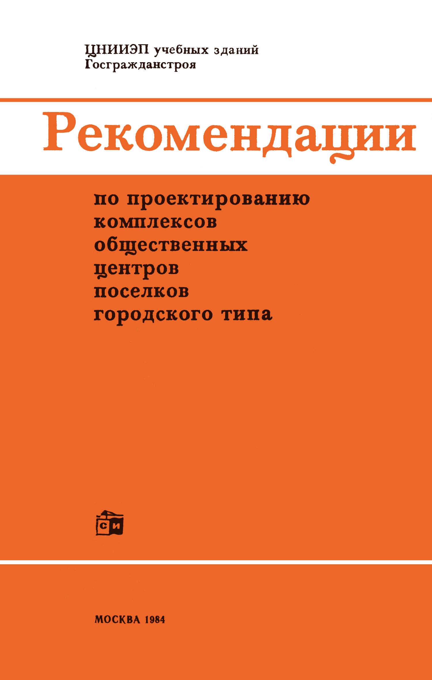 | Название рус.: | Рекомендации по проектированию комплексов общественных центров поселков городского типа |