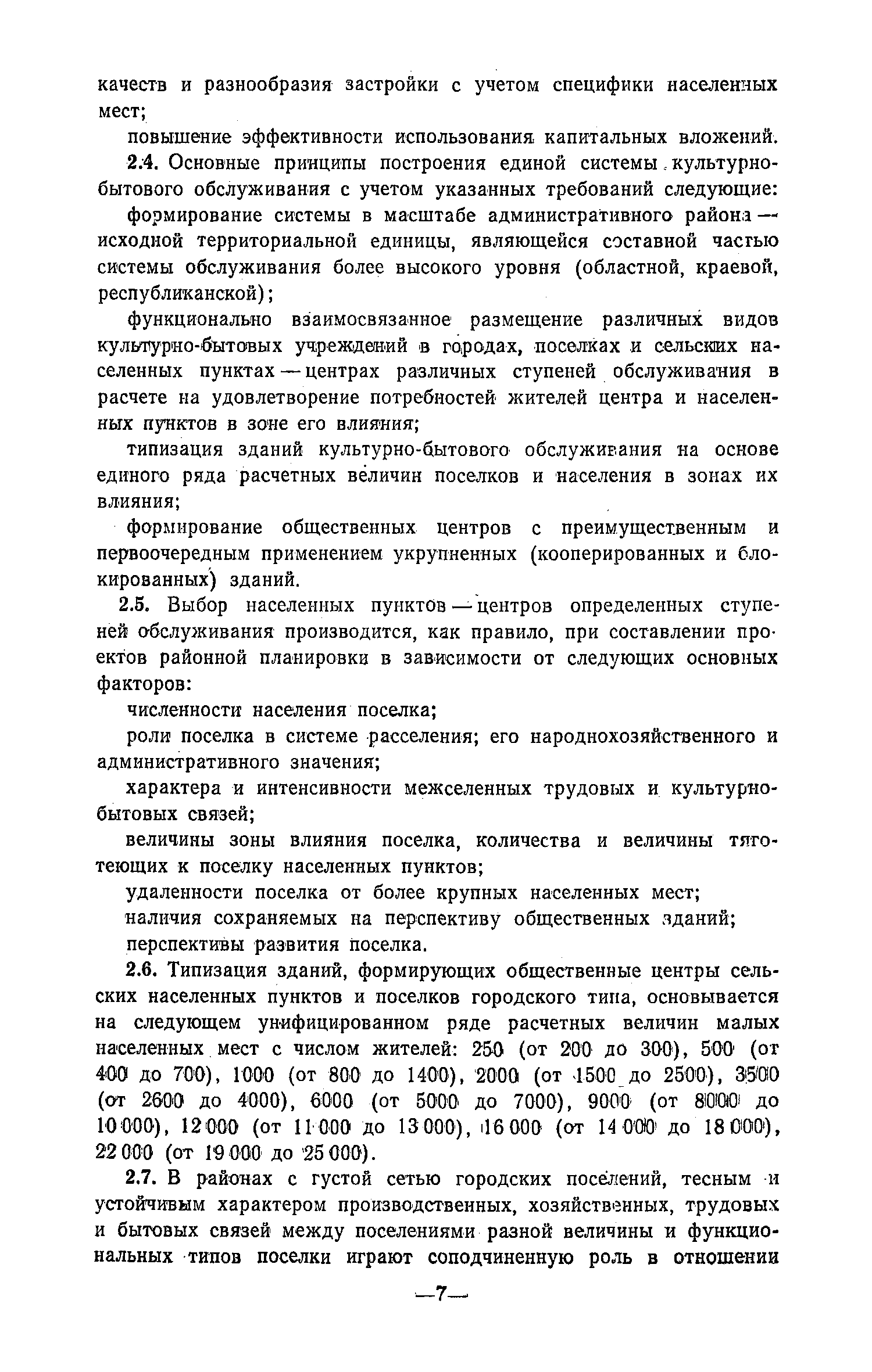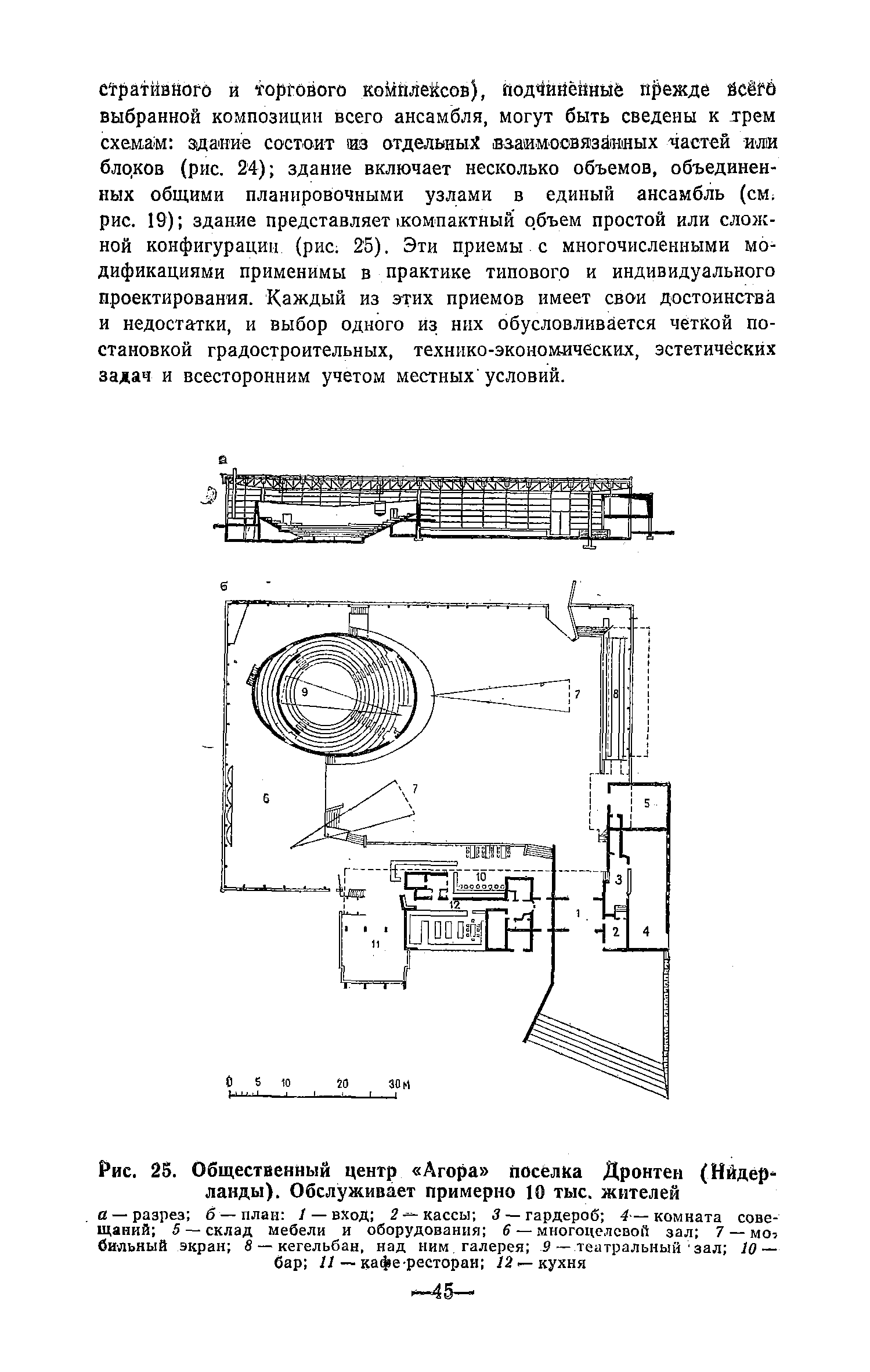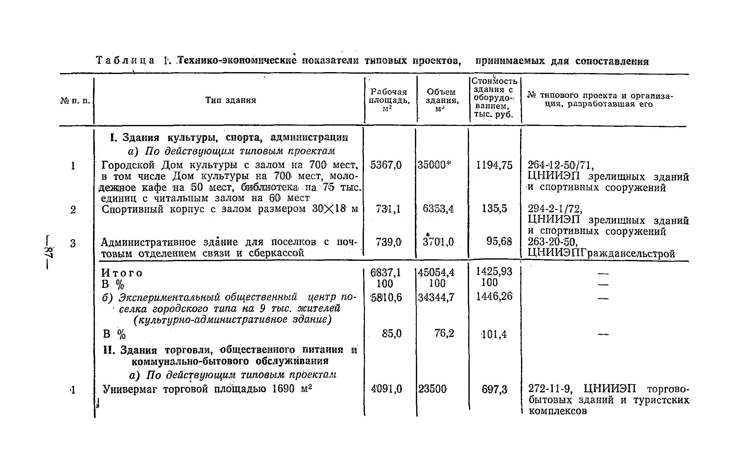 | Оглавление: | Введение 1. Общие положения 2. Градостроительные основы формирования общественных центров поселков Общественный центр поселка как элемент единой системы культурно-бытового обслуживания Состав учреждений и предприятий общественных центров Размещение общественного центра в структуре поселка 3. Типы зданий общественных центров поселков Объединение учреждений в здания общественных центров Функциональная структура зданий общественных центров Композиционные приемы решения комплексов зданий центров Перспективные направления типового проектирования зданий общественных центров 4. Технико-экономическая оценка общественных центров поселков городского типа Методика технико-экономической оценки Выбор наиболее экономичных проектов Приложение 1. Основные характеристики и параметры поселков - центров обслуживания в системах группового расселения Приложение 2. Дифференциация норм расчета сети учреждений, предприятий и сооружений обслуживания в поселках городского типа Приложение 3. Рекомендуемый состав учреждений комплексов общественных центров поселков городского типа Приложение 4. Номенклатура типов зданий, формирующих общественные центры поселков городского типа Приложение 5. Примерный состав и площади помещений комплексов зданий общественных центров поселков городского типа Приложение 6. Технико-экономическая оценка экспериментального проекта комплекса кооперированных зданий общественного центра поселка на 9 тыс. жителей |