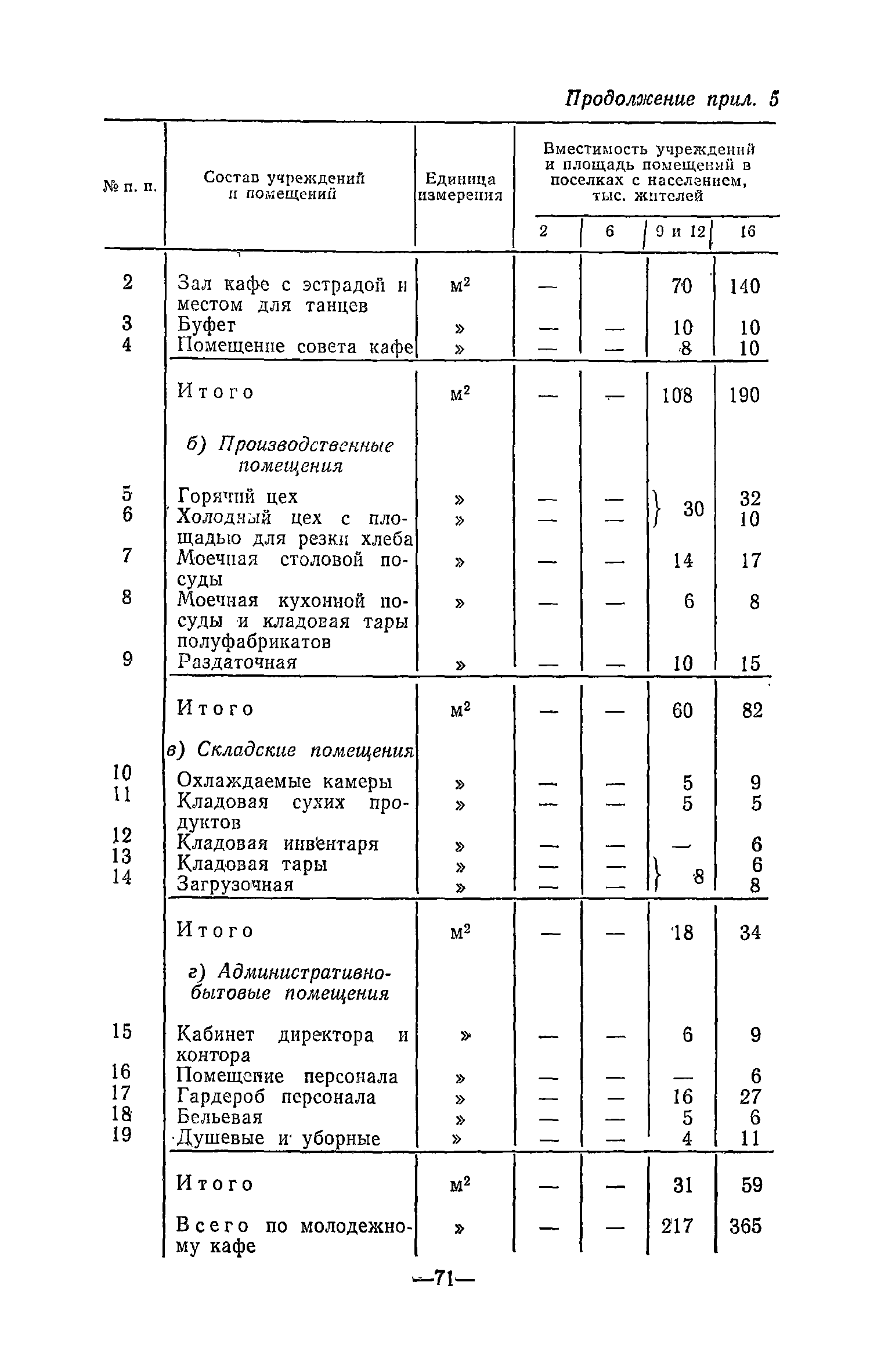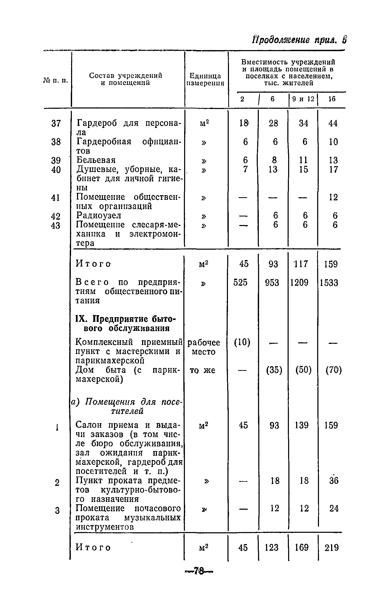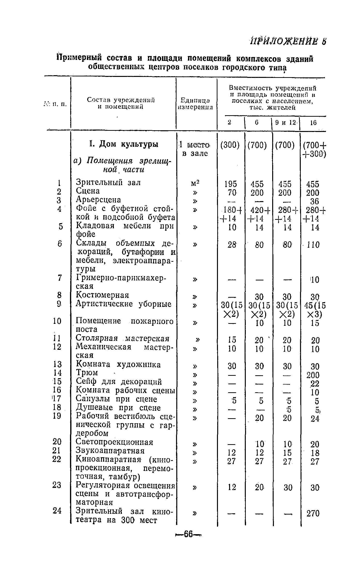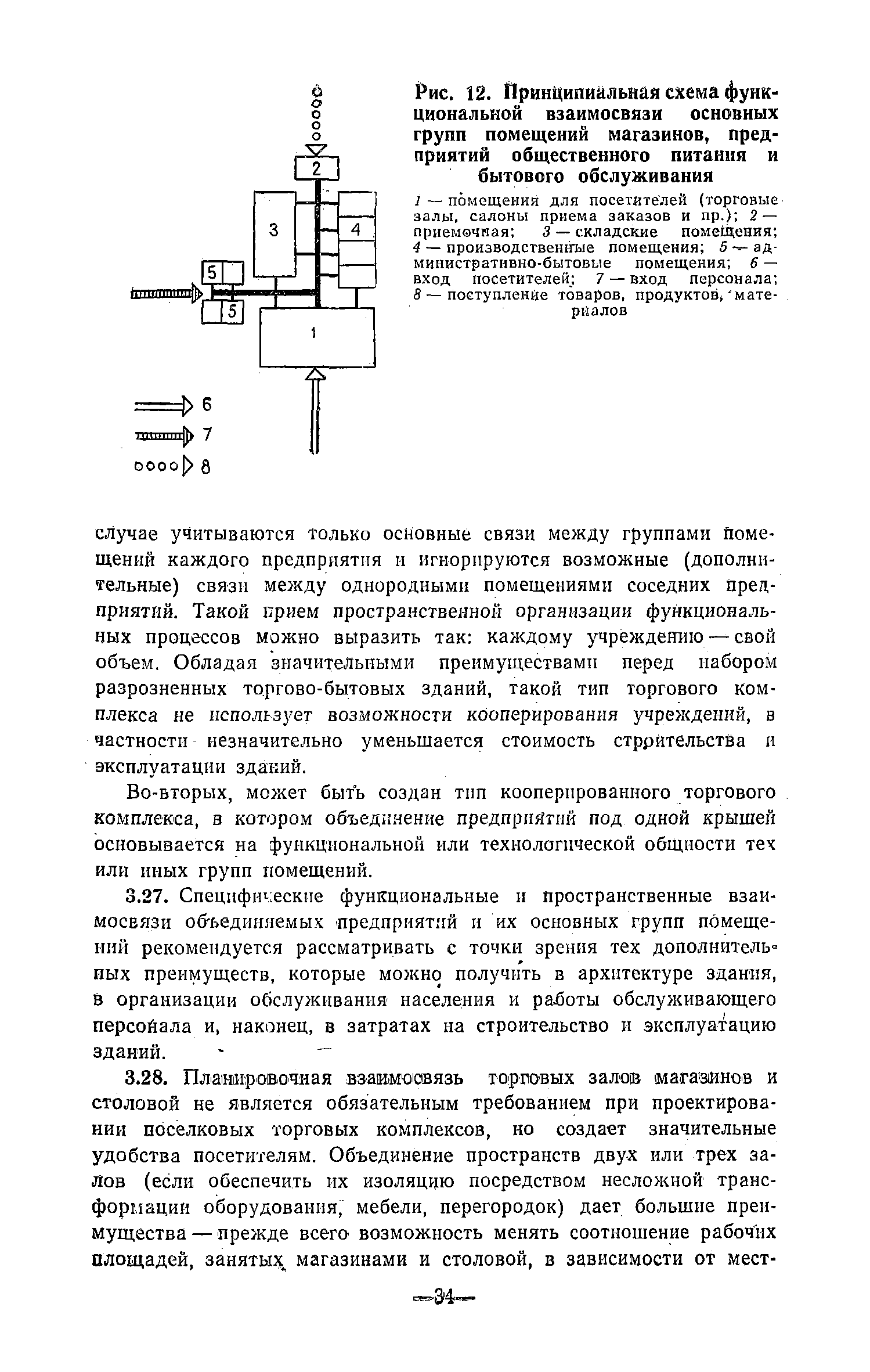 | Оглавление: | Введение 1. Общие положения 2. Градостроительные основы формирования общественных центров поселков Общественный центр поселка как элемент единой системы культурно-бытового обслуживания Состав учреждений и предприятий общественных центров Размещение общественного центра в структуре поселка 3. Типы зданий общественных центров поселков Объединение учреждений в здания общественных центров Функциональная структура зданий общественных центров Композиционные приемы решения комплексов зданий центров Перспективные направления типового проектирования зданий общественных центров 4. Технико-экономическая оценка общественных центров поселков городского типа Методика технико-экономической оценки Выбор наиболее экономичных проектов Приложение 1. Основные характеристики и параметры поселков - центров обслуживания в системах группового расселения Приложение 2. Дифференциация норм расчета сети учреждений, предприятий и сооружений обслуживания в поселках городского типа Приложение 3. Рекомендуемый состав учреждений комплексов общественных центров поселков городского типа Приложение 4. Номенклатура типов зданий, формирующих общественные центры поселков городского типа Приложение 5. Примерный состав и площади помещений комплексов зданий общественных центров поселков городского типа Приложение 6. Технико-экономическая оценка экспериментального проекта комплекса кооперированных зданий общественного центра поселка на 9 тыс. жителей |