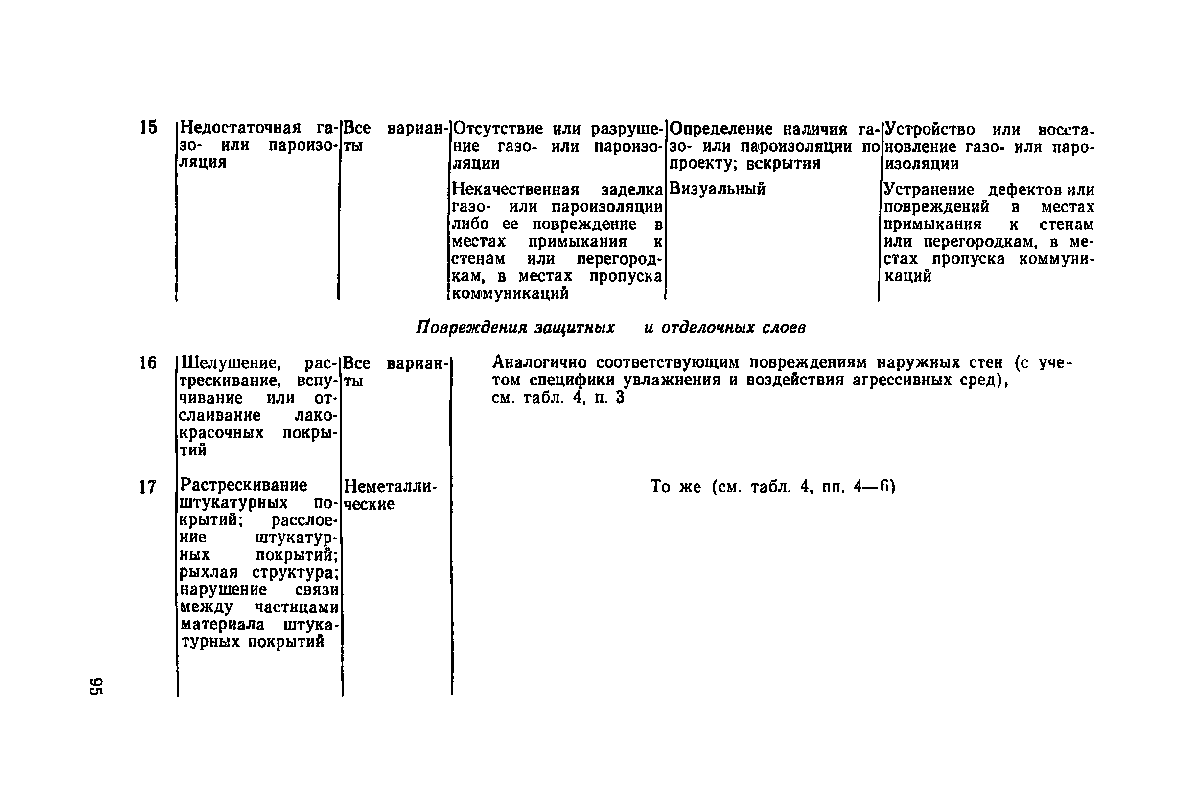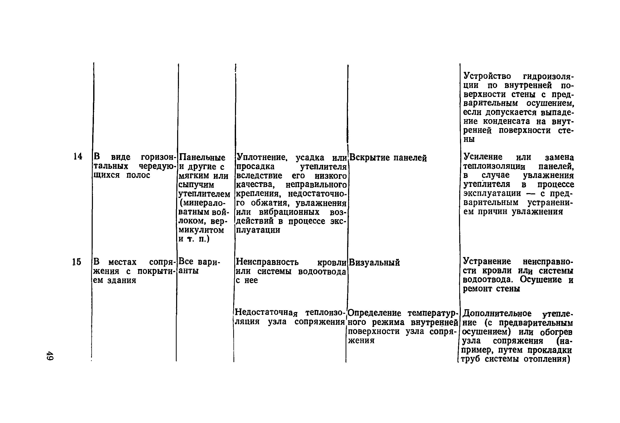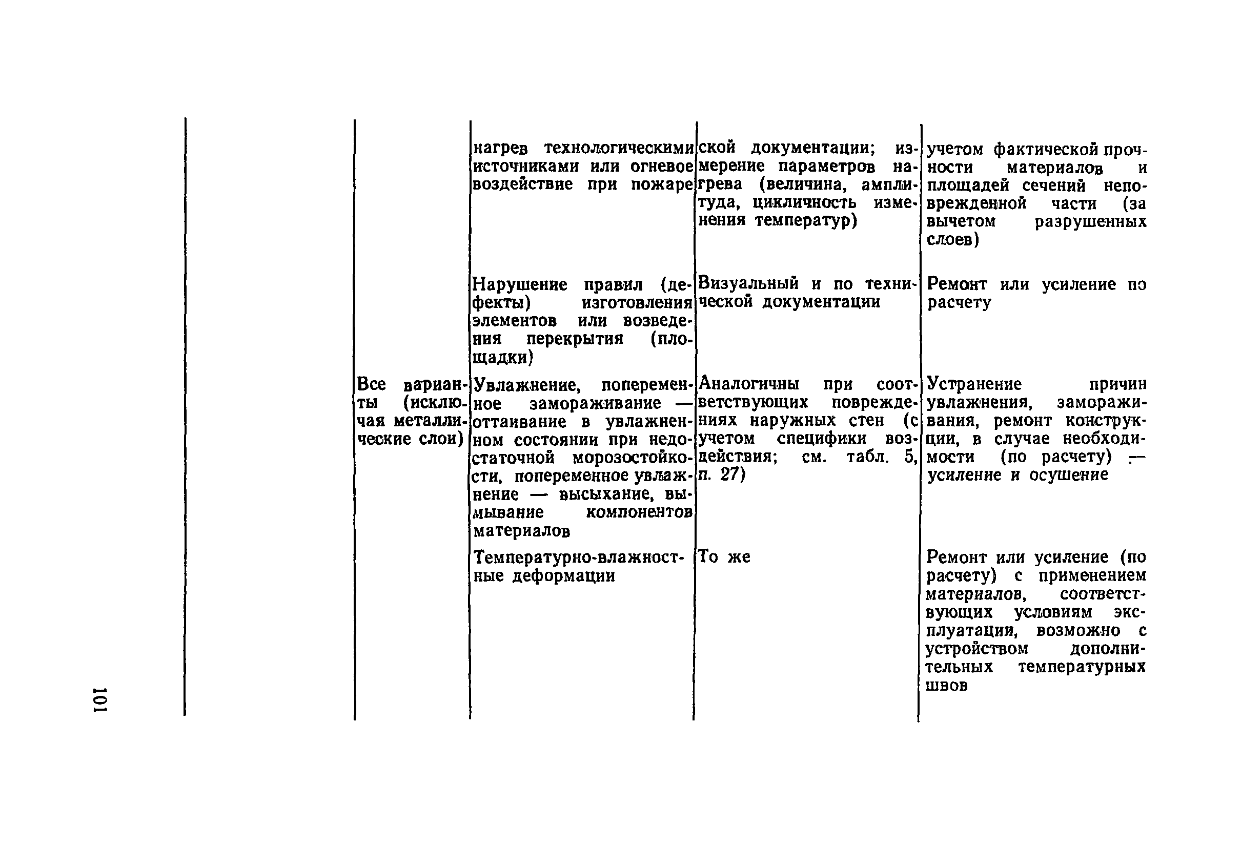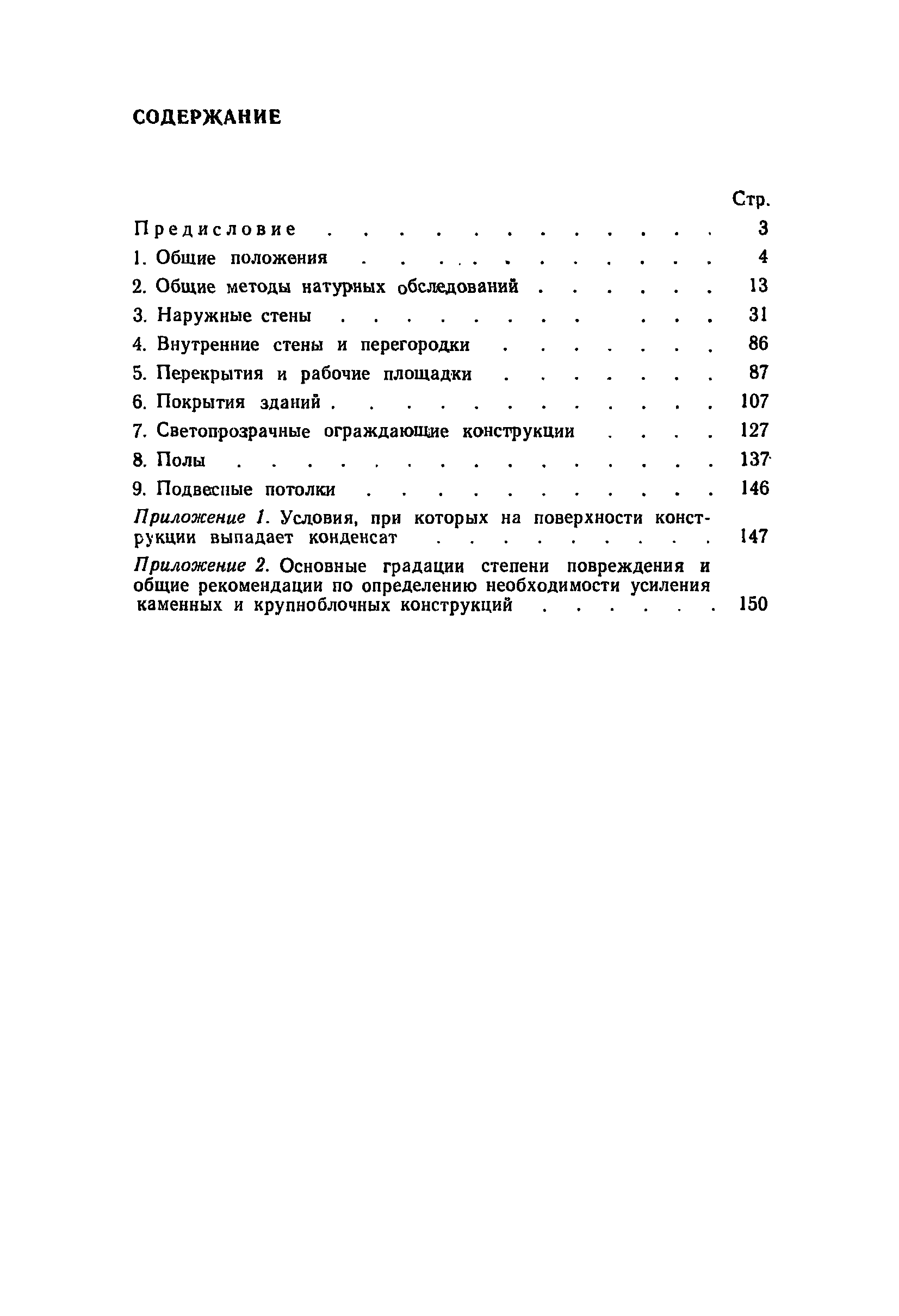 | Оглавление: | Предисловие 1. Общие положения 2. Общие методы натурных обследований 3. Наружные стены 4. Внутренние стены и перегородки 5. Перекрытия и рабочие площадки 6. Покрытия зданий 7. Светопрозрачные ограждающие конструкции 8. Полы 9. Подвесные потолки Приложение 1. Условия, при которых на поверхности конструкции выпадает конденсат Приложение 2. Основные градации степени повреждения и общие рекомендации по определению необходимости усиления каменных и крупноблочных конструкций |