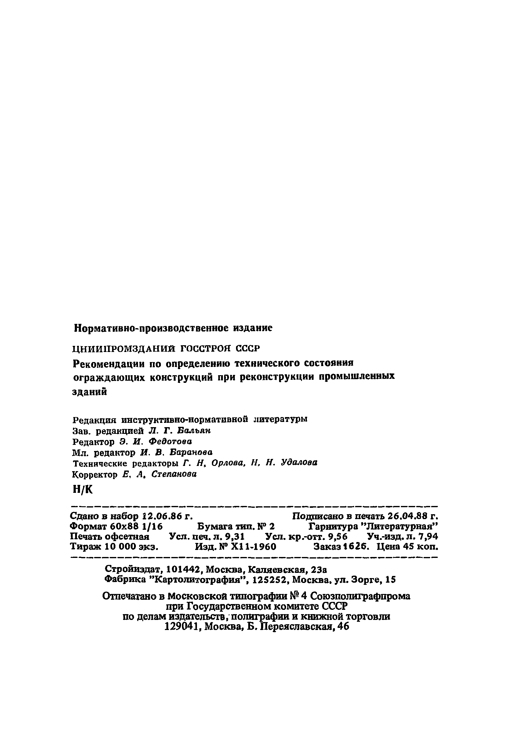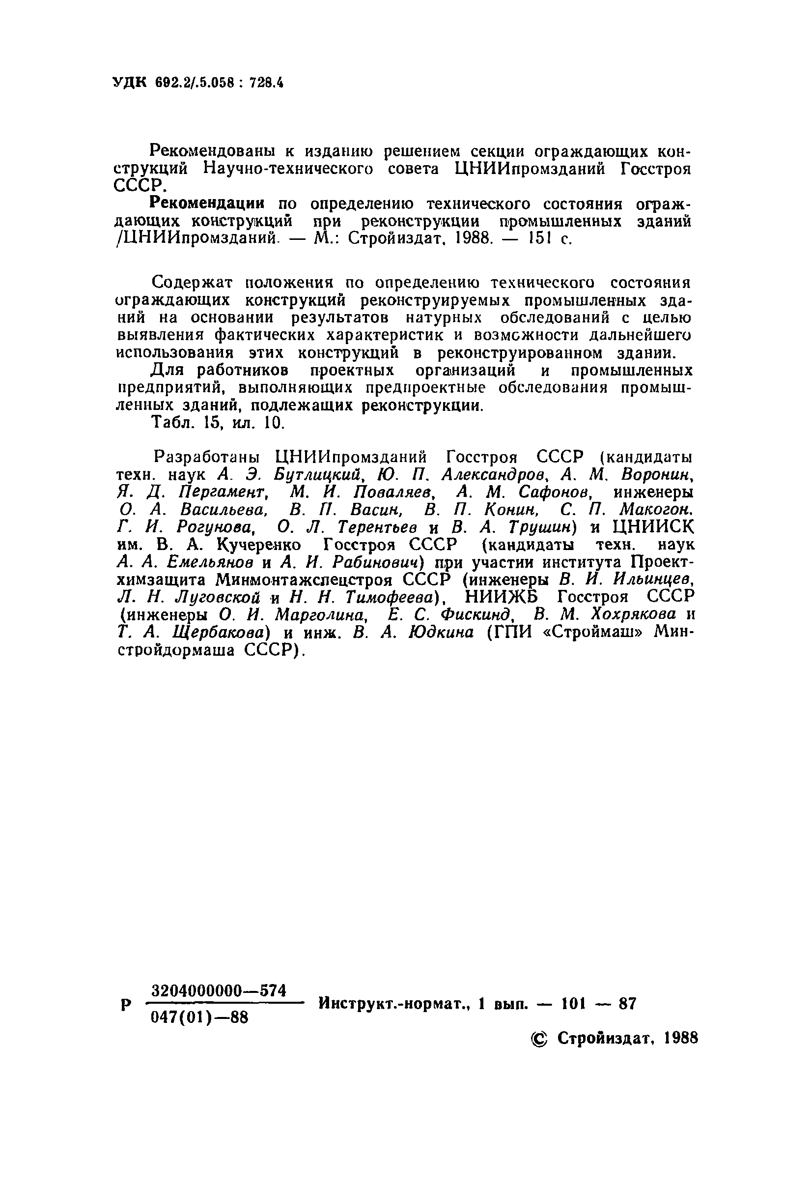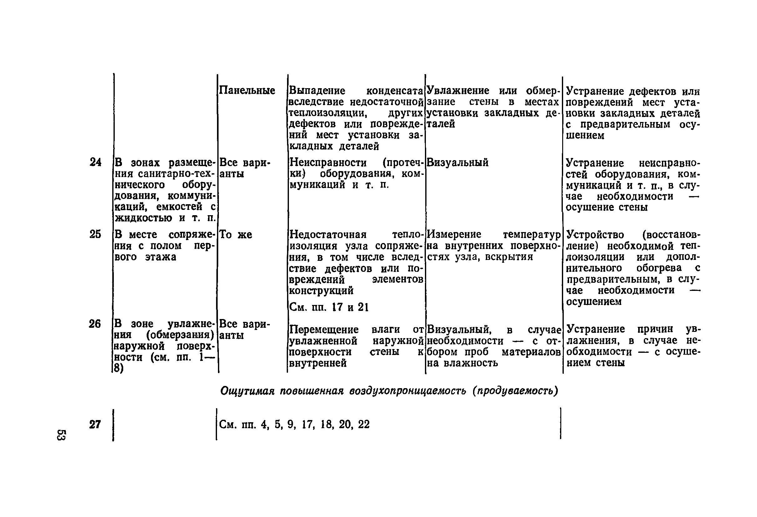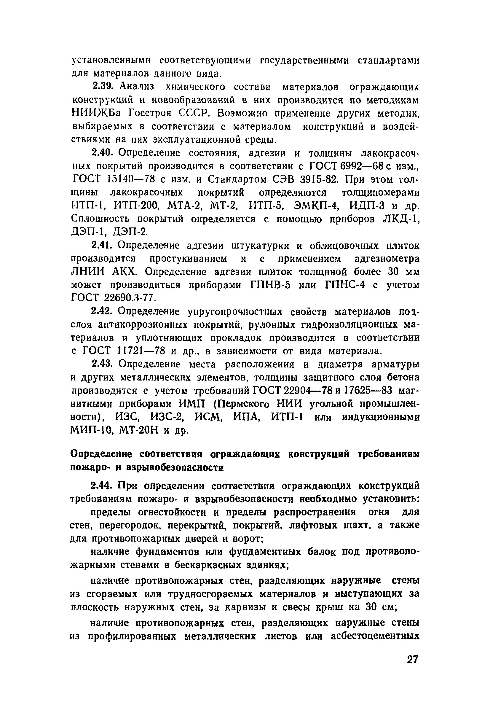 | Оглавление: | Предисловие 1. Общие положения 2. Общие методы натурных обследований 3. Наружные стены 4. Внутренние стены и перегородки 5. Перекрытия и рабочие площадки 6. Покрытия зданий 7. Светопрозрачные ограждающие конструкции 8. Полы 9. Подвесные потолки Приложение 1. Условия, при которых на поверхности конструкции выпадает конденсат Приложение 2. Основные градации степени повреждения и общие рекомендации по определению необходимости усиления каменных и крупноблочных конструкций |
