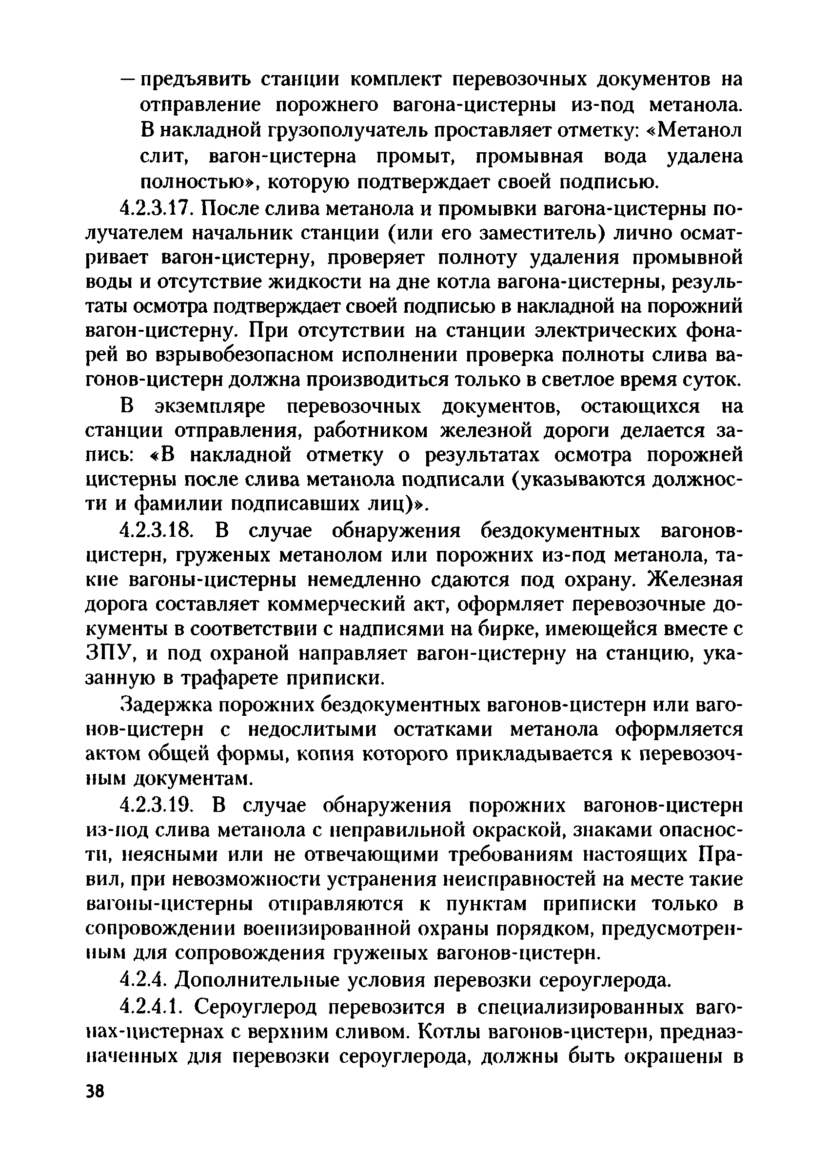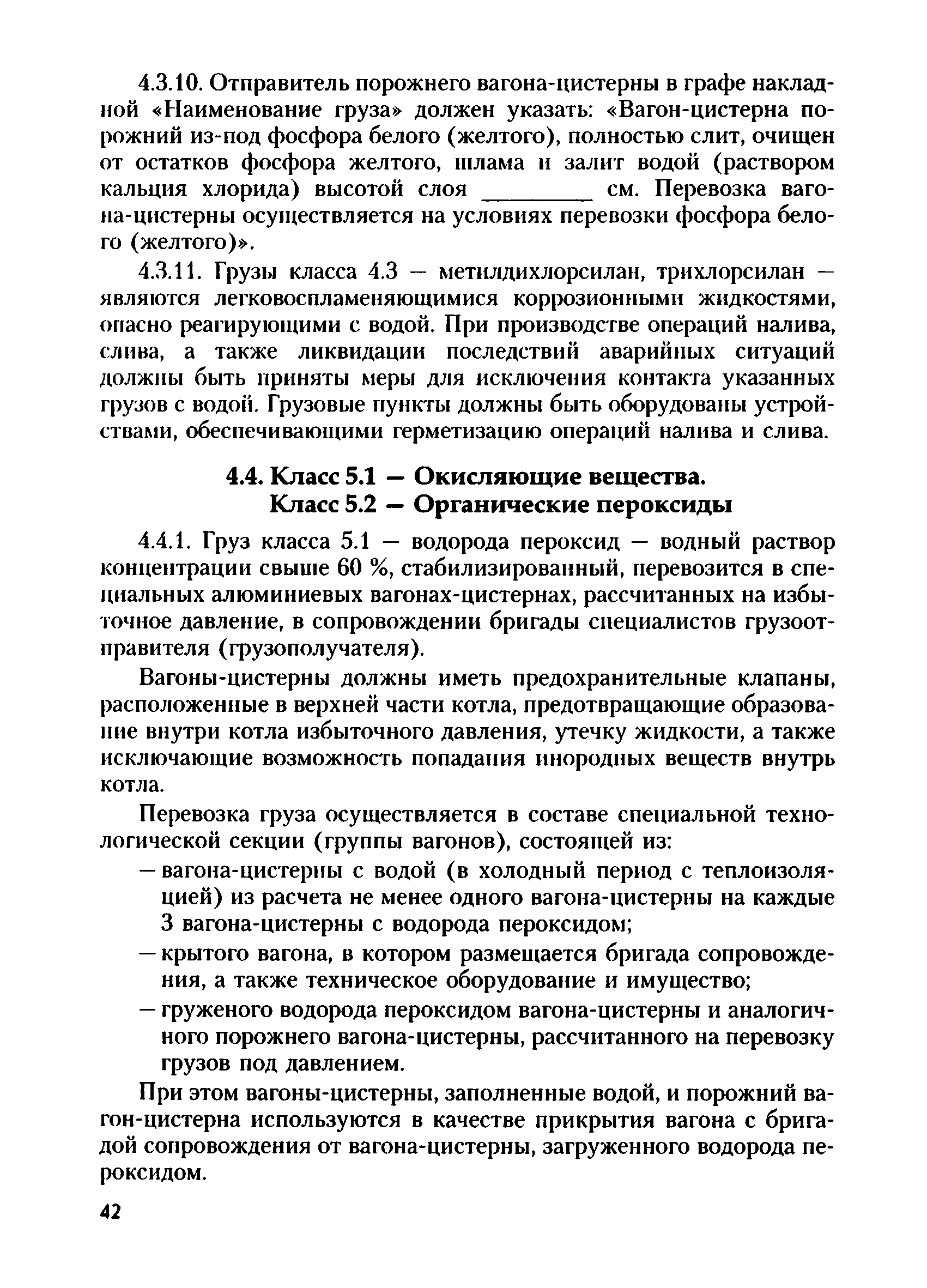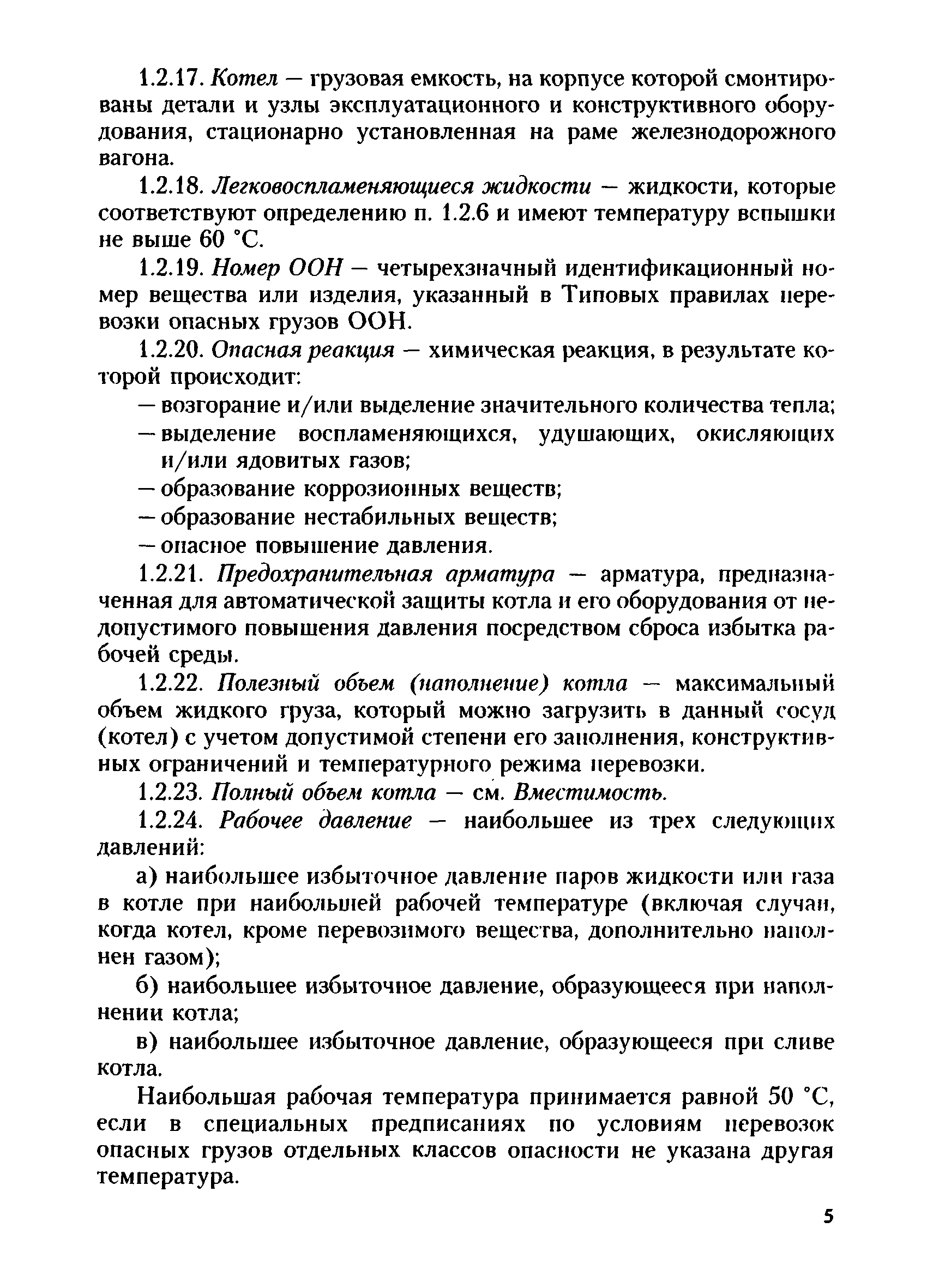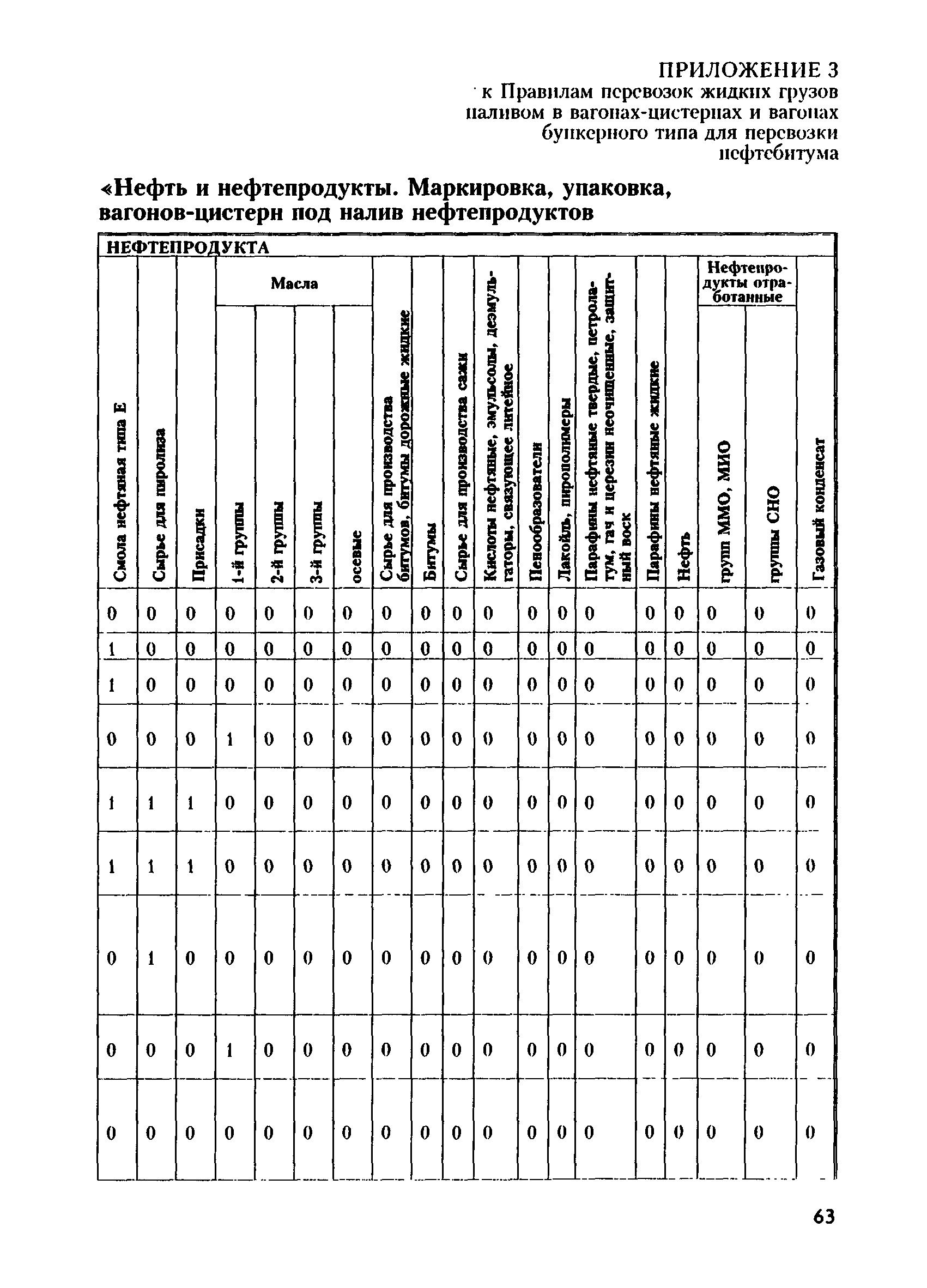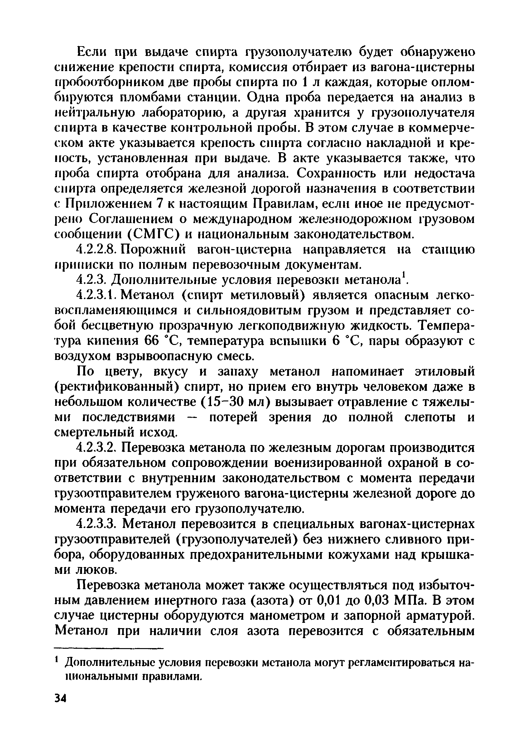 | Оглавление: | 1. Общие положения 2. Требования к вагонам-цистернам и вагонам бункерного типа для перевозки нефтебитума 3. Предписания по эксплуатации 3.1. Использование вагонов-цистерн и вагонов бункерного типа 3.2. Налив 3.3. Слив 3.4. Маркировка 3.5. Оформление перевозочных документов 4. Специальные условия перевозок опасных грузов наливом в вагонах-цистернах 4.1. Класс 2 - Газы 4.2. Класс 3 - Легковоспламеняющиеся жидкости 4.3. Класс 4.1 - Легковоспламеняющиеся твердые вещества 4.3. Класс 4.2 - Самовозгорающиеся вещества 4.3. Класс 4.3 - Вещества, выделяющие воспламеняющиеся газы при взаимодействии с водой 4.4. Класс 5.1 - Окисляющие вещества 4.4. Класс 5.2 - Органические пероксиды 4.5. Класс 6.1 - Ядовитые вещества 4.6. Класс 8 - Едкие и коррозионные вещества 4.7. Класс 9 - Прочие и опасные грузы 5. Порядок действий при обнаружении неисправности вагонов-цистерн 6. Дополнительные условия перевозки пищевых грузов наливом в вагонах-цистернах Приложение 1. Алфавитный указатель неопасных грузов, допущенных к перевозке наливом в вагонах-цистернах и вагонах бункерного типа Приложение 2. Свидетельство о техническом состоянии вагона-цистерны для перевозки опасного груза Приложение 3. Требования ГОСТ 1510-84 «Нефть и нефтепродукты. Маркировка, упаковка, транспортирование и хранение» к подготовке вагонов-цистерн под налив нефтепродуктов Приложение 4. Порядок определения массы нефти и нефтепродуктов в вагонах-цистернах расчетным способом Приложение 5. Отличительные полосы, наносимые на вагоны-цистерны Приложение 6. Формы пересылочных накладных ГУ-27дс, ГУ-27дт Приложение 7. Порядок проверки сохранности и определения размера недостачи спирта этилового ректификованного |