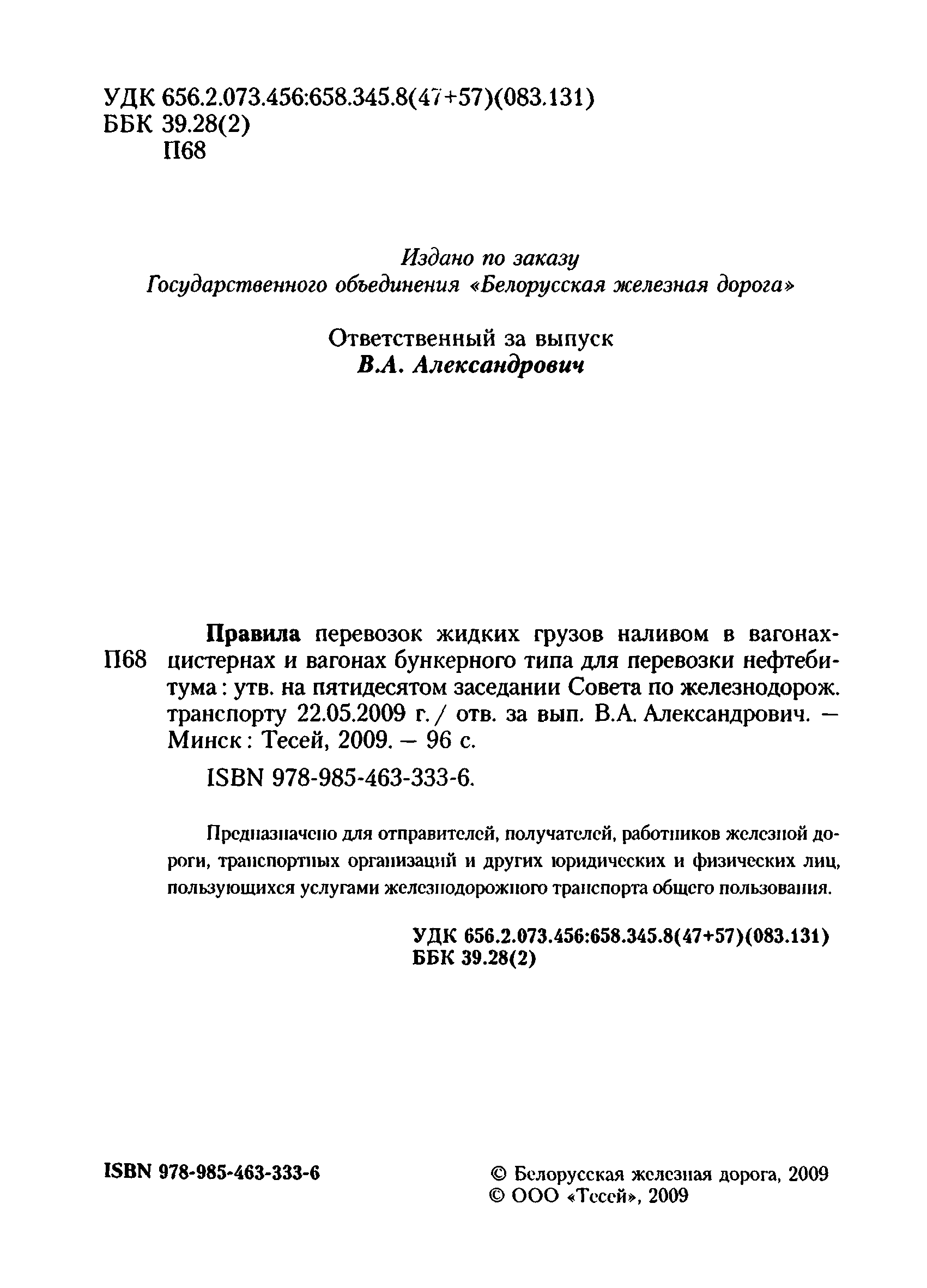 | Название рус.: | Правила перевозок жидких грузов наливом в вагонах-цистернах и вагонах бункерного типа для перевозки нефтебитума |