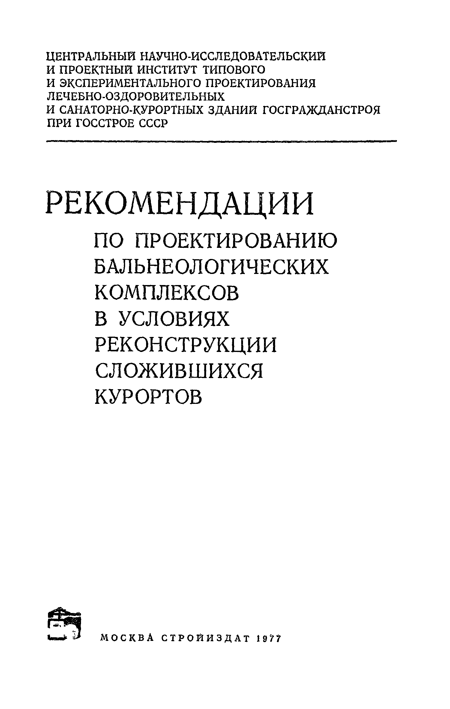 | Название рус.: | Рекомендации по проектированию бальнеологических комплексов в условиях реконструкции сложившихся курортов |