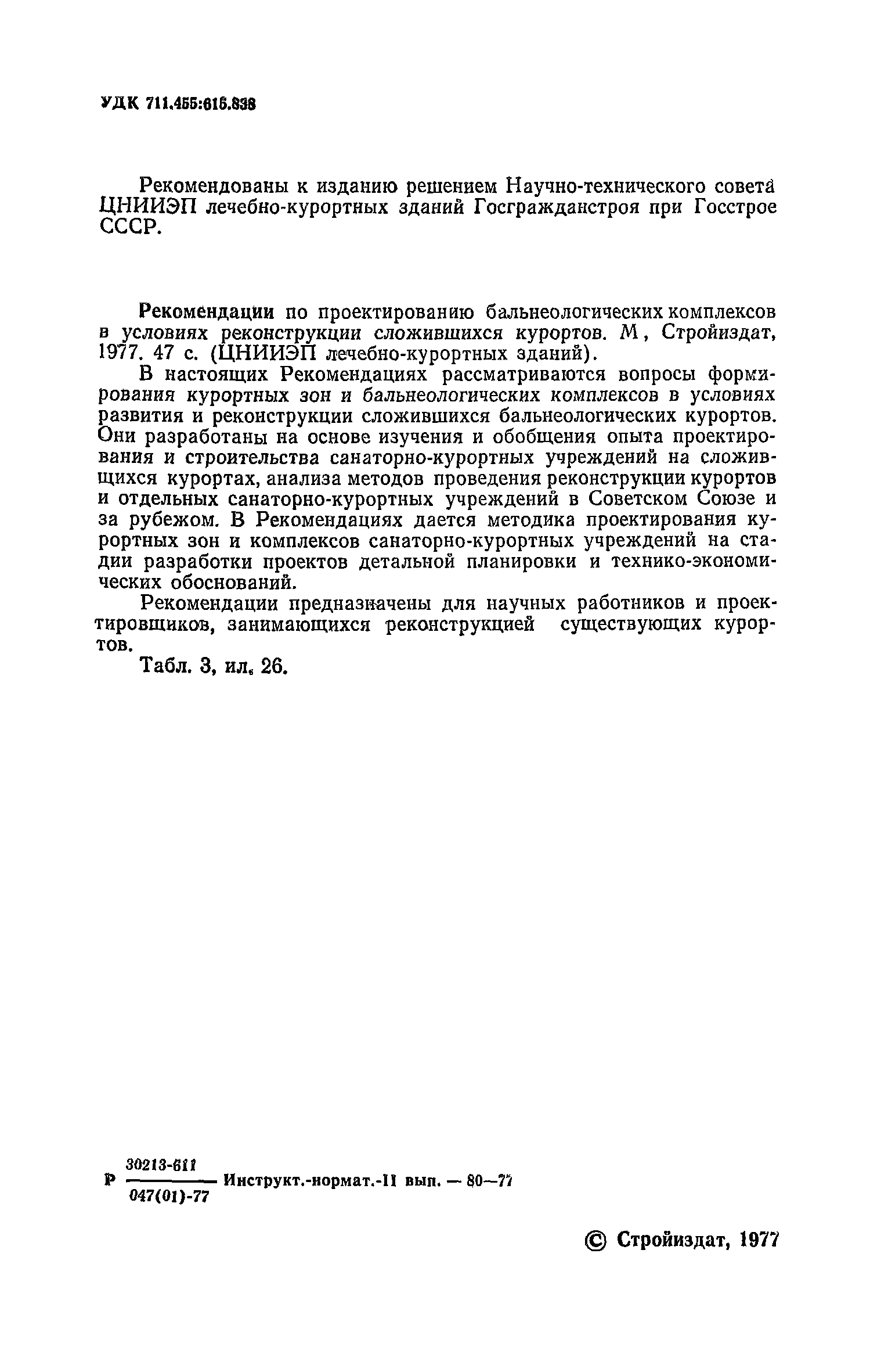| Область применения: | Рекомендации предназначены для научных работников и проектировщиков, занимающихся реконструкцией существующих курортов. |
