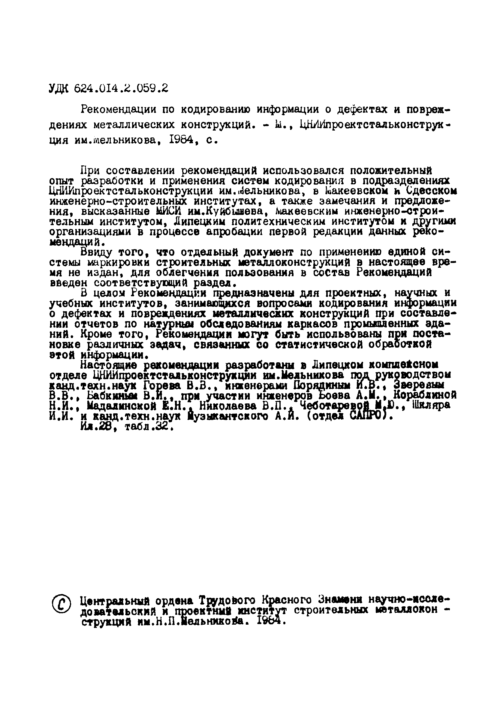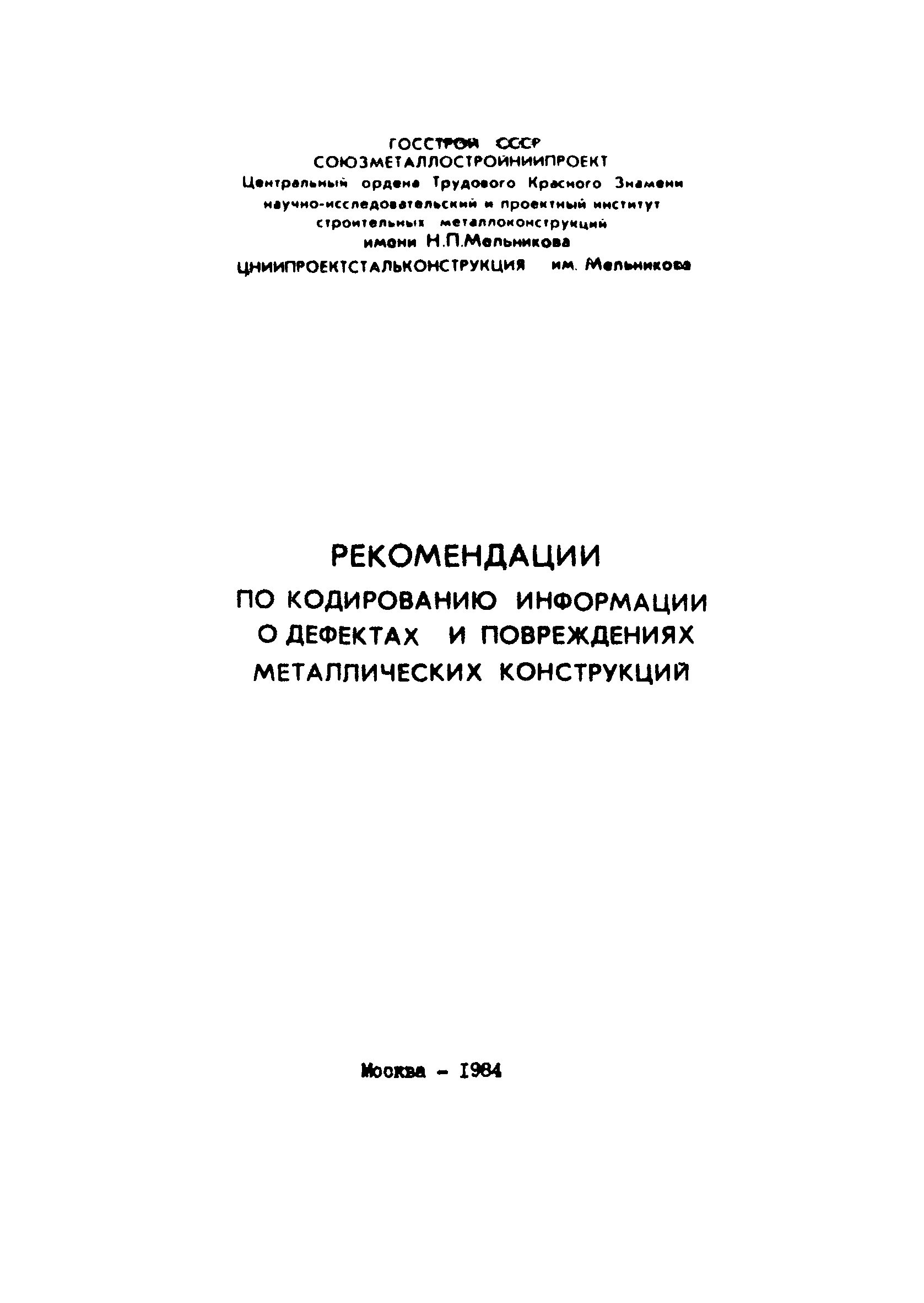 | Название рус.: | Рекомендации по кодированию информации о дефектах и повреждениях металлических конструкций |