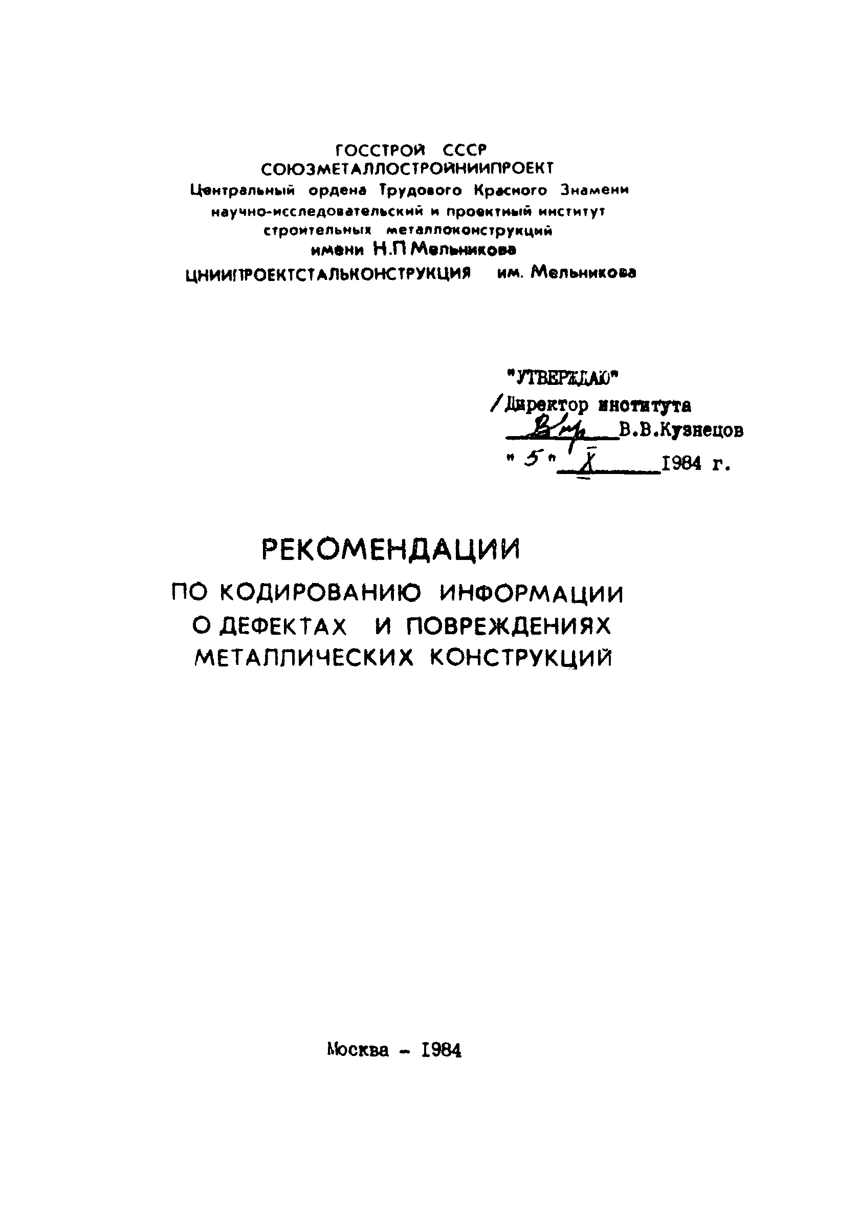 | Утверждён: | 05.10.1984 Союзметаллостройниипроект (Soyuzmetallostroyniiproject )