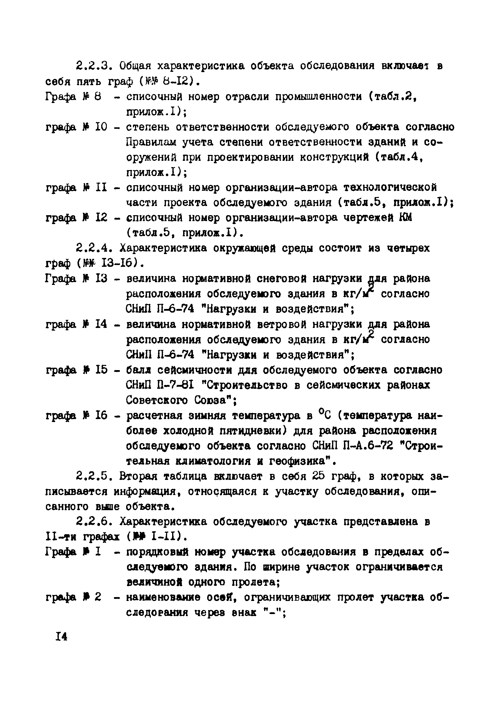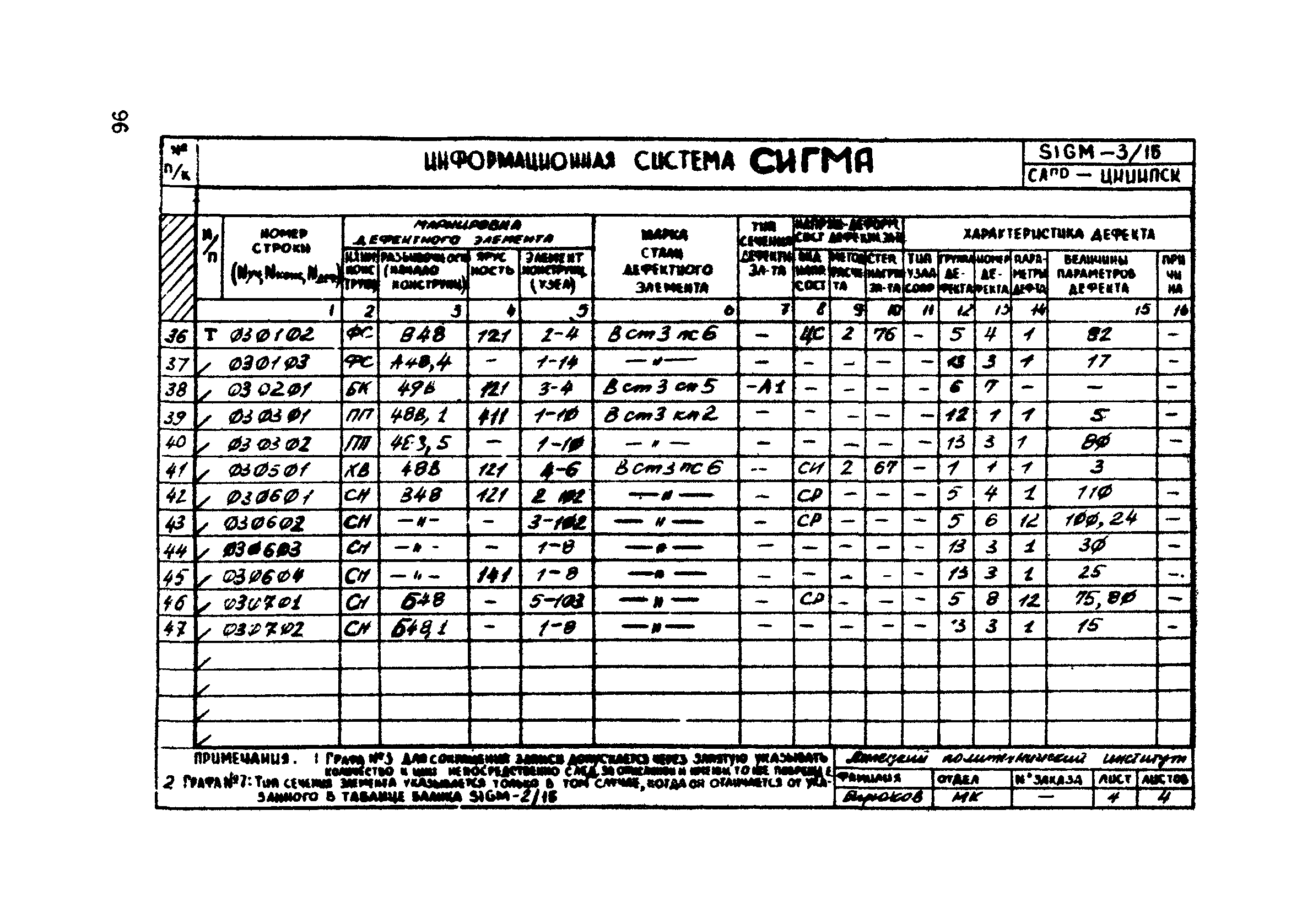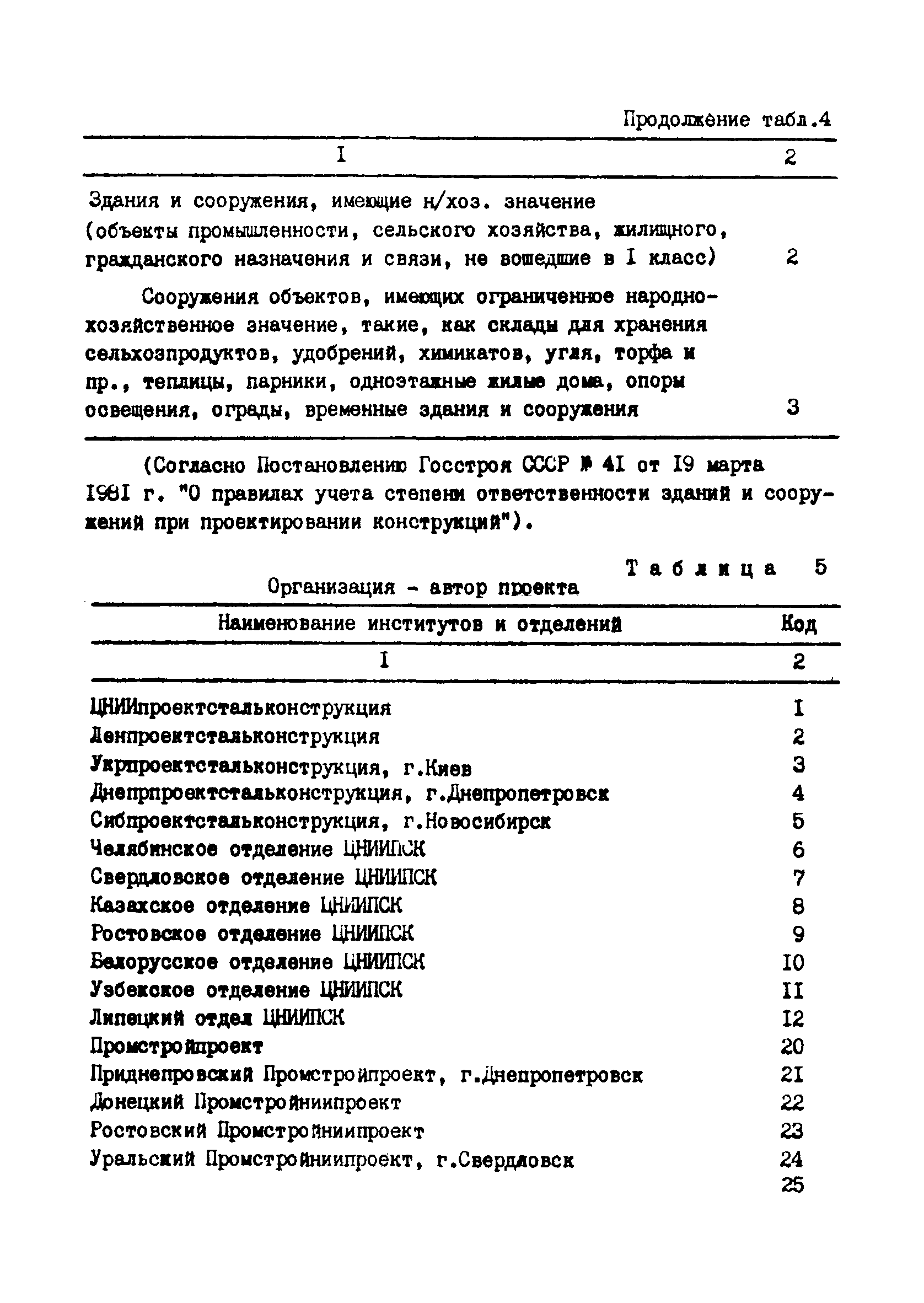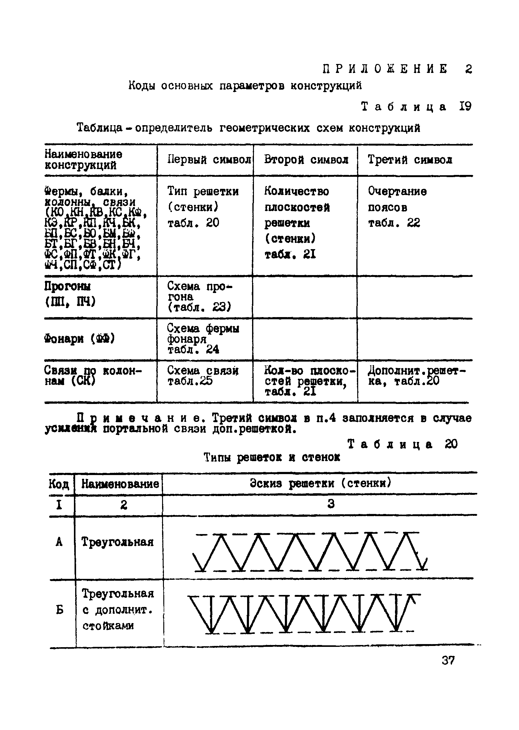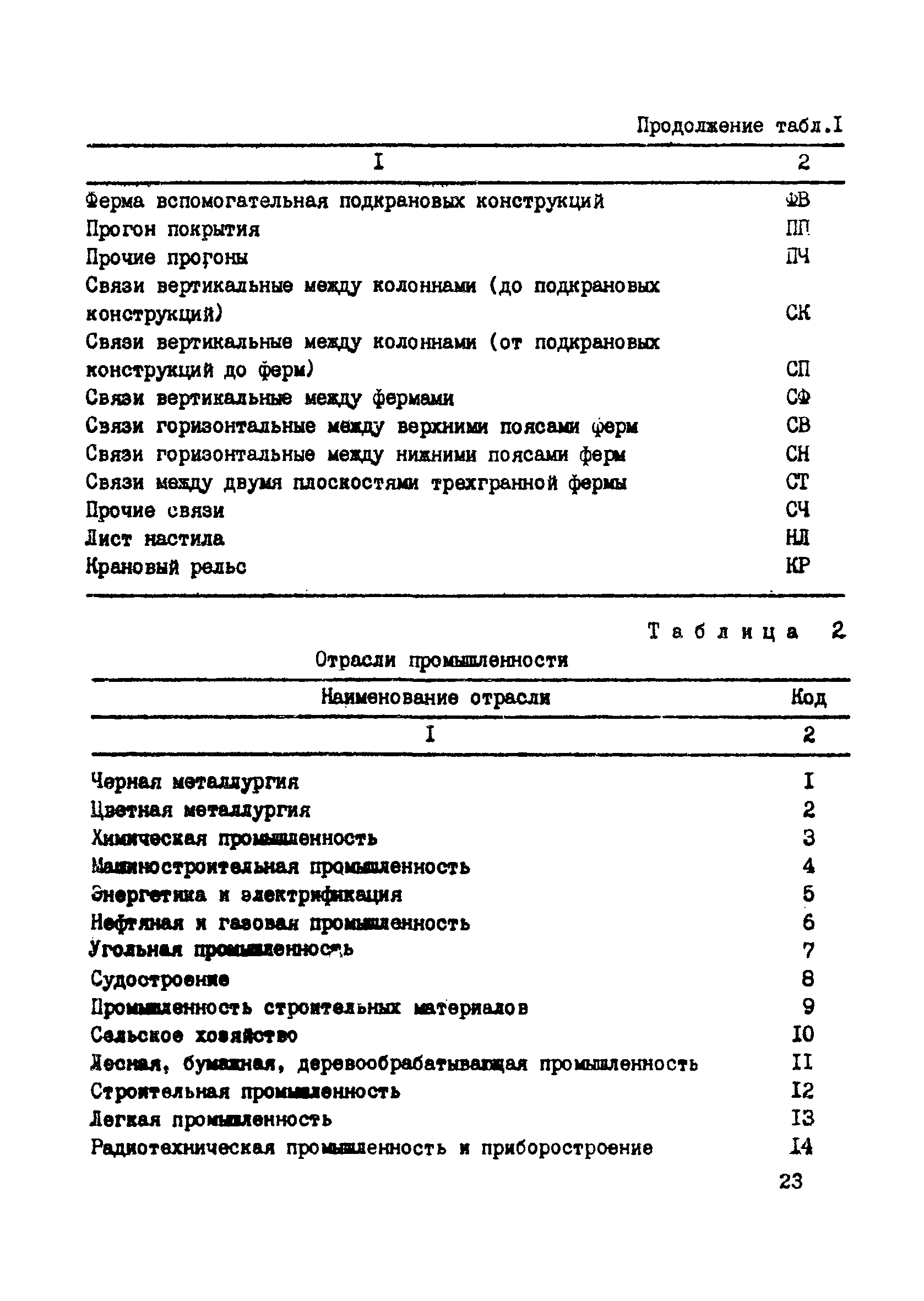 | Оглавление: | I Правила маркировки металлоконструкций производственных зданий и их элементов 1.1 Разбивочные оси здания и системы координат 1.2 Маркировка конструкций в системе всего здания 1.3 Маркировка узлов и элементов конструкций 1.4 Особенности маркировки конструкций 1.5 Назначение разбивочных осей здания при отсутствии проектной документации II Правила кодирования информации о дефектах и повреждениях 2.1 Общие указания 2.2 Порядок заполнения бланка SIGM - 1/1Б 2.3 Порядок выполнения бланка SIGM - 2/1Б 2.4 Порядок заполнения бланка SIGM - 3/1Б Приложение 1. Таблицы для кодирования условий эксплуатации конструкций Приложение 2. Коды основных параметров конструкций Приложение 3. Классификация дефектов и повреждений металлических конструкций Приложение 4. Маркировка конструктивных узлов колонн приложение 5. Пример заполнения бланков кодирования |