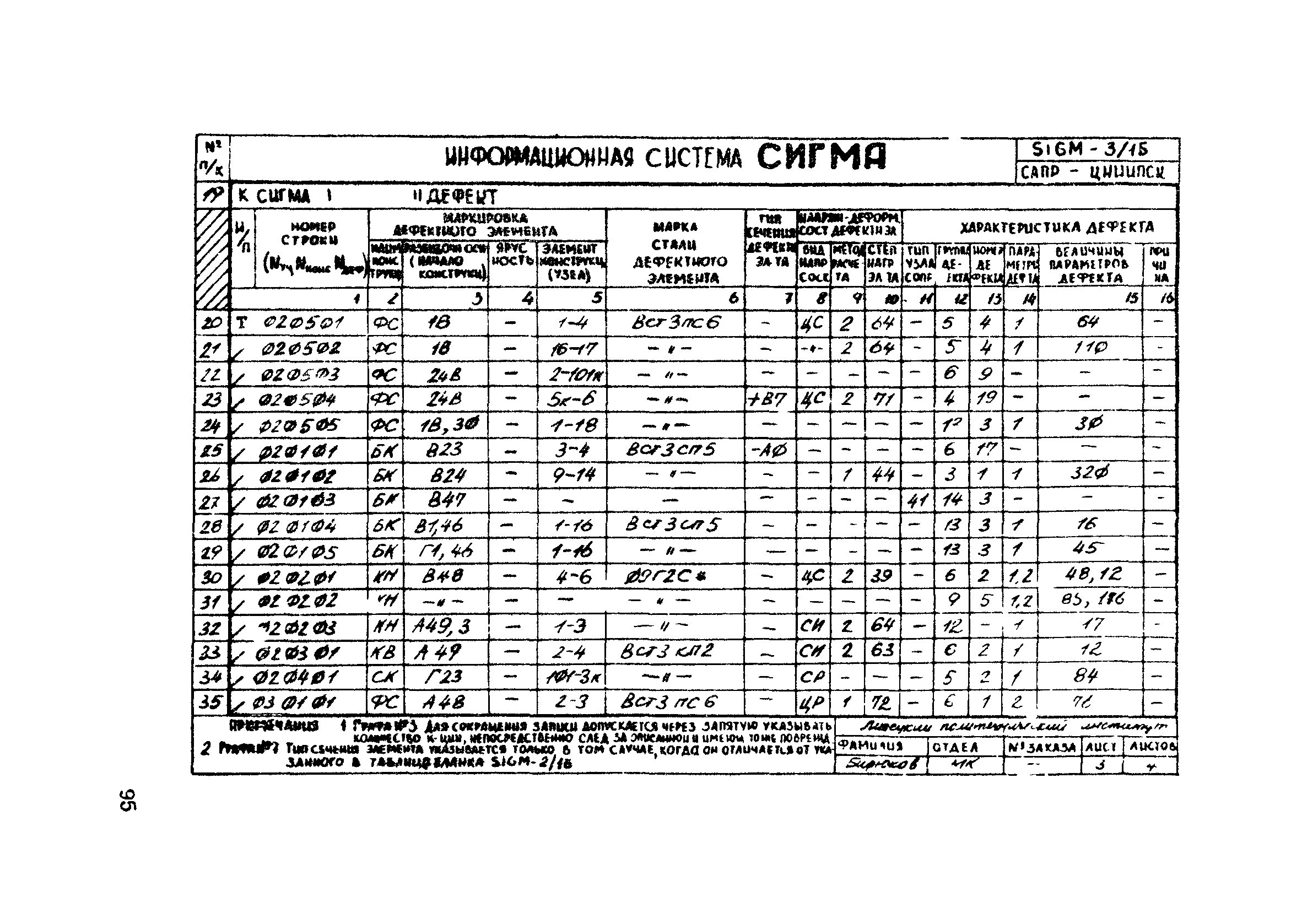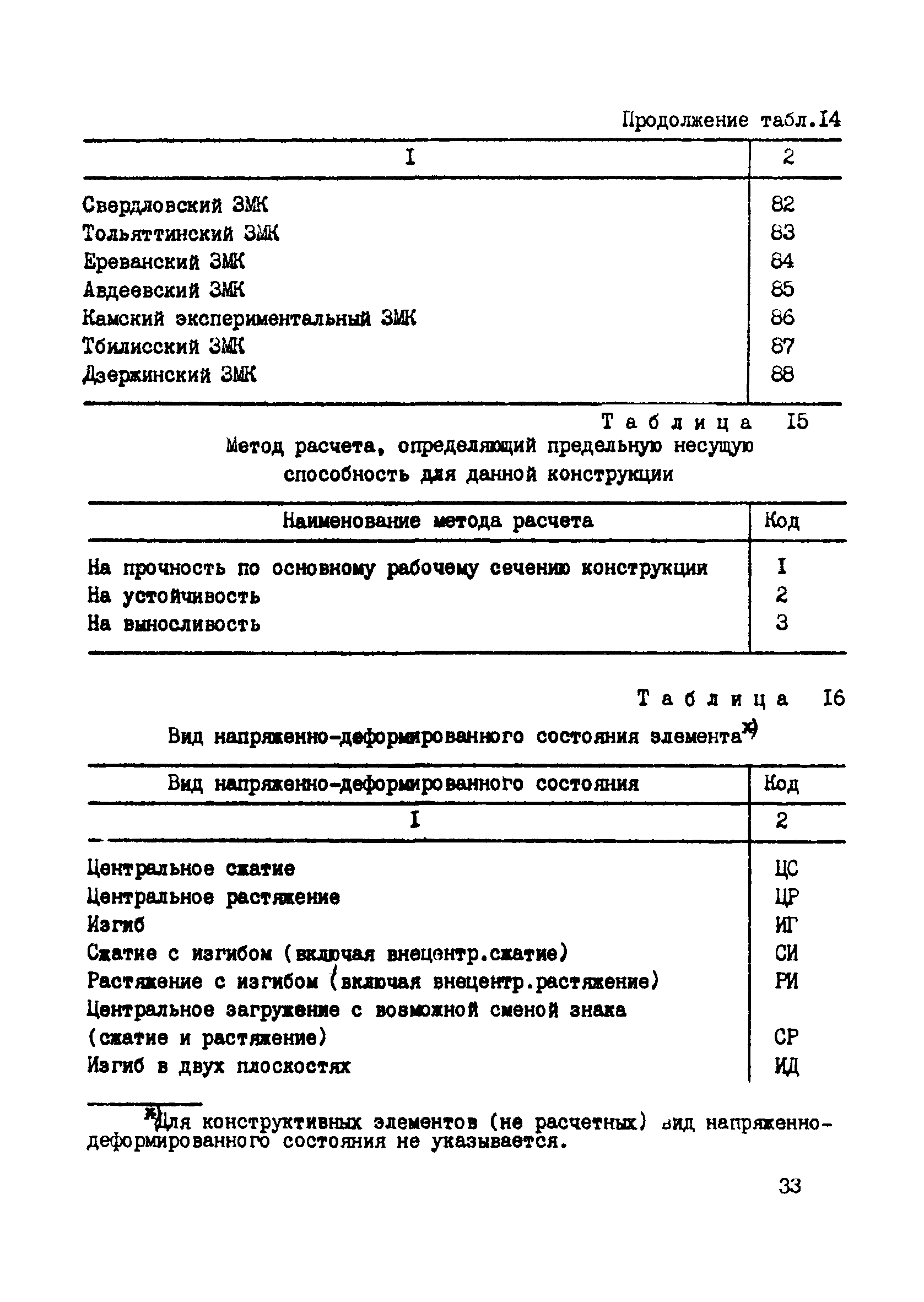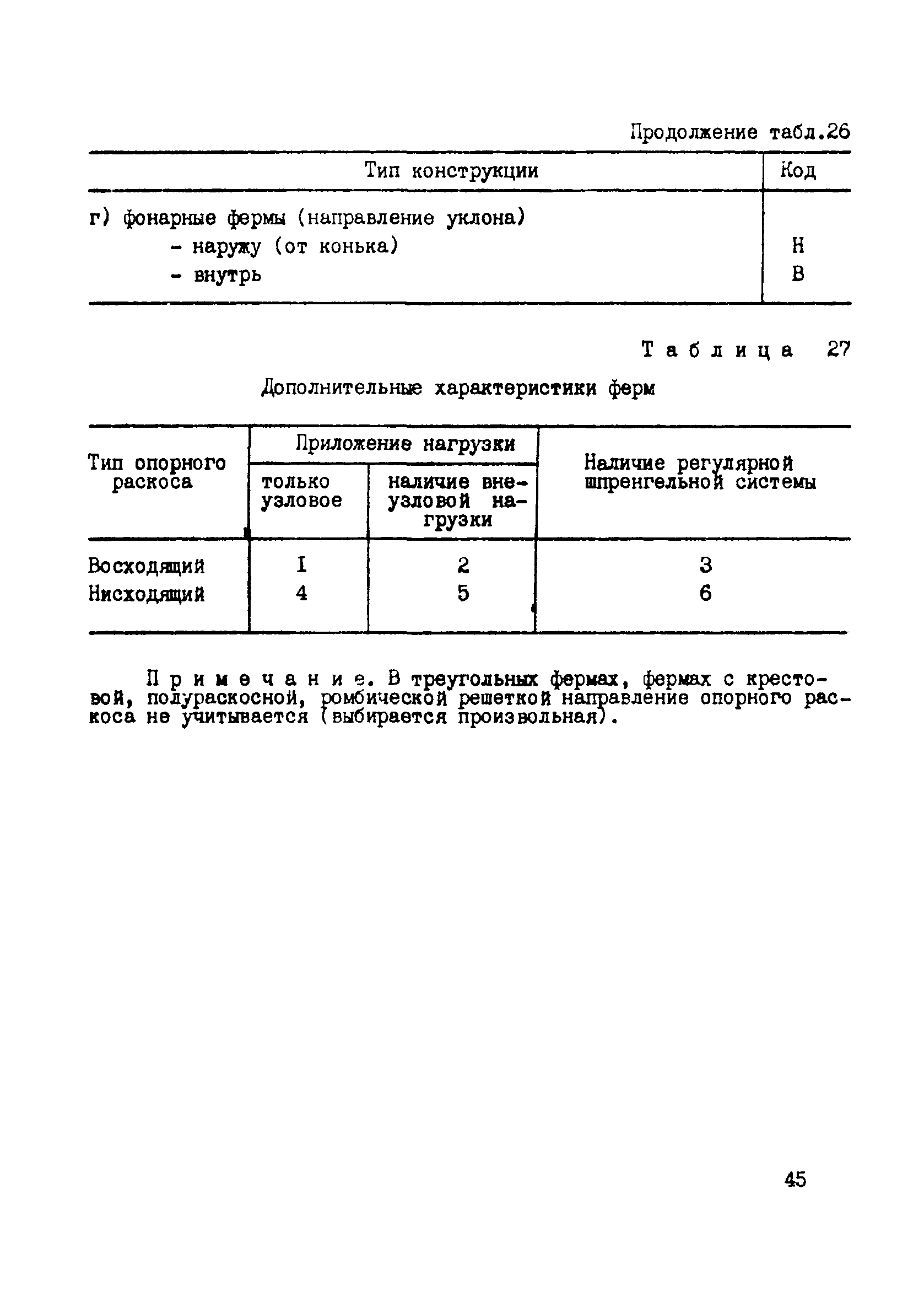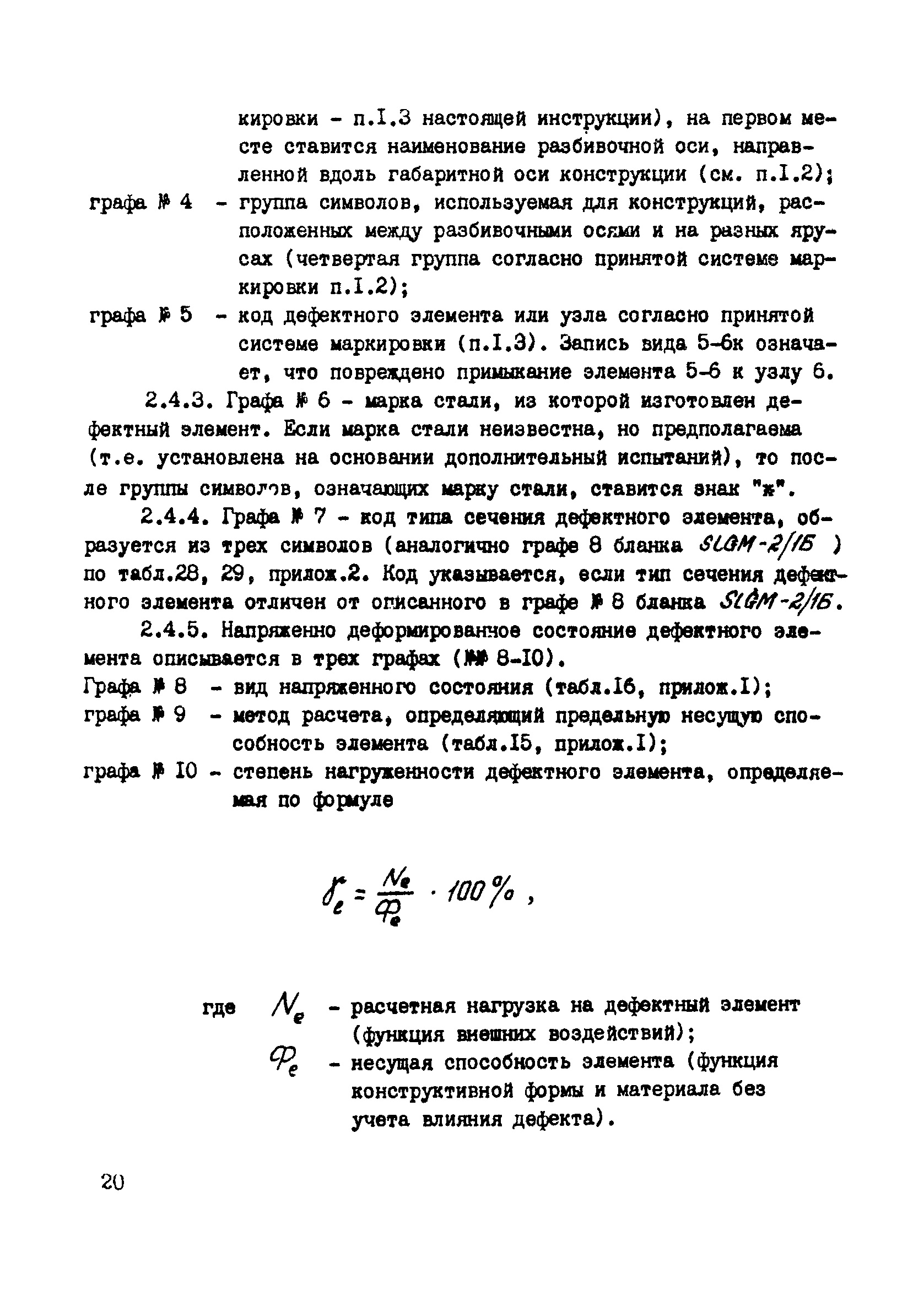 | Оглавление: | I Правила маркировки металлоконструкций производственных зданий и их элементов 1.1 Разбивочные оси здания и системы координат 1.2 Маркировка конструкций в системе всего здания 1.3 Маркировка узлов и элементов конструкций 1.4 Особенности маркировки конструкций 1.5 Назначение разбивочных осей здания при отсутствии проектной документации II Правила кодирования информации о дефектах и повреждениях 2.1 Общие указания 2.2 Порядок заполнения бланка SIGM - 1/1Б 2.3 Порядок выполнения бланка SIGM - 2/1Б 2.4 Порядок заполнения бланка SIGM - 3/1Б Приложение 1. Таблицы для кодирования условий эксплуатации конструкций Приложение 2. Коды основных параметров конструкций Приложение 3. Классификация дефектов и повреждений металлических конструкций Приложение 4. Маркировка конструктивных узлов колонн приложение 5. Пример заполнения бланков кодирования |
