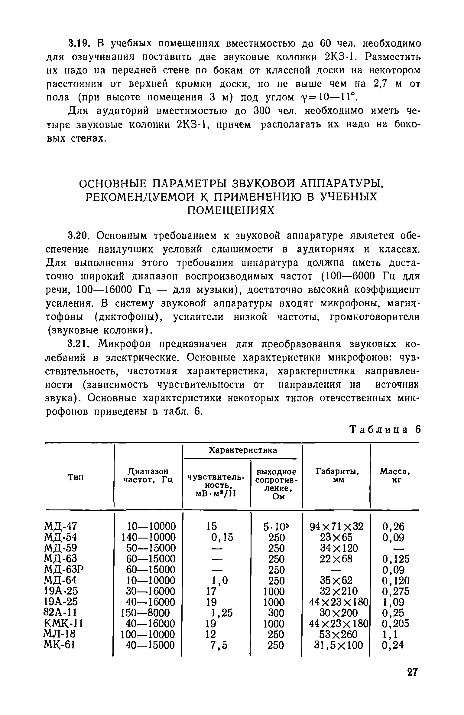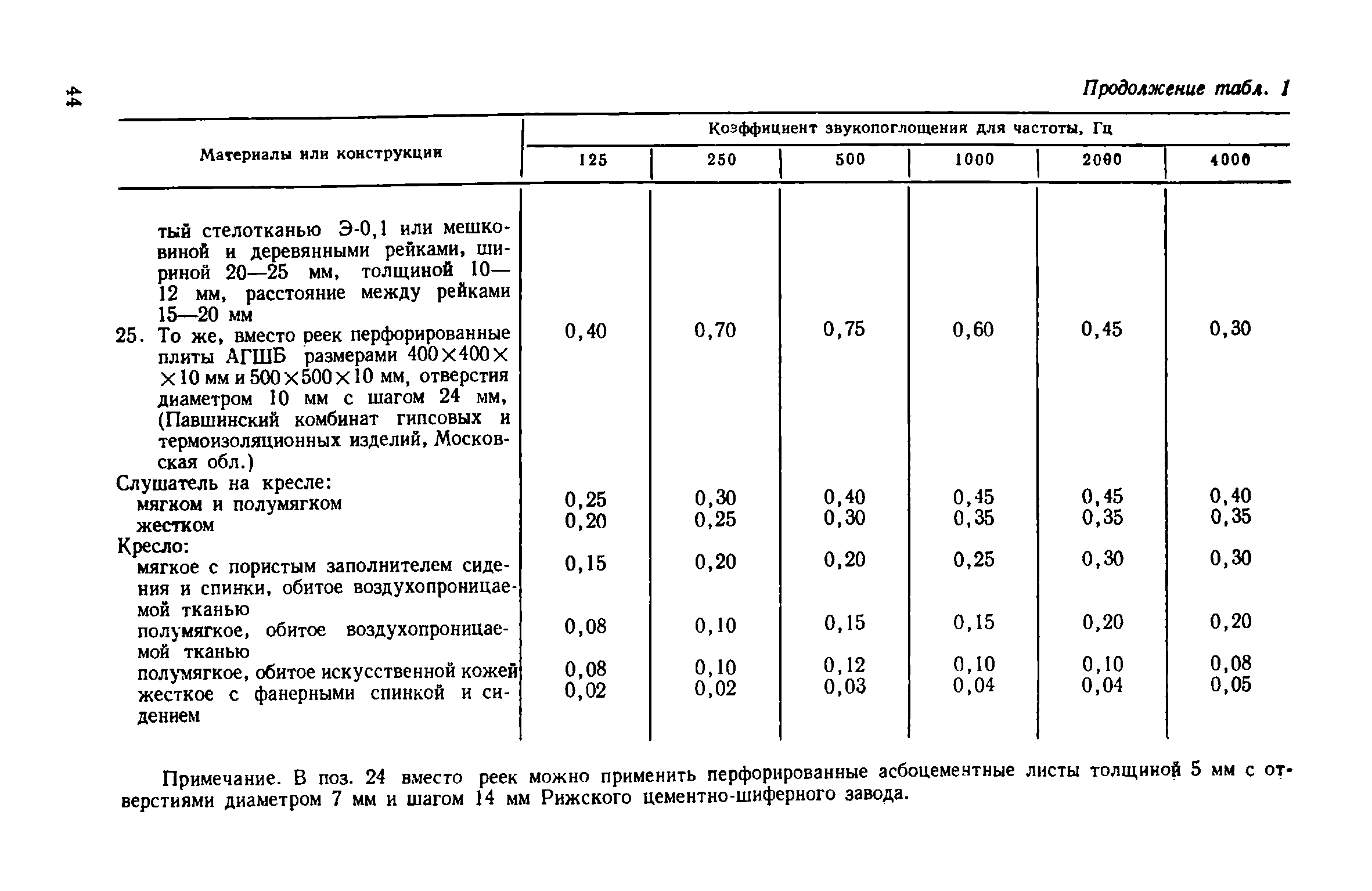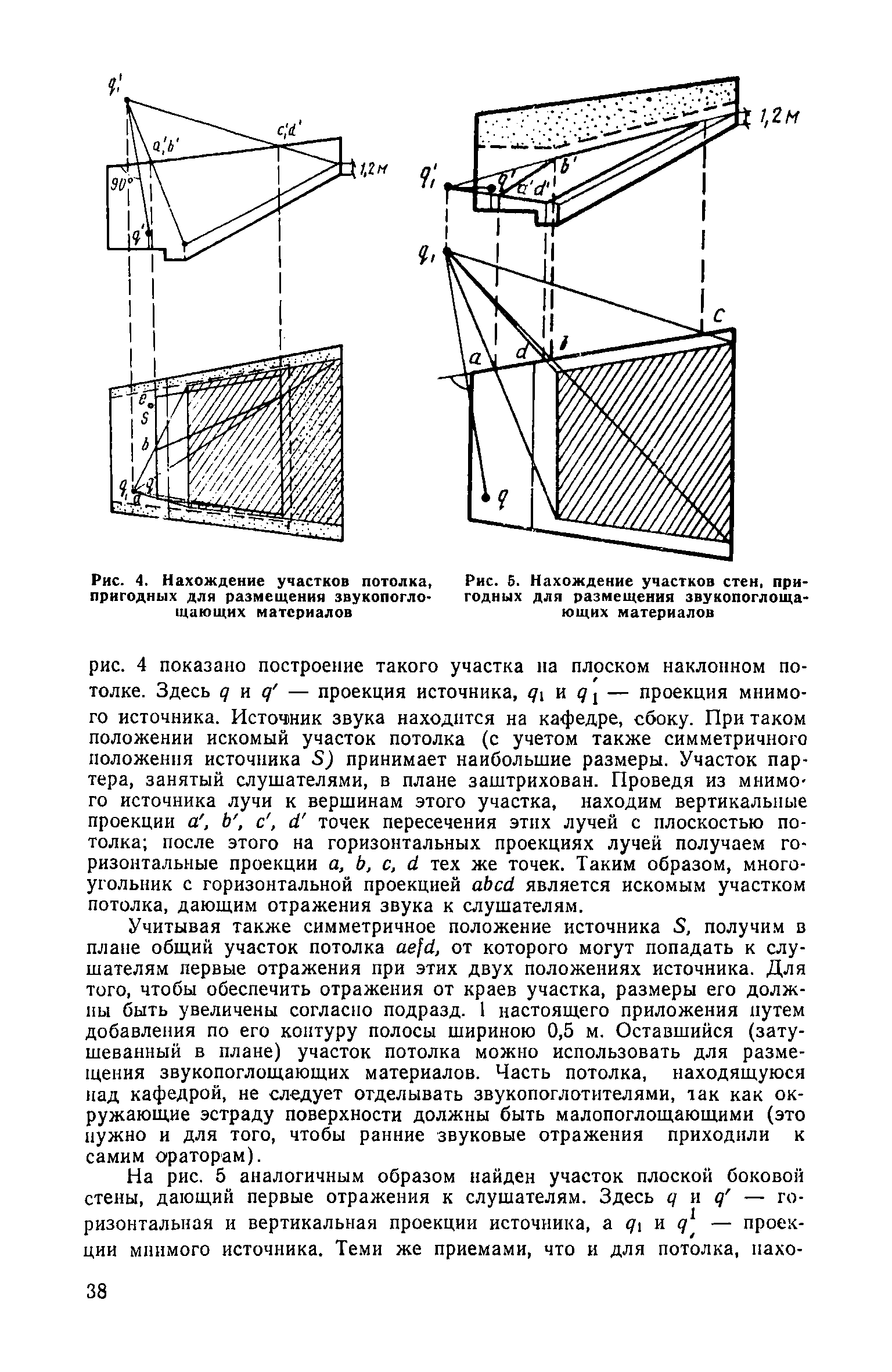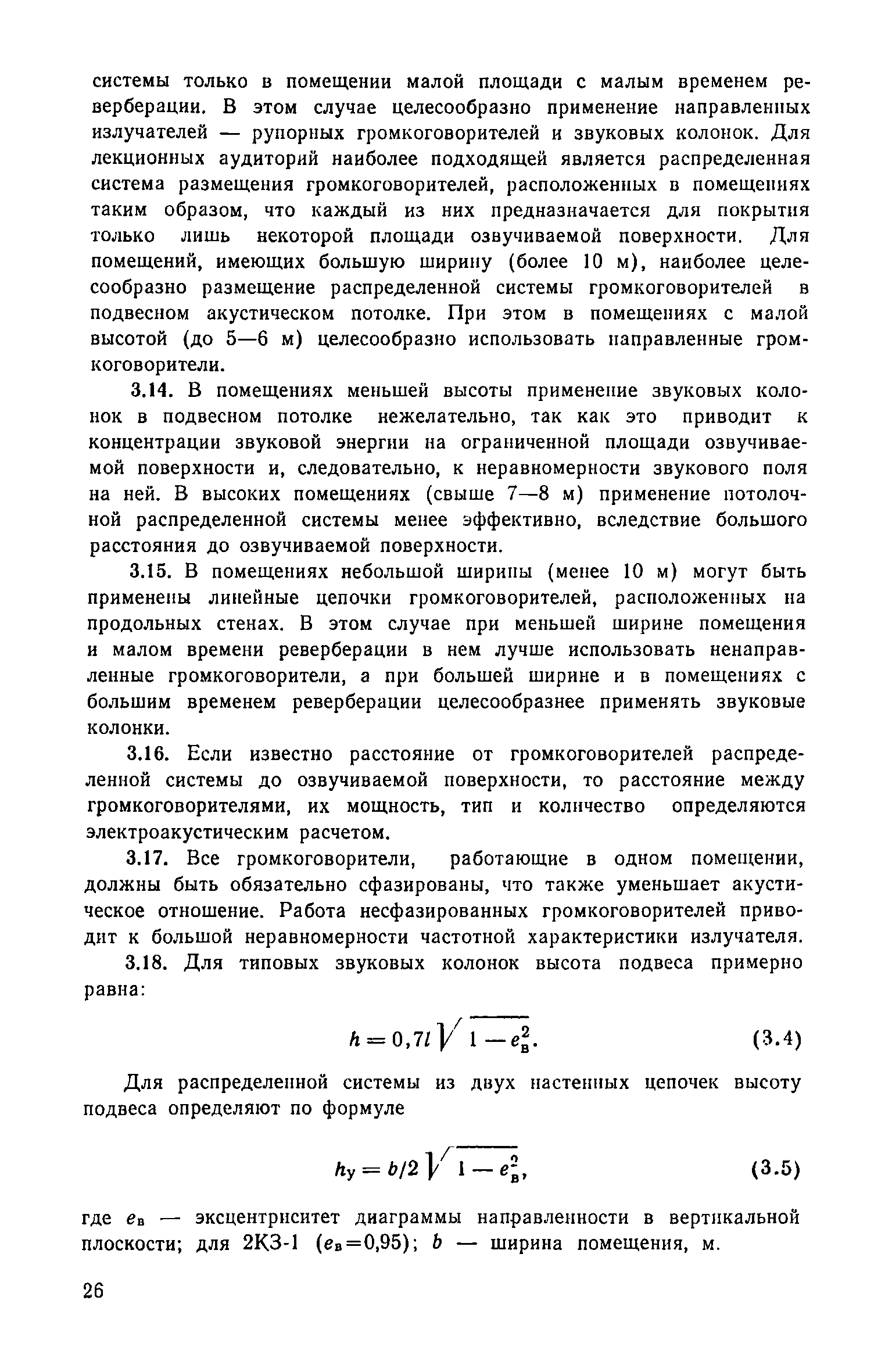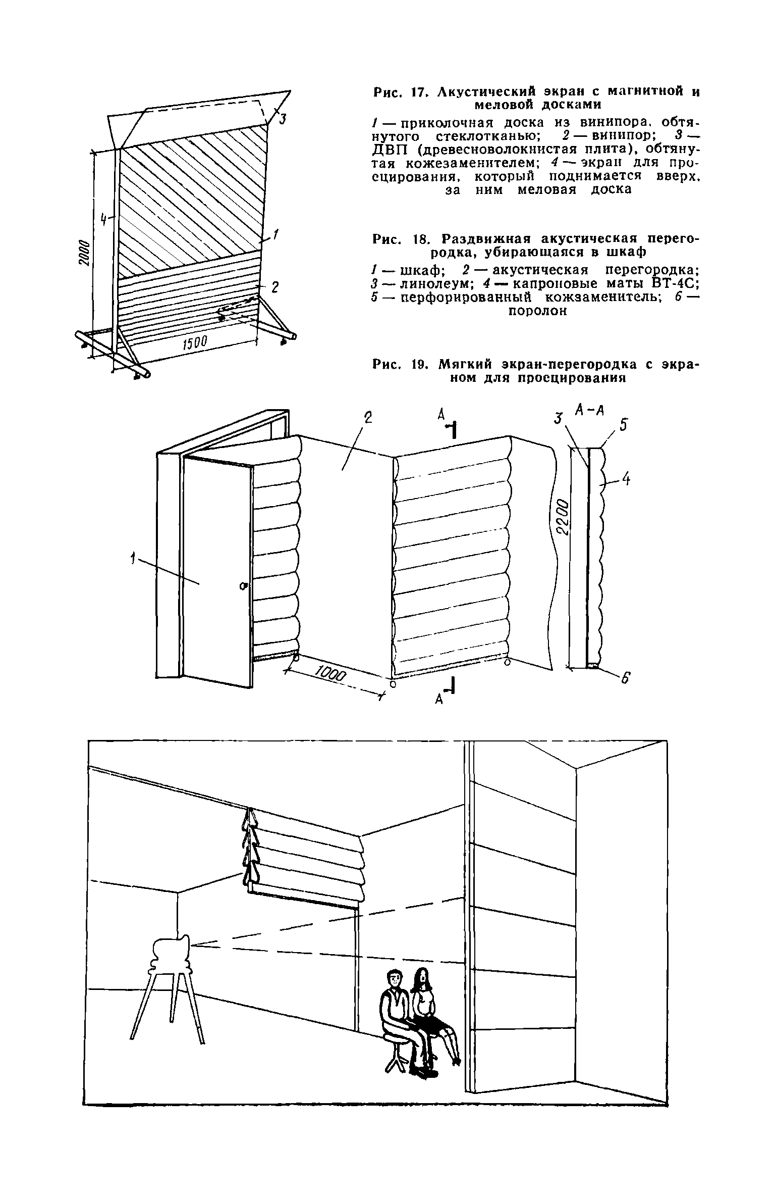 | Оглавление: | Предисловие 1. Общие положения Назначение и область применения Нормы допустимых уровней шума Снижение шума санитарно-технического и инженерного оборудования учебных зданий Размещение учебных зданий на жилой территории . 2. Основные требования по акустическому благоустройству учебных зданий Акустические требования к воздушному объему учебного помещения, его форме и очертаниям внутренних поверхностей Время реверберации учебных помещений Звукопоглощающая отделка аудиторий и звукопоглощение слушателей Разборчивость речи Требования к звукоизоляции ограждающих конструкций Требования к учебным помещениям со свободной планировкой 3. Требования к учебным помещениям с техническими средствами обучения (ТСО) Основные требования по выбору мощности, подбору и размещению электроакустической аппаратуры в учебных помещениях Основные параметры звуковой аппаратуры, рекомендуемой к применению в учебных помещениях Акустическая частотная характеристика учебного помещения Приложение 1. Некоторые акустические понятия и величины Приложение 2. Условия допустимости применения геометрических (лучевых) отражений и их построение 1. Условия допустимости применения геометрических (лучевых) отражений 2. Построение геометрических отражений 3. Участки внутренних поверхностей зала, пригодные для размещения звукопоглощающих материалов и для сильного расчленения Приложение 3. Акустический расчет учебных помещений Приложение 4. Коэффициенты звукопоглощения материалов и конструкций (табл. 1) и эквивалентная площадь звукопоглощения слушателей и кресел (табл. 2) Приложение 5. Методика расчета поправок при определении индексов изоляции воздушного шума ограждающей конструкцией и приведенного уровня ударного шума под перекрытием Приложение 6. Расчет эффективности сооружений, экранирующих шум Литература |