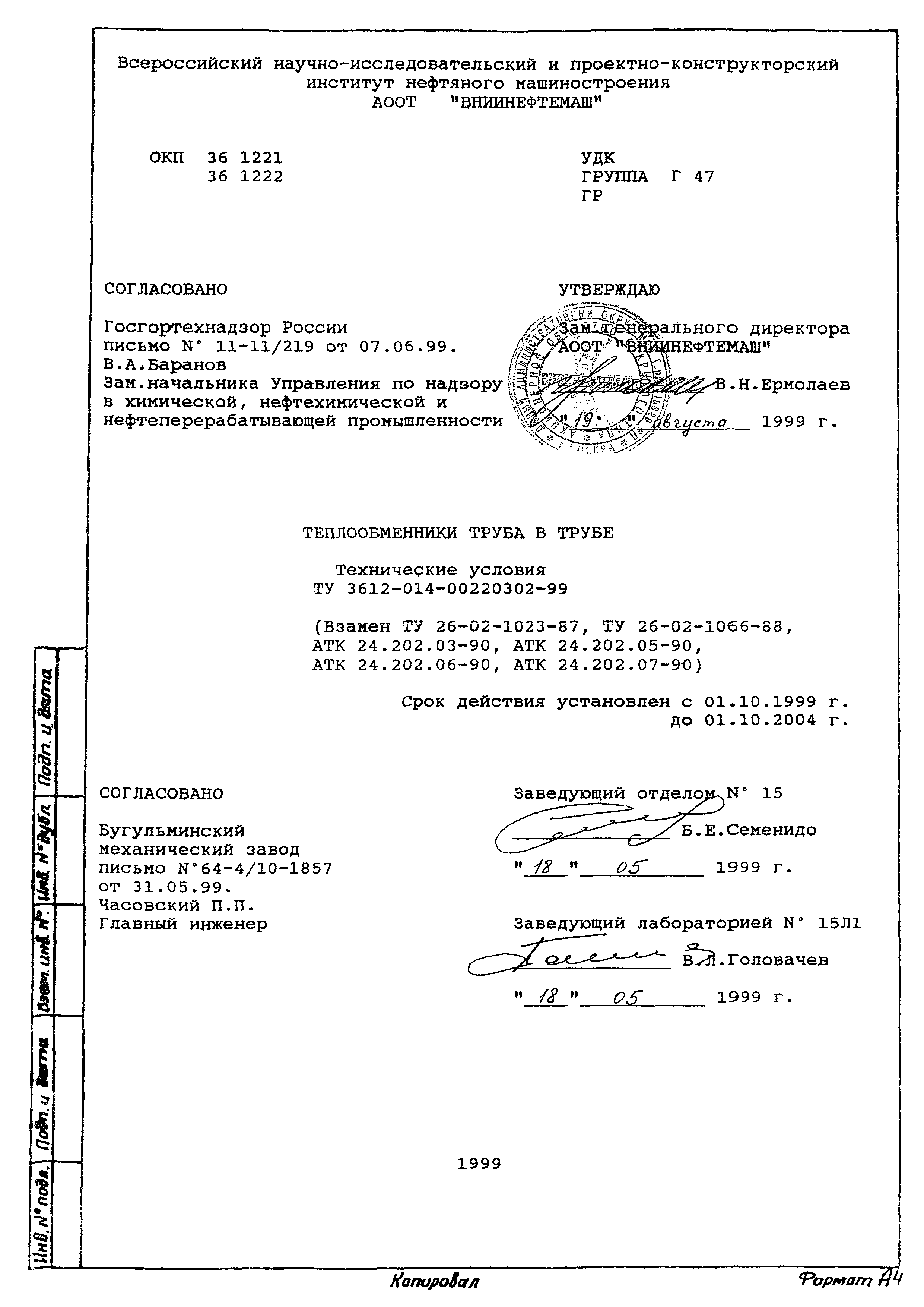 | Утверждён: | 19.08.1999 АООТ ВНИИНЕФТЕМАШ