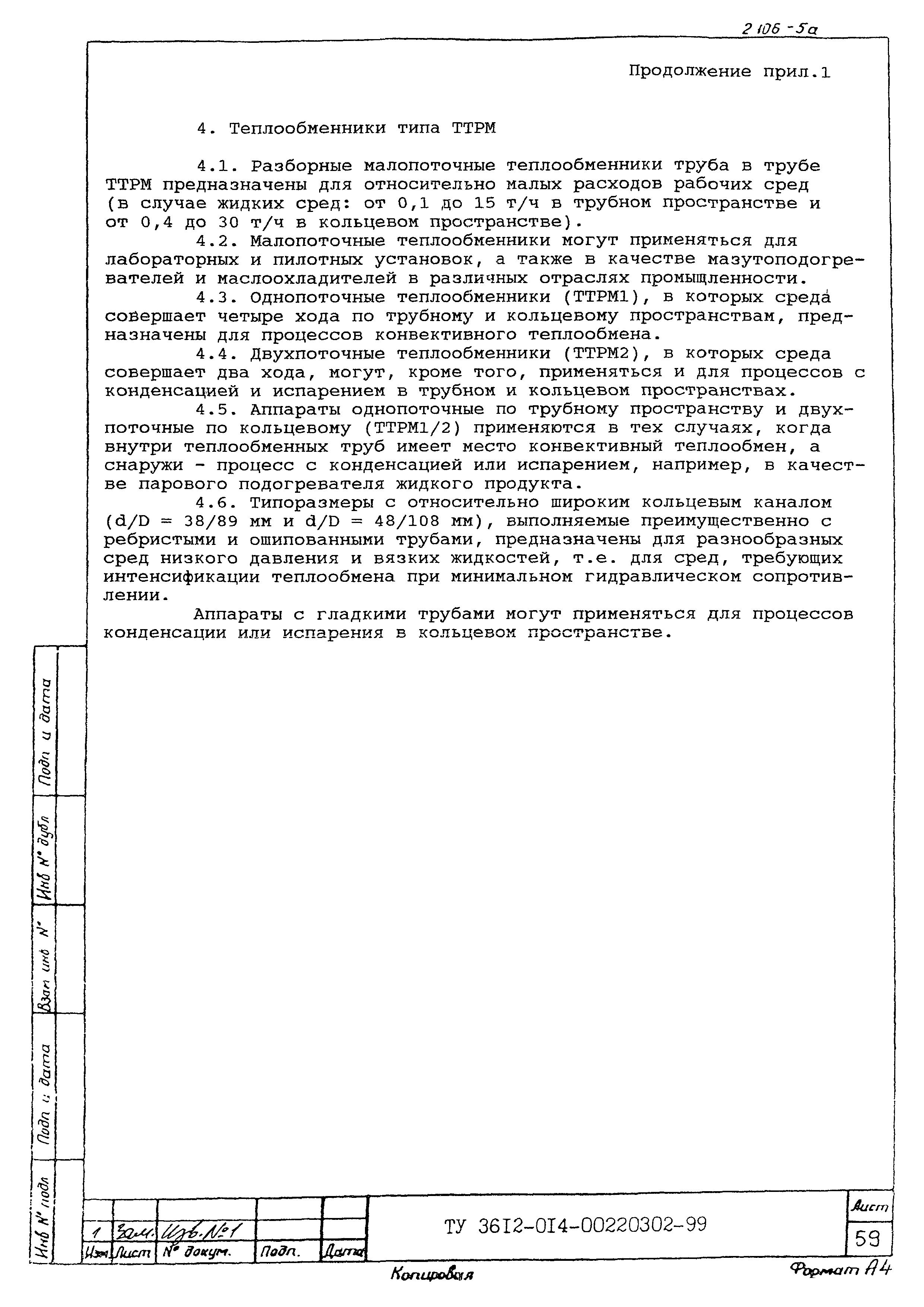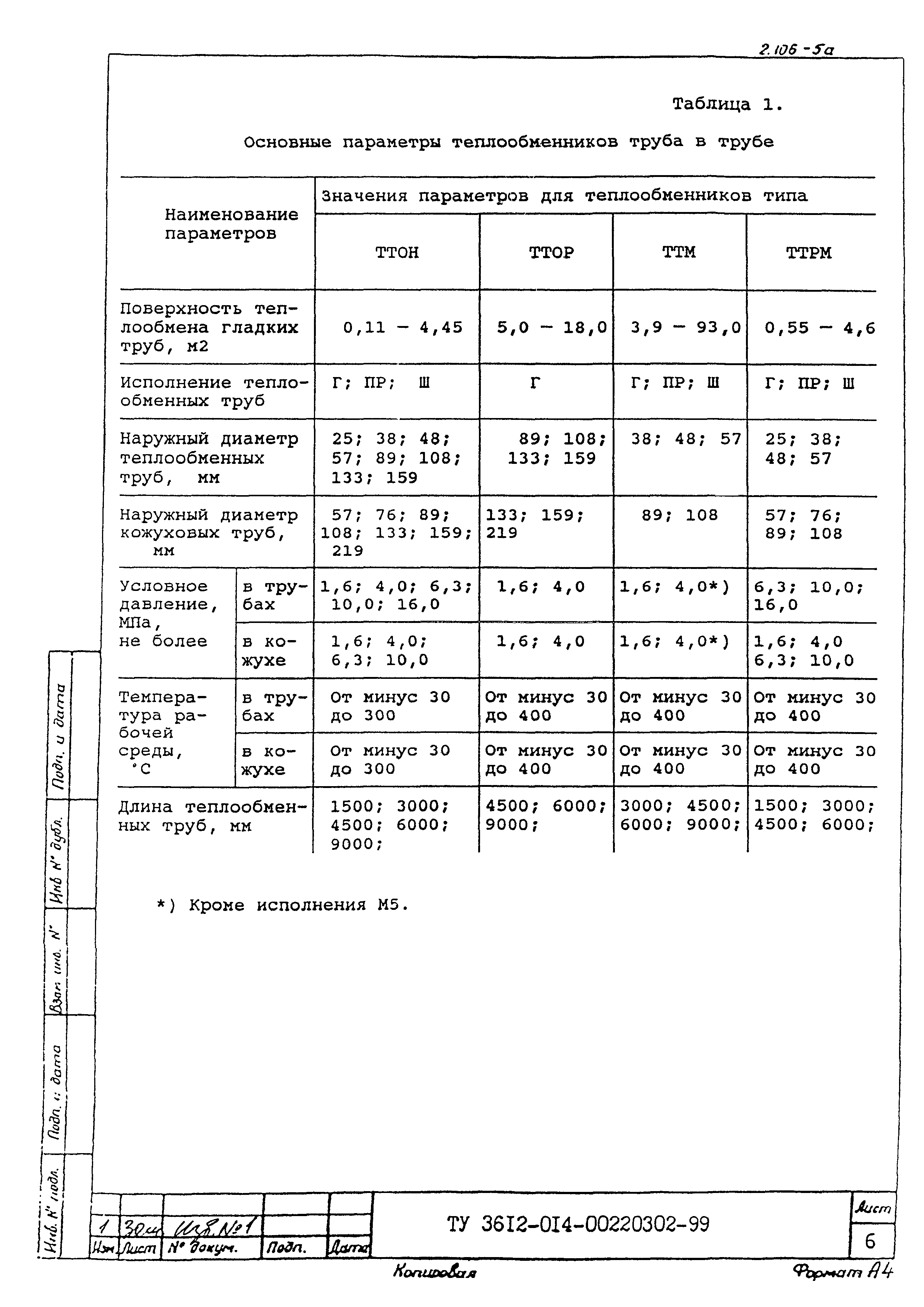 | Область применения: | Технические условия распространяются на теплообменные аппараты "труба в трубе" однопоточные разборные типа ТТОР, однопоточные неразборные типа ТТОН, многопоточные разборные типа ТТМ, разборные малогабаритные типа ТТРМ и их модификации. |