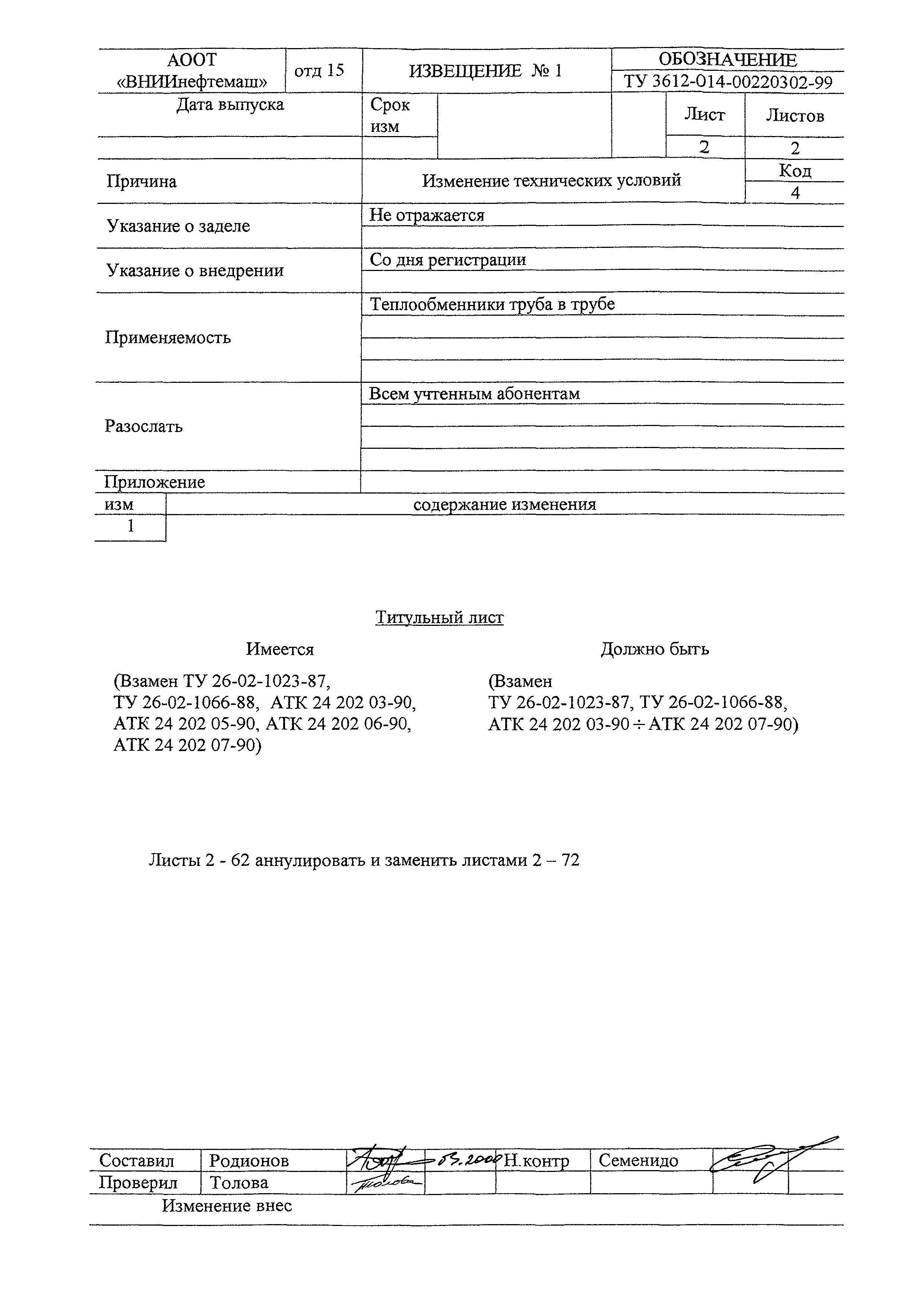| Заменяет собой: | - ТУ 26-02-1023-87