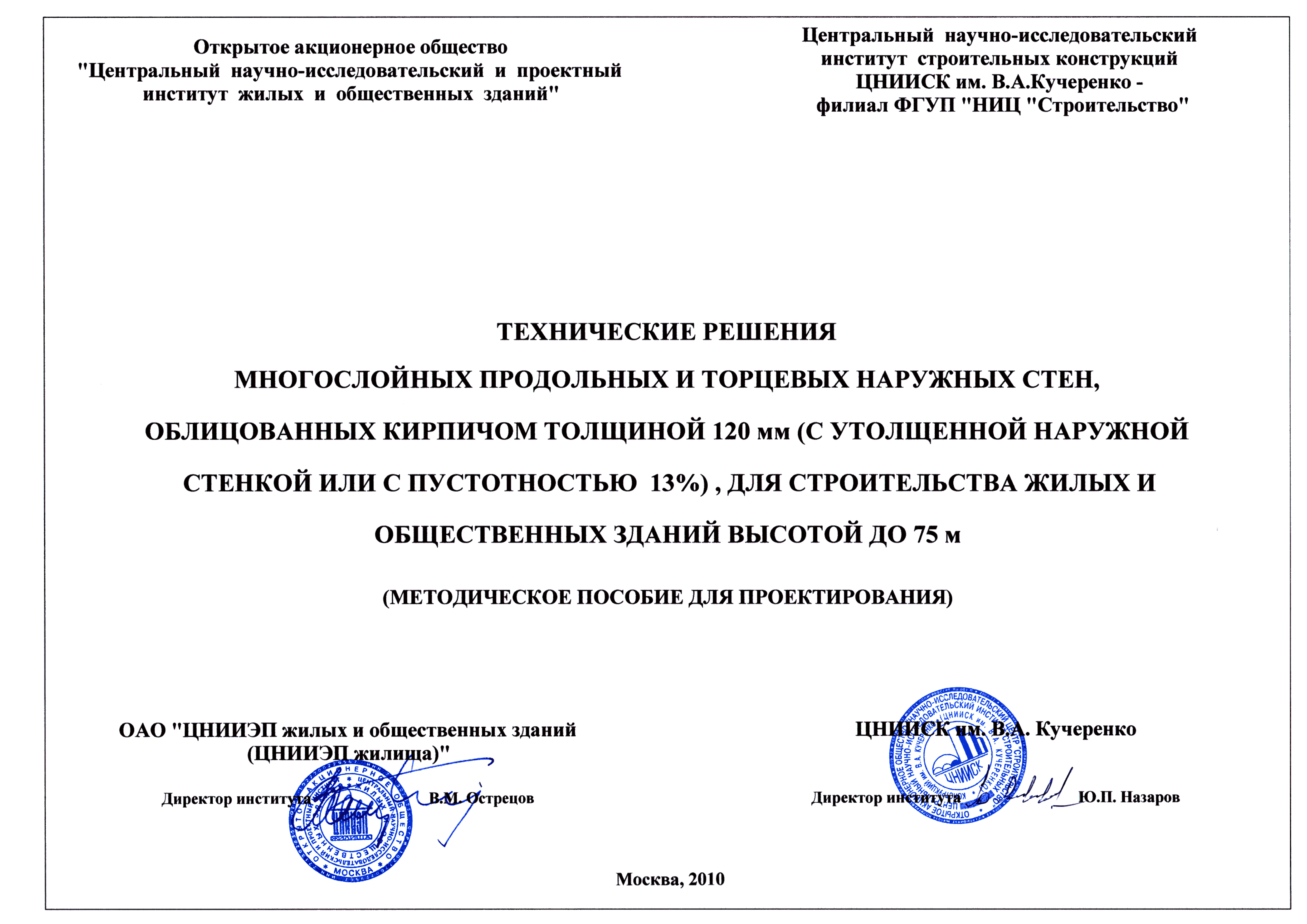 Скачать Технические решения многослойных продольных и торцевых наружных стен, облицованных кирпичом толщиной 120 мм (с утолщенной наружной стенкой или с пустотностью 13%), для строительства жилых и общественных зданий высотой до 75 м (методическое пособие для проектирования)Дата актуализации: 01.01.2021