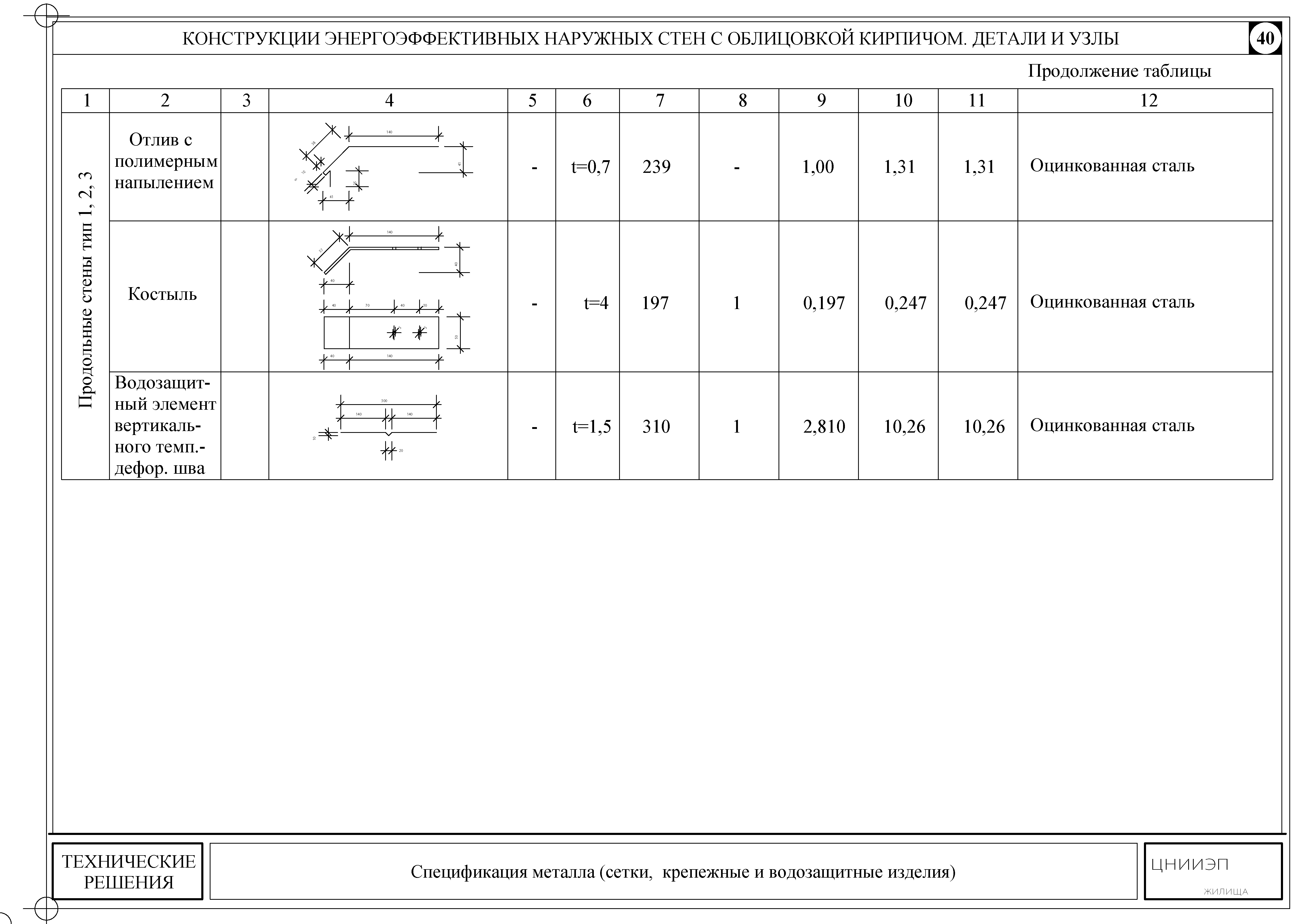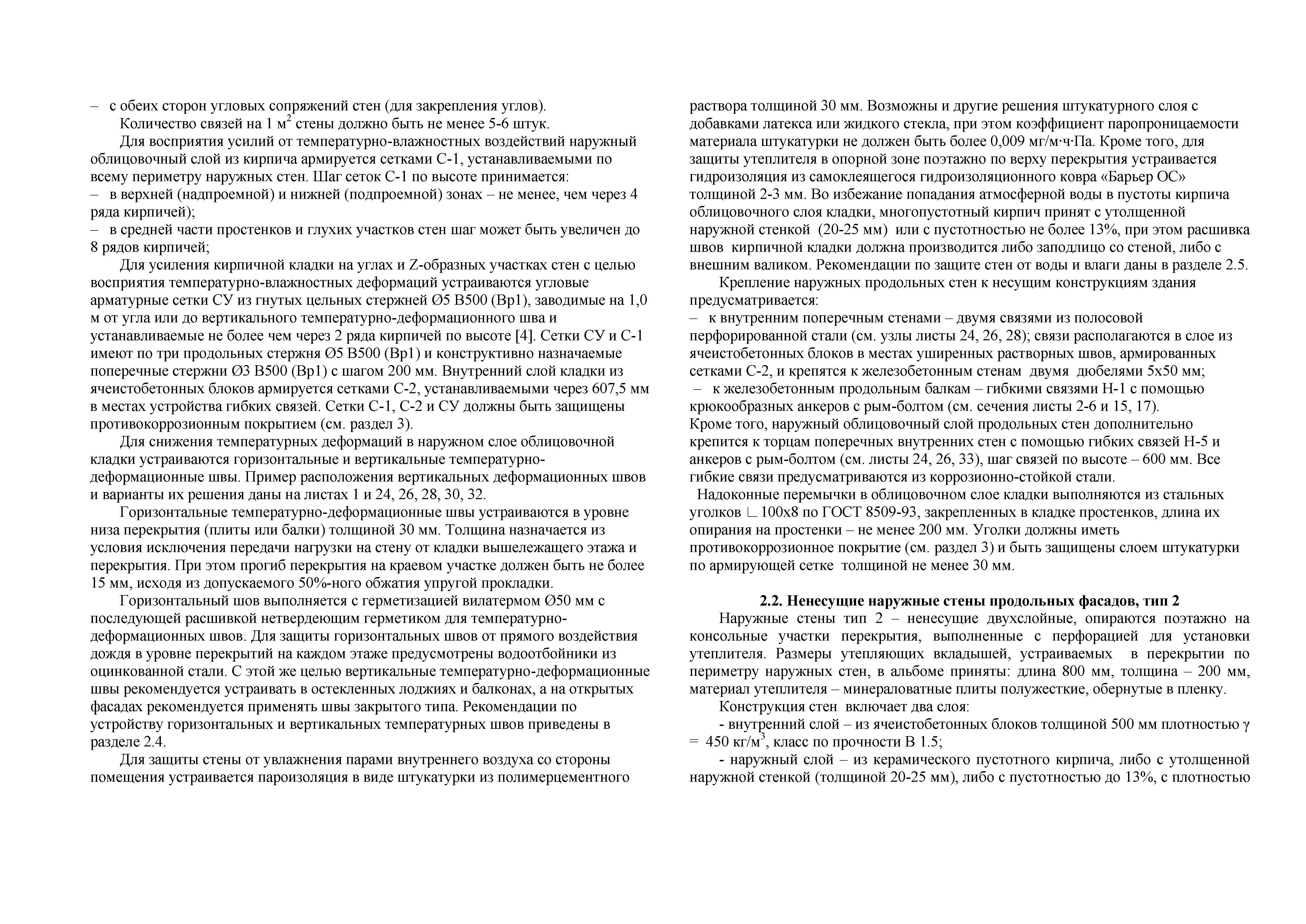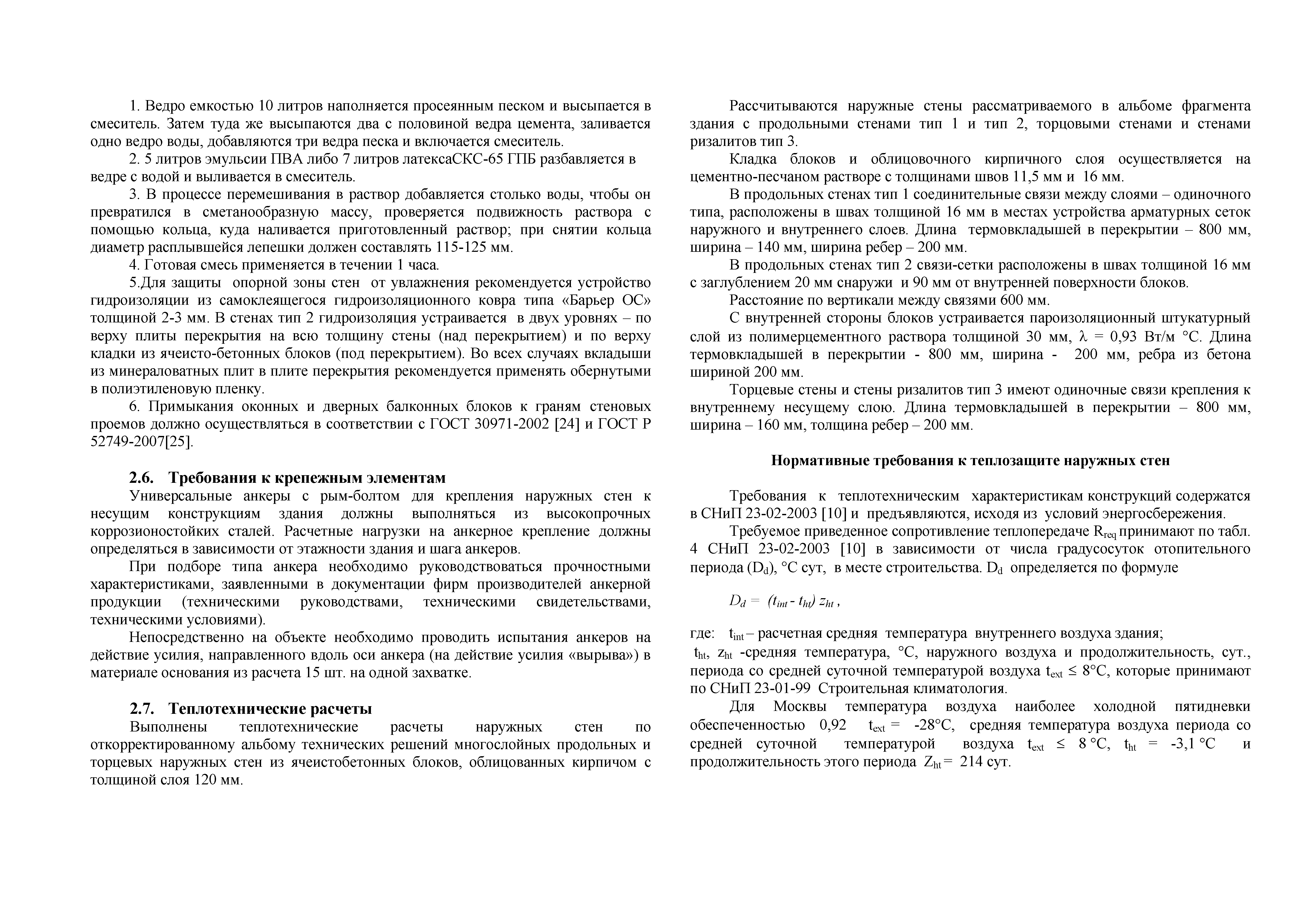 Технические решения многослойных продольных и торцевых наружных стен, облицованных кирпичом толщиной 120 мм (с утолщенной наружной стенкой или с пустотностью 13%), для строительства жилых и общественных зданий высотой до 75 м (методическое пособие для проектирования)| Статус: | действует | | Название рус.: | Технические решения многослойных продольных и торцевых наружных стен, облицованных кирпичом толщиной 120 мм (с утолщенной наружной стенкой или с пустотностью 13%), для строительства жилых и общественных зданий высотой до 75 м (методическое пособие для проектирования) | | Дата добавления в базу: | 01.09.2013 | | Дата актуализации: | 01.01.2021 | | Оглавление: | Пояснительная записка 1. Общая часть 2. Технические решения наружных многослойных стен с облицовочным слоем из кирпича 2.1. Ненесущие наружные стены продольных фасадов, тип 1 2.2. Ненесущие наружные стены продольных фасадов, тип 2 2.3. Несущие наружные торцевые стены и стены ризалитов, тип 3 2.4. Рекомендации по устройству горизонтальных и вертикальных температурно-деформационных швов и армированию кирпичного облицовочного слоя стен 2.5. Рекомендации по защите многослойных наружных стен от влаги 2.6. Требования к крепежным элементам 2.7. Теплотехнические расчеты Нормативные требования к теплозащите наружных стен Методика расчета Заключение 2.8. Материалы 3. Антикоррозийная защита 4. Огнестойкость и меры противопожарной защиты 5. Производство работ по возведению многослойных наружных стен, облицованных кирпичом 5.1. Основные указания по производству работ 5.2. Последовательность выполнения работ 5.3. Подготовительные работы перед устройством теплоизоляционного и облицовочного слоев 5.4. Устройство теплоизоляционного слоя 5.5. Устройство наружного облицовочного слоя 5.6. Устройство горизонтальных температурно-деформационных швов 5.7. Устройство вертикальных температурно-деформационных швов в облицовочном слое наружных стен закрытого типа 5.8. Требования к качеству и приемке работ 5.9. Основные средства подмащивания 5.10. Требования безопасности труда 6. Технико-экономические показатели многослойных стен с облицовочным слоем из кирпича (по ТСН-2001 г. Москва) 7. Литература Технические решения | | Разработан: | ЦНИИСК им. В.А. Кучеренко ЦНИИЭП жилища