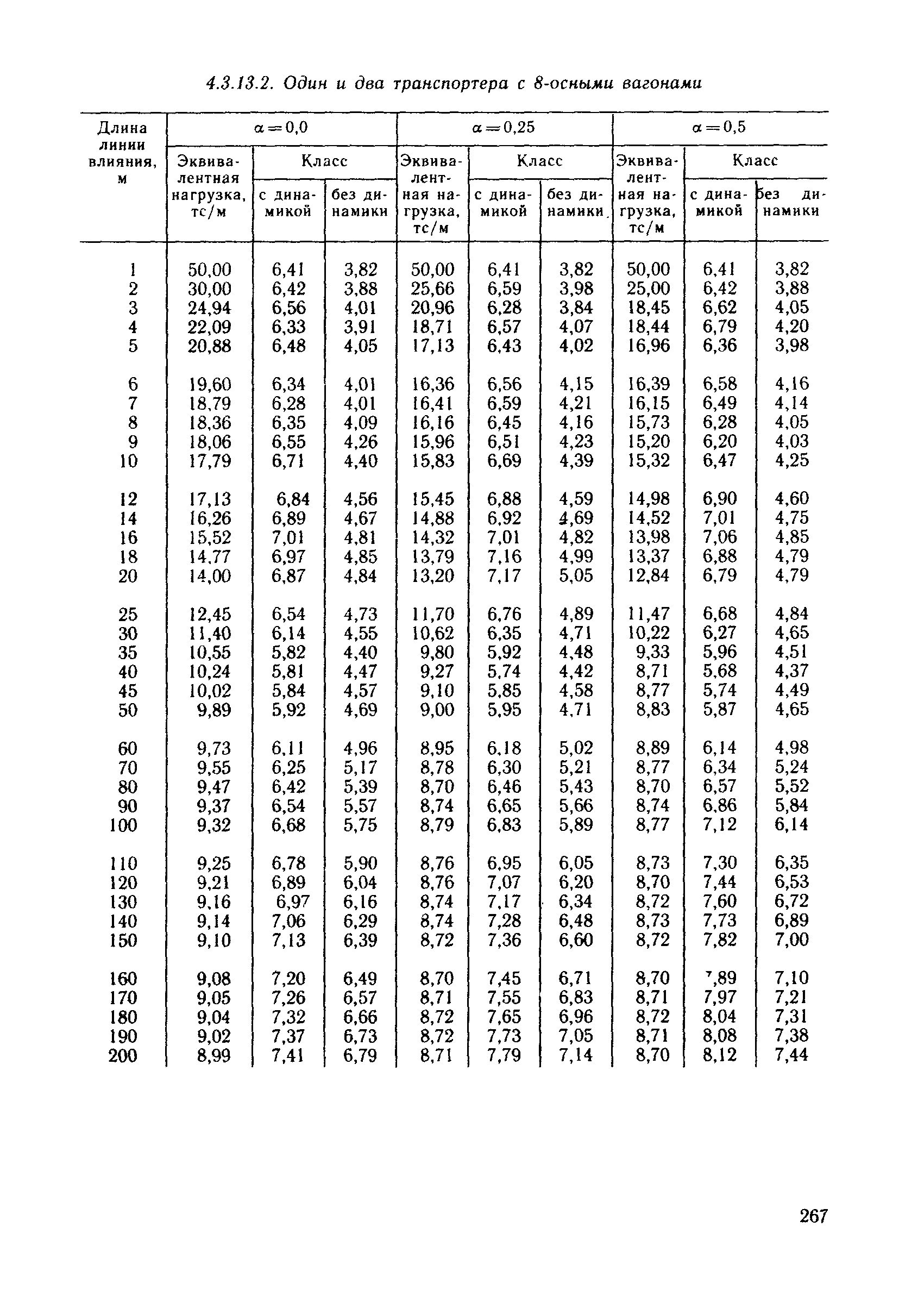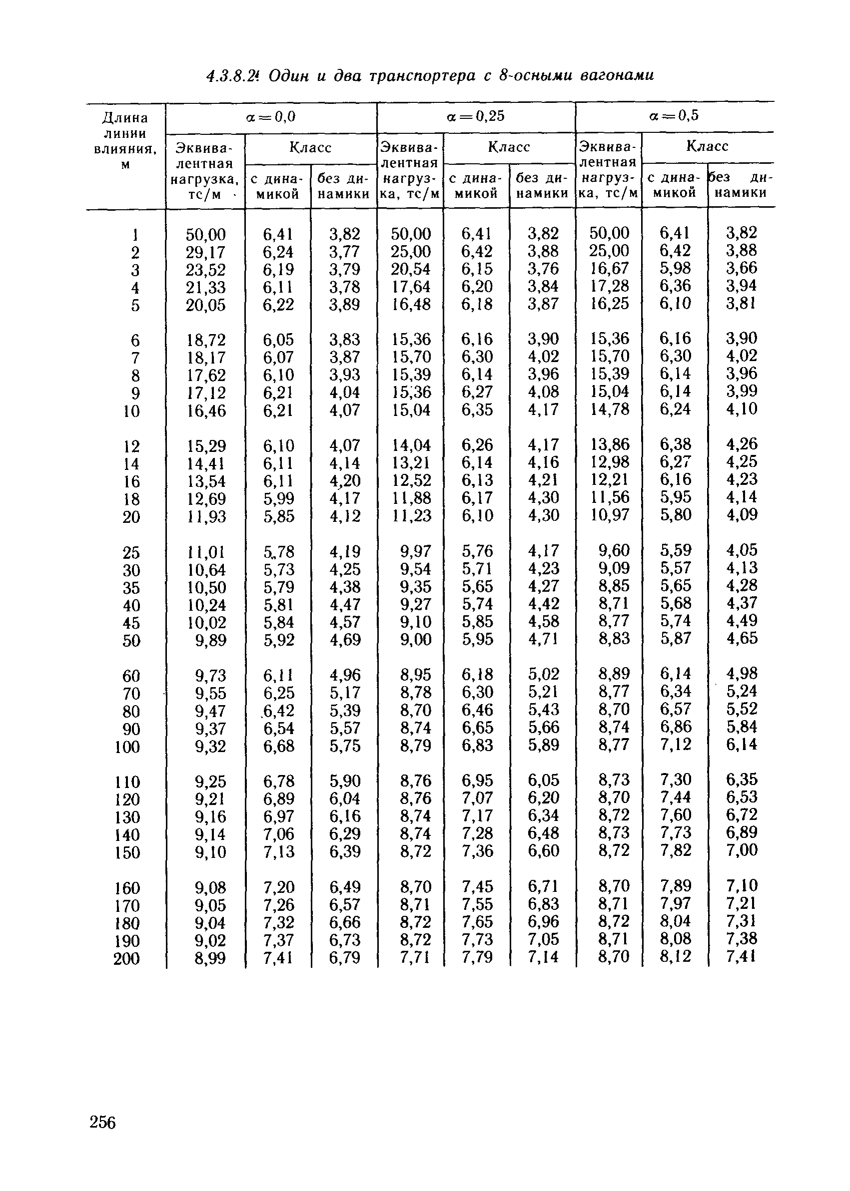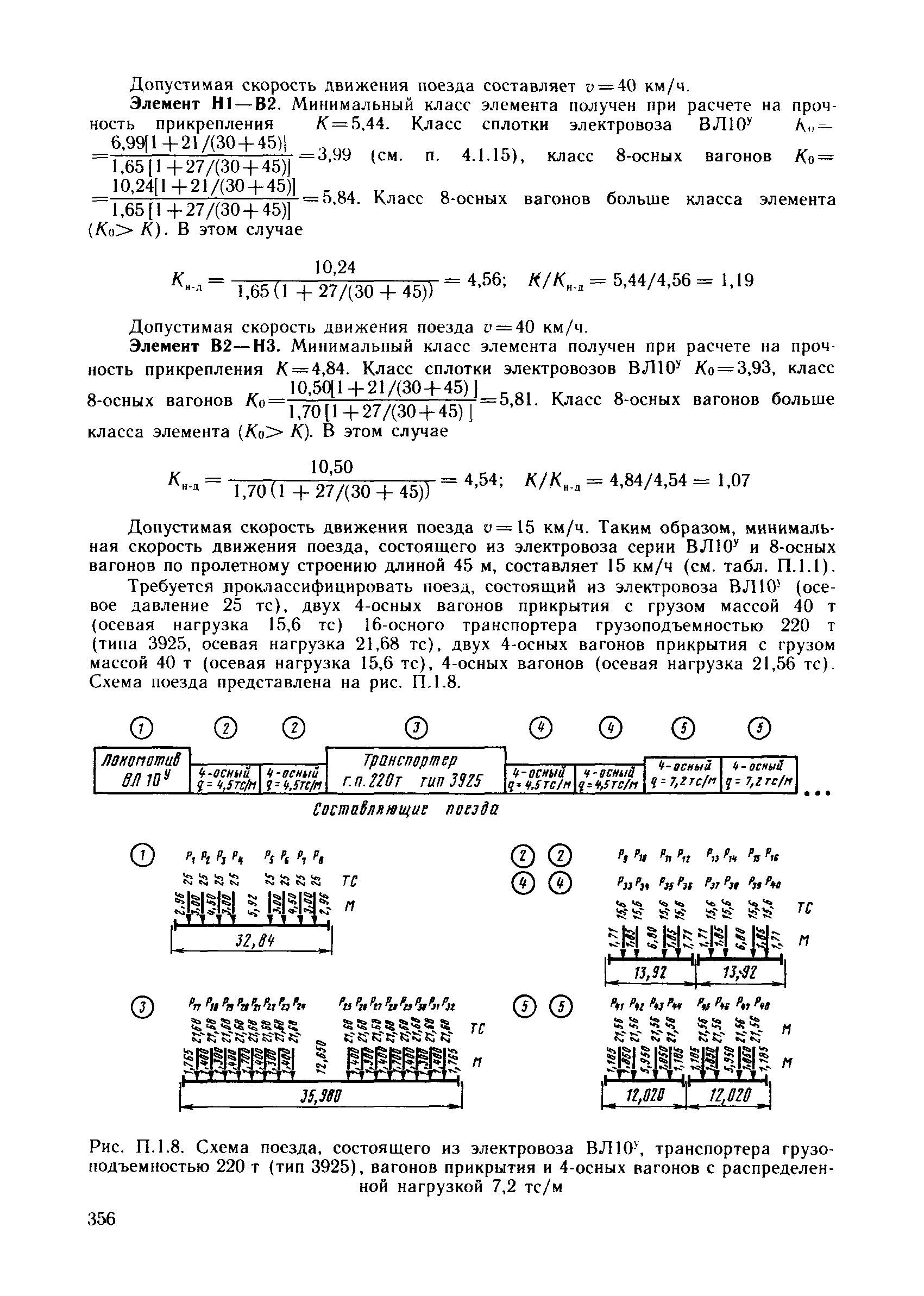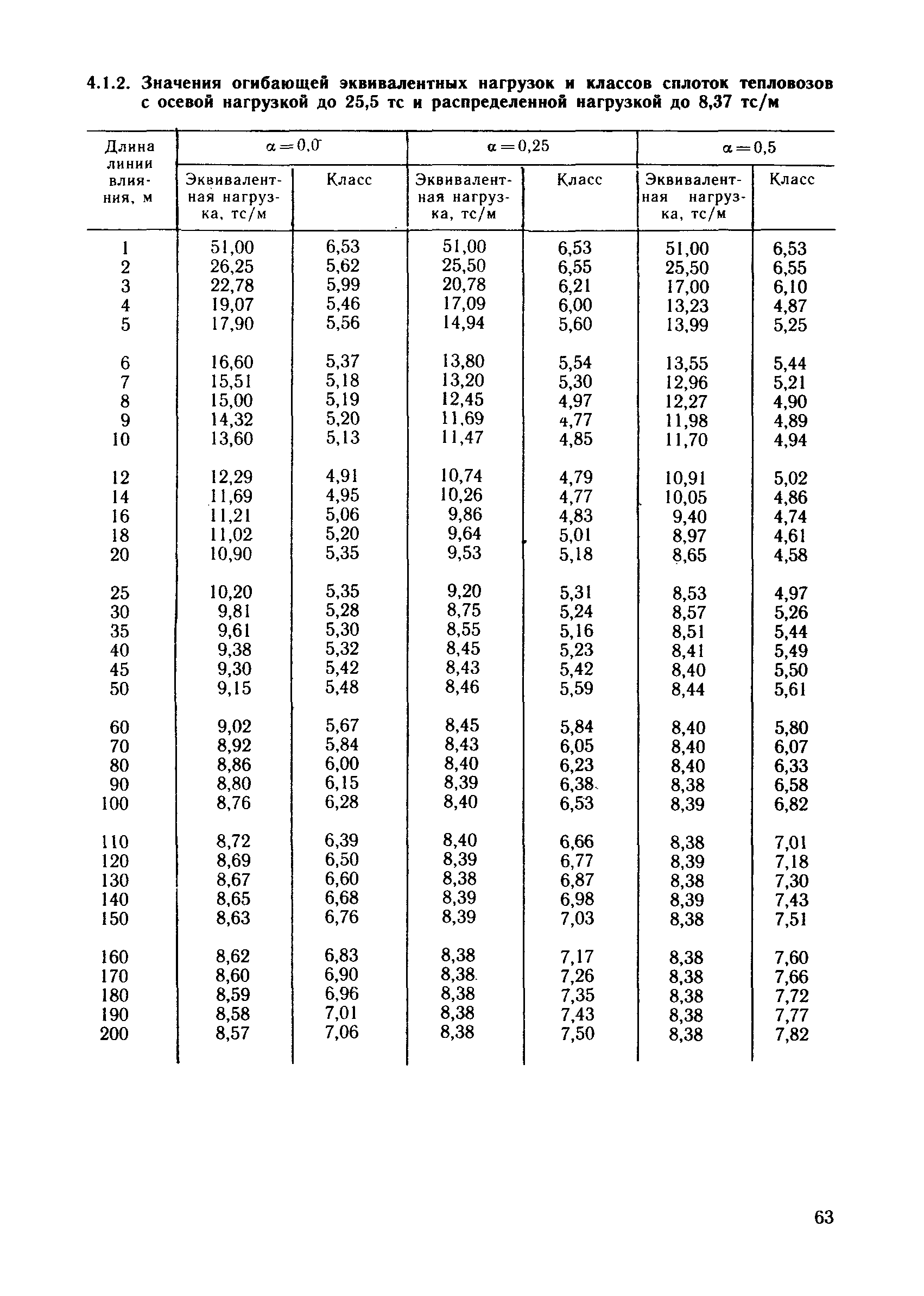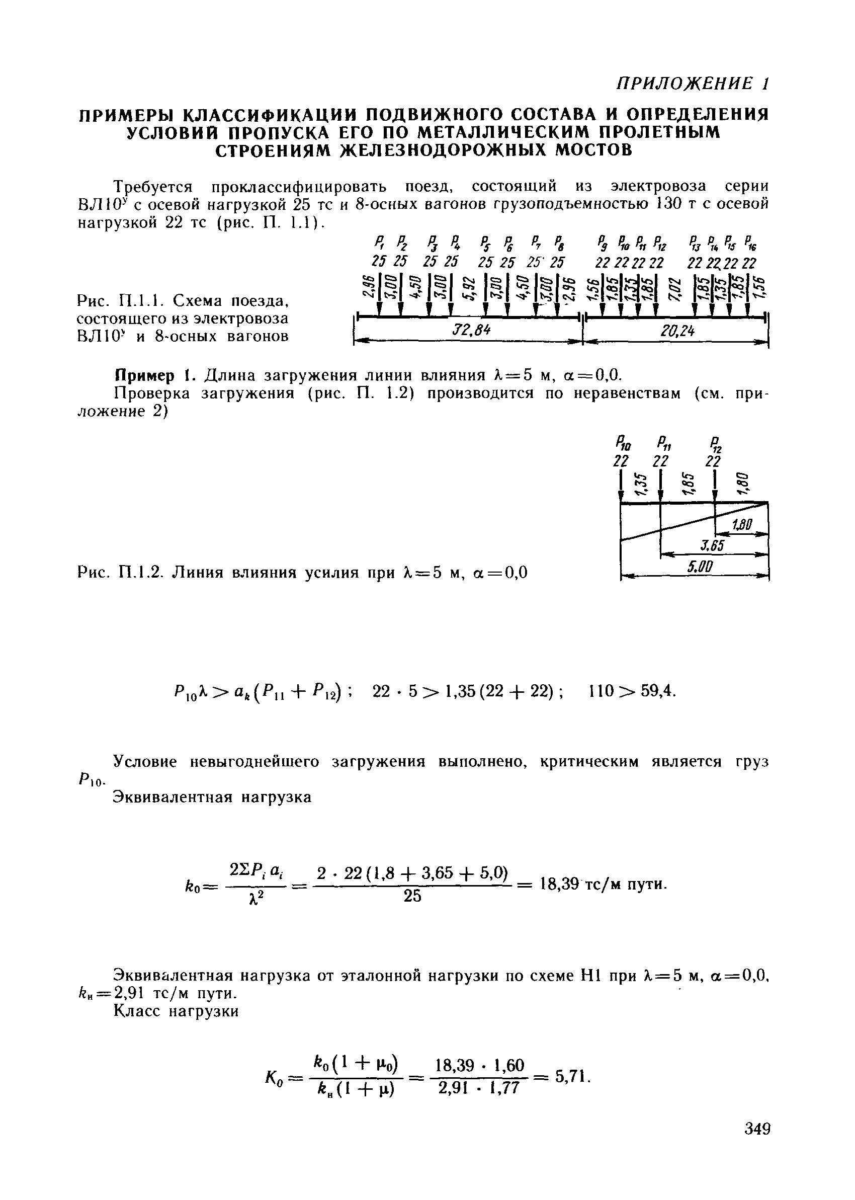 Руководство по пропуску подвижного состава по железнодорожным мостам| Статус: | не подлежит применению | | Название рус.: | Руководство по пропуску подвижного состава по железнодорожным мостам | | Дата добавления в базу: | 01.09.2013 | | Дата актуализации: | 01.01.2021 | | Дата окончания срока действия: | 26.08.2019 | | Область применения: | Приведены основные характеристики и результаты классификации (классы) обращающихся и перспективных локомотивов, вагонов, транспортеров, железнодорожных кранов и, кроме того, категории грузоподъемности мостов, обеспечивающих их пропуск. | | Оглавление: | 1. Общие положения 2. Определение условий пропуска поездных нагрузок 3. Характеристики подвижного состава сети железных дорог нашей страны 3.1. Локомотивы 3.2. Вагоны 3.3. Транспортеры 3.4. Консольные железнодорожные краны 4. Классификация нагрузок 4.1. Эквивалентные нагрузки и классы сплоток электровозов, тепловозов, паровозов 4.2. Эквивалентные нагрузки и классы обращающихся и перспективных вагонов 4.3. Эквивалентные нагрузки и классы транспортеров 4.4. Эквивалентные нагрузки и классы железнодорожных консольных кранов Приложение 1. Примеры классификации подвижного состава и определения условий пропуска его по металлическим пролетным строениям железнодорожных мостов Приложение 2. Определение эквивалентной нагрузки от классифицируемого подвижного состава Приложение 3. Динамические коэффициенты, их отношения и эталонная нагрузка от HI 364 Приложение 4. Вагоны «прикрытия» транспортеров Приложение 5. Эквивалентные нагрузки и классы эталонной нагрузки, соответствующие грузоподъемности мостов II-IV категорий Приложение 6. Пример определения допускаемой временной нагрузки на элементы про¬летных строений, имеющих многозначную линию влияния, разделенную одним участком другого знака длиной более 15 м | | Разработан: | Научно-исследовательский институт мостов