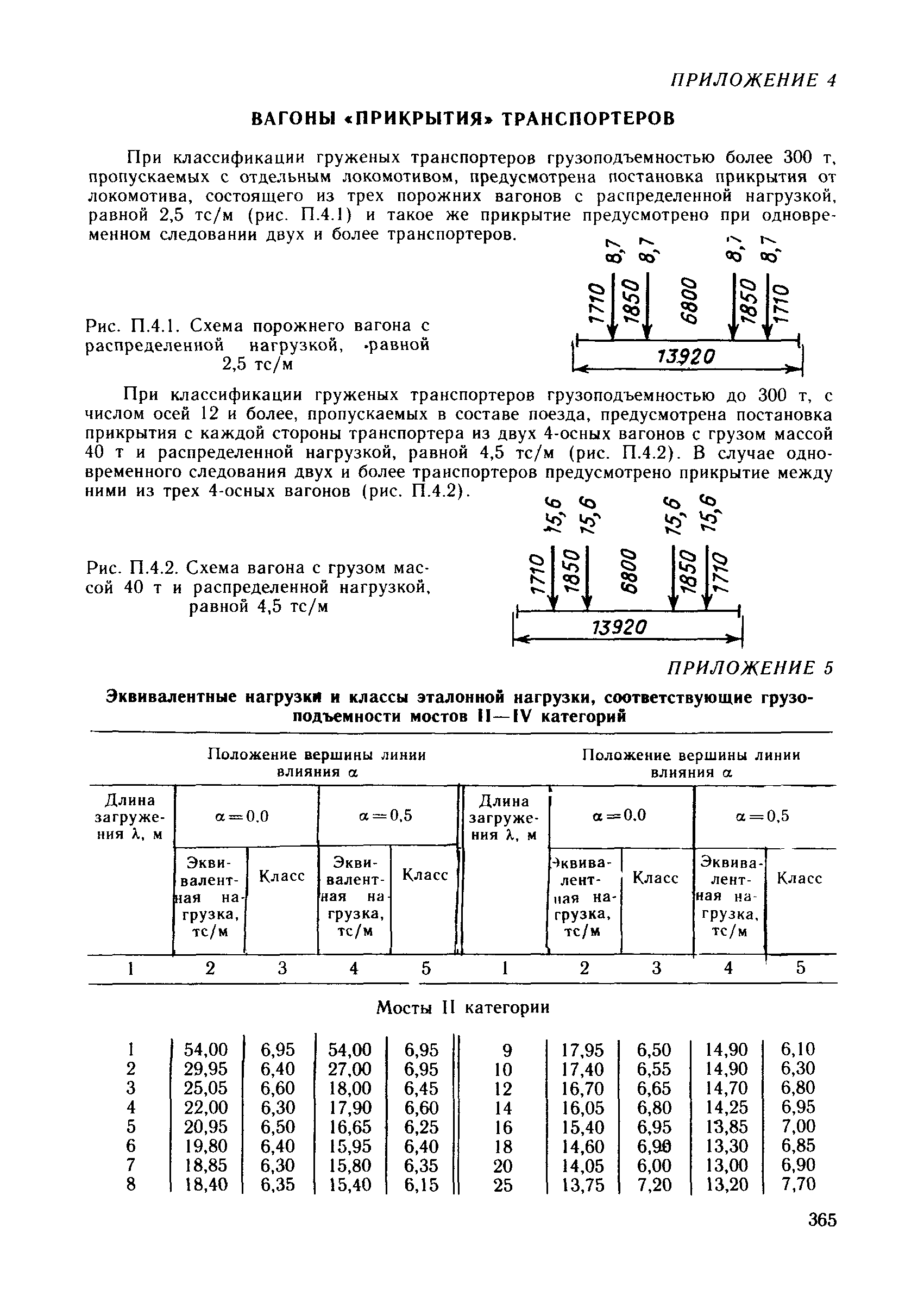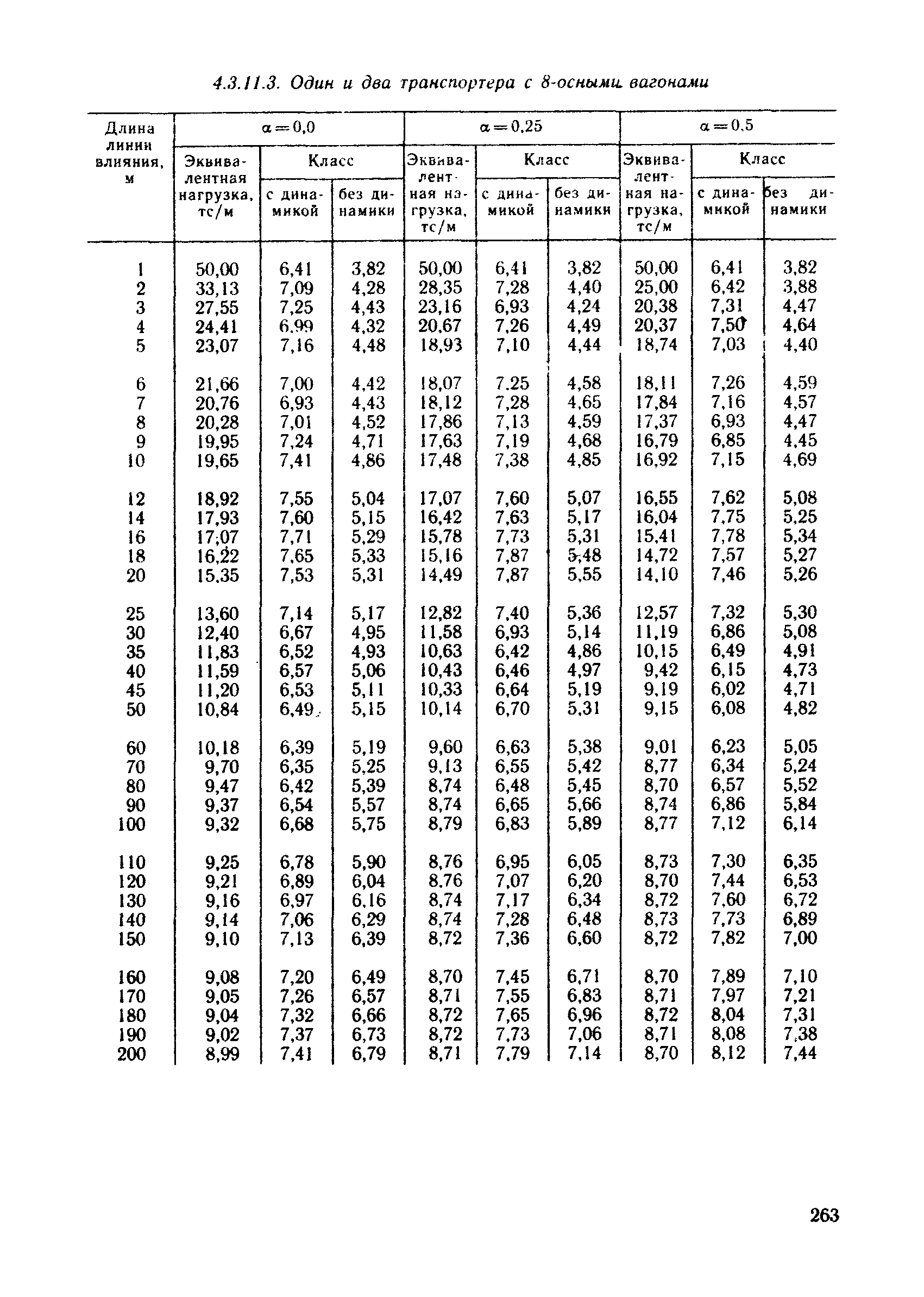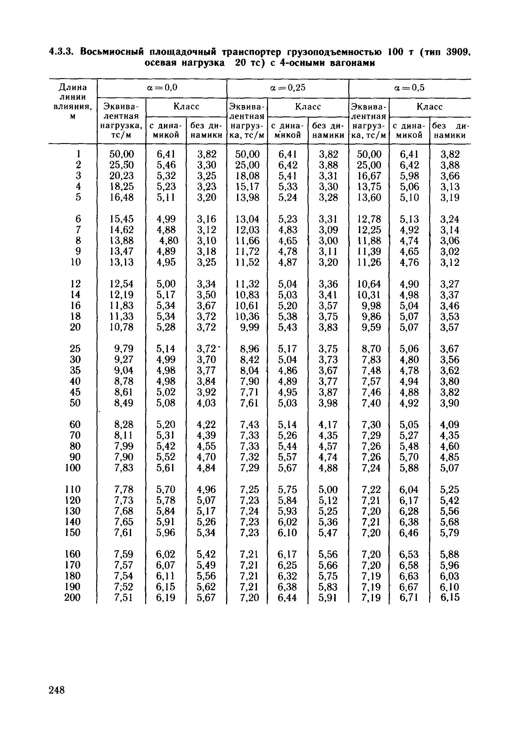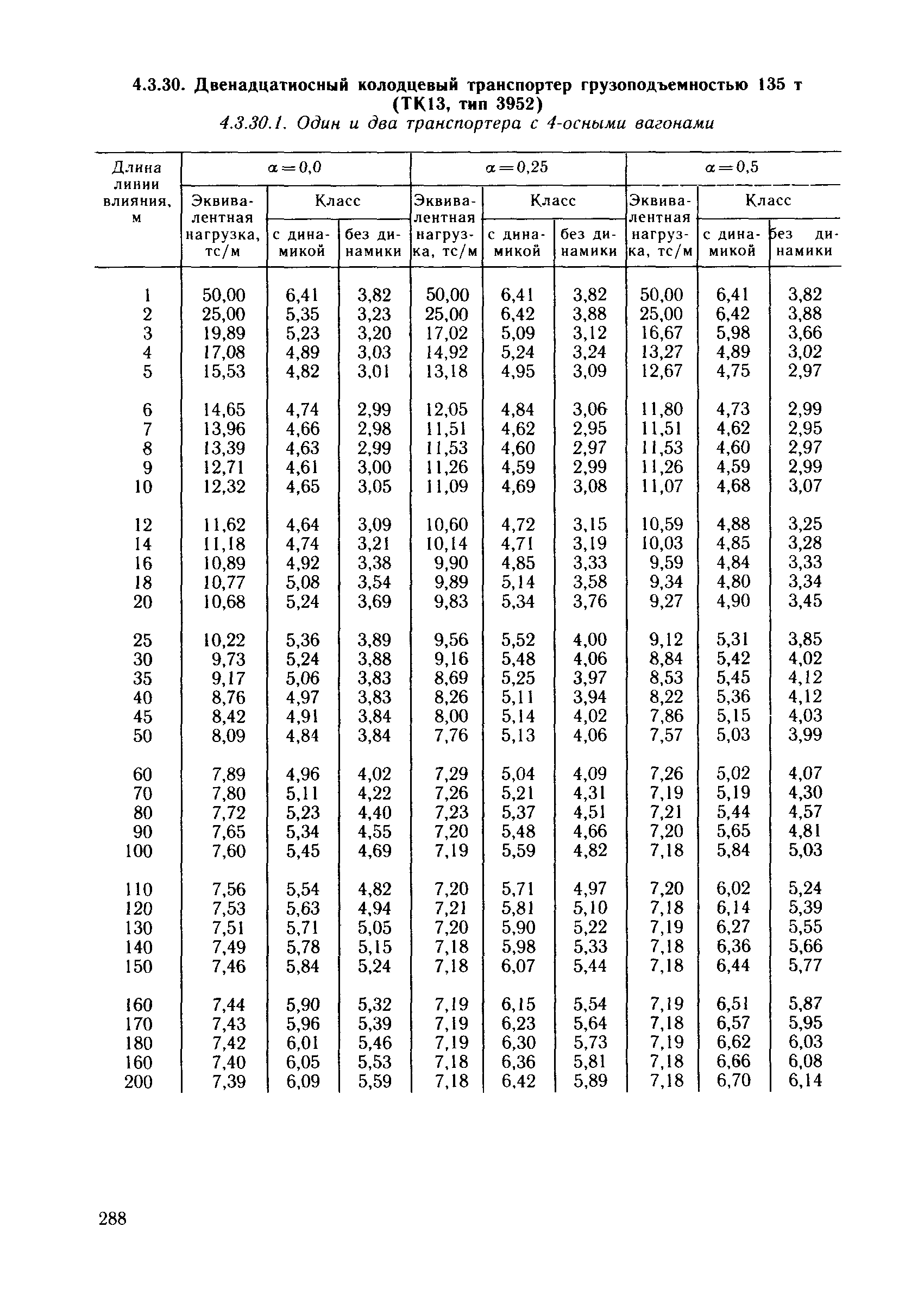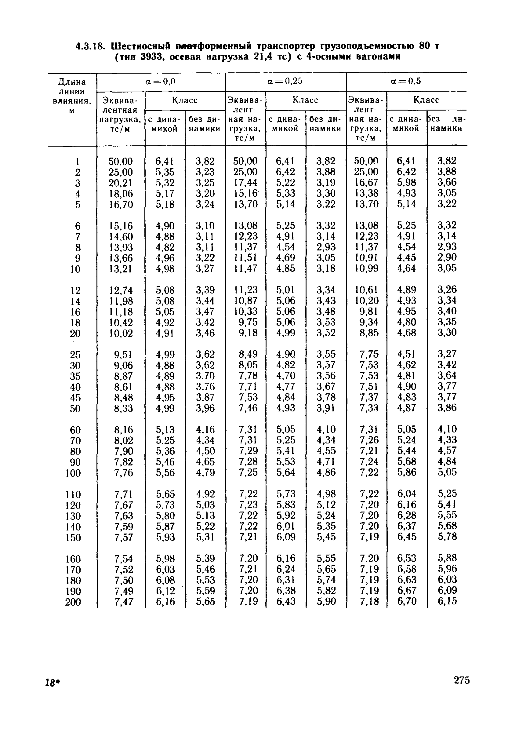 Руководство по пропуску подвижного состава по железнодорожным мостам| Статус: | не подлежит применению | | Название рус.: | Руководство по пропуску подвижного состава по железнодорожным мостам | | Дата добавления в базу: | 01.09.2013 | | Дата актуализации: | 01.01.2021 | | Дата окончания срока действия: | 26.08.2019 | | Область применения: | Приведены основные характеристики и результаты классификации (классы) обращающихся и перспективных локомотивов, вагонов, транспортеров, железнодорожных кранов и, кроме того, категории грузоподъемности мостов, обеспечивающих их пропуск. | | Оглавление: | 1. Общие положения 2. Определение условий пропуска поездных нагрузок 3. Характеристики подвижного состава сети железных дорог нашей страны 3.1. Локомотивы 3.2. Вагоны 3.3. Транспортеры 3.4. Консольные железнодорожные краны 4. Классификация нагрузок 4.1. Эквивалентные нагрузки и классы сплоток электровозов, тепловозов, паровозов 4.2. Эквивалентные нагрузки и классы обращающихся и перспективных вагонов 4.3. Эквивалентные нагрузки и классы транспортеров 4.4. Эквивалентные нагрузки и классы железнодорожных консольных кранов Приложение 1. Примеры классификации подвижного состава и определения условий пропуска его по металлическим пролетным строениям железнодорожных мостов Приложение 2. Определение эквивалентной нагрузки от классифицируемого подвижного состава Приложение 3. Динамические коэффициенты, их отношения и эталонная нагрузка от HI 364 Приложение 4. Вагоны «прикрытия» транспортеров Приложение 5. Эквивалентные нагрузки и классы эталонной нагрузки, соответствующие грузоподъемности мостов II-IV категорий Приложение 6. Пример определения допускаемой временной нагрузки на элементы про¬летных строений, имеющих многозначную линию влияния, разделенную одним участком другого знака длиной более 15 м | | Разработан: | Научно-исследовательский институт мостов