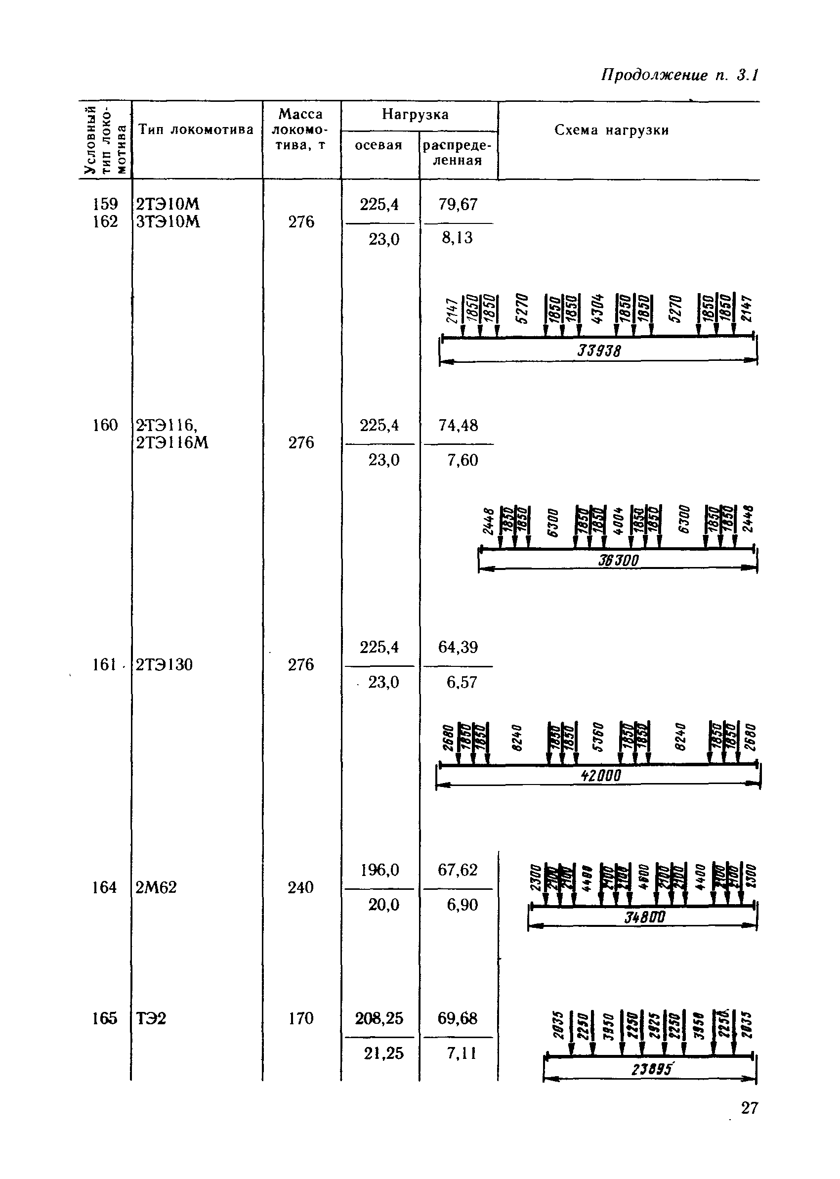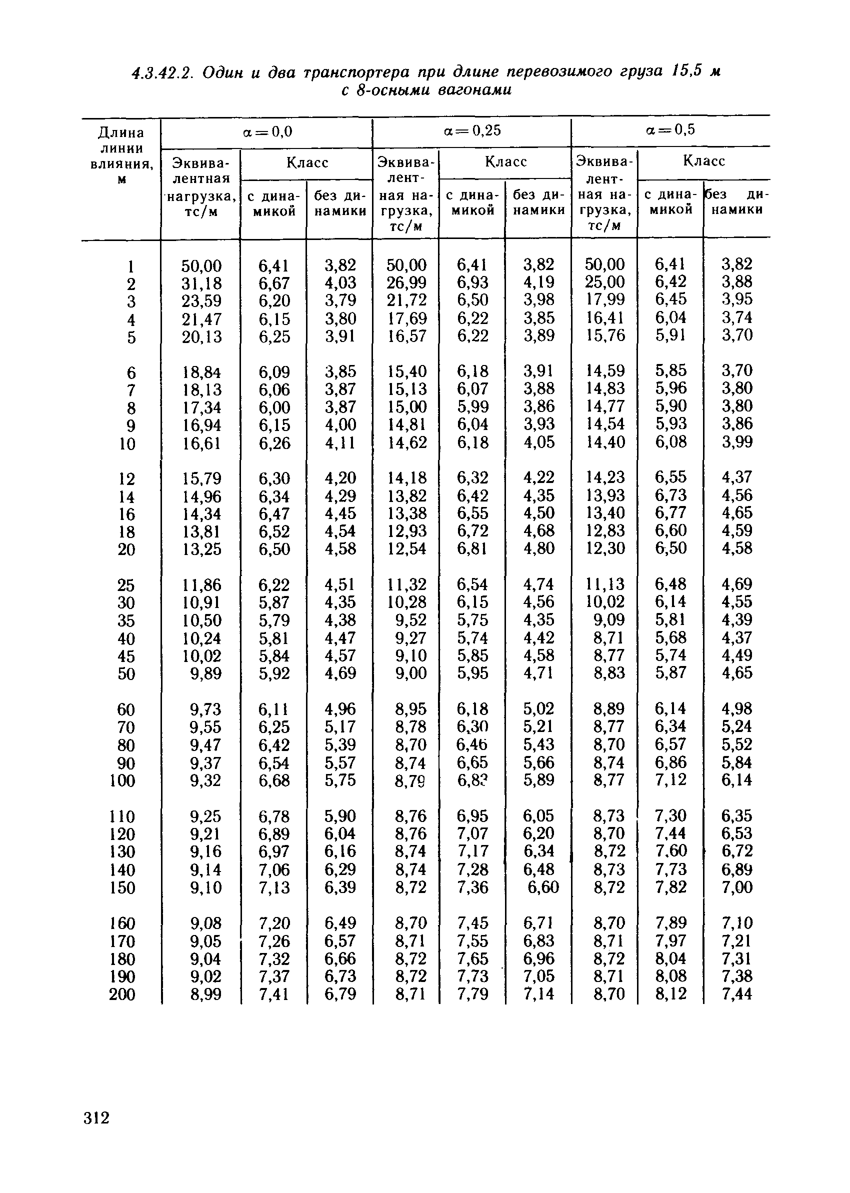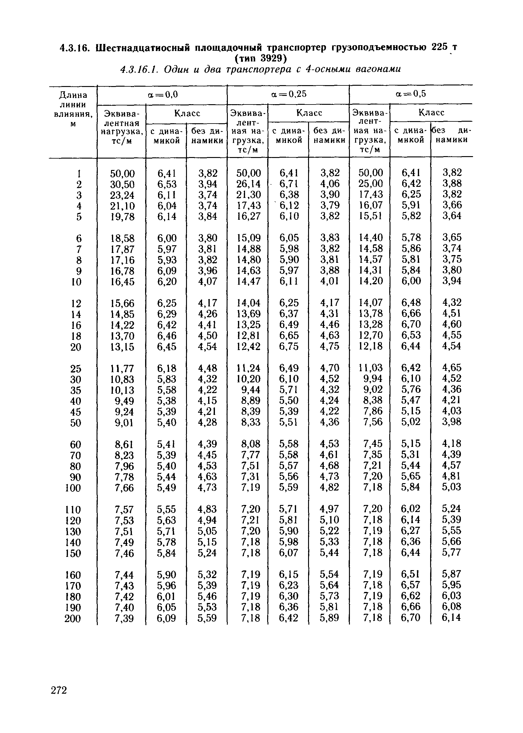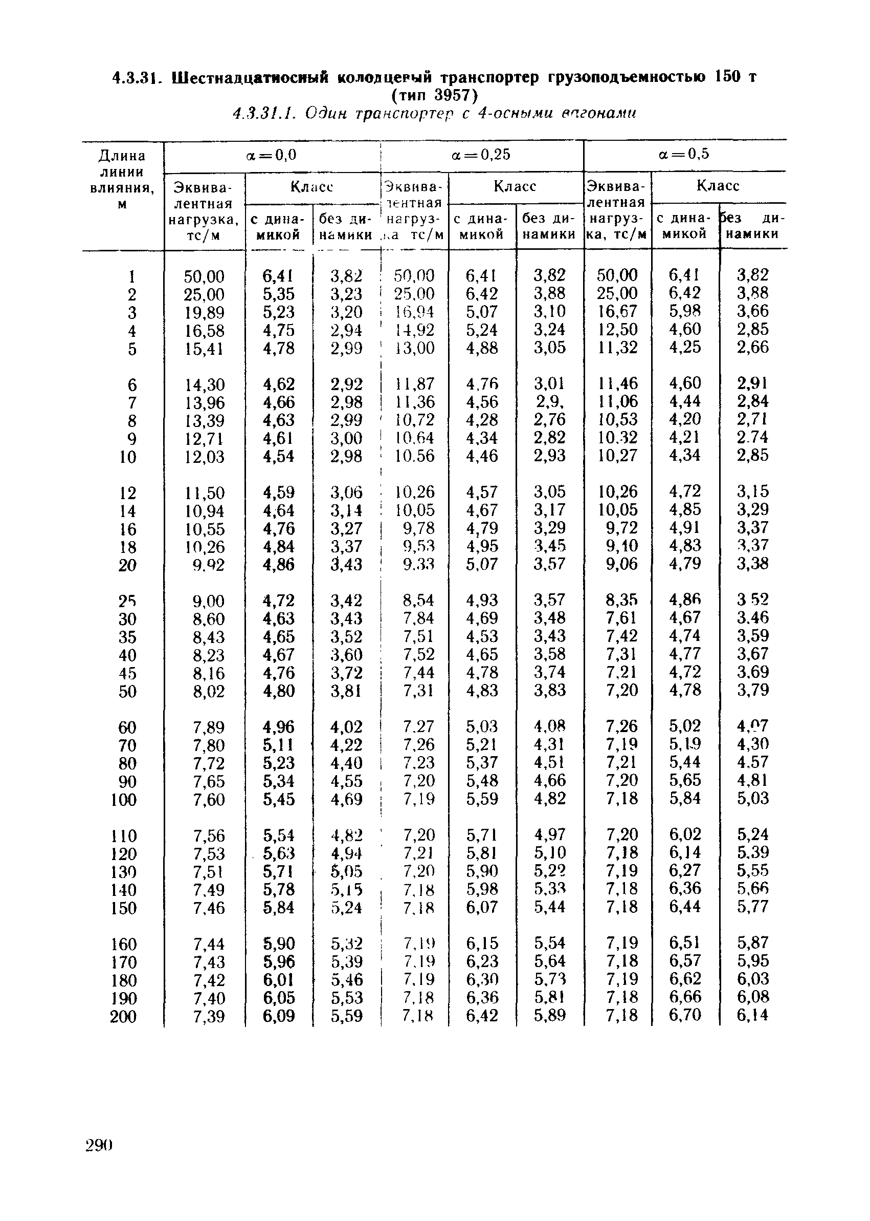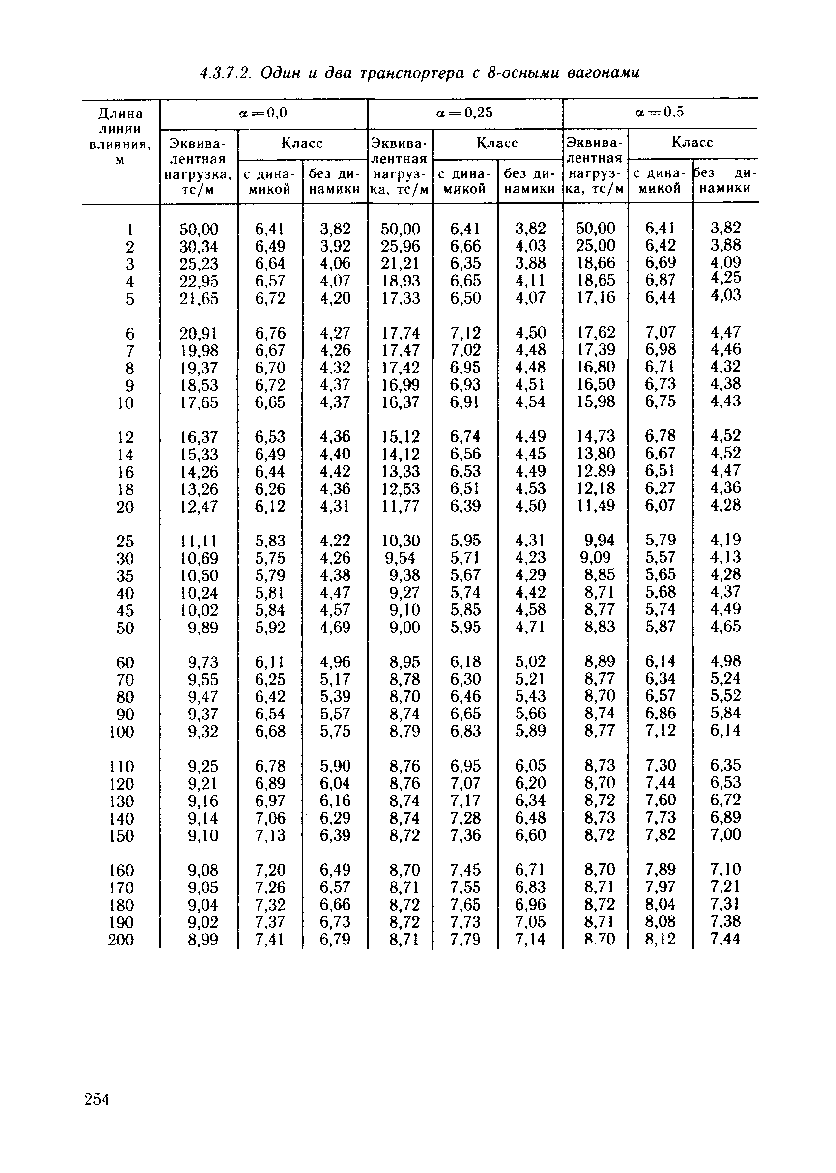 Руководство по пропуску подвижного состава по железнодорожным мостам| Статус: | не подлежит применению | | Название рус.: | Руководство по пропуску подвижного состава по железнодорожным мостам | | Дата добавления в базу: | 01.09.2013 | | Дата актуализации: | 01.01.2021 | | Дата окончания срока действия: | 26.08.2019 | | Область применения: | Приведены основные характеристики и результаты классификации (классы) обращающихся и перспективных локомотивов, вагонов, транспортеров, железнодорожных кранов и, кроме того, категории грузоподъемности мостов, обеспечивающих их пропуск. | | Оглавление: | 1. Общие положения 2. Определение условий пропуска поездных нагрузок 3. Характеристики подвижного состава сети железных дорог нашей страны 3.1. Локомотивы 3.2. Вагоны 3.3. Транспортеры 3.4. Консольные железнодорожные краны 4. Классификация нагрузок 4.1. Эквивалентные нагрузки и классы сплоток электровозов, тепловозов, паровозов 4.2. Эквивалентные нагрузки и классы обращающихся и перспективных вагонов 4.3. Эквивалентные нагрузки и классы транспортеров 4.4. Эквивалентные нагрузки и классы железнодорожных консольных кранов Приложение 1. Примеры классификации подвижного состава и определения условий пропуска его по металлическим пролетным строениям железнодорожных мостов Приложение 2. Определение эквивалентной нагрузки от классифицируемого подвижного состава Приложение 3. Динамические коэффициенты, их отношения и эталонная нагрузка от HI 364 Приложение 4. Вагоны «прикрытия» транспортеров Приложение 5. Эквивалентные нагрузки и классы эталонной нагрузки, соответствующие грузоподъемности мостов II-IV категорий Приложение 6. Пример определения допускаемой временной нагрузки на элементы про¬летных строений, имеющих многозначную линию влияния, разделенную одним участком другого знака длиной более 15 м | | Разработан: | Научно-исследовательский институт мостов