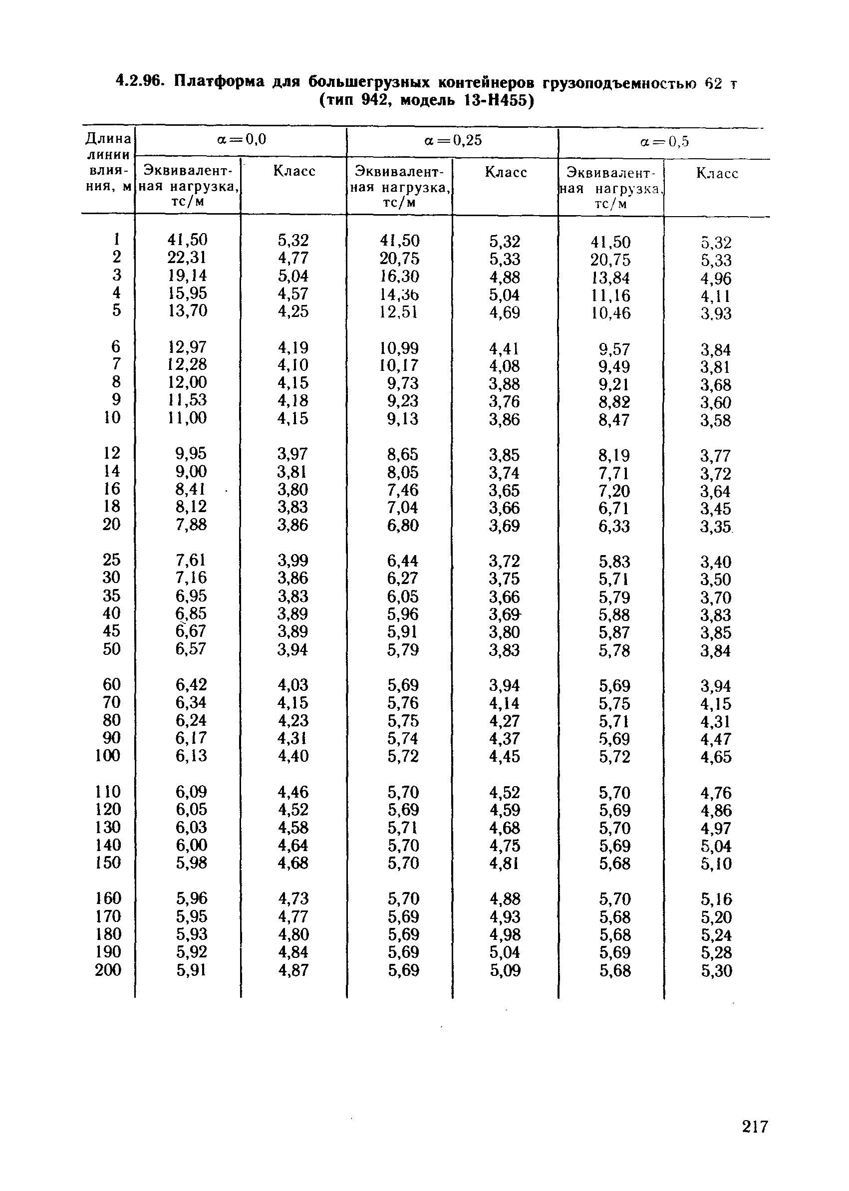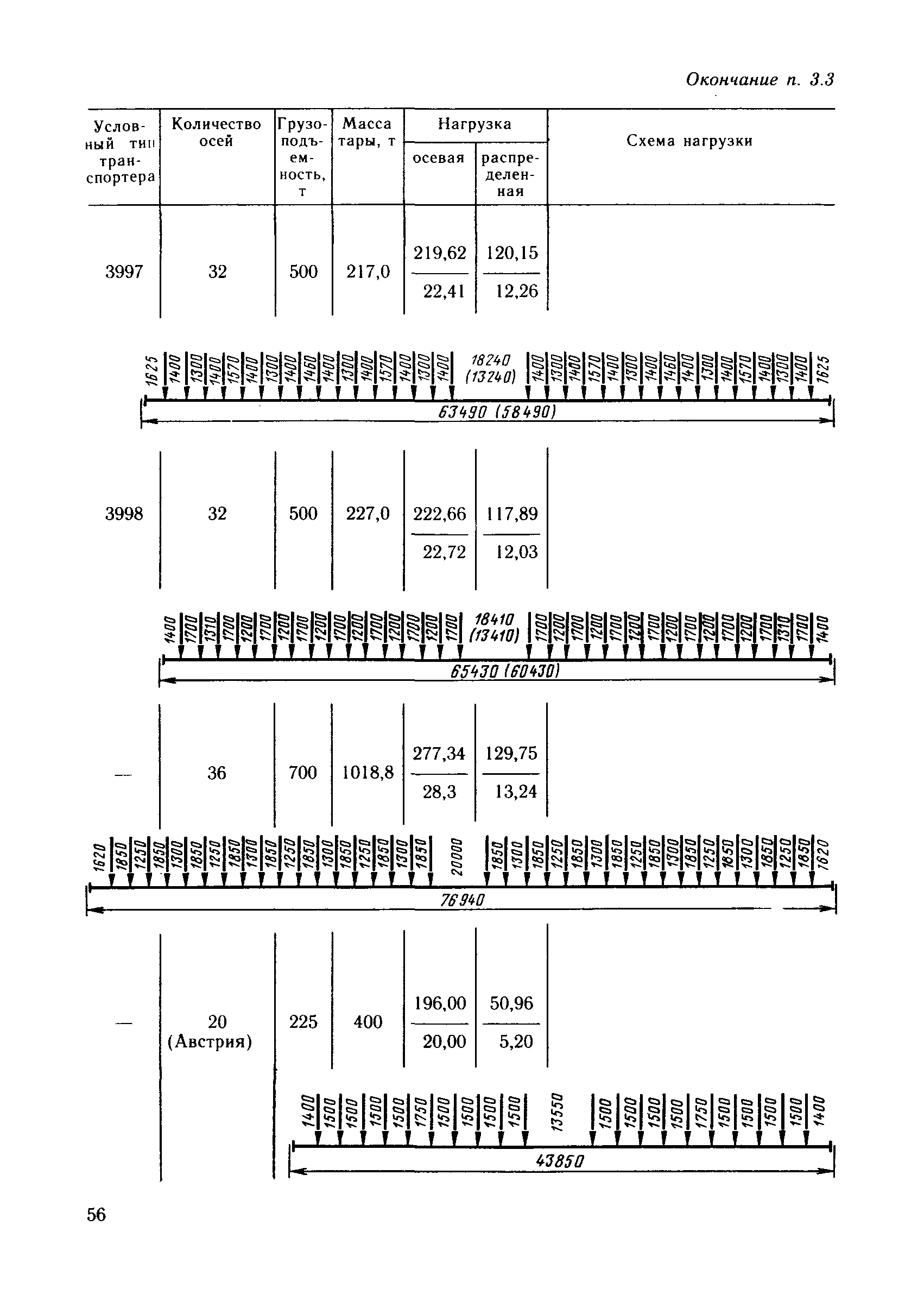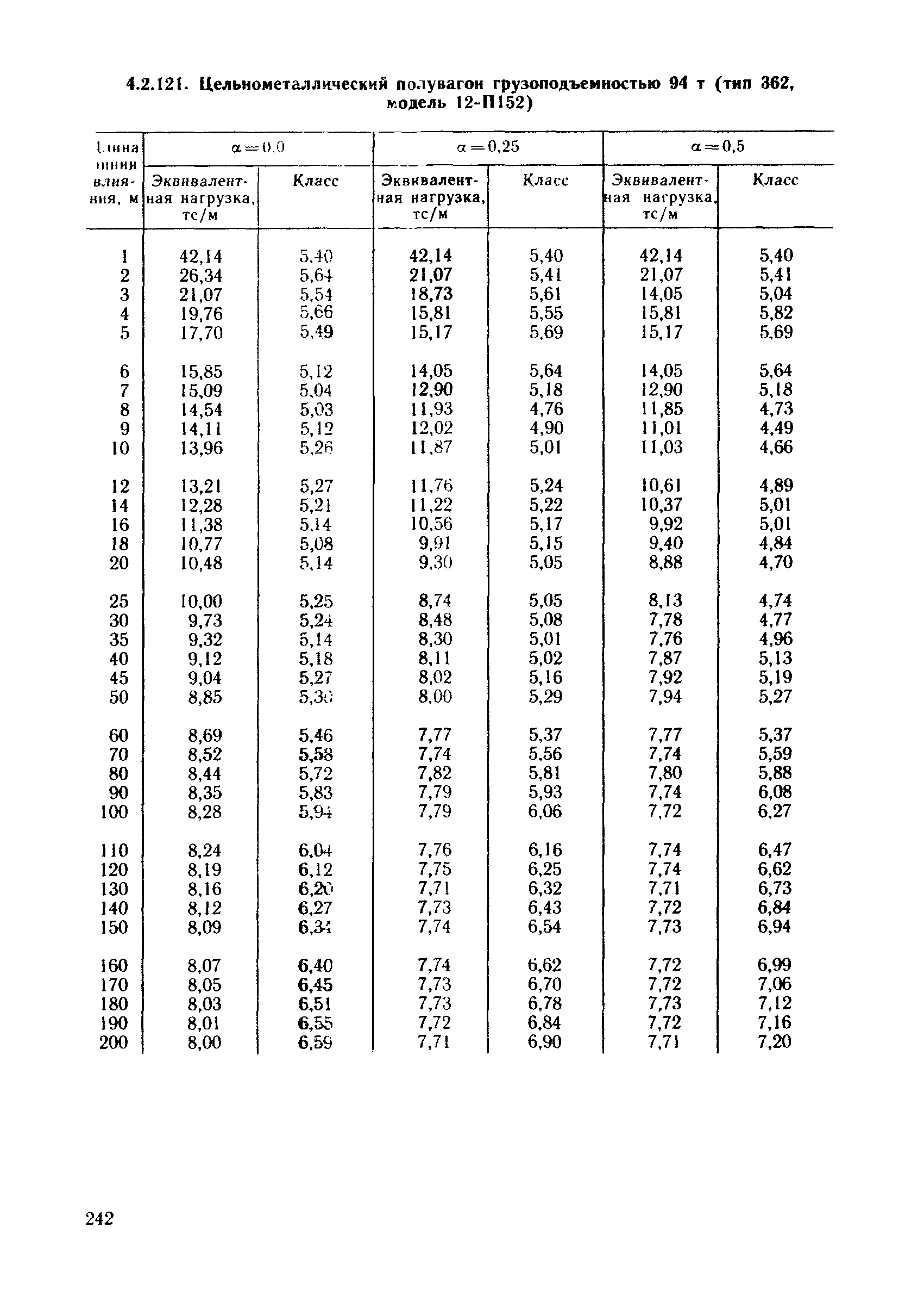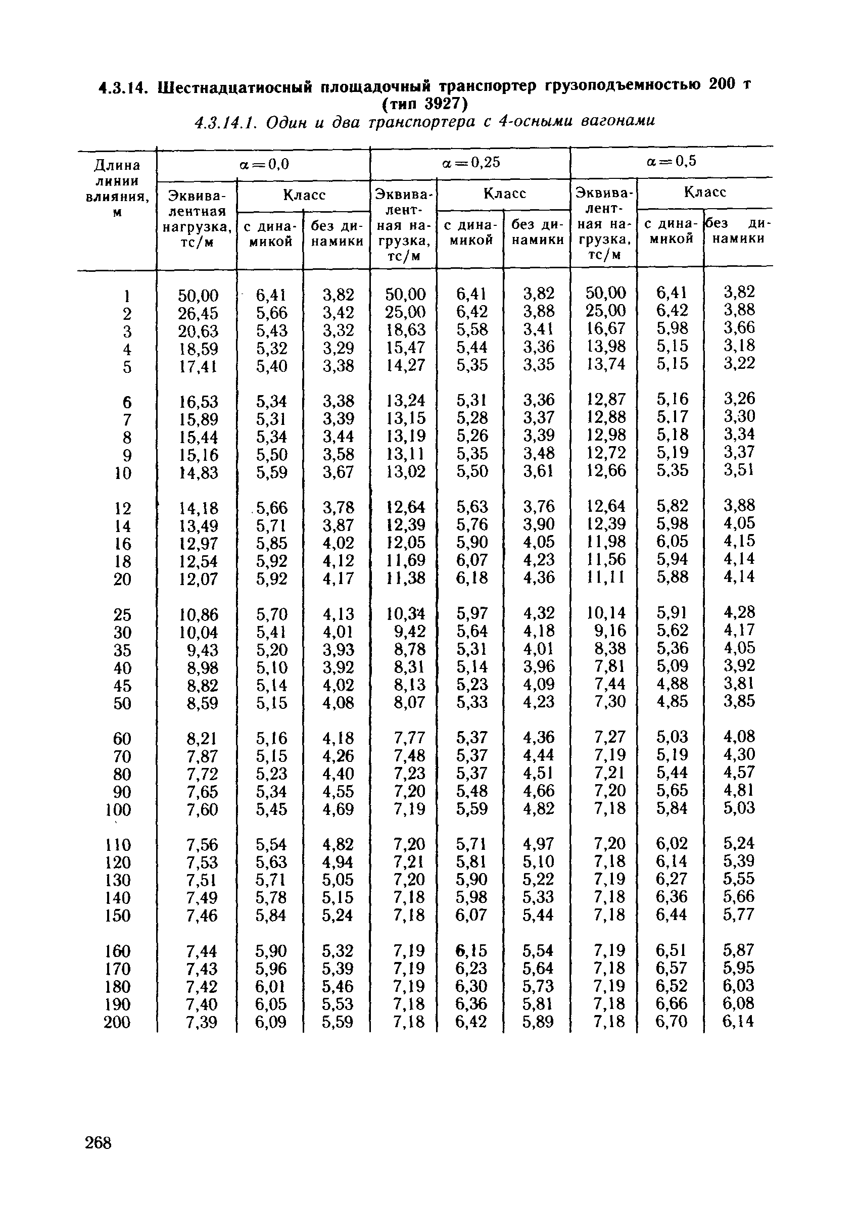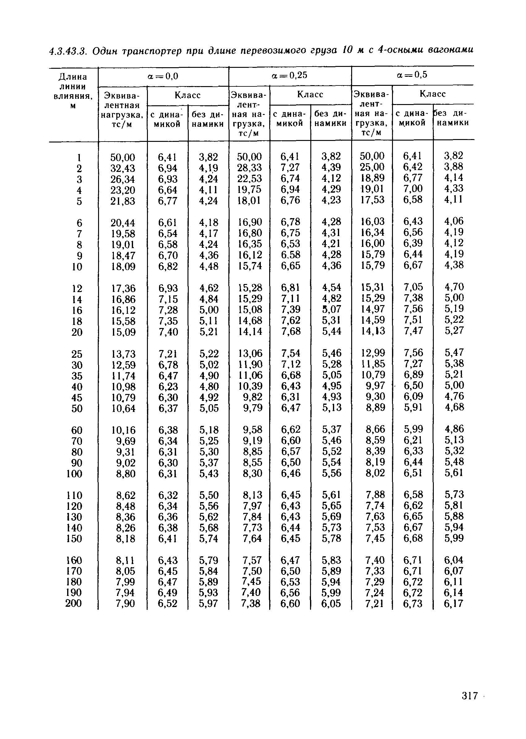 Руководство по пропуску подвижного состава по железнодорожным мостам| Статус: | не подлежит применению | | Название рус.: | Руководство по пропуску подвижного состава по железнодорожным мостам | | Дата добавления в базу: | 01.09.2013 | | Дата актуализации: | 01.01.2021 | | Дата окончания срока действия: | 26.08.2019 | | Область применения: | Приведены основные характеристики и результаты классификации (классы) обращающихся и перспективных локомотивов, вагонов, транспортеров, железнодорожных кранов и, кроме того, категории грузоподъемности мостов, обеспечивающих их пропуск. | | Оглавление: | 1. Общие положения 2. Определение условий пропуска поездных нагрузок 3. Характеристики подвижного состава сети железных дорог нашей страны 3.1. Локомотивы 3.2. Вагоны 3.3. Транспортеры 3.4. Консольные железнодорожные краны 4. Классификация нагрузок 4.1. Эквивалентные нагрузки и классы сплоток электровозов, тепловозов, паровозов 4.2. Эквивалентные нагрузки и классы обращающихся и перспективных вагонов 4.3. Эквивалентные нагрузки и классы транспортеров 4.4. Эквивалентные нагрузки и классы железнодорожных консольных кранов Приложение 1. Примеры классификации подвижного состава и определения условий пропуска его по металлическим пролетным строениям железнодорожных мостов Приложение 2. Определение эквивалентной нагрузки от классифицируемого подвижного состава Приложение 3. Динамические коэффициенты, их отношения и эталонная нагрузка от HI 364 Приложение 4. Вагоны «прикрытия» транспортеров Приложение 5. Эквивалентные нагрузки и классы эталонной нагрузки, соответствующие грузоподъемности мостов II-IV категорий Приложение 6. Пример определения допускаемой временной нагрузки на элементы про¬летных строений, имеющих многозначную линию влияния, разделенную одним участком другого знака длиной более 15 м | | Разработан: | Научно-исследовательский институт мостов