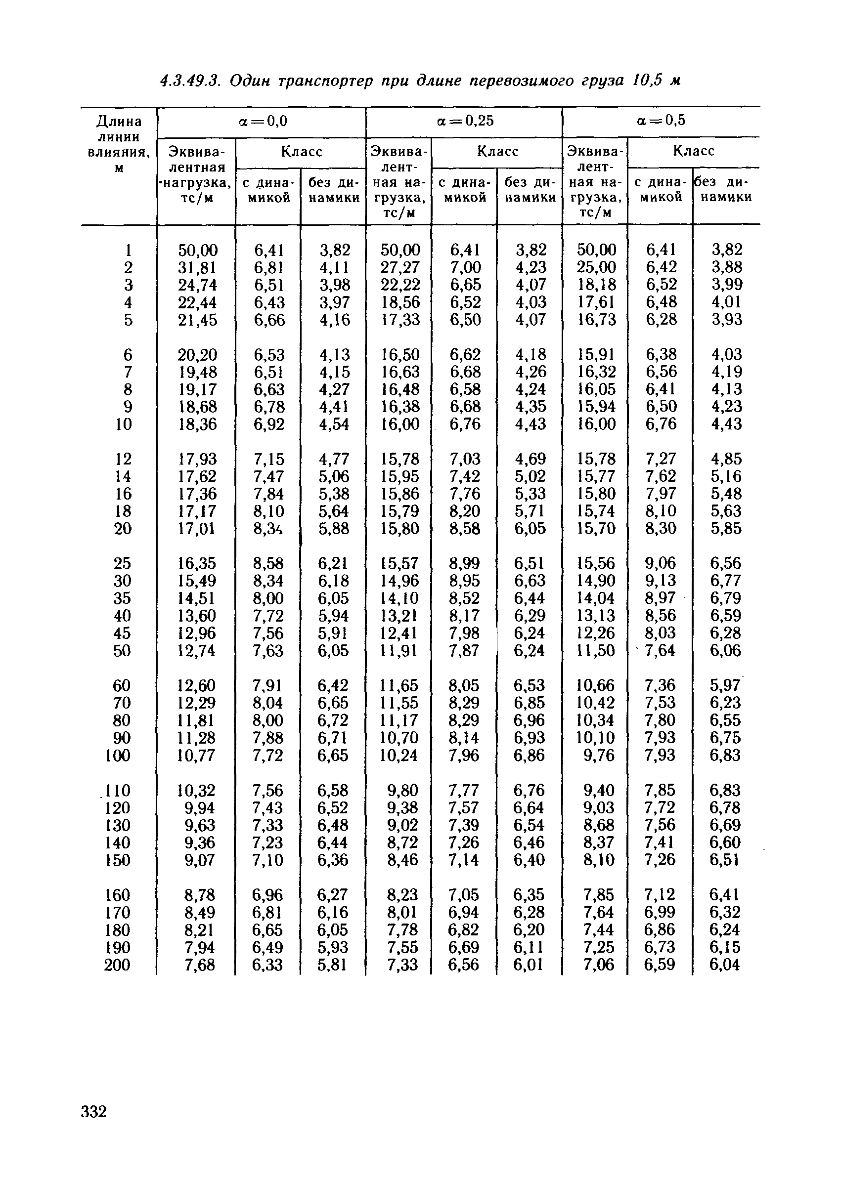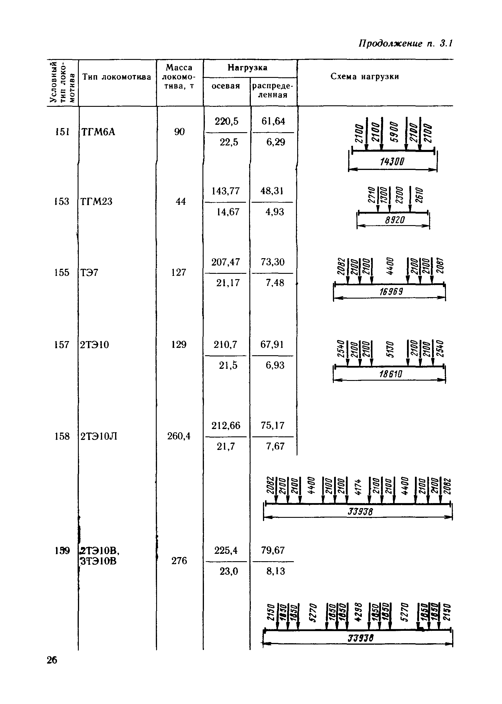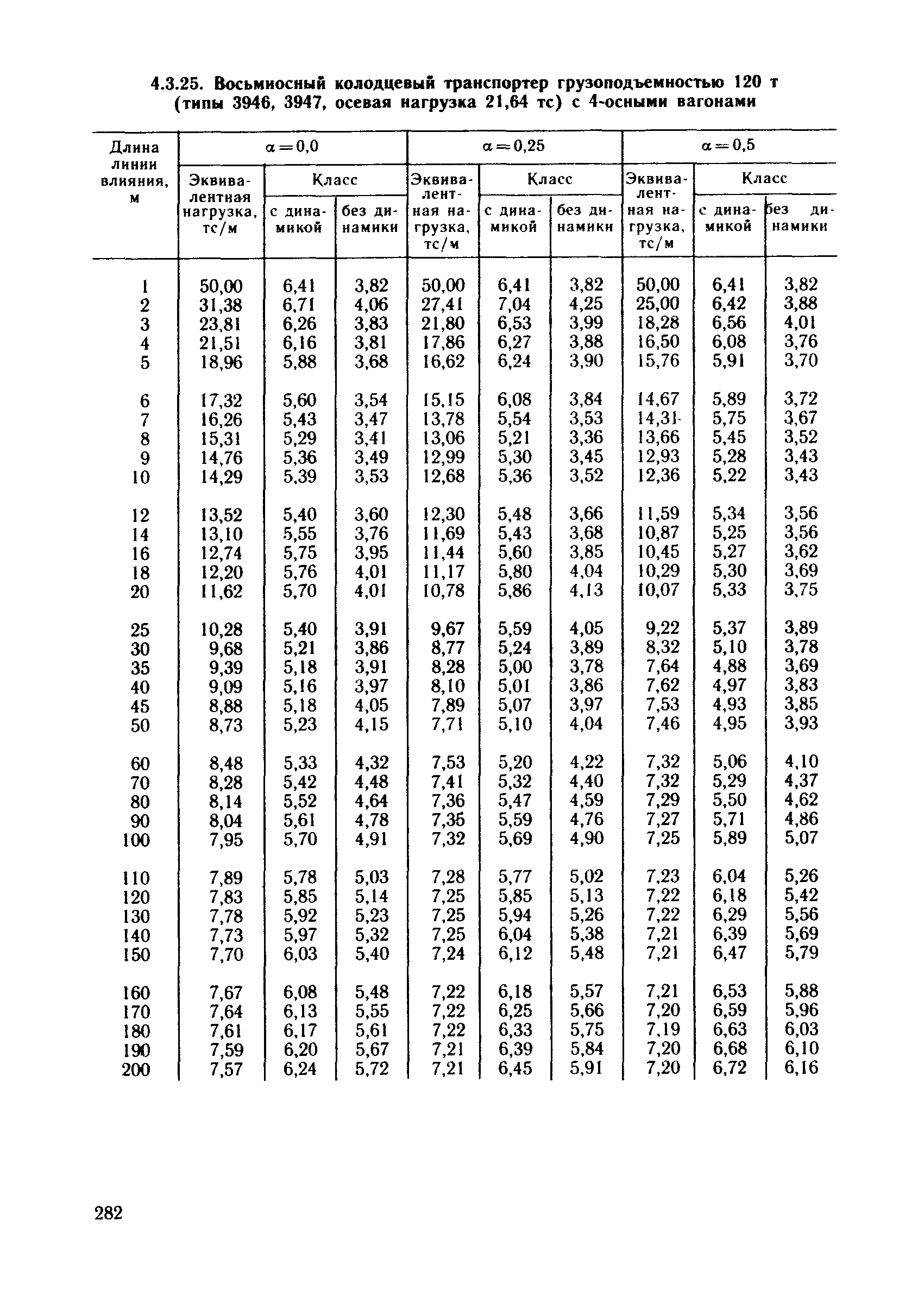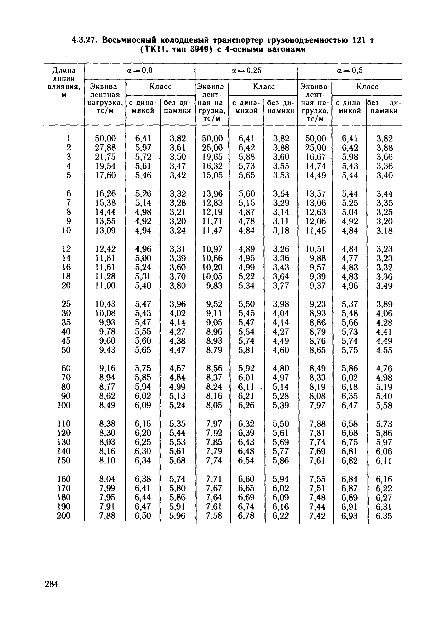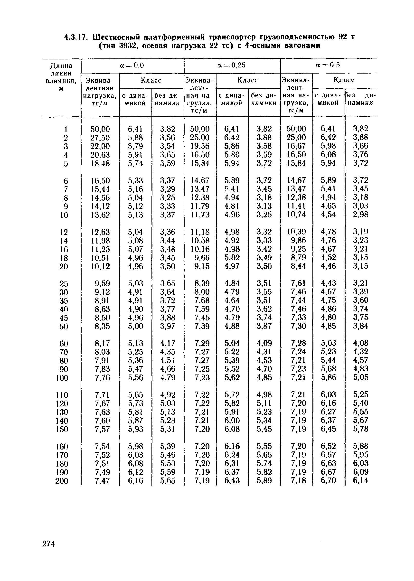Руководство по пропуску подвижного состава по железнодорожным мостам| Статус: | не подлежит применению | | Название рус.: | Руководство по пропуску подвижного состава по железнодорожным мостам | | Дата добавления в базу: | 01.09.2013 | | Дата актуализации: | 01.01.2021 | | Дата окончания срока действия: | 26.08.2019 | | Область применения: | Приведены основные характеристики и результаты классификации (классы) обращающихся и перспективных локомотивов, вагонов, транспортеров, железнодорожных кранов и, кроме того, категории грузоподъемности мостов, обеспечивающих их пропуск. | | Оглавление: | 1. Общие положения 2. Определение условий пропуска поездных нагрузок 3. Характеристики подвижного состава сети железных дорог нашей страны 3.1. Локомотивы 3.2. Вагоны 3.3. Транспортеры 3.4. Консольные железнодорожные краны 4. Классификация нагрузок 4.1. Эквивалентные нагрузки и классы сплоток электровозов, тепловозов, паровозов 4.2. Эквивалентные нагрузки и классы обращающихся и перспективных вагонов 4.3. Эквивалентные нагрузки и классы транспортеров 4.4. Эквивалентные нагрузки и классы железнодорожных консольных кранов Приложение 1. Примеры классификации подвижного состава и определения условий пропуска его по металлическим пролетным строениям железнодорожных мостов Приложение 2. Определение эквивалентной нагрузки от классифицируемого подвижного состава Приложение 3. Динамические коэффициенты, их отношения и эталонная нагрузка от HI 364 Приложение 4. Вагоны «прикрытия» транспортеров Приложение 5. Эквивалентные нагрузки и классы эталонной нагрузки, соответствующие грузоподъемности мостов II-IV категорий Приложение 6. Пример определения допускаемой временной нагрузки на элементы про¬летных строений, имеющих многозначную линию влияния, разделенную одним участком другого знака длиной более 15 м | | Разработан: | Научно-исследовательский институт мостов